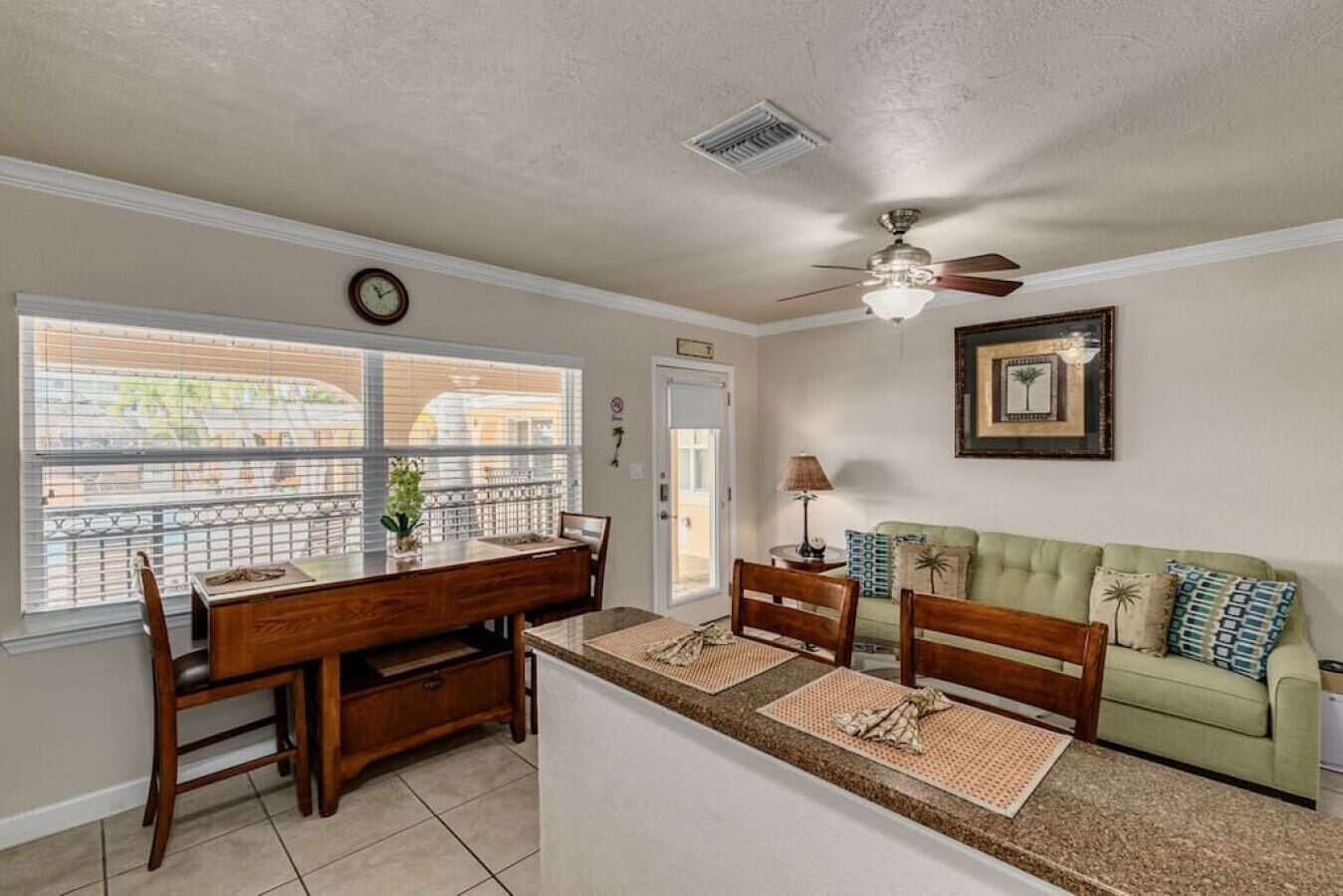 Coconut Villa's Suite 2 Welcome to your home away from home and let this ample, well-appointed one-bedroom usher you into a sense of unencumbered relaxation. The owners inspire you to relax in their tropical paradise and have made every effort to make your stay one to remember. The tiki huts, mingled with a year round heated pool and gas grills make staying in the immaculate compound harmonious. The surrounding beaches, activities and sites are complimentary bonuses!