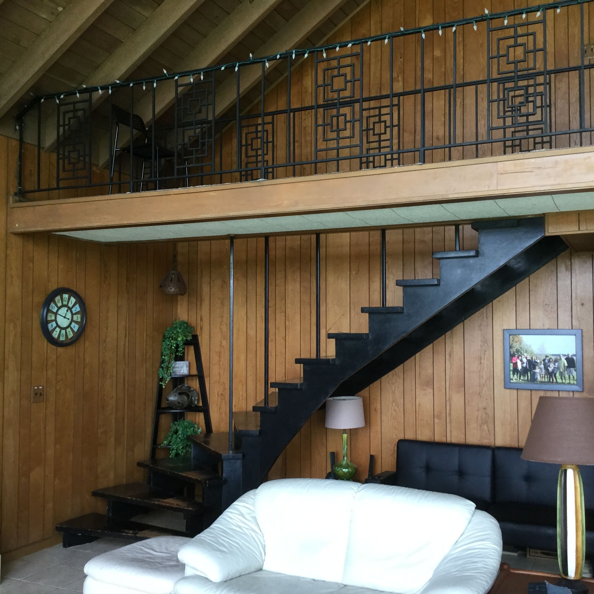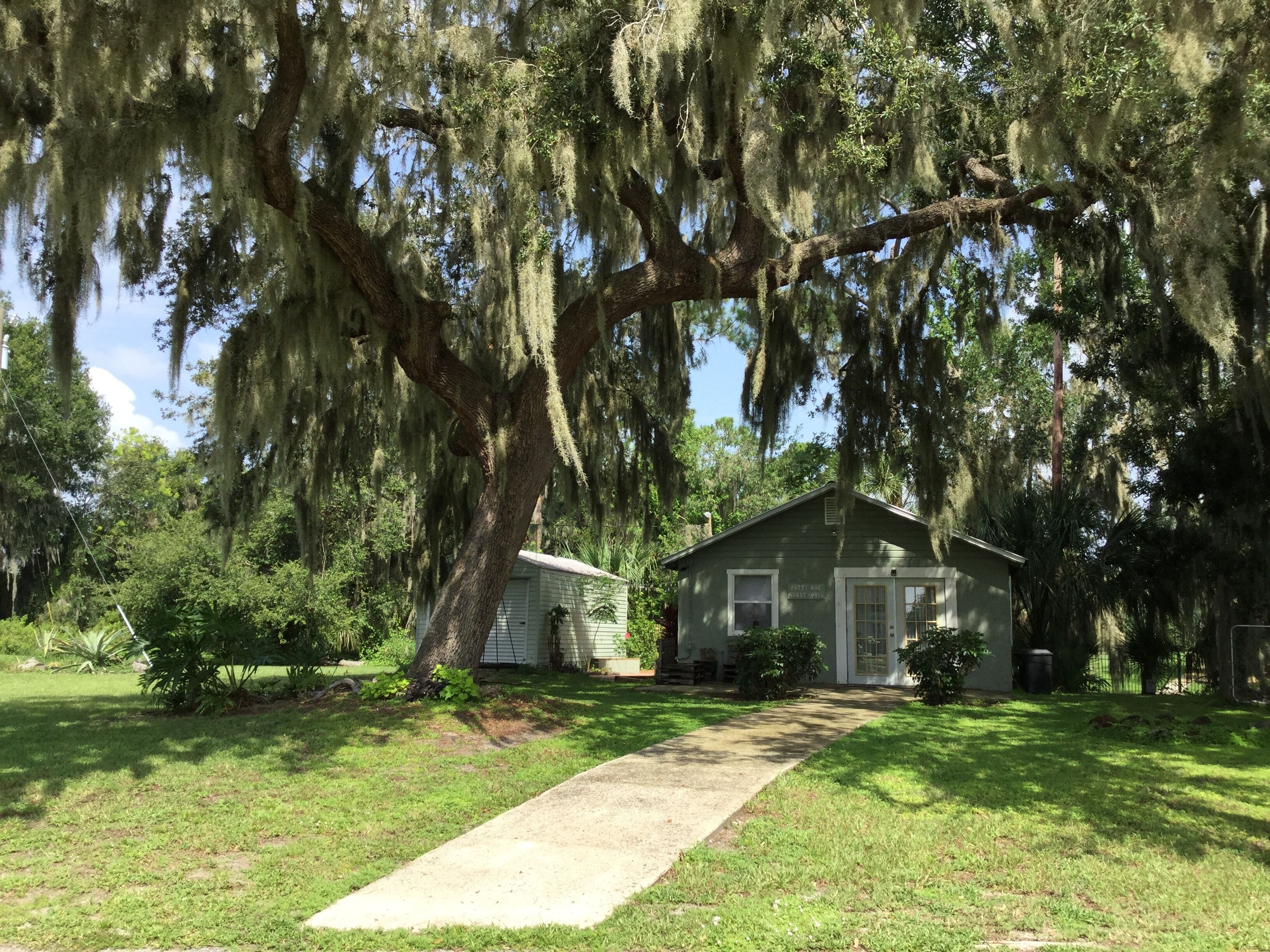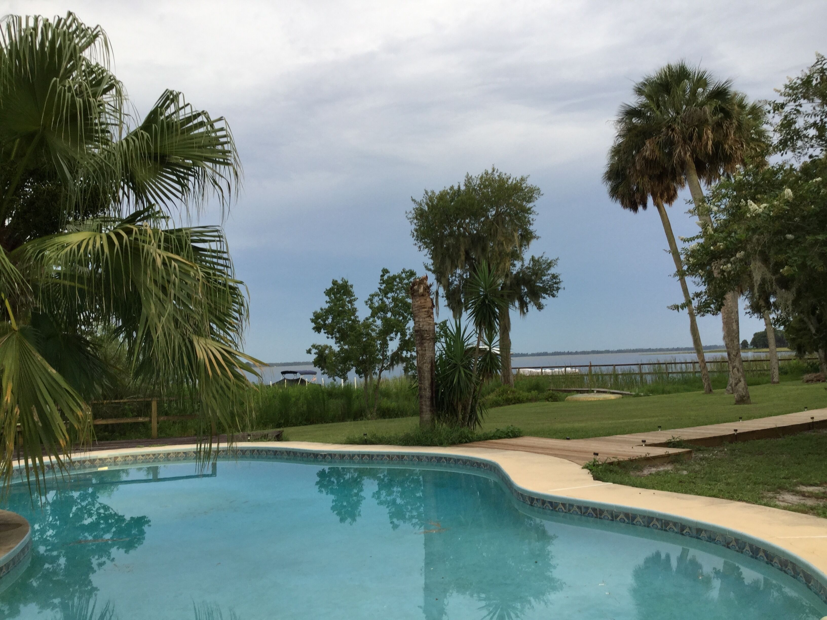 McRobinstone Lakehouse - perfect mid century getaway on sleepy Lake Pierce Two story, glass front lake house on sleepy Lake Pierce! The mid century A-frame provides a great gathering place for the family or friends getaway. The 3 bedroom, plus loft, 2 bath, main house ($225/night), with an open living area sleeps 10 in beds, (2 rooms have 2 beds in each room) with sleeping mats for 4 children. The separate guest house (additional $100/night) offers a 1 bedroom (area) and 1 bath, sleeps two in a bed, with additional sleep space for 2 children on sleeper sofa in the living area. The listing allows a total of 16 guests, with a 10 adult maximum. The 2.25 acre property is surrounded by lake and canal on 3 sides, has a dock, and has a swimming pool and tiki bar set away from the house, and is within 12 miles of Legoland and Bok Tower Gardens. Bedroom 1 upstairs - 1 queen size bed, 1 full size futon mattress on the floor.Bedroom 2 - 2 queen size beds.Bedroom 3 - 2 full size beds and 2 trifold sleeping pads for extra kids sleep space.Loft - Full size fold out 6 inch foam mattress on the floor.Guest house - 1 queen size bed in bedroom area, and sleeper sofa for 2 children in living room. Lake house getaway (summary) - 3bd, 2ba main house with option of 1bd, 1ba guest house on Lake Pierce