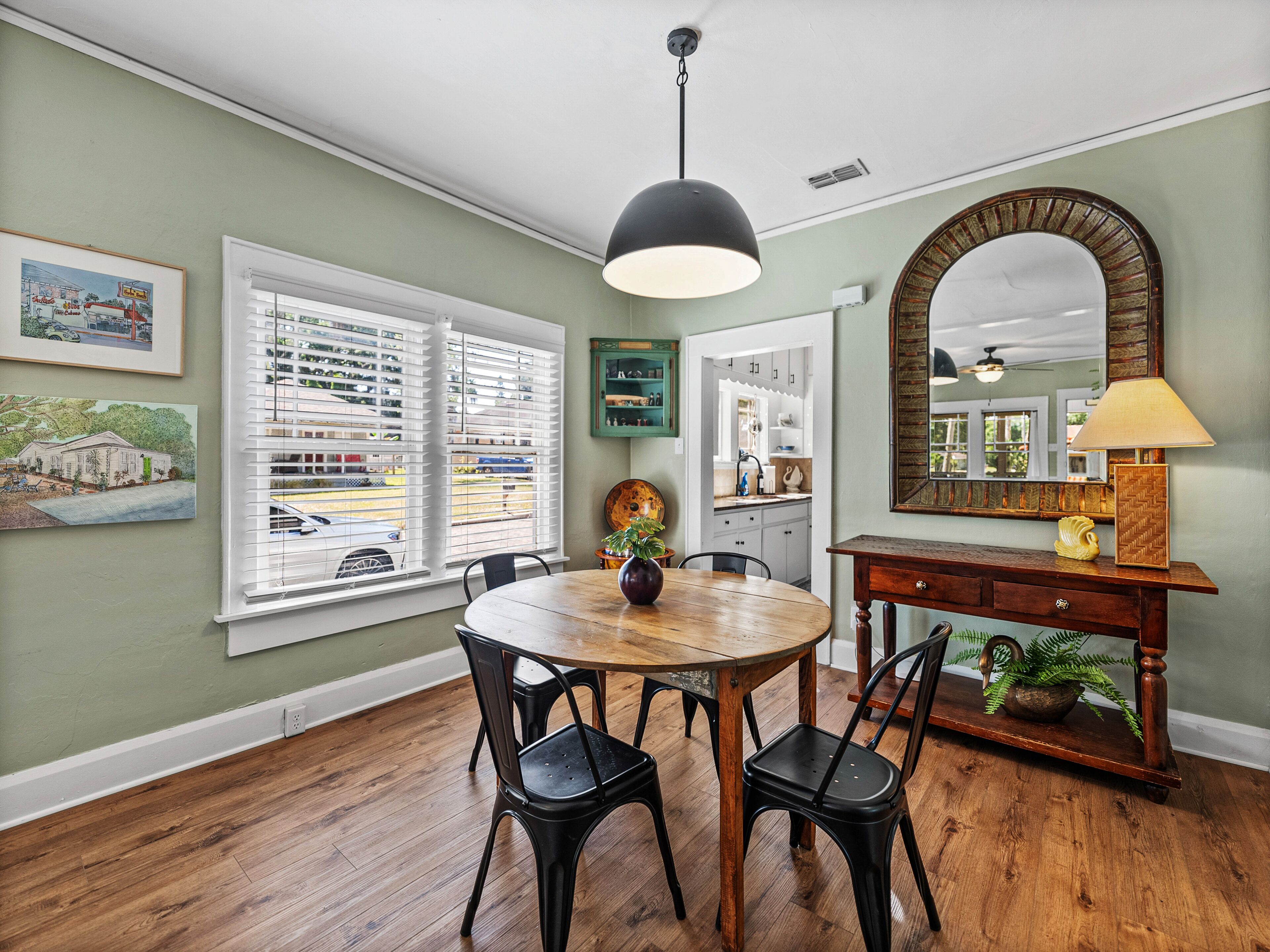 Located in the charming Dixieland Historic District Located in the charming Dixieland Historic District on Hunter St. The bungalow is a two minute walk from Lake Hunter and a little over a half mile from Lake Morton which boasts our beloved swans 🦢. It’s a leisurely one mile walk to downtown Lakeland where you’ll find multiple bars, restaurants, and shopping. Swan Brewery and the RP Funding Center are one mile away! Many antique stores and coffee shops are within a couple blocks. Most of these establishments are accessible by walking or biking.