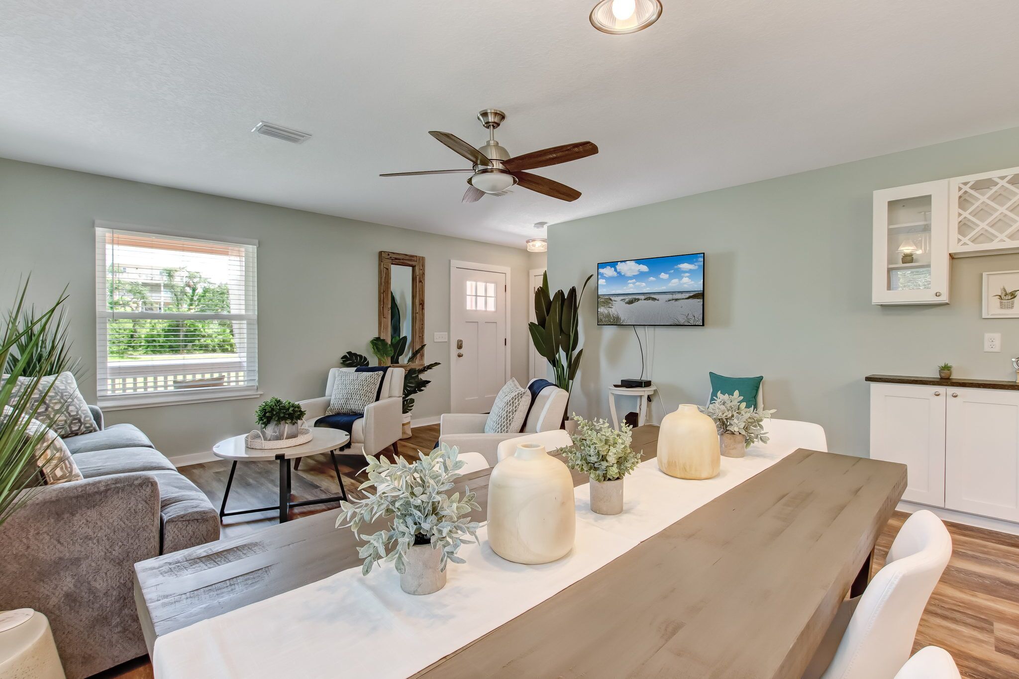 Seascape - Pink🦩PRIVATE POOL✔️3-MIN WALK to BCH✔️ The Seascape - Key-West style home is the perfect setting for every Florida beach vacation experience. 3-min walk to our white sand beach - Private, sparkling clean pool located in the fully fenced backyard. Effortlessly enjoy relaxation at the beach, lounge all day by the pool, or drive 15-mins to downtown St. Augustine to explore the hottest restaurants, bars, and historical sites. The Seascape encompasses the true Florida beach lifestyle, as this beach retreat is equipped with all of the beach supplies that you will need for proper beach days including beach cart, umbrella, beach chairs, and boogie boards ready to go for our guests! Convenience and high-end comfort for our guests are the focus at The Seascape. > -Guest Bedroom 1: Queen bed, Ensuite full bathroom w/ Shower, Laundry Closet (Sleeps 2). -Kitchen: Full kitchen with all of the kitchen essentials for cooking + Dining table for 8, Kitchen island with 4 stools. -Living Room: Large L-Shape leather couch, Smart TV -Exterior: Front porch, Back porch w/ Dining set, Private pool. > -Master Bedroom: King bed, Ensuite full bathroom w/ shower/tub combo, Smart TV, Accent chairs (Sleeps 2). Guest Bedroom 2: Queen bed, Closet (Sleeps 2). Guest Bedroom 3: Single bed w/ single trundle (Sleeps 2). Guest Bedroom 4: Queen sofa bed, Accent chairs, Two balconies w/ outdoor furniture, Desk (Sleeps 2). Guest Bathroom: Full bathroom w/ shower/tub combo located next to master bedroom and guest bedrooms on 2nd floor. Guests have access to the entire home. Check-in details will be available the morning of check-in. Guests will access the property with the front door smart lock. Located just south of St. Augustine Beach in the small community of Butler Beach - The community is quiet, easy-going, and an ideal getaway for those who want to explore St. Augustine. The beach is only a 3-min walk to Sea Oats Lane beach access. The street directly south of the home, Palmetto Road has a public boat ramp to the intracoastal waterway, which would be great to head by water to Matanzas Inlet or Downtown St. Augustine (Always be mindful of the tides). Restaurants and bars located to the north and south of the home which are easily accessible by vehicle. If the plan is to stay at the beach, you are a 3-min walk to our beautiful white sand beach. We are also an 15-min drive to downtown St. Augustine where the hottest restaurants, bars, and historical sites are located.