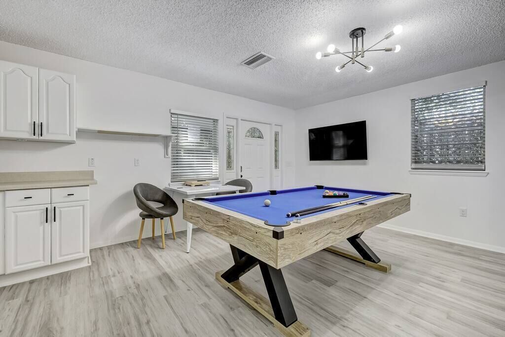 Sun Catcher🌅POOL✔️PRIVATE BACKYARD✔️GAME ROOM✔️ PROPERTY DESCRIPTIONWelcome to the Sun Catcher of Vilano Beach! Fit 8 people in this spacious 3BR/3.5BA home located just 5-min walk to the white sands of Vilano Beach. Relax around the sparkling clean pool located in our private, fully-fenced backyard. Jump into our game room located in the 2nd building on the property loaded with a pool table, ping pong, darts, and all the classics. 5-min walk to the best restaurants in the area, Caps on the Water. Only 12-min drive to Historic Downtown St. Augustine.THE SPACEThe Sun Catcher encompasses the true Florida beach lifestyle, as this beach retreat is equipped with all of the beach supplies that you will need for proper beach days including beach cart, umbrella, beach chairs, and boogie boards ready to go for our guests! Convenience and high-end comfort for our guests are the focus at The Sun Catcher. Not just your place to sleep at night - We are your hub to an authentic Florida Experience. **We are dog-friendly - We allow two dogs maximum on the property at all times - PET FEE is $148 for your whole stay**Two-story home with secondary building with Game Room.Only 12-min drive from Downtown St. Augustine and all the hottest bars and restaurants in town.-1st Floor->Living Room: Queen pullout sofa, Accent chairs, Smart TV (Sleeps 2).>Kitchen: Full kitchen stocked with the essentials including coffee machine (drip).>Guest Bathroom: Half bathroom located next to the living room.>Garage: Laundry - Washer & Dryer located in garage.-2nd Floor->Master Bedroom: King bed, Ensuite full bathroom w/ shower, Closet, Smart TV (Sleeps 2).>Guest Bedroom 1: Queen bed, Accent chairs, Closet (Sleeps 2).>Guest Bedroom 2: Queen bed, Closet (Sleeps 2).Guest Bathroom: Full bathroom with shower and jetted tub combo.-Exterior->Backyard: Sparkling clean pool located in a lanai, outdoor table for 8, fully fenced backyard.>Parking: Parking for 3 standard size vehicles.-Game Room->Loaded with a Pool table, Ping pong, Magnetic Darts, Chess, Checkers, and all the classics. Additionally, the Game Room has a desk space, couch, and full bathroom with shower.GUEST ACCESSGuests have access to the entire condo.Check-in details will be available the morning of check-in.Guests will access the property with the front door smart lock.NEIGHBORHOOD REVIEWLocated in Vilano Beach, the community is quiet, easy-going, and an ideal getaway for those who want to explore St. Augustine. 5-min walk to the beach access right at the end of the road. 5-min walk to one of St. Augustine’s top restaurant, Caps on the Water located right on the intracoastal. This community and our property is full of live oak tree coverage, which makes for great shade during those Summer Days after the beach.Walk to the beach in 5-minutes. Our grocery store is only a 5-min drive from the home. Enjoy being only a 12-min drive to the Historic Downtown St. Augustine.ADDITIONAL DETAILSThe primary home is two-stories.**We are dog-friendly - We allow two dogs maximum on the property at all times - PET FEE is $148 for your whole stay**Parking for 3 standard size vehicles in driveway and garage.The pool is located in the Lanai in the backyard.