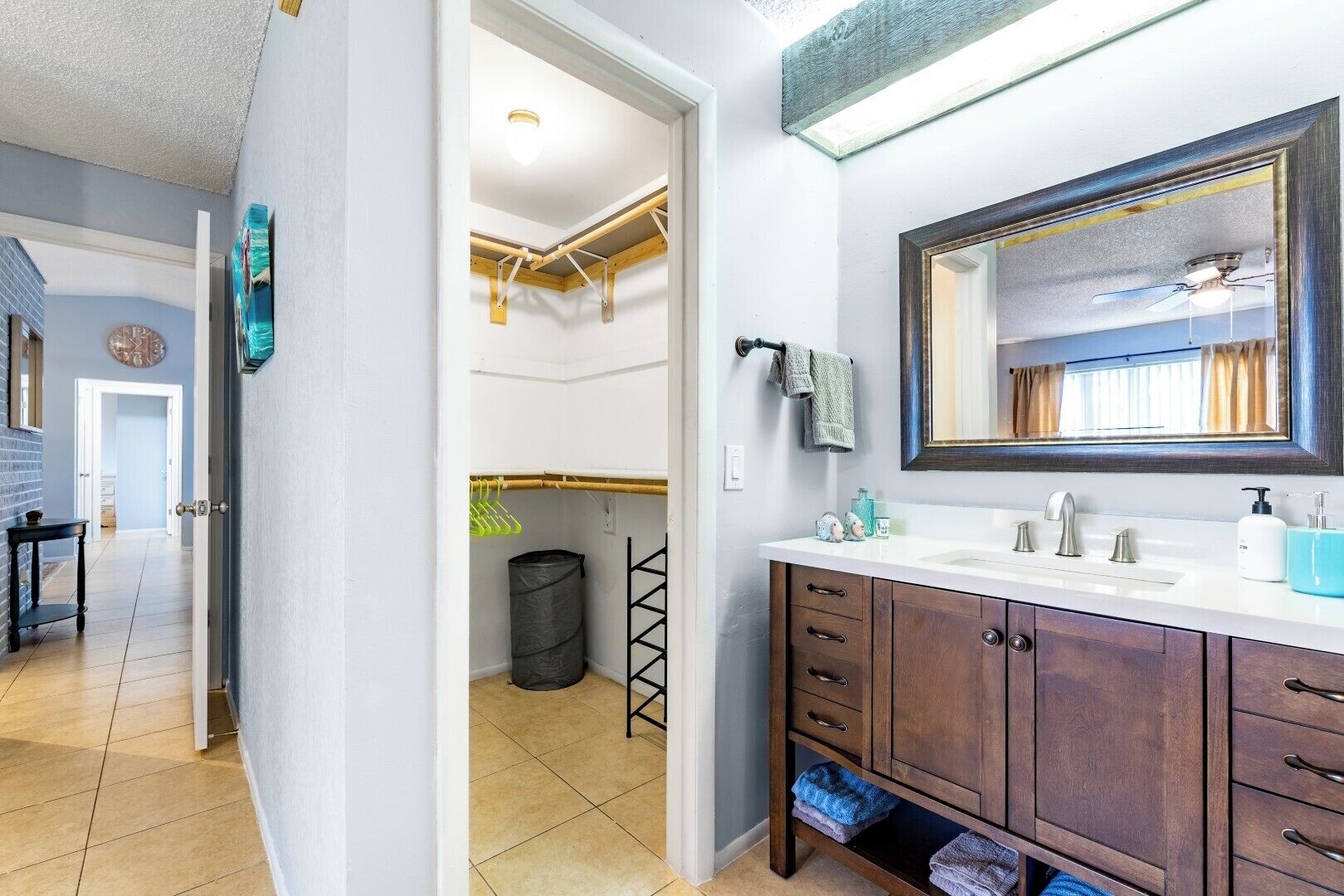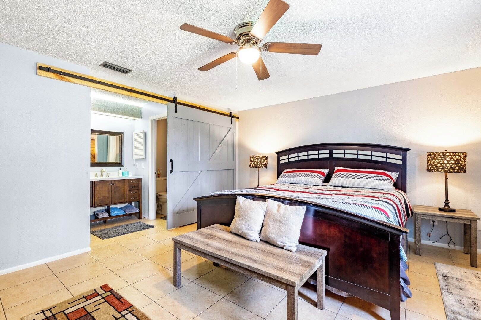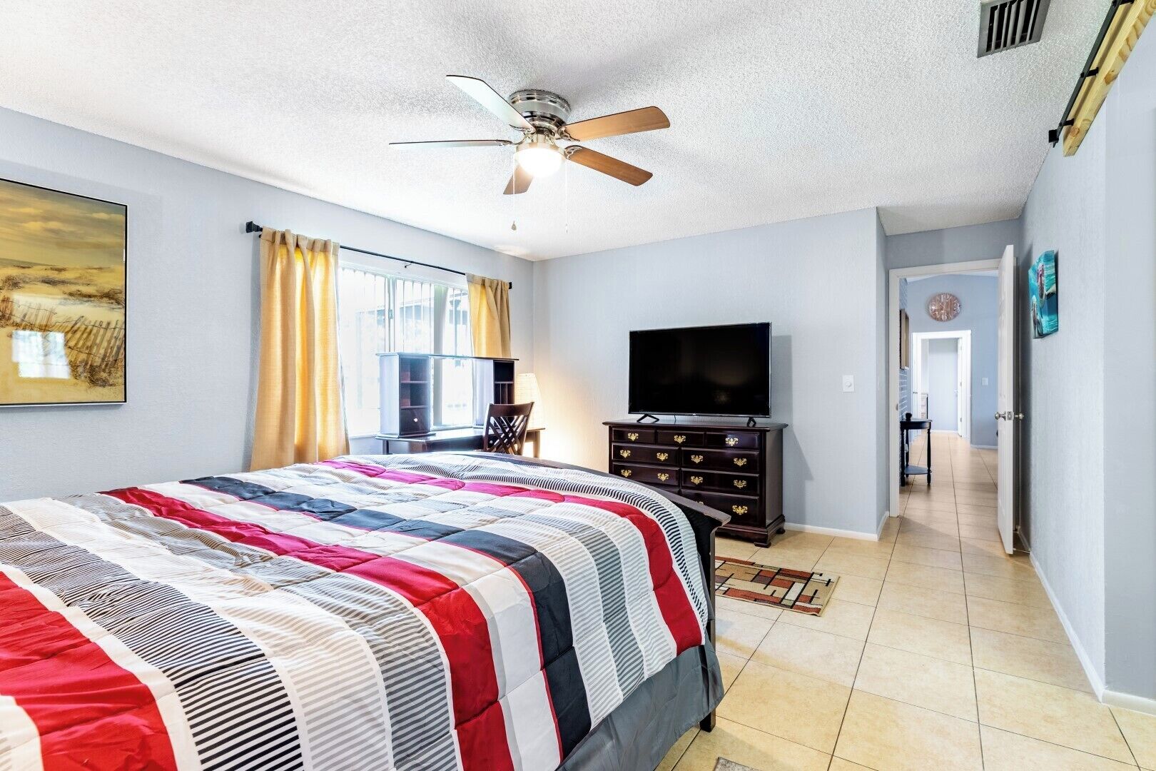 BR Tropical Oasis in Port St Lucie Make your Florida vacation memorable in this bright 3-bedroom home located in Port St Lucie, Florida. With a private backyard and screened porch, you will feel right at home in this bright, clean, cozy, and comfortable living space with a washer & dryer. The home is located in the heart of Port St Lucie close to entertainment, dining, and shopping! Take advantage of the warm weather by relaxing in our private backyard, using provided bike, or visiting nearby parks and beaches with friends.The spaceThis gorgeous home features 3 bedrooms and 2 bathrooms. The entire house can comfortably accommodate 8 guests. Read more about each space:LIVING SPACE• A comfortable lounging area• A center table• A ceiling fan• Smart TV so you can log in to your streaming services• Plenty of natural lighting• Air hockey tableKITCHEN AND DINING SPACE• Full sized refrigerator, stove and oven• Coffee maker and complimentary coffee• Microwave• Dining room table1ST BEDROOM• King-sized mattress• En suite bathroom• Ceiling fan• Dedicated work area• A smart TV2ND BEDROOM• Queen sized bed• Dresser• Ceiling fan• Side tables and lamp3RD BEDROOM• Queen sized bed• Dresser• Ceiling fan• Side tables and lampsADDITIONAL AMENITIES• Wi-Fi access• In-house washer and dryer• Spacious backyard- NOTE: it is not fully-fenced• Outdoor furniture• Screened-porch• Driveway parking• Wine bar• Bike available for guest use• Shade Umbrella and Beach towels providedGuest accessThe house has a digital keypad at the front door which will provide you access to the house. The code will be provided upon check-in. You will have full and private access to the home.Guests are not able to access or use the garage.(1) MINIMUM AGE: You must be at least 25 years of age to rent this property.(2) NO SMOKING: If our cleaning crew reports any signs of smoking cigarettes, vapes, e-cigs, pipes, etc. (smell, ash, etc.) in or around the home, an automatic $500 damage charge will be incurred. The same charge applies if cigarette butts are found outside of the home. If marijuana is smoked in or around the home a $500 fee will be charged, and details about the reservation may be turned over to the appropriate authorities.(3) NO PARTIES OR EVENTS. Parties are prohibited at the home. Other events are permitted at the home only with our prior approval.(4) QUIET HOURS. This home is located in a residential area. To be courteous to our neighbors, we ask that you respect quiet hours between 10 PM and 7AM. If you violate quiet hours and disturb the neighbors, we will cancel your reservation; you will be required to leave the property immediately and you will not be eligible for any refunds. We may monitor noise with exterior cameras and/or noise monitoring technology. (5) DAMAGE: You will be responsible for any damage to the home or its furnishings during your stay.(6) TRASH: Please bag all trash and place it in the bins provided. There is a $100 charge for third party trash removal if an excessive amount of trash is left at the property.(7) RELEASE: If an issue arises and guests request a refund, we will require guests to agree to a release before issuing a refund.(8) PET POLICY: Pets are permitted at this home. You must notify us if you plan to bring a pet to the home and will be charged a non-refundable fee. You will be responsible for cleaning up all evidence of your pet at the property, including fur inside the home and waste from the yard.(9) POOL / HOT TUB / DOCK: Guests must abide by all rules posted on premises regarding the safe use of any amenities. By booking this property, guests waive any and all claims of liability against homeowner or any property management entity affiliated with homeowner relating to the use of these amenities whether due to loss, damage, injury or death.
