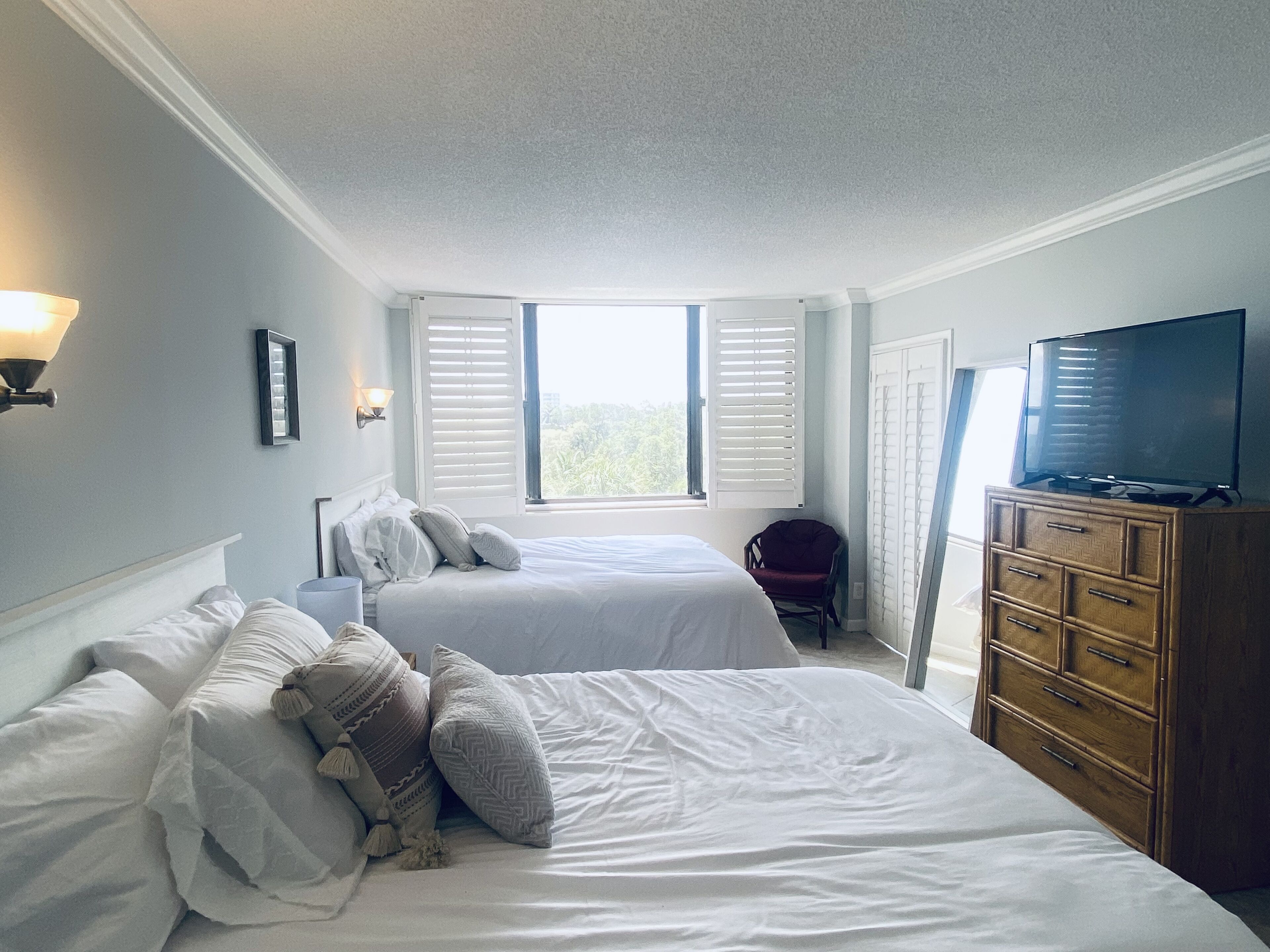 Waterfront sunrise views on beautiful Siesta Key minutes from beach and downtown Enjoy a slice of paradise in this spacious, updated two bedroom "condotel". This unit boasts gorgeous views of the Gulf, is bursting with amenities and a short walk to the beach!The unit can sleep up to eight people and is very family friendly. Wake up and have your morning coffee while watching the sunrise then enjoy your evening cocktails by the pool while grilling up some delicious local seafood!We also offer another one bedroom condo diagonally across the hall for larger groups. Additionally, we have a penthouse one bedroom overlooking the gulf with amazing sunset views