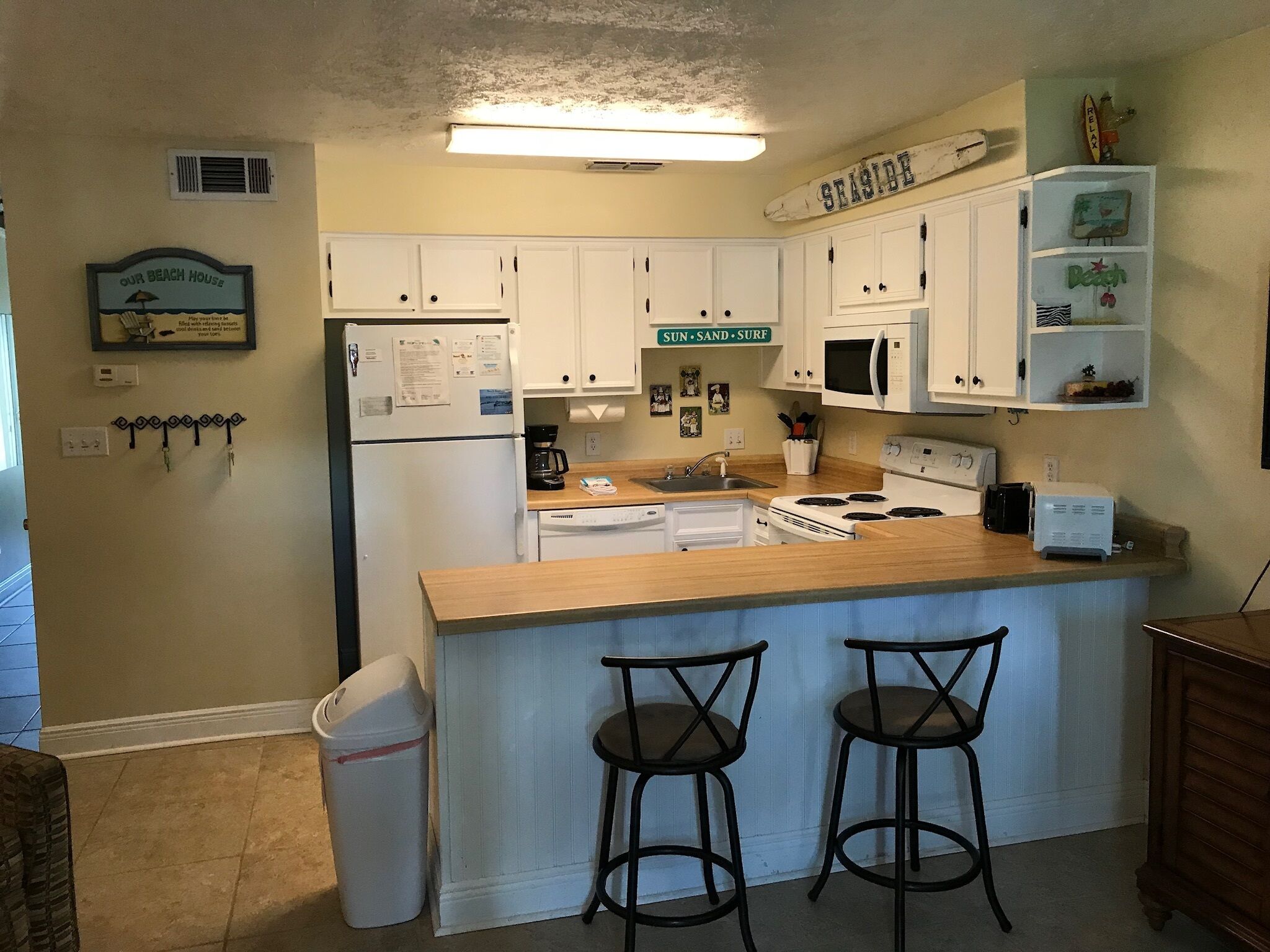 Beachside 30A Seagrove Beach One Mile to SEASIDE Square Family Couples Retreat Located in Seagrove Beach - 1 mile from the center of Seaside Square The Beacons Condominium's is the best kept secret along Scenic Highway 30-A. Our 2 building, 10 unit condominium complex is nestled between million dollar private homes with our own private beach boardwalk. Our Beacons condo #7 is in the second building back from the beach. We’re on the BEACHSIDE side of 30-A so there are NO ROADS to CROSSs. In fact, you can walk from the patio of our ground floor condo to the beach in about 70 steps. The location of our condo is perfect! Not only are we on the beach side of Scenic Highway 30-A but the 16-mile jog/walk/bike path along 30-A is just outside our door. Hop on your bike and you’ll be in the beautiful village of Seaside in about 5 minutes or one of our favorite activities is to bike ride to Grayton Beach state park and rent a canoe for the afternoon and enjoy the beautiful coastal dune lakes that are native to this part of Florida. We have many repeat guests who stay in our condo year after year and new guests love our “guest book” where previous visitors leave tips and suggestions as to places to eat, shop, or things to do in the area. Our condo has a fully equipped kitchen and sleeps 4 with a spacious master bedroom and large hall bunks that kids especially love.We would love to have you make our condo YOUR vacation destination.Keywords: Condominium