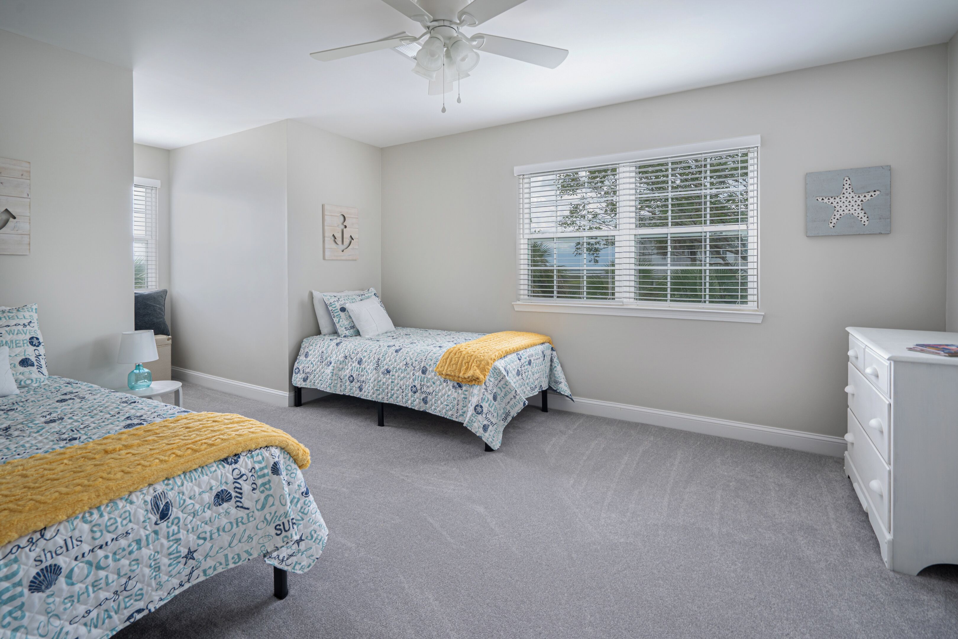 Oyster Shell Cove Near Cumberland Island This St. Marys house boasts 4 inviting bedrooms, including 1 king bed, 1 queen bed, and 3 twin beds. With 2.5 bathrooms equipped with a shower, bathtub, and hair dryer, guests will feel right at home. Just a couple blocks from the Cumberland Island Ferry and historical downtown area. Perfect place to host a family get together and relax. The gorgeous and enchanting atmosphere of this property will make your stay truly memorable. Experience the magic of St. Marys at our peaceful home with amazing porch views.