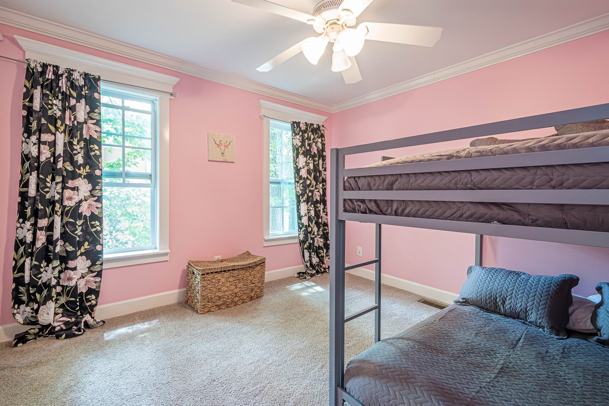 Mid- Century Retreat - Perfect for Families 4BD/2BR Welcome to our exceptional four-bedroom rental in Kennesaw, Georgia! Nestled in a serene neighborhood, our property boasts unique amenities including an outdoor playground, yoga Zen station, Peloton bike, and a beautiful creek. With modern comforts and Southern charm, it's the perfect retreat for families and groups seeking relaxation and recreation in the heart of Kennesaw.PLEASE READ: This home is a duplex. You have access to entire home, the only shared areas are the driveway.The space3 miles to East Cobb Baseball Complex4.8 miles to Downtown Woodstock4.2 miles to KSU Kennesaw State University8.4 miles to Wellstar Kennestone Hospital8.5 miles to Marietta Square10 miles to Lake Alatoona12 miles to Downtown Roswell15 miles to the Atlanta Braves Stadium15 miles to The Battery18 miles to Northside Cherokee Hospital23 miles to Northside Hospital24 miles to Piedmont Hospital25 miles to Midtown25 miles to Piedmont park25 miles to Botanical Gardens26 miles to the Georgia Aquarium29 miles to the Atlanta Zoo32 miles to Emory University Hospital37 miles to domestic terminal airport★ PARKING ★✔ MAX 2 cars spots available on the left side of the driveway. The remainder cars are subject to street parking. ★ MAIN LIVING ROOM ★✔ Large sectional couch to entertain entire family✔ 85 in Sony TV✔ Large windows overlooking the woods✔ Comfy additional seating with Pillows and Blankets✔ Fireplace✔ Entrance to deck and backyard★ FRONT LIVING ROOM ★✔ comfy couch with additional seating✔ Large book section ✔ Large windows overlooking the forest✔ Fireplace★ KITCHEN & DINING ★✔ Kitchen Aid✔ Refrigerator/Freezer✔ Drip Coffee Maker✔ Sink - Hot & Cold Water✔ Trays✔ Glasses✔ Silverware✔ Pots & Pans✔ Disposables and essentials in the pantry A cozy dining table for 6 and a bar top that is suitable for 4.★ PRIMARY BATHROOM ★The inviting full bathroom is completely private and separated from the main space.✔ Walk in-Shower DOUBLE shower head✔ Bathtub✔ Vanity for two✔ Mirror✔ Toilet✔ Walk-in Closet✔ Towels★ BATHROOM ★✔ Shower✔ Vanity✔ Mirror✔ Bidet✔ Toilet ✔ Towels★ OUTDOOR AREA ★Step outside to the private patio from the primary bedroom sliding doors to enjoy some nature yoga. We also a deck with outdoor seating and a grill prepared for family fun. The deck leads to a staircase to the backyard which is full of trees and a nice play-set for children. If you continue to walk down the backyard you will find a beautiful creek that is great for picnics and stargazing.✔ Seating Area with Table and Chairs✔ Outdoor play set BBQ ✔ Picnic equipment★ MASTER BEDROOM ★✔ Queen-Size Bed (Mattress type: Medium) with Pillows, Linens, and Sheets✔ Night Stands with reading lamp✔ Paloton Bike✔ Private patio with zen station✔ Zen station Yoga mats for Yoga in nature ✔ Private bathroom ★ BEDROOM 2★✔ Full-Size Bunk Beds (Mattress type: B soft and Top spring) with Pillows, Linens, and Sheets✔ Closet for clothing storage✔ Pack and play travel crib★ BEDROOM 3★✔ twin-Size Bunk Beds(Mattress type: foam on bottom medium on top) with Pillows, Linens, and Sheets✔ Night Stands and children's desk✔ Closet for clothing storage★ BEDROOM 4 LOFT ★✔ King-Size Bed (Mattress type: Firm) with Pillows, Linens, and Sheets✔ Fold-out futon (comfort type: firm gel) for additional sleeping area✔ Ceiling fan ✔ Smart TV✔ Night Stands✔ Book Selection
