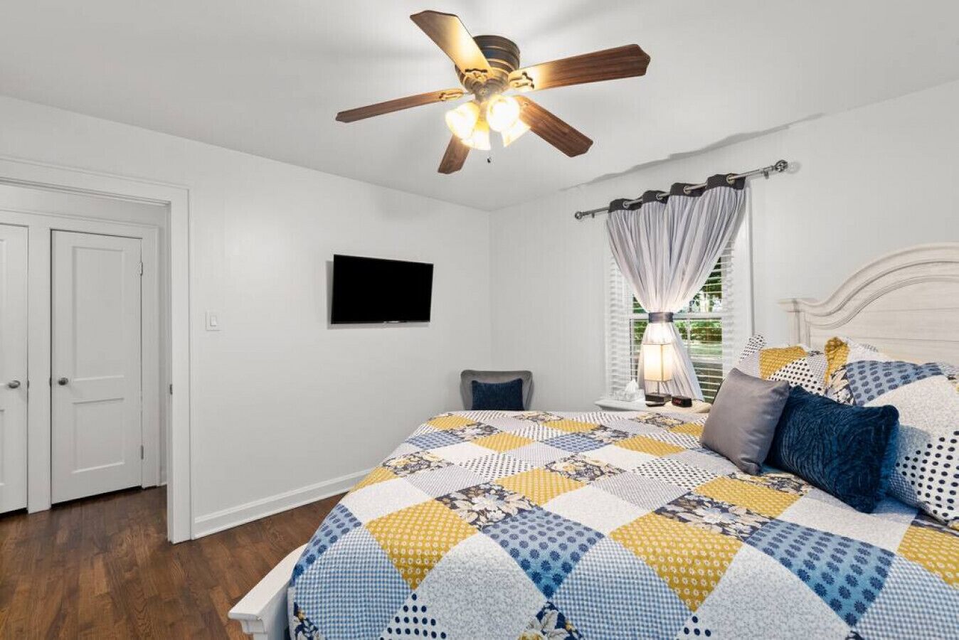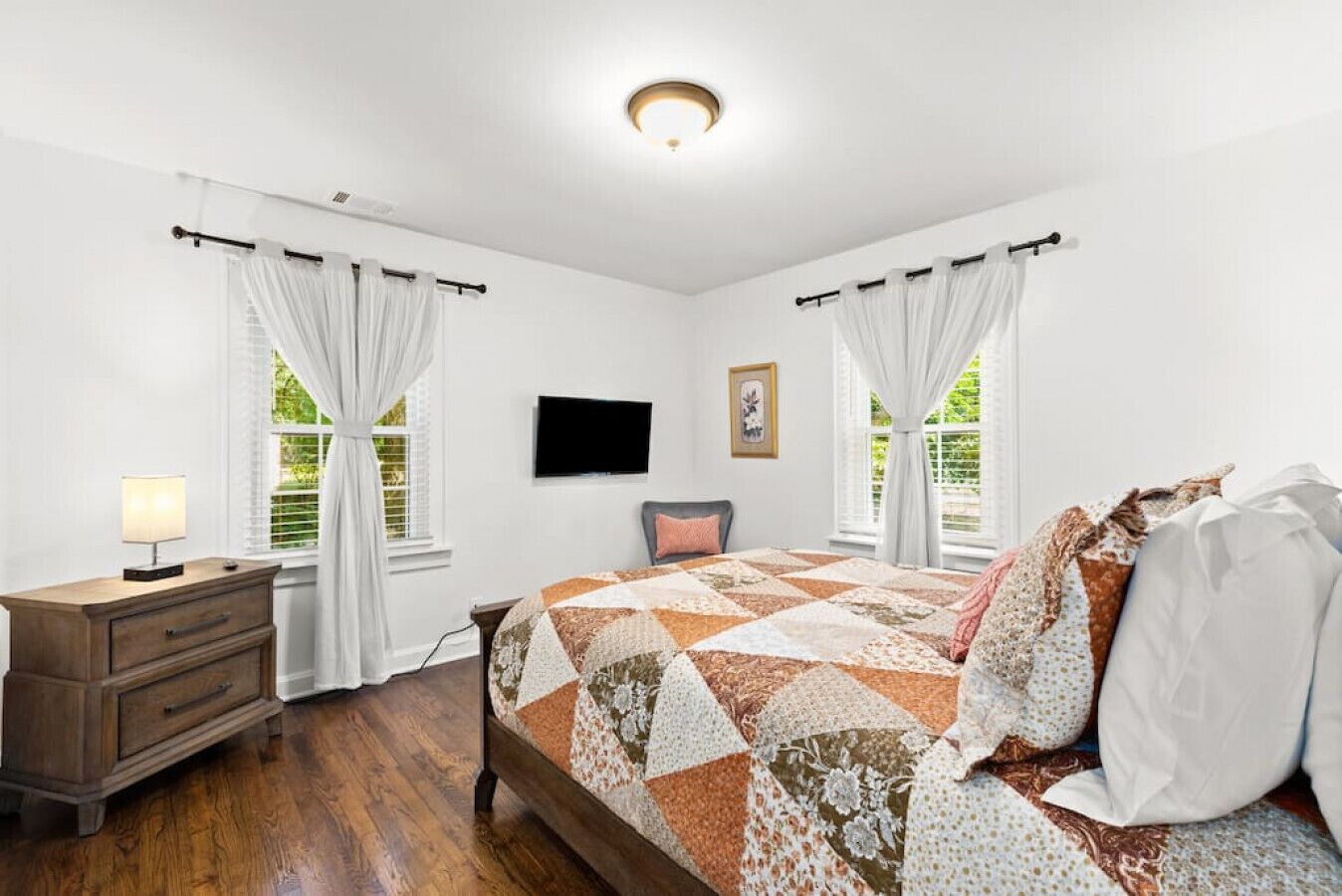 Magnolia on Main · Charming Farmhouse on Main St! WIFI + Dogs OK Welcome to Magnolia on Main! Our modern farmhouse has a great central location on Main Street in Kennesaw. Welcome to your home away from home! We strive to offer a clean, comfortable and quiet retreat to enjoy all our community has to offer. This home is bright & airy & features 2 bedrooms & 1 bathroom, a fully stocked kitchen, smart TVs in both bedrooms, full use of the washer and dryer + more! Dog friendly with pre-approval. Book your little getaway!Features: —> Walking distance to Downtown Kennesaw, Swift Cantrell and Adams Park ?—> Close to Fifth Third Bank Center: ATL United + music venue —> 6 minutes from Smith Gilbert Botanical Gardens ?—> 7 minutes to Kennesaw State University —> Trail systems .5 miles or less from the house ?—> Dog Friendly (pre approval required and $100 per stay, please inquire for more details) ?—> 15 minutes to Marietta Square: haunted historical houses, The Strand Theater—> 20 minutes from Truist Park / The Battery ⚾️—> 20 minutes to Lake Point Sports Complex —> Very close by restaurants, grocery stores, shopping —> 30 minutes to downtown Atlanta —> 40 minutes to Atlanta Airport ✈️—> Huge! Spacious backyard—> Full use of washer/ dryer —> Fast Wi-Fi—> Smart TVs in both rooms and living room —> Fully stocked kitchen —> Modern farmhouse-style home lux decorated and newly renovated! COVID-19 update: We have implemented strict cleaning measures for disinfecting the house between guests. In addition to our regular high standards, we are disinfecting all light switches, remotes, doorknobs, keypads, and all surfaces. We want you to have a peace of mind and consider us a retreat today and always. Please consider purchasing third party travel insurance as coronavirus restrictions and cases are changing to protect your trip. Our cancellation policy is firm. Please ask about extended stay discounts!!Entire home for guest use, including fully stocked kitchen and washer and dryer!I will be available any time through text or call for any questions!Right on Main Street in Kennesaw! Close to many different trail systems, restaurants, and activities.Plenty of driveway space for parking. Car or Uber recommended for getting around, although we are very nearby grocery stores, restaurants and trails for hiking.Along Main Street in Kennesaw. This is a busier road around work hours each day. The house is further back from the road, but you may hear some traffic from inside.House trained dogs that are pre-approved are allowed. Backyard is fenced but has some holes in fence. Pet fee is $15 per night per pet. No puppies allowed. Dogs must be crated when left unattended. Dogs must be supervised when in the backyard and may not be left in the backyard unattended. $75 pet waste fee will be applied if pets are not cleaned up after. Pets must be pre-approved or a fine of double the pet fee per night ($30) will be applied.Please note while the home is cleaned very thoroughly between stays and air filters changed regularly, we do allow dogs at the home. Those with severe allergies will need to consider our home’s suitability for their unique needs.Minimum $250 fine will apply for evidence of smoking inside the home. Please smoke away from any open doors & windows.-Stays over 60 days will require a clean every 30 days included in your booking fee. *An application, screening, signed lease and deposit is required for 30+ day rentals-please inquire for more details.