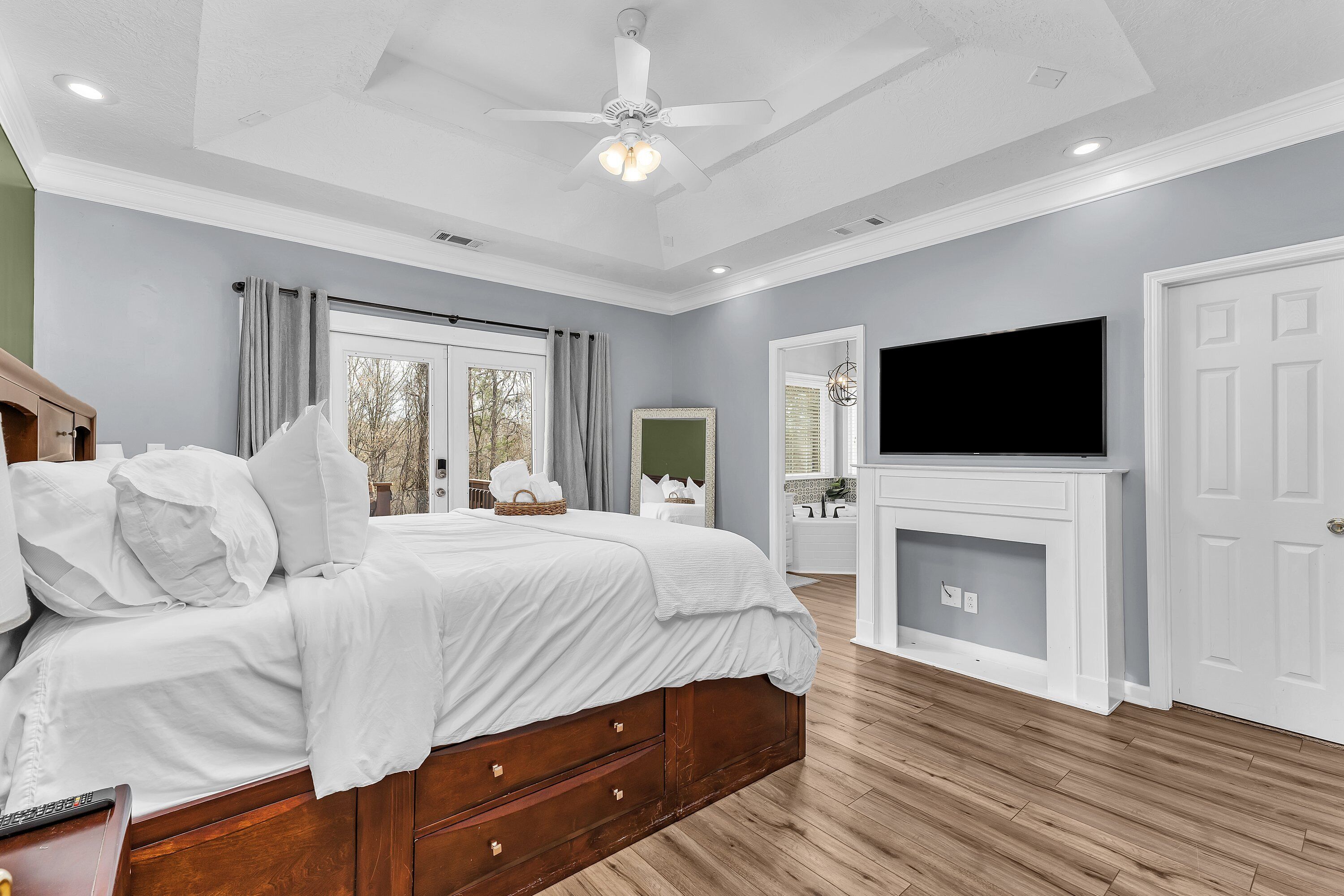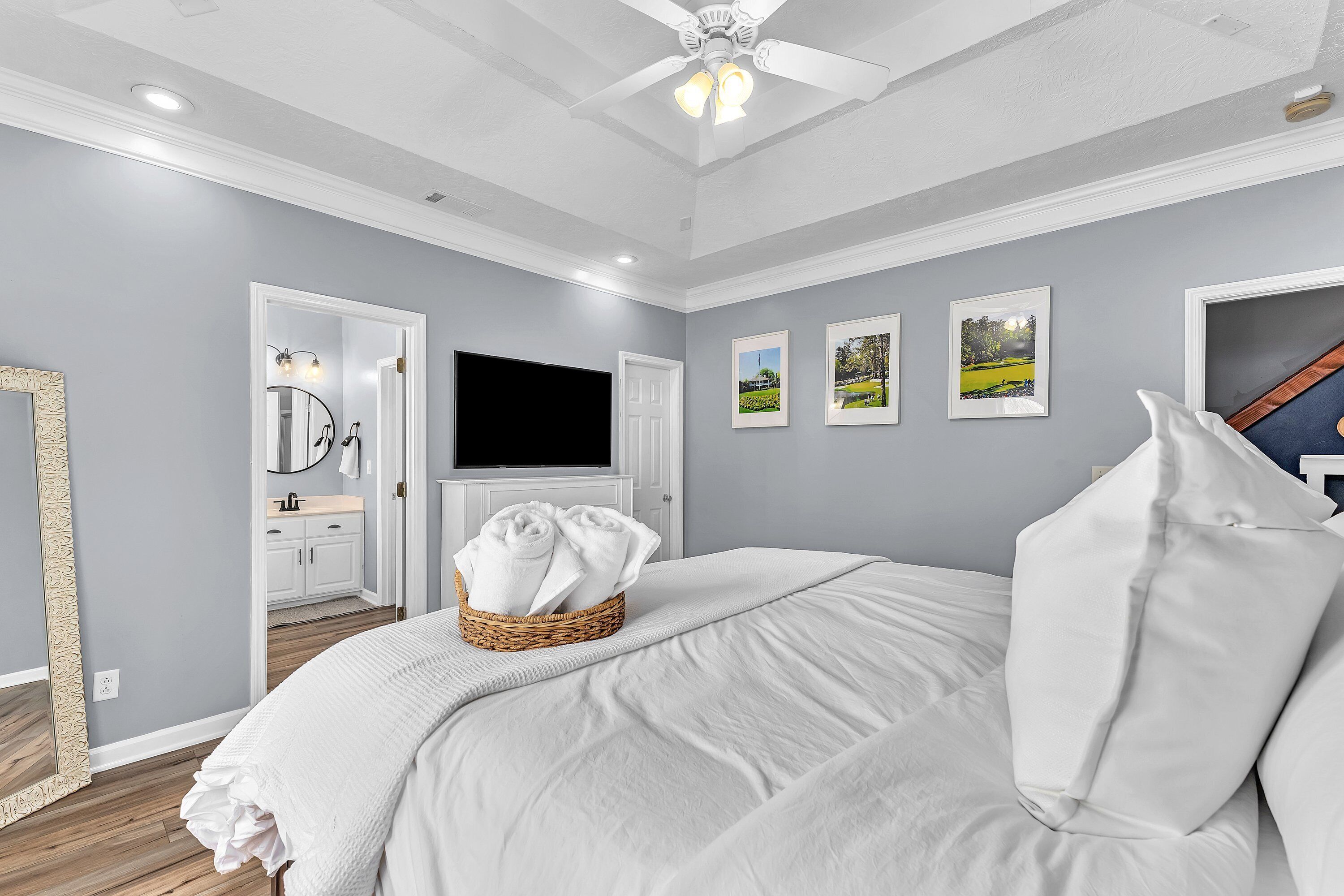 Big Blue - Home with Cali King Bed near Masters Golf, Fort Eisenhower, Amazon No cleaning fees here!Unwind in the spacious "Big Blue" overlooking a beautiful wood line along the Euchee Creek Greenway. Big Blue is set along the outer rim of a great neighborhood with no neighbors behind the property. This is perfect for sitting on the large deck and enjoying the woodsy view with a large cup of coffee from our complimentary tea and coffee bar. Whether you are a Masters tournament patron, traveling business professional, military family, or group of friends, Big Blue is a great fit for you.