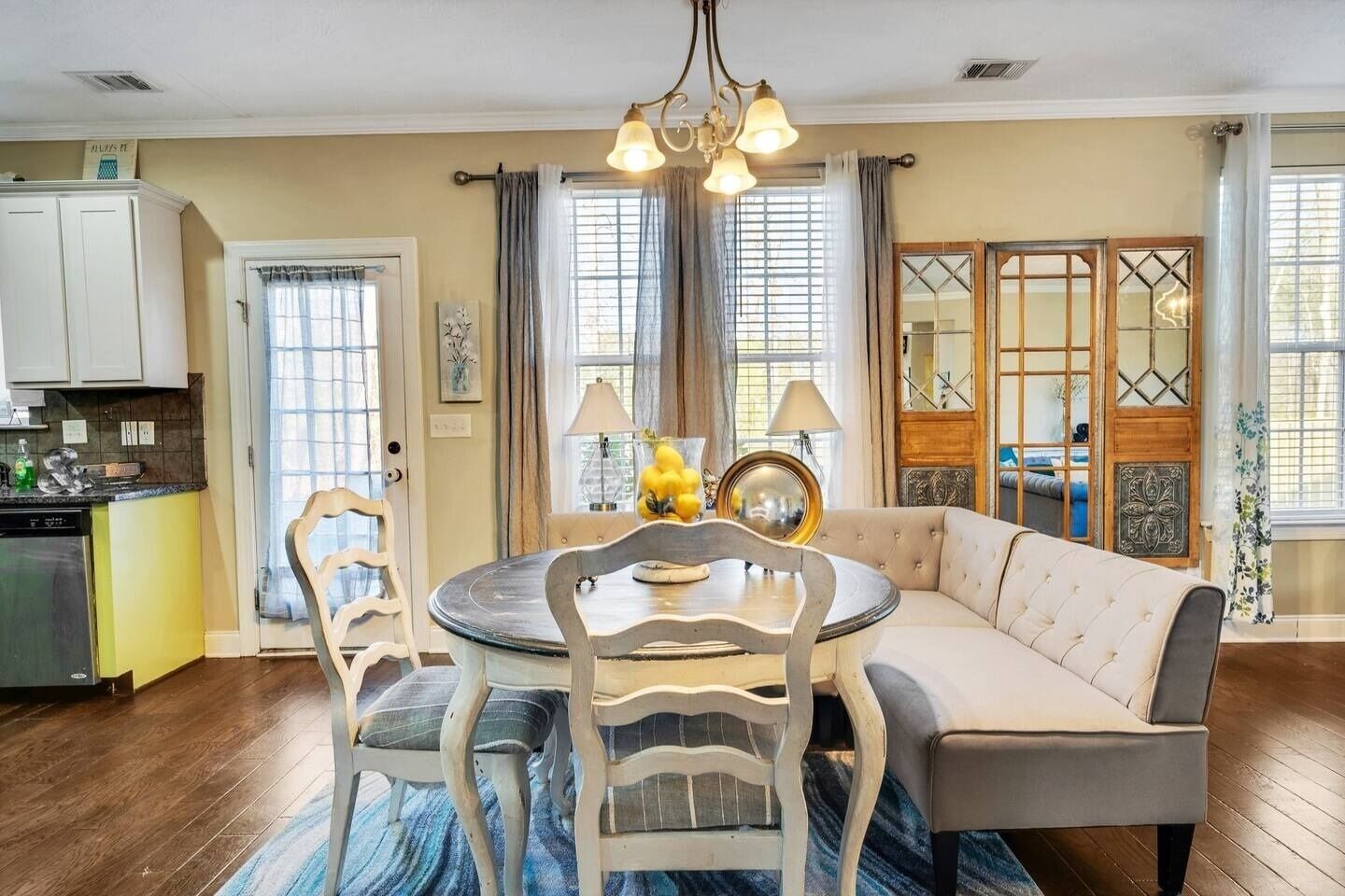 Luxe Private Getaway Near the Heart of Augusta! Enjoy the very best of Augusta from the comfort & convenience of this luxury private retreat! Just minutes from Augusta National Golf Club and all of the shops, restaurants & attractions found in historic downtown Augusta. Take a short drive to enjoy all of the arts, entertainment & outdoor activities found at the Riverwalk or plan a day trip to explore nearby Savannah, Charleston or Downtown Atlanta. The perfect spot for family & friends, you will love this beautiful private getaway in Augusta!The spaceRecently upgraded and beautifully furnished throughout, this private four bedroom home features an open floorplan with gourmet kitchen, elegant dining room, dedicated workspace, two seating areas and living room with 55" Smart HDTV. Fully appointed top-of-the-line kitchen with appliances, including stove, oven, refrigerator, dishwasher, microwave and large island with counter-height seating.Bedrooms are comfortably furnished with beautiful crisp new linens, pillows and bed coverings. Spacious master bedroom includes private seating area, fireplace and en suite bathroom. Spacious living room with comfy sofa, Smart HDTV, laundry room, private backyard with patio, free high-speed Wi-Fi, onsite parking and key-less access. Community amenities include pool, children's park and walking trails.Guest accessGuests have full access and complete privacy inside the home and may enjoy full use of outdoor amenities as well. Instructions for access, check-in, checkout and directions to the home are provided in the house manual on VRBO. When checking out, please be sure all windows and doors are locked prior to your departure.Other things to noteIf you have any questions about the property, or if you need any additional information regarding calendar availability, directions, parking, access or check-in/checkout procedures please contact us directly using the message center on VRBO.