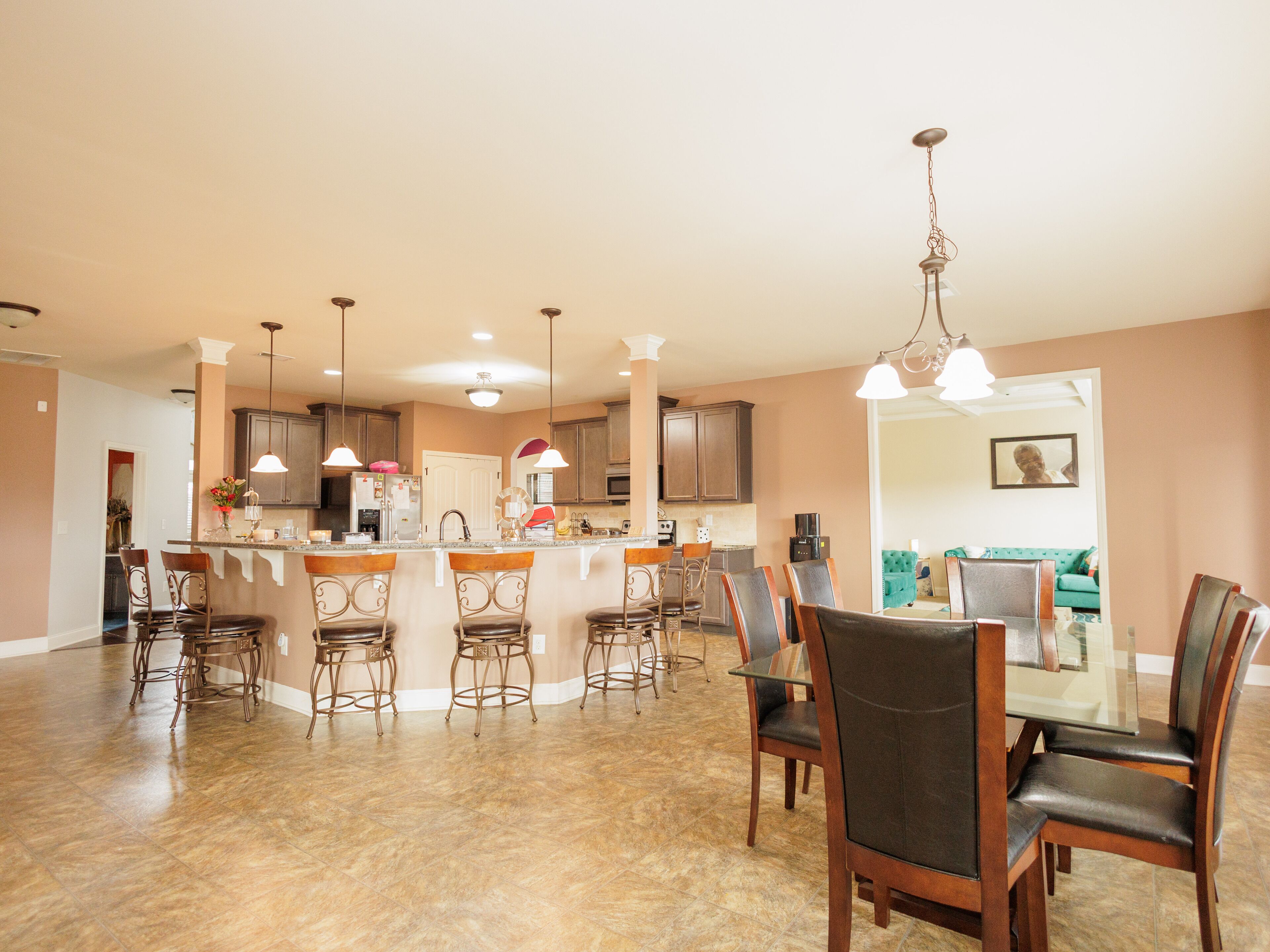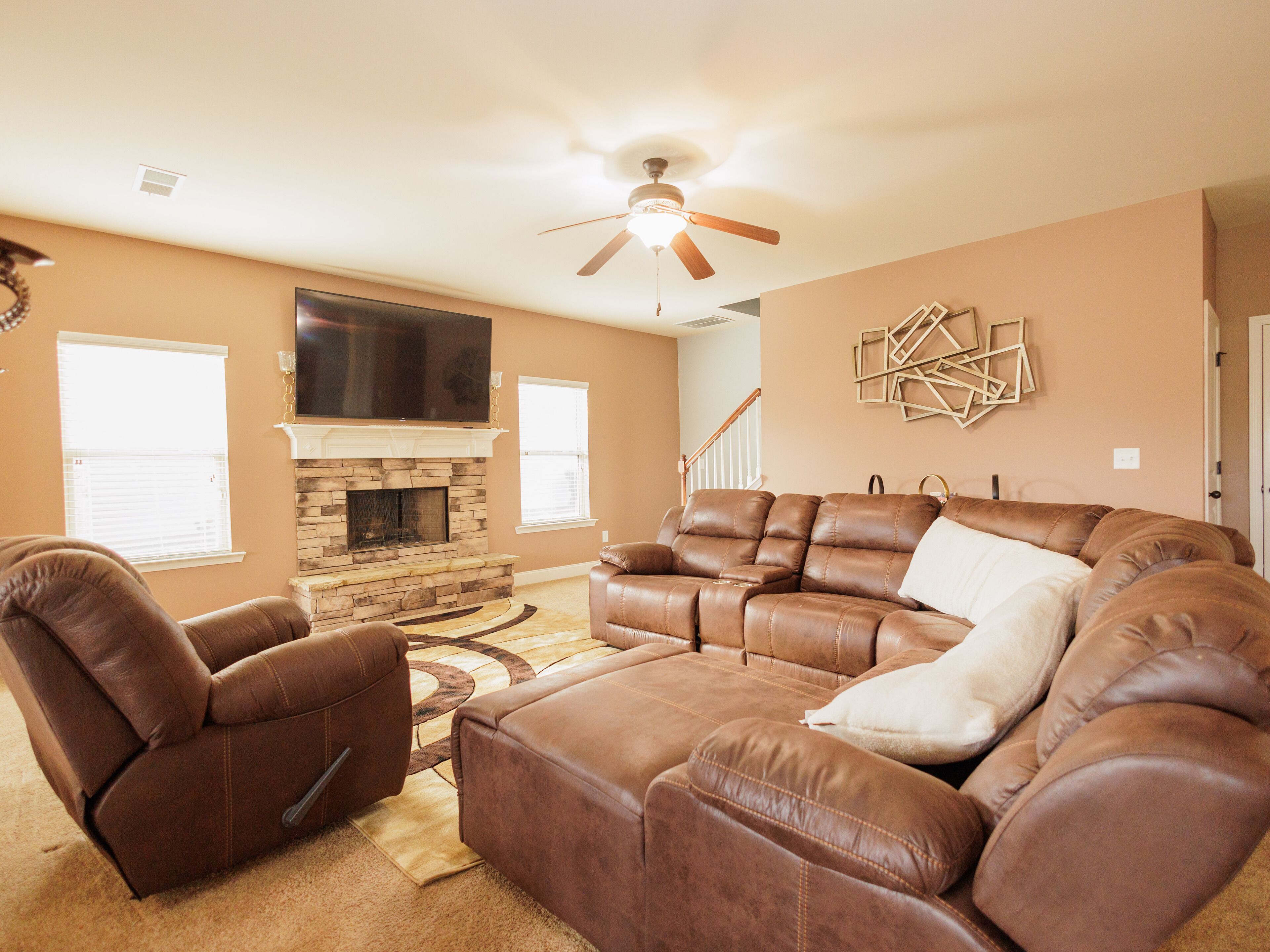 Indulge in luxury and comfort during your stay for the Masters! Masters Rental! Available March 28th- April 11th located in Mccoy Creek just 5 miles to Fort. Gordon. The original 3 Story home featuring oversized rooms and a guest bedroom w/ full bath on main level! Open floor plan with enriched coffered ceilings in formal dining. Beautiful great room boasts of a stacked stone fireplace. There are large bedrooms with full baths throughout and a huge game room on third floor. There is also availability for two additional people on the sleeper sofa in the game room. Television sizes are as follows: the first-floor guest has a 50" Roku TV, Family Room has a 75" TV, the Master bedroom has a 65", bedroom one has a 50" TV, bedroom two has a 50" TV, and entertainment room/sleeping area has a 75". Large washer and dryer available for use. Charcoal grill will be available with plenty outdoor seating area available.