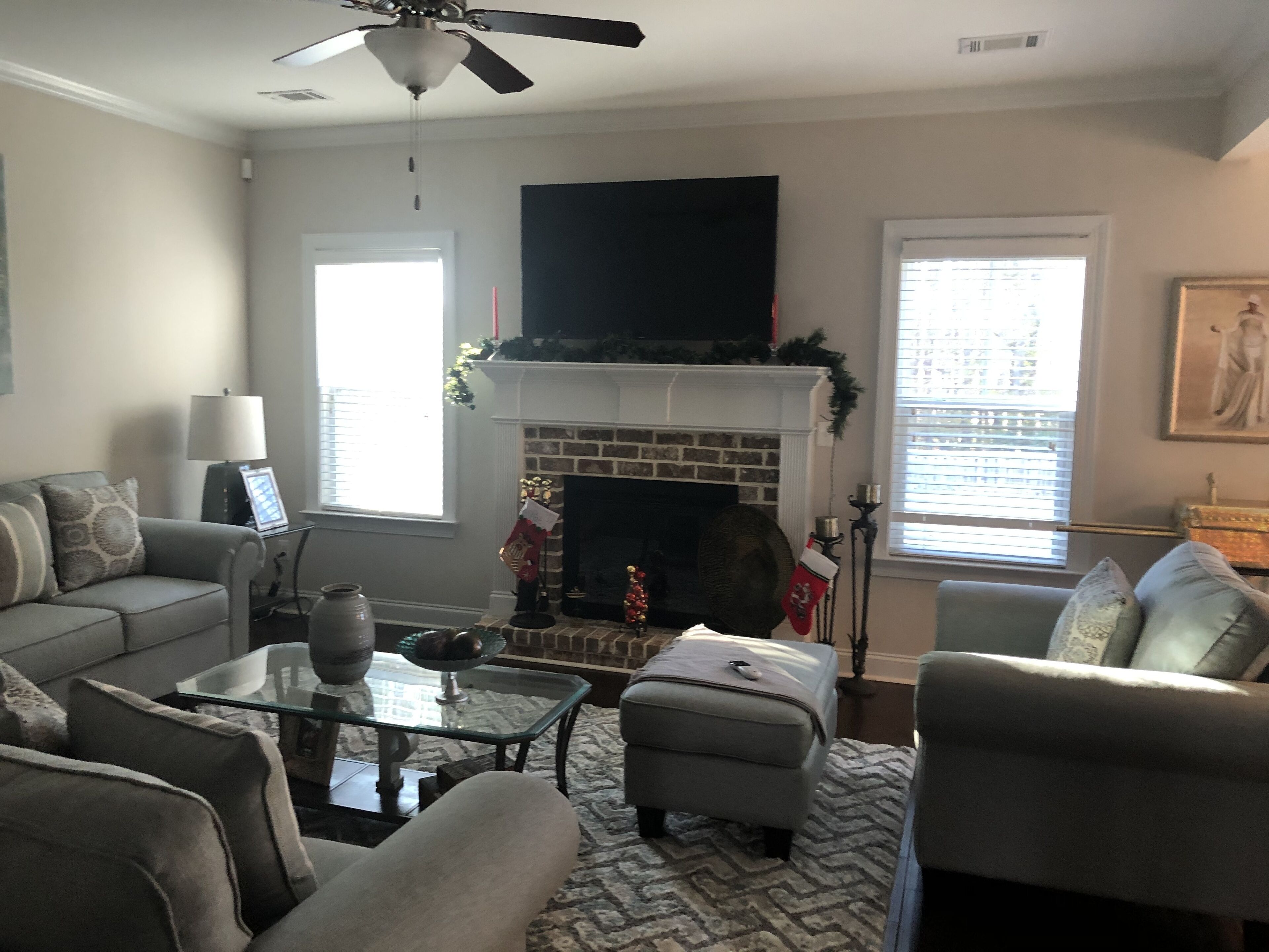 Beautiful 5 bdrm, 3 bthrm, centrally located home Beautifully decorated 5 bedroom, 3 full bathroom home. 3100 sq feet. Extra large Master bedroom suite has a full bathroom with garden tub, separate walk in shower, double vanity. 3 additional bedrooms, 5th bedroom is a family room, living room, dinning room, laundry room w/washer dryer. Patio w/charcoal burning grill. Brand new fire pit in the backyard….great for roasting marshmallows or sitting outside with a glass of wine. Each bathroom is stocked with new towels and washcloths. Swimming pool and walking trails….perfect home away from home. Toilet paper, paper towels, dishwashing liquid, trash bags and coffee are provided. For those who’d like to take an afternoon golf cart ride, a golf cart is available for your enjoyment.The only thing missing is you.