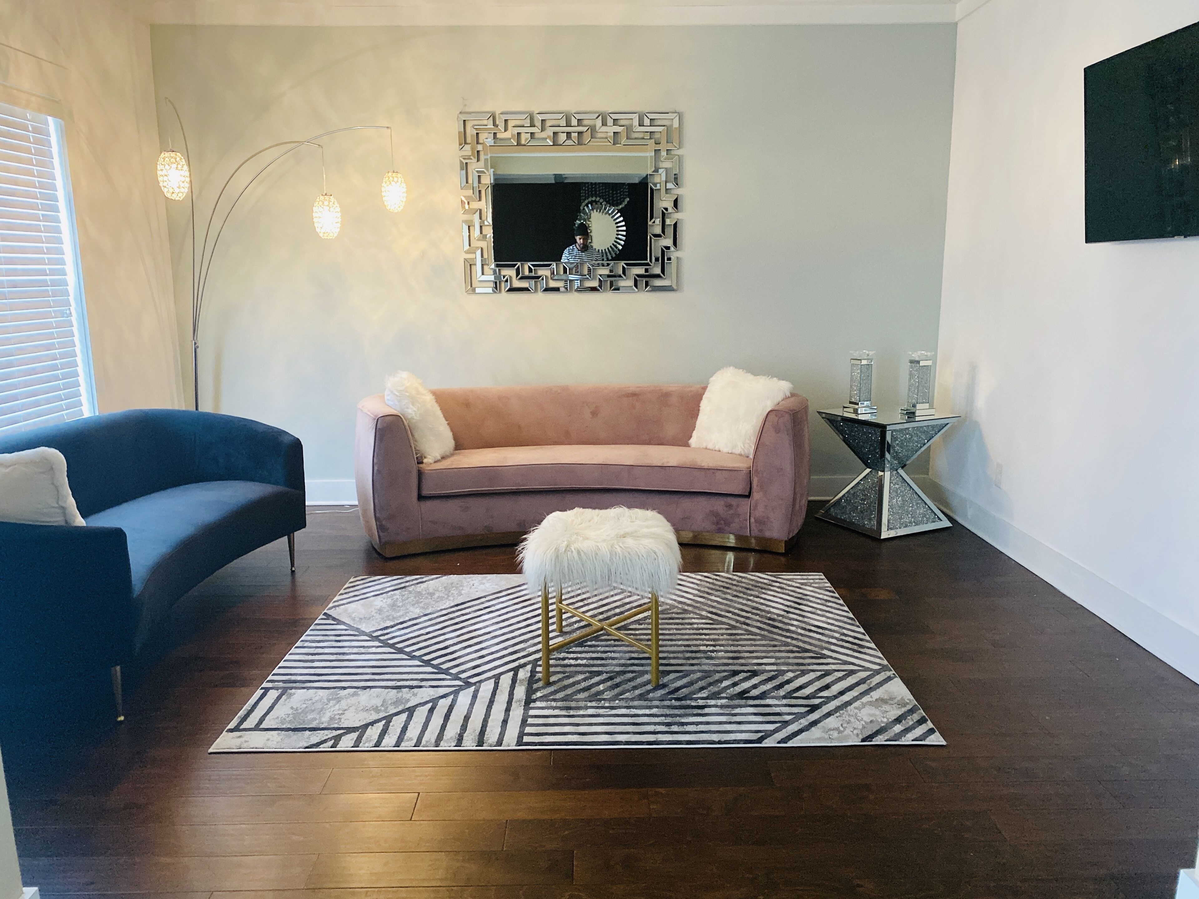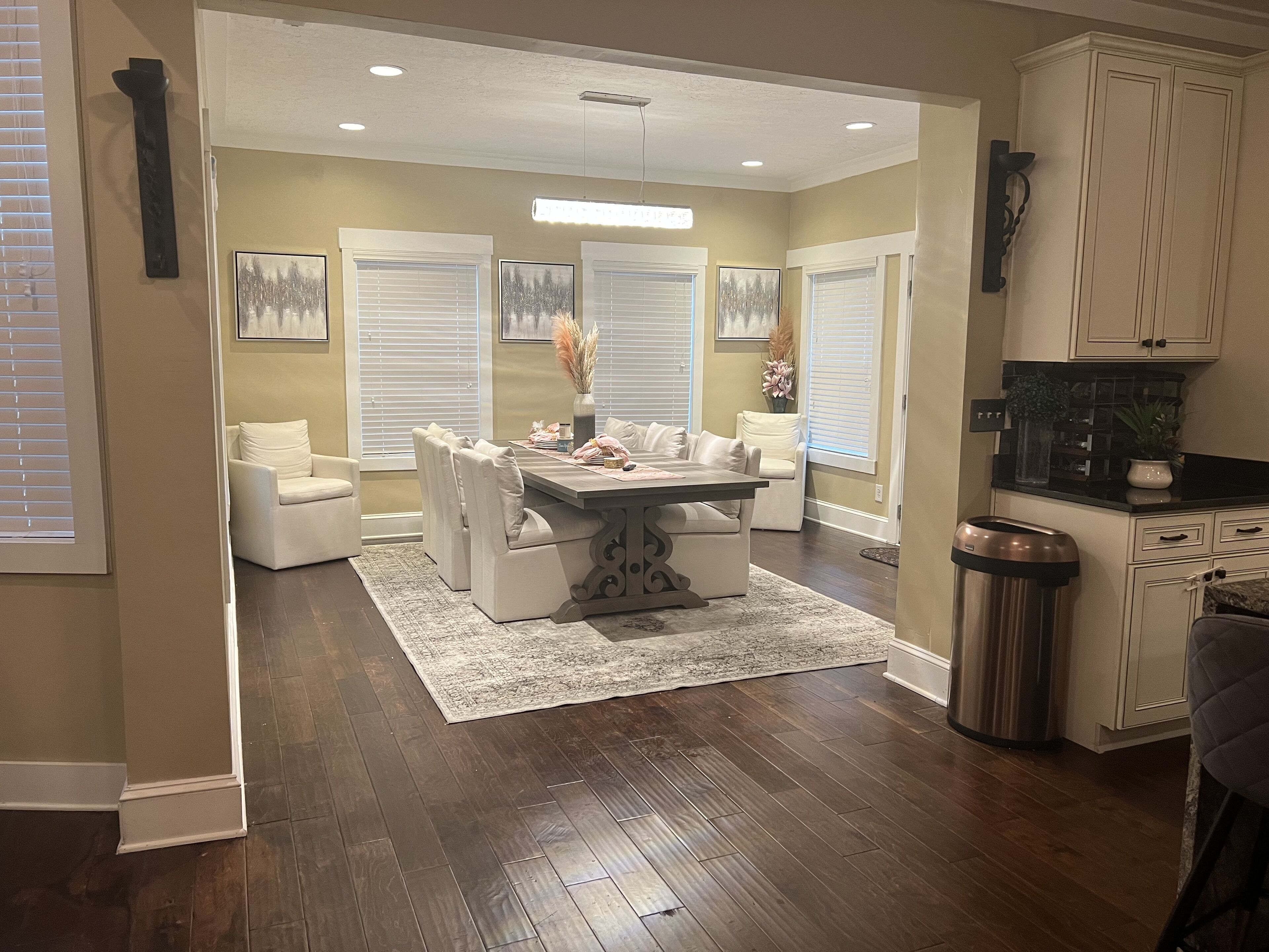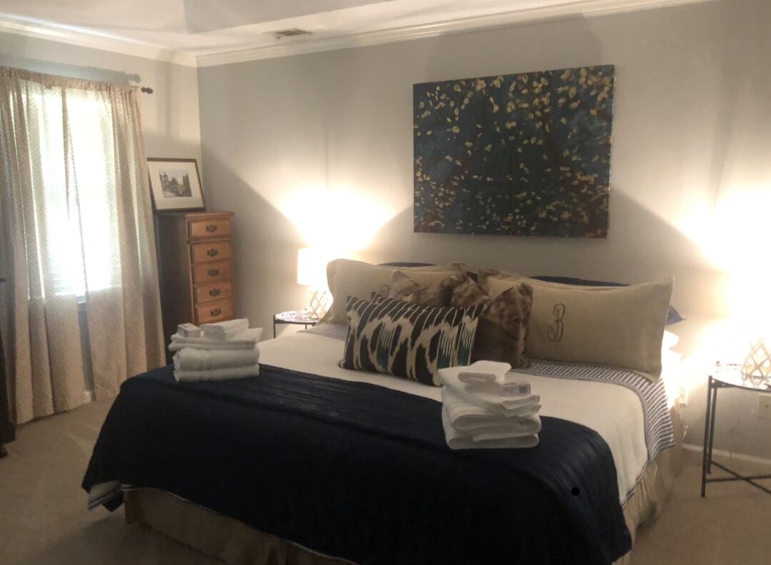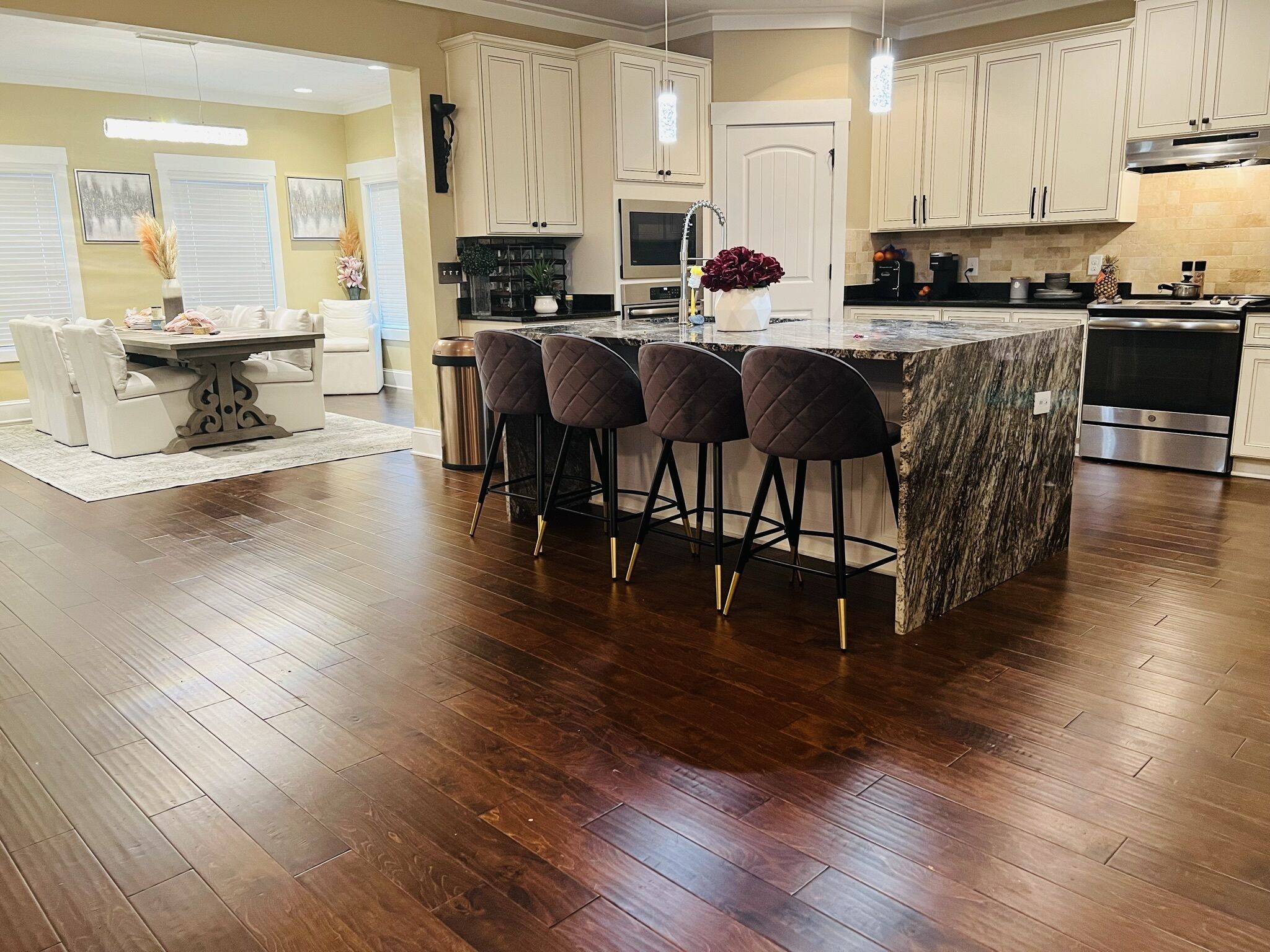 Top Rental 4000 Sqf oasis Newly constructed home. 5 bedrooms 4 full bathrooms. Each bedroom has its own personal full bathroom. The 5th bedroom has a jack and jill bathroom. Stainless steel appliances. Formal dining area with custom Versace wallpaper. Hardwood flooring on lower level, plush carpet on second level. Master bath has his & hers sinks. Private toilet, large walk in shower and separate tub to soak in. Outdoor grill and back patio with privacy fence.