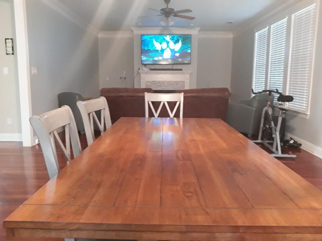 Perfect home for you Large Family Corporate host party or group of golf friends This large home is located in a very safe neighborhood on a quiet cul-de-sac. The house is laid out with the living quarters(cooking, dining, sitting, and guest bed and bath) downstairs and the family room and bedrooms upstairs. It is also close to the stores, great food and freeway which is only 13 miles from course....