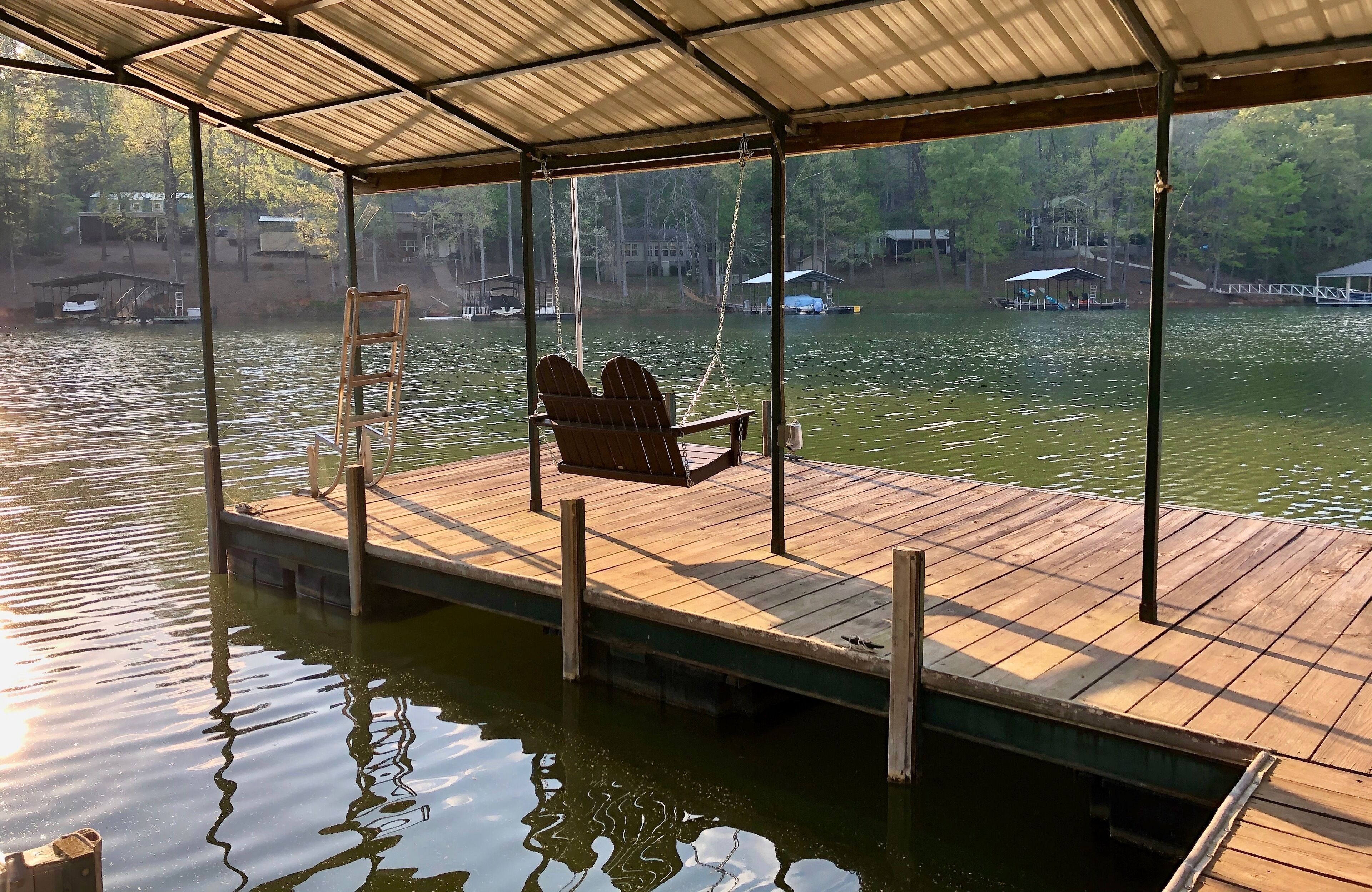 Make memories at the lake! Memories are made at Lake Hartwell. Come enjoy our home on a quiet cove in the Gumlog community just 10 minutes off of I-85 @ exit 173 in GA. Our fully furnished 3 BR/2 bath home sleeps 8 and boasts a large deck spanning the entire length of the home, looking out onto the lake. There is ample space for grilling on the gas grill, relaxing, and enjoying family and friends. There is a gentle sloping yard for outdoor games with a long meandering footpath that slopes down to the covered dock, leading to hours of lake activities. The driveway provides plenty of parking.Our dock will accommodate your boat and the Franklin County Boat ramp is just 1 mile away. Harbor Light Marina is just a 7 mile drive away where boat rental is available. Close by are the quaint towns of historic Lavonia and Hartwell where you will find a variety of shops and restaurants. Other nearby activities include Tugaloo State Park, just a 9 min drive or a short paddle across the cove. Lake Hartwell State Park is just across the SC state line and a 17 min ride. Tallulah Falls and North GA hiking trails are within a 1 hour drive of our home. We are just about 30 minutes from shopping at Tangier Outlet Mall(south) or Anderson, SC(north), and 1 hour from the up and coming town of Greenville where there are many great restaurants and shops. But best of all, if you are coming to the area for a Clemson football game, graduation, or parent’s weekend, this would be a great place to put your feet up. We have a large TV in the main room with access to our YouTube TV streaming service, as well as the TV in the master, for watching the games. It is a 34 mile/42 minute drive to Clemson if you are headed to the Campus. This is a pet free/smoke free home and we ask that there be no large parties.