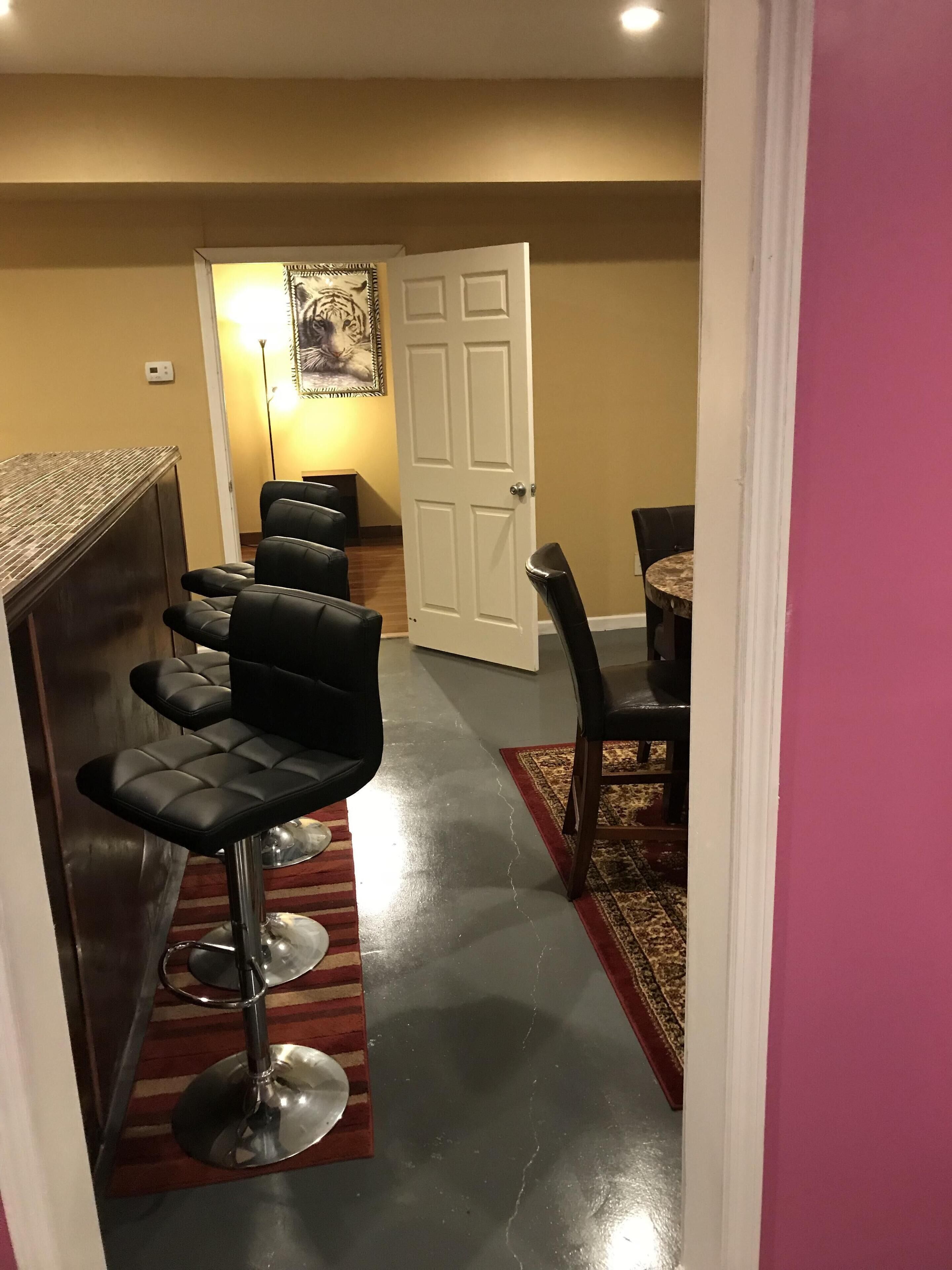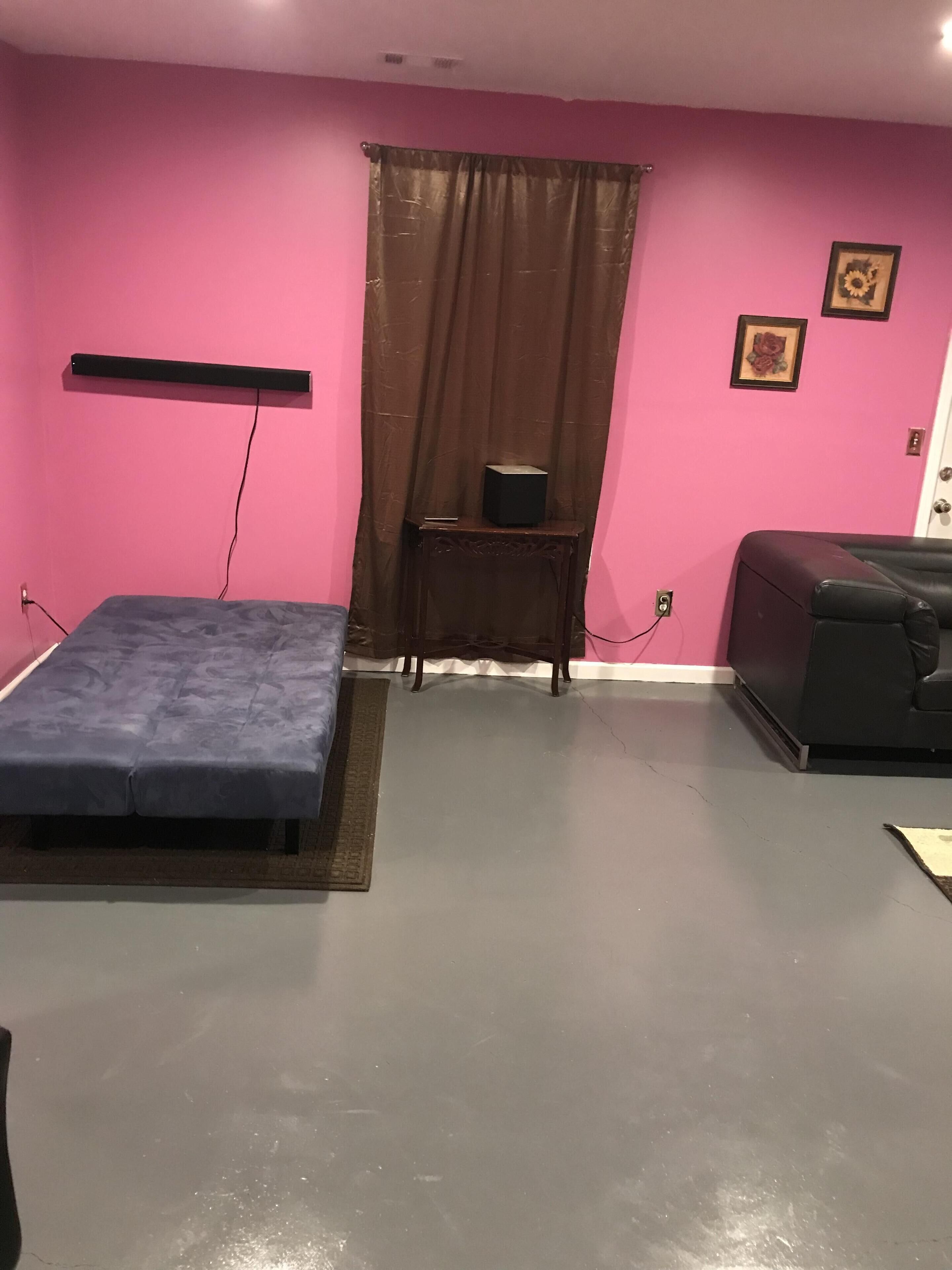 Large Basement Apartment Spacious basement apt in metro Atlanta area, oversized living room area, bedroom, bathroom, bar area/dining, and gym room. Bedroom has a queen and twin bed. Living room area has a futon and 2 couches, tv, and personal desk.Only 15 min from Stone Mountain and 30 min from downtown Atlanta Close to Interstates, restaurants, and shopping.Enter through the basements private do...