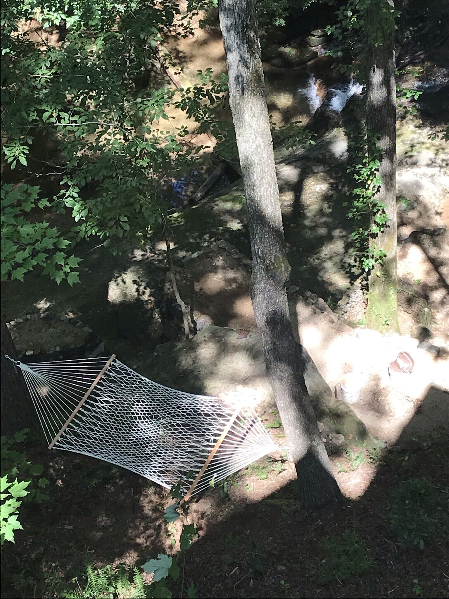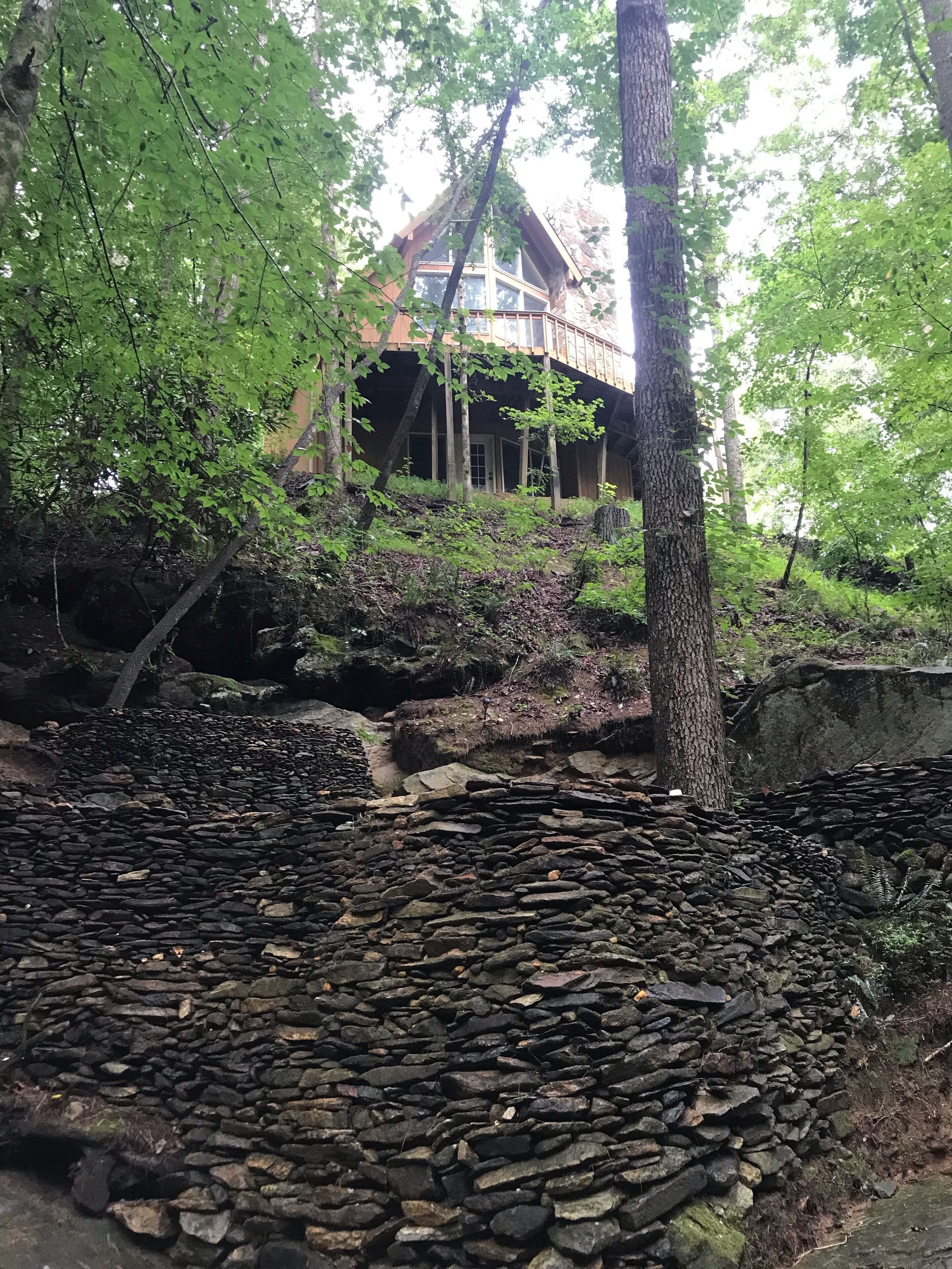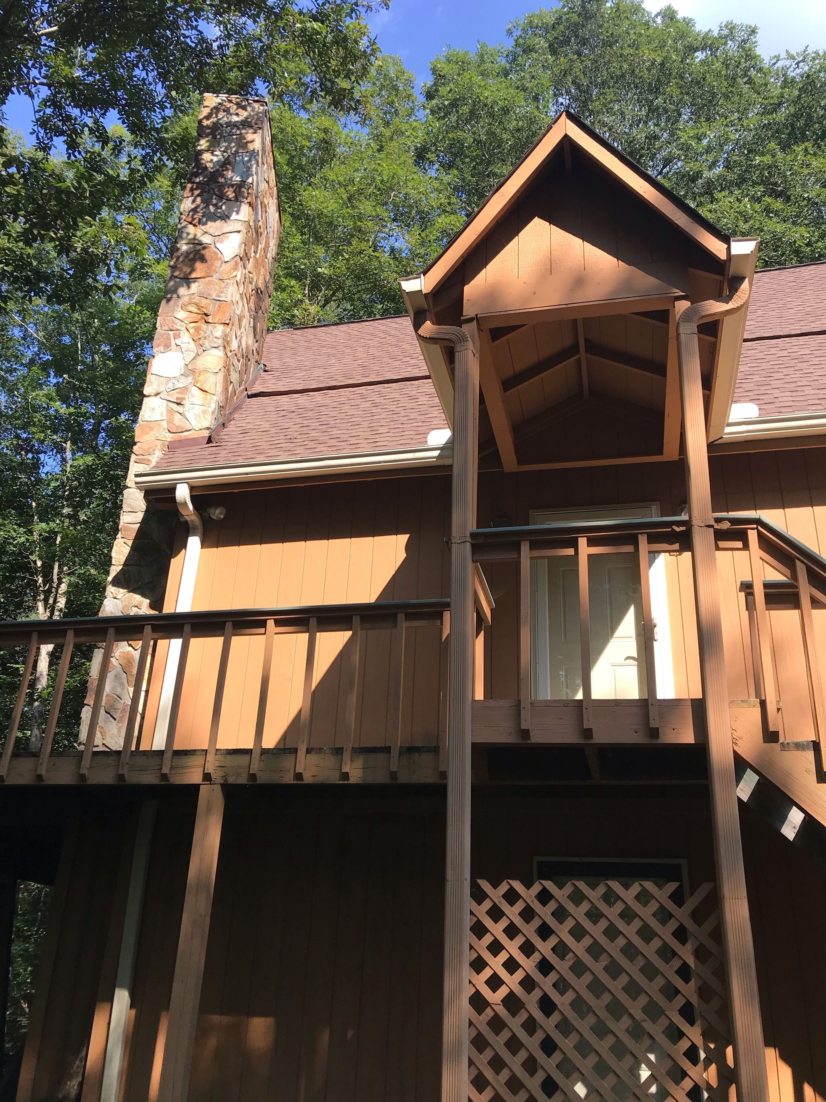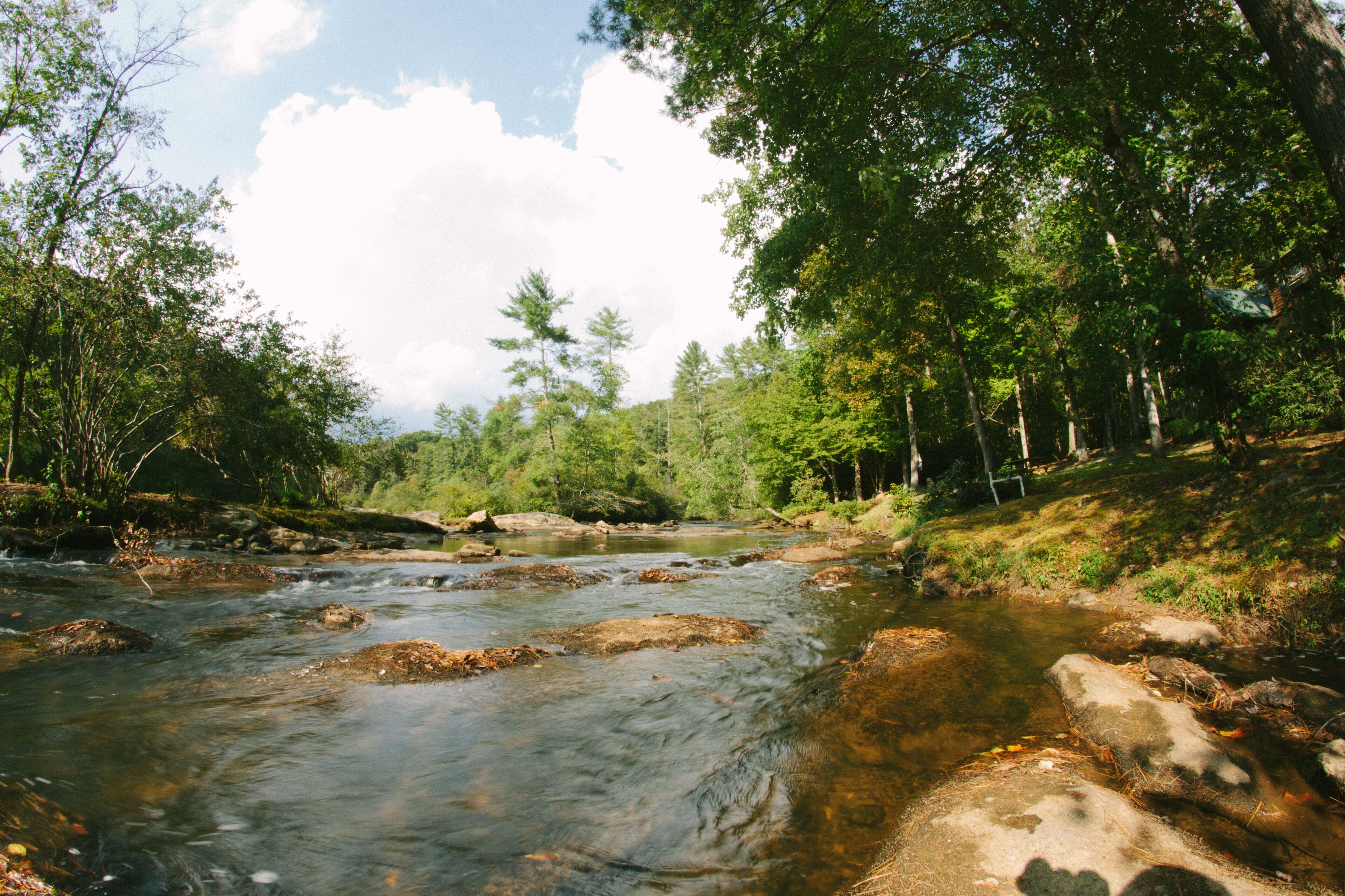 Discount July 27-29!! River, waterfall, hot tub, fire pit, creek, dogs OK You'll think you've died and gone to heaven! This river house is located on a wide stretch of the Chattahoochee River near Helen, and is anything but ordinary. Relax on the back deck to the sounds of the rushing creek waterfall rapids just 50 feet below the house. The house sleeps 8 people in beds. Bring your own inner tubes so you can enjoy some river fun and tube down the river back to the house! This unique section of river & creek with waterfall is your own private water amusement park: enjoy swimming in the river, sunning and relaxing on the sandbar, rock shoals, and island in the middle of the river, tubing / kayaking / rafting directly behind the house, playing on the natural rock waterslides in the creek, and exploring the rock shoals of the river. The fishing is good in the river for shoal bass, striped bass, catfish, and bream. The kids will love climbing trees and playing on the property, and won't even want to watch Netflix or play video games. Your stress will melt away as you catnap in the hammock by the waterfall. Take a nearby hike up to the top of Yonah Mountain then come back and soak your muscles in the hot tub and listening to the waterfall cascades. The back porch deck overlooks the waterfall, so morning coffee on the deck is lovely. Flat Screen HD TV's have Smart TV Roku built-in so you can log into your Netflix account and enjoy movies and wine by the living room stacked stone fireplace. The grill master can chose between a Weber charcoal grill on the deck or the other charcoal grill down by the creek waterfall, or use the gas grill on the upper deck. The picnic table next to the river makes the perfect place for a Sunday afternoon family lunch. Your kids will never forget the family nights spent around the fire pit with Adirondack chairs telling ghost stories, catching fireflies, and roasting marshmallows. Sit on a boulder by the river, drink a cherry Coke, and you'll feel like you're back in Mayberry, USA. Nature lovers should keep an eye out for the wild deer and Canadian geese in the backyard during sunset happy hour with wine. This property is very private and secluded on 5 acres of wooded property, so you'll have no problem decompressing from the stress of city life. Enjoy nature walks through the woods on the property, or walk down the gravel country road. The interior of the house is decorated with french country furniture and antique motif. Whatever your age or interests, there is something for everyone at this extraordinary river & creek retreat. This is the ultimate river & creek vacation experience!!! This is a sister & neighboring property to "White Rapids Retreat", so if you need more bedrooms for a larger group, gathering, or reunion, then you can also rent VRBO property #199652.. the house is pet friendly, and we allow you to bring up to 3 dogs, but you must disclose the number of pets at the time of booking and pay a separate pet fee for each animal.Keywords: cabin river Helen Georgia Chattahoochee creek
