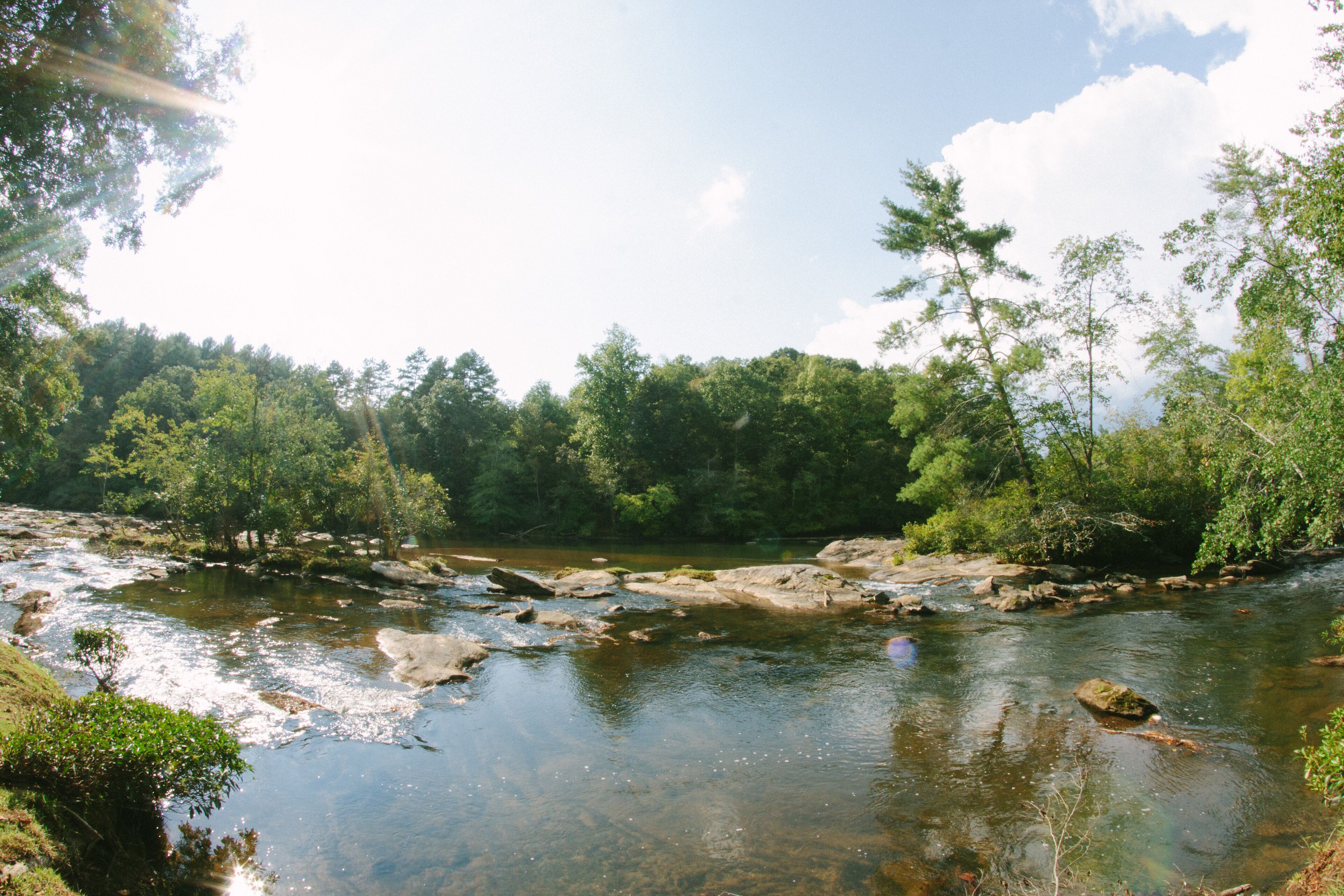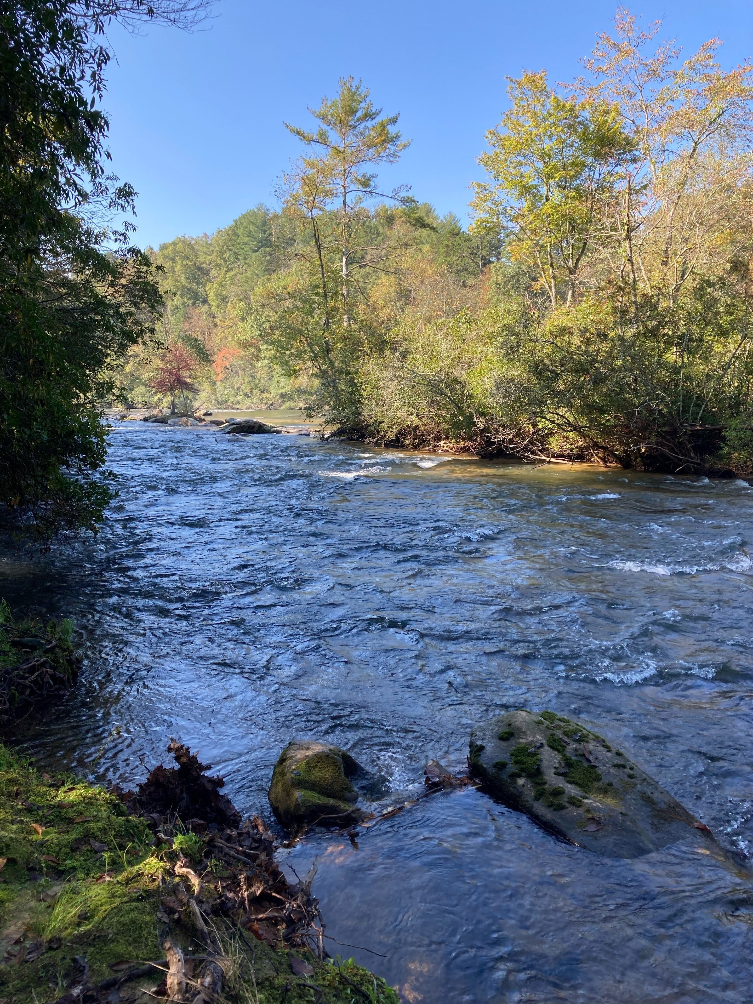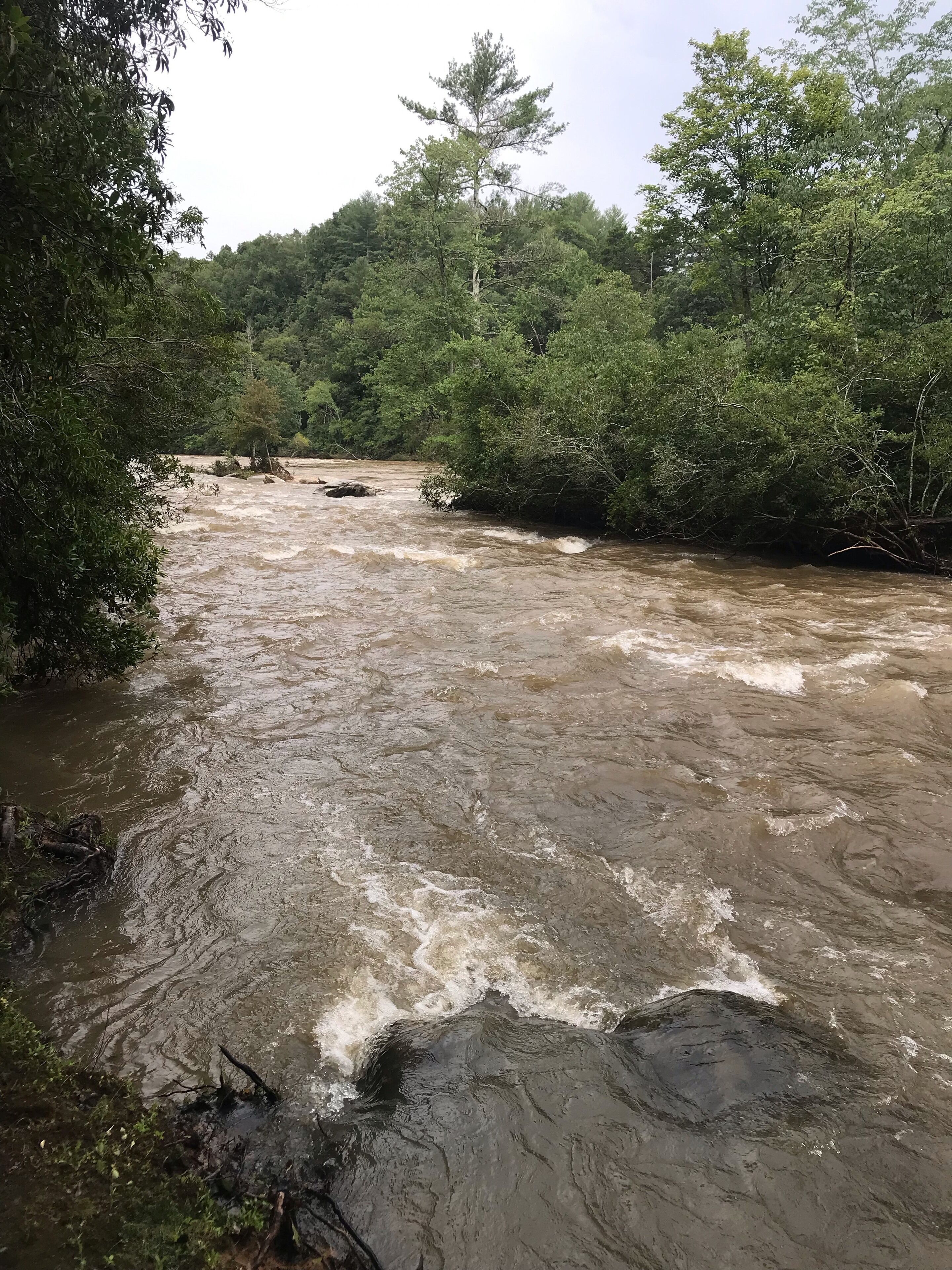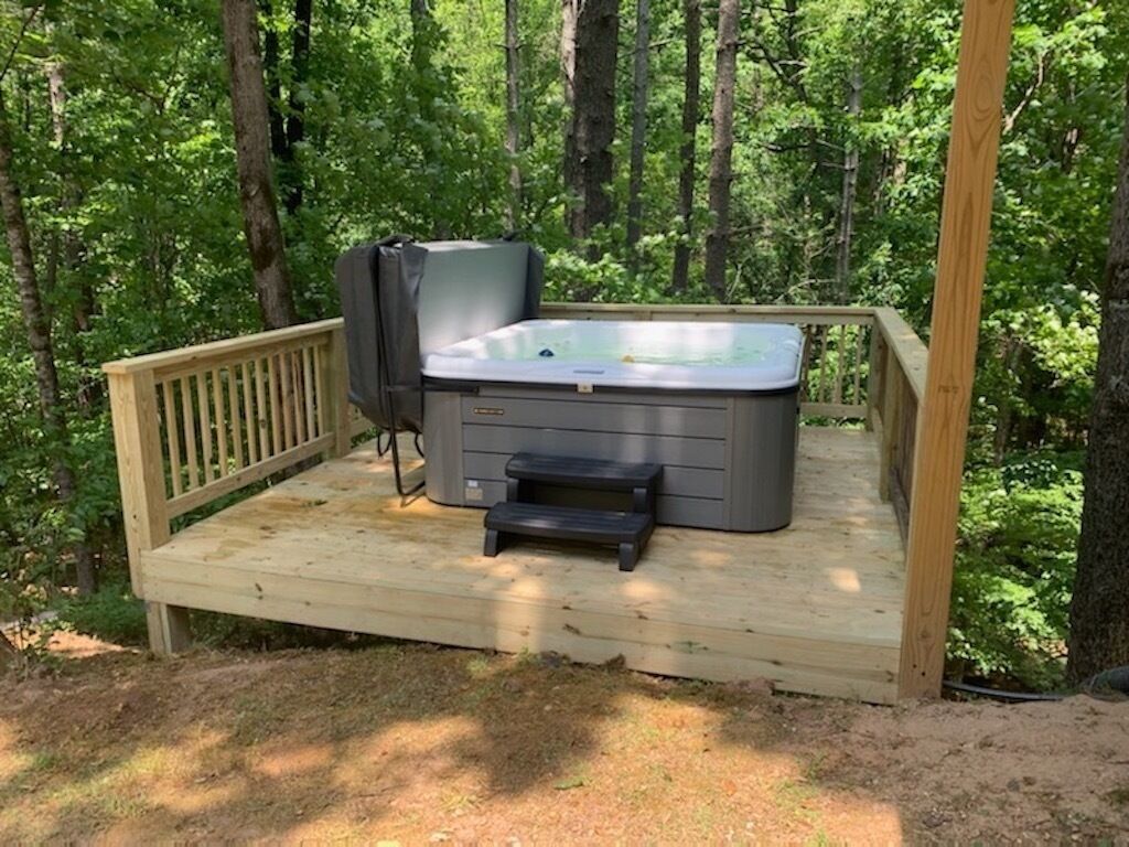 Discount July 27-29!! River, waterfall, hot tub, fire pit, creek, dogs OK You'll think you've died and gone to heaven! This river house is located on a wide stretch of the Chattahoochee River near Helen, and is anything but ordinary. Relax on the back deck to the sounds of the rushing creek waterfall rapids just 50 feet below the house. The house sleeps 8 people in beds. Bring your own inner tubes so you can enjoy some river fun and tube down the river back to the house! This unique section of river & creek with waterfall is your own private water amusement park: enjoy swimming in the river, sunning and relaxing on the sandbar, rock shoals, and island in the middle of the river, tubing / kayaking / rafting directly behind the house, playing on the natural rock waterslides in the creek, and exploring the rock shoals of the river. The fishing is good in the river for shoal bass, striped bass, catfish, and bream. The kids will love climbing trees and playing on the property, and won't even want to watch Netflix or play video games. Your stress will melt away as you catnap in the hammock by the waterfall. Take a nearby hike up to the top of Yonah Mountain then come back and soak your muscles in the hot tub and listening to the waterfall cascades. The back porch deck overlooks the waterfall, so morning coffee on the deck is lovely. Flat Screen HD TV's have Smart TV Roku built-in so you can log into your Netflix account and enjoy movies and wine by the living room stacked stone fireplace. The grill master can chose between a Weber charcoal grill on the deck or the other charcoal grill down by the creek waterfall, or use the gas grill on the upper deck. The picnic table next to the river makes the perfect place for a Sunday afternoon family lunch. Your kids will never forget the family nights spent around the fire pit with Adirondack chairs telling ghost stories, catching fireflies, and roasting marshmallows. Sit on a boulder by the river, drink a cherry Coke, and you'll feel like you're back in Mayberry, USA. Nature lovers should keep an eye out for the wild deer and Canadian geese in the backyard during sunset happy hour with wine. This property is very private and secluded on 5 acres of wooded property, so you'll have no problem decompressing from the stress of city life. Enjoy nature walks through the woods on the property, or walk down the gravel country road. The interior of the house is decorated with french country furniture and antique motif. Whatever your age or interests, there is something for everyone at this extraordinary river & creek retreat. This is the ultimate river & creek vacation experience!!! This is a sister & neighboring property to "White Rapids Retreat", so if you need more bedrooms for a larger group, gathering, or reunion, then you can also rent VRBO property #199652.. the house is pet friendly, and we allow you to bring up to 3 dogs, but you must disclose the number of pets at the time of booking and pay a separate pet fee for each animal.Keywords: cabin river Helen Georgia Chattahoochee creek