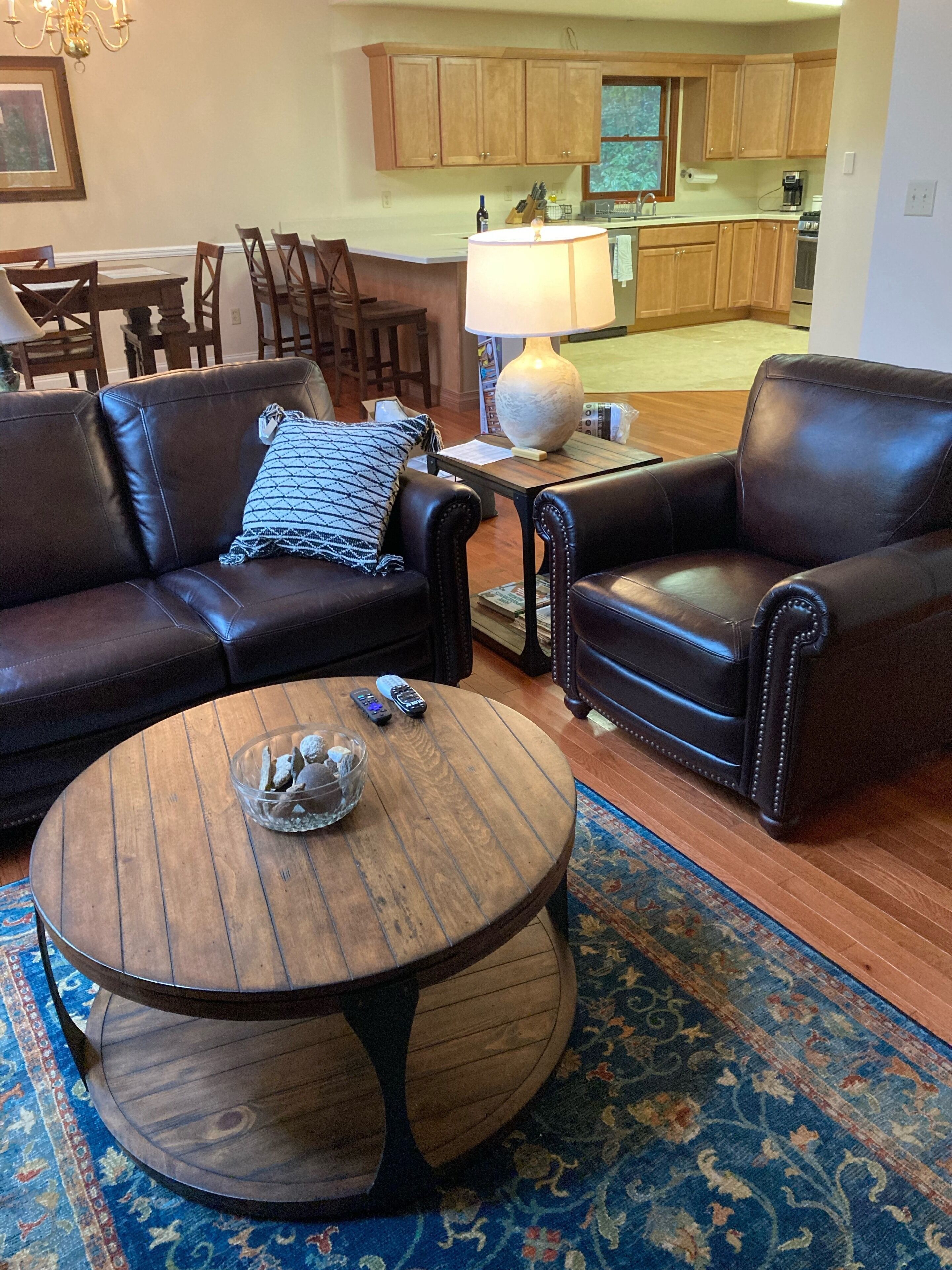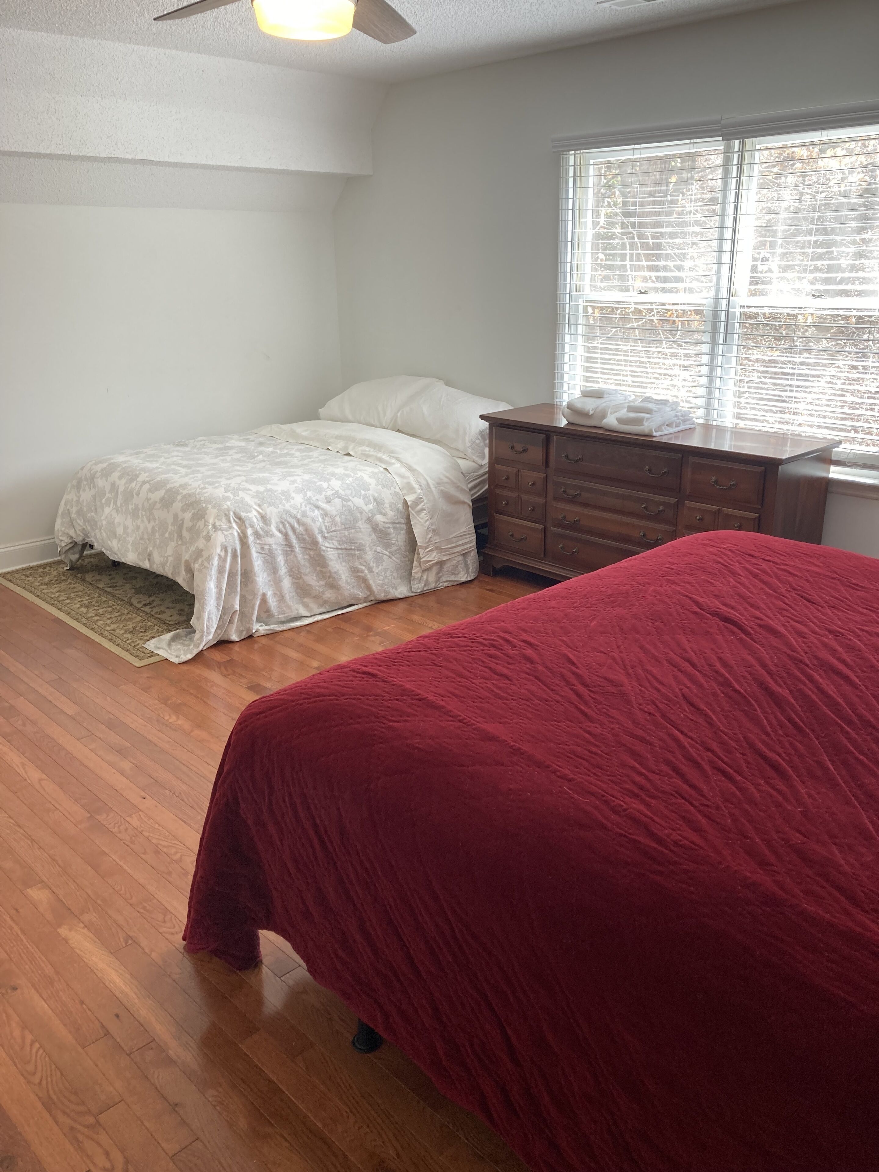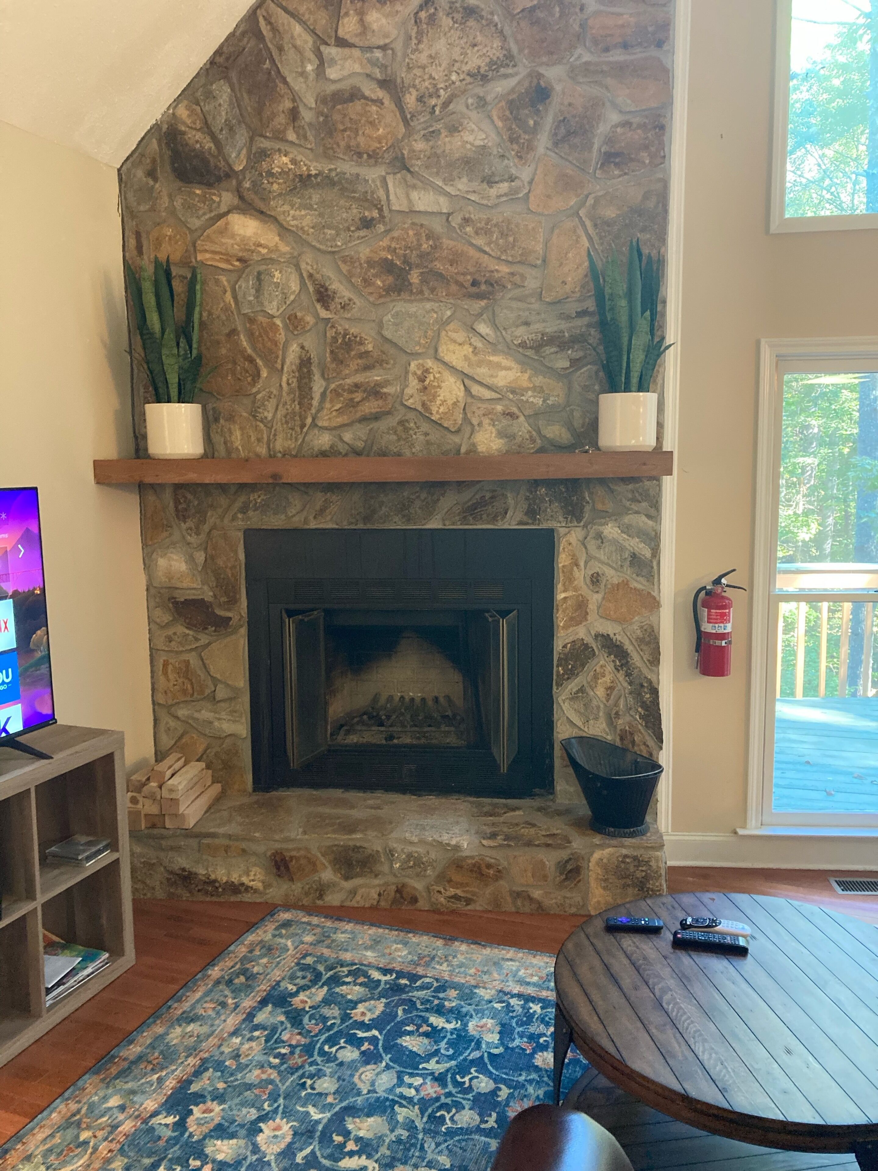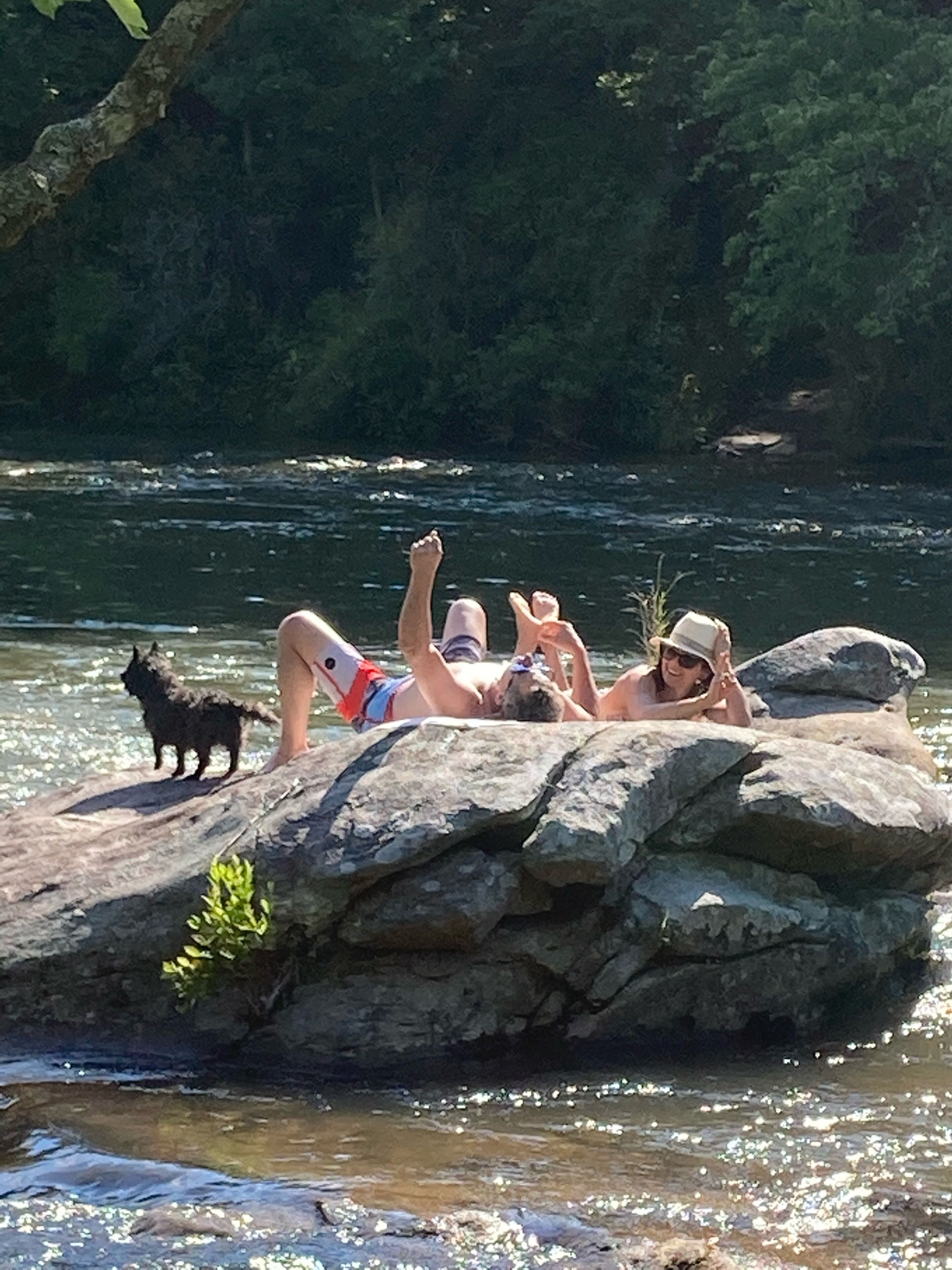 Discount July 27-29!! River, waterfall, hot tub, fire pit, creek, dogs OK You'll think you've died and gone to heaven! This river house is located on a wide stretch of the Chattahoochee River near Helen, and is anything but ordinary. Relax on the back deck to the sounds of the rushing creek waterfall rapids just 50 feet below the house. The house sleeps 8 people in beds. Bring your own inner tubes so you can enjoy some river fun and tube down the river back to the house! This unique section of river & creek with waterfall is your own private water amusement park: enjoy swimming in the river, sunning and relaxing on the sandbar, rock shoals, and island in the middle of the river, tubing / kayaking / rafting directly behind the house, playing on the natural rock waterslides in the creek, and exploring the rock shoals of the river. The fishing is good in the river for shoal bass, striped bass, catfish, and bream. The kids will love climbing trees and playing on the property, and won't even want to watch Netflix or play video games. Your stress will melt away as you catnap in the hammock by the waterfall. Take a nearby hike up to the top of Yonah Mountain then come back and soak your muscles in the hot tub and listening to the waterfall cascades. The back porch deck overlooks the waterfall, so morning coffee on the deck is lovely. Flat Screen HD TV's have Smart TV Roku built-in so you can log into your Netflix account and enjoy movies and wine by the living room stacked stone fireplace. The grill master can chose between a Weber charcoal grill on the deck or the other charcoal grill down by the creek waterfall, or use the gas grill on the upper deck. The picnic table next to the river makes the perfect place for a Sunday afternoon family lunch. Your kids will never forget the family nights spent around the fire pit with Adirondack chairs telling ghost stories, catching fireflies, and roasting marshmallows. Sit on a boulder by the river, drink a cherry Coke, and you'll feel like you're back in Mayberry, USA. Nature lovers should keep an eye out for the wild deer and Canadian geese in the backyard during sunset happy hour with wine. This property is very private and secluded on 5 acres of wooded property, so you'll have no problem decompressing from the stress of city life. Enjoy nature walks through the woods on the property, or walk down the gravel country road. The interior of the house is decorated with french country furniture and antique motif. Whatever your age or interests, there is something for everyone at this extraordinary river & creek retreat. This is the ultimate river & creek vacation experience!!! This is a sister & neighboring property to "White Rapids Retreat", so if you need more bedrooms for a larger group, gathering, or reunion, then you can also rent VRBO property #199652.. the house is pet friendly, and we allow you to bring up to 3 dogs, but you must disclose the number of pets at the time of booking and pay a separate pet fee for each animal.Keywords: cabin river Helen Georgia Chattahoochee creek