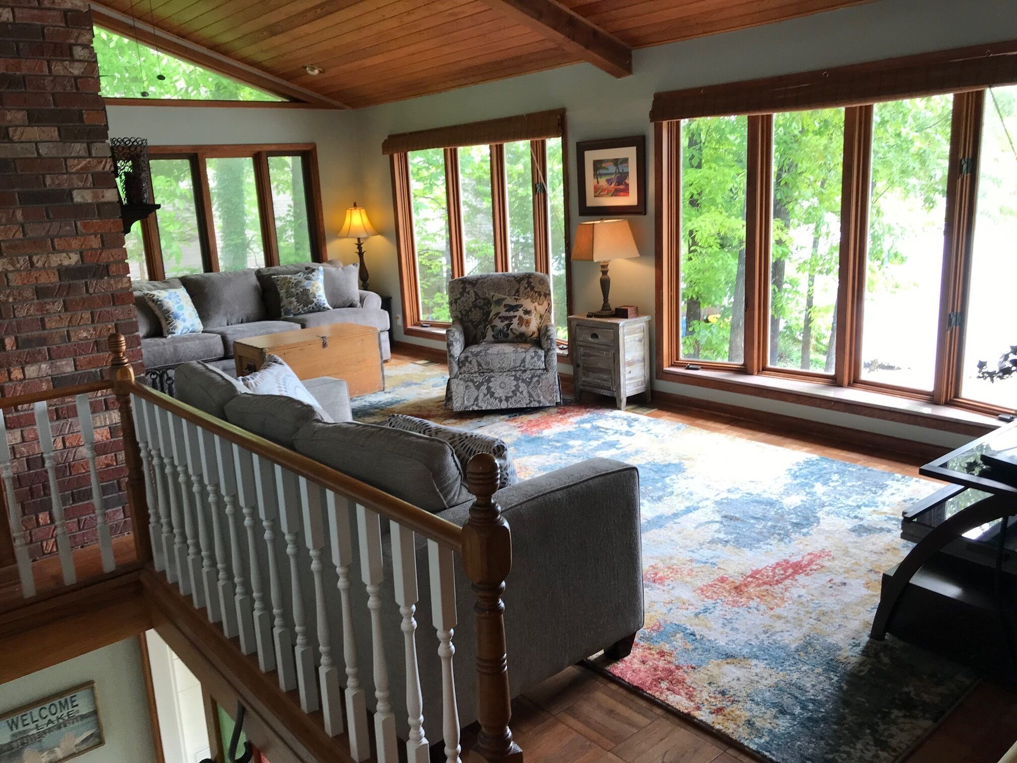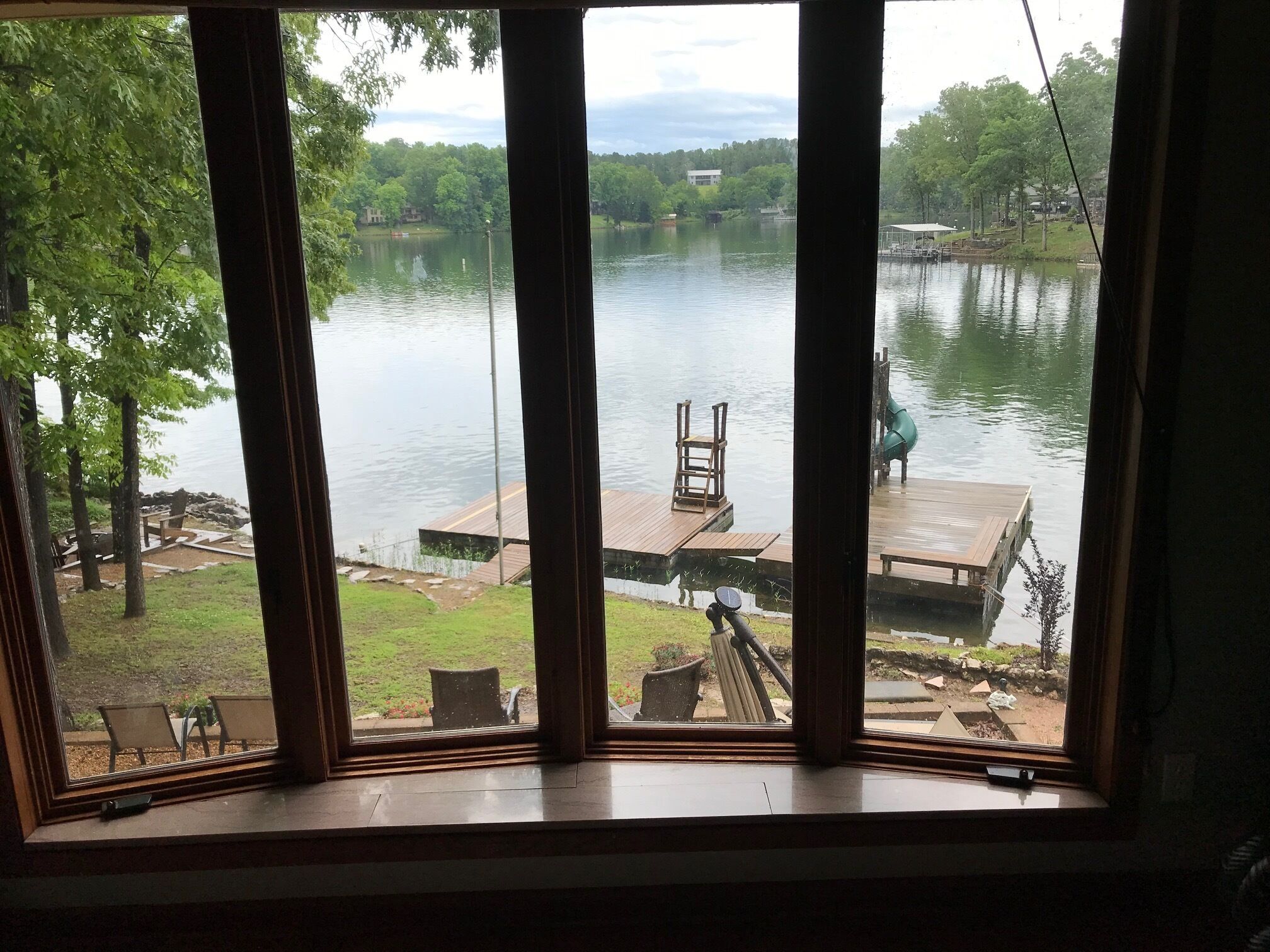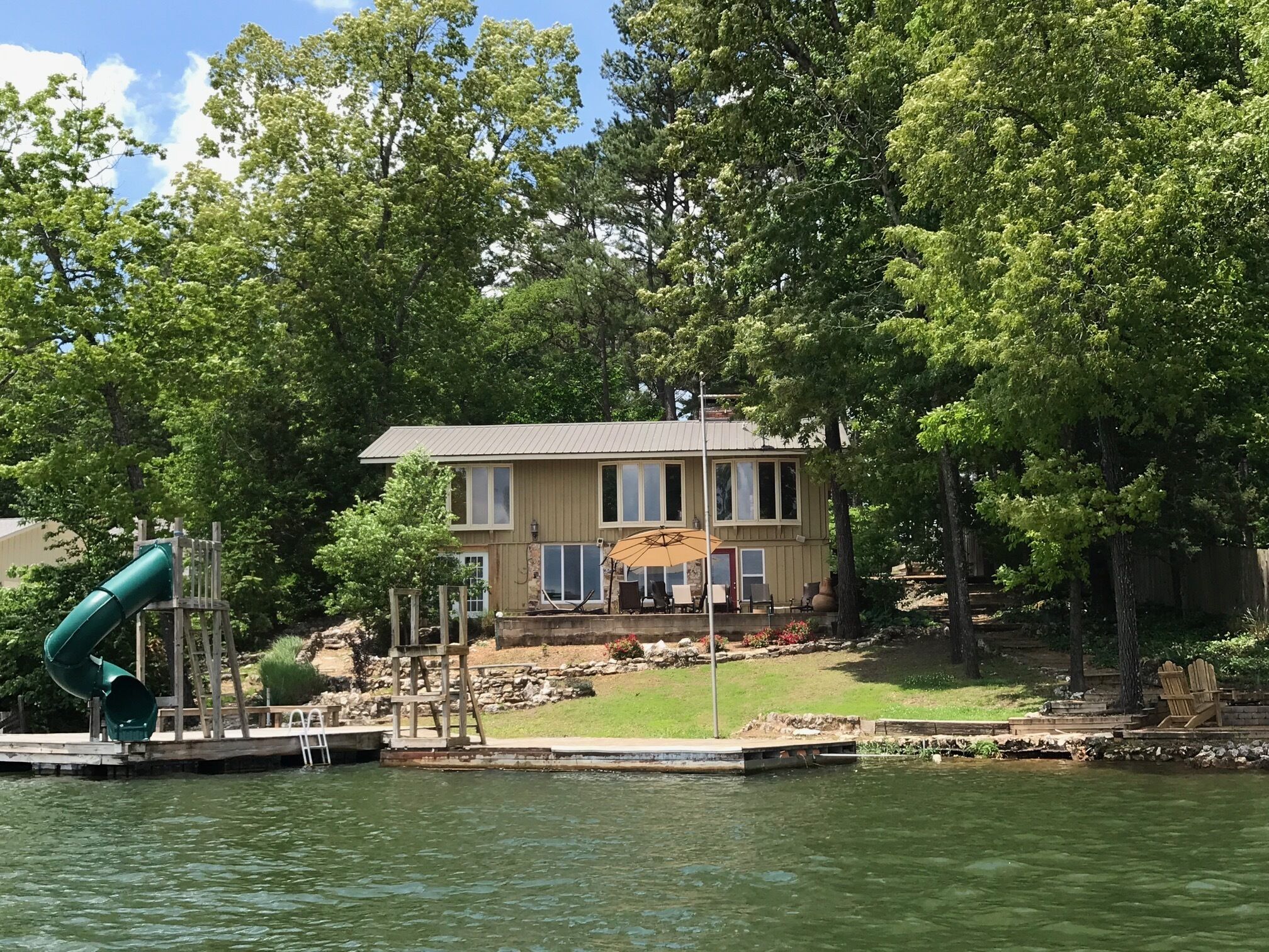 Lakefront family vacation fun!!! This home is special. It was designed to take advantage of the Lake View from the Living Room, dining room, two master bedrooms, game room and bunk room. There are three outdoor areas to enjoy the views and lake from. The patio, fire pit and dock are all built with out door enjoyment in mind. The plan is open and has a lot of glass to enjoy the view. The home is positioned on the water close enough so you can see all the boating action but far enough inside a no wake cove to make swimming safer.