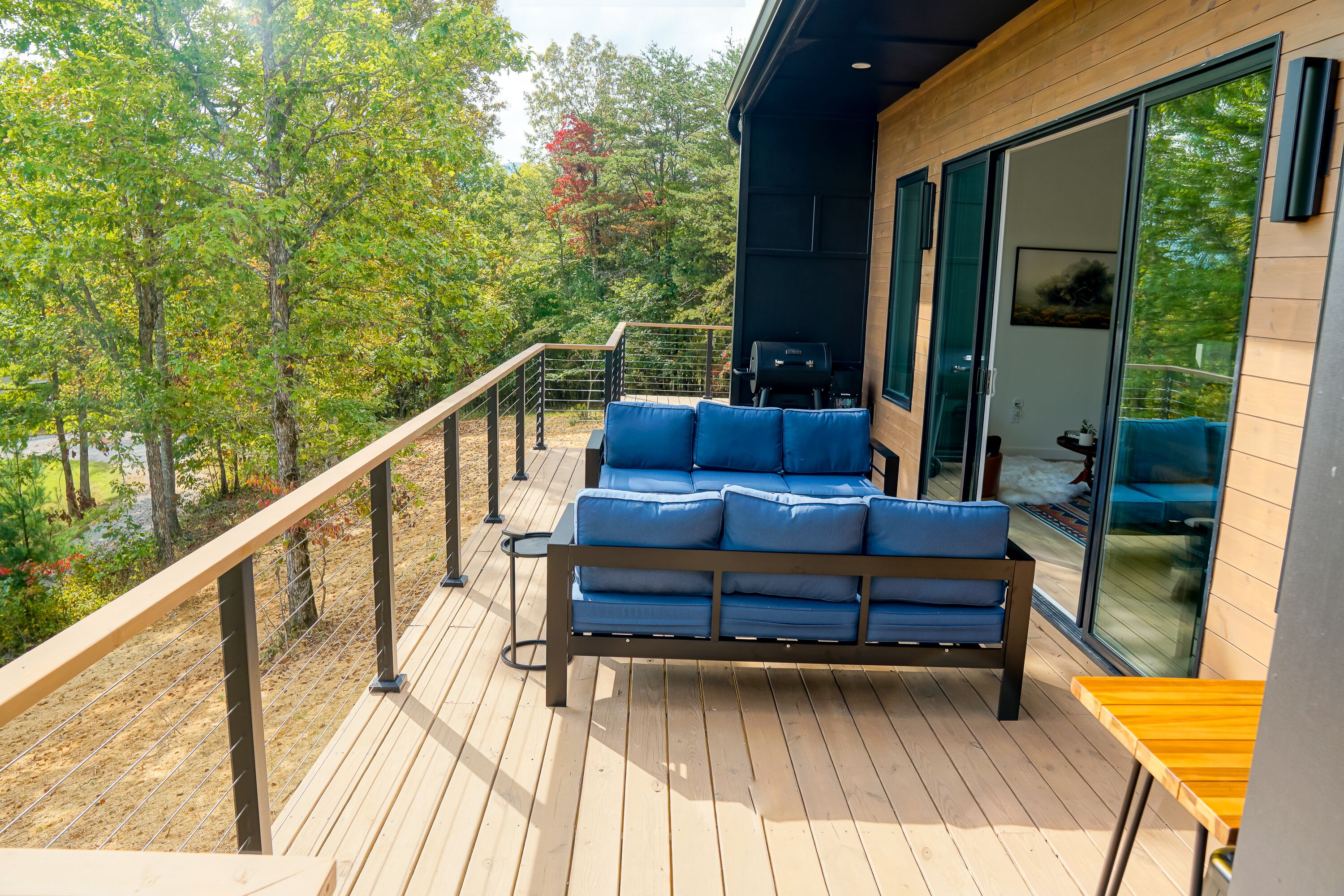 Wildcat Modern | Pool | Dog Friendly Introducing "Wildcat Modern" - A stunning, newly constructed 2 bed, 2 bath modern home. This beautifully decorated gem boasts a spacious outdoor deck with a massive stone fire pit, ample seating, and breathtaking views. Your dream retreat awaits! Union County STR License # 033520Wildcat Modern is located in an upscale community of eco-chic modern mountain retreats called The Nest at Brannon Ridge Reserve. Community amenities include a fire pit, picnic pavilion, and community walking trail. Convenient access to Blairsville and Murphy for all of your needs like grocery stores, shopping, and restaurants. Access with be provided the day of check-in.By booking this property you agree to these House Rules:After booking an email will be sent with digital links to information that must be provided in order to stay, Failure to provide this information within 48 hours of check in will result in cancellation of booking and forfeiture of any booking feesThese include:Pre-Arrival FormAgreement to the Rental Conditions The Mere Pool and Gym Facilities: Acceptance and Acknowledgement of Rules and Waiver and Release of Liability•Failure to provide this information within 48 hours of check in will result in cancellation of booking and forfeiture and any booking fees•Dogs are welcome (1 set of dog bowls provided). Maximum of 2 dogs. Owners are responsible for the dog's behavior and will be assessed for any damages. All pets must be kept on a leash when outside the house.•Maximum overnight occupancy is 4 people. Violators will be immediately evicted from the property with no refunds.• NO SMOKING in unit/house as well as the balcony. Any violation of the smoking policy will incur a $200.00 fine plus the cleaning costs necessary to remove smoke odors from the unit/house and/or linens.• Quiet hours are observed from 9 pm-8 am. Violators will be charged a $200 fine. This property may use NoiseWare technology to ensure the comfort and security of the guest. Tampering with the device is strictly prohibited and will result in a $200 fine. • Noise disturbances will not be tolerated and will result in you vacating the premises. All guests must comply with Union County noise ordinance sent to them in advance and posted in the home.• Please note: neither Nourish Vacation Homes nor the property owner are responsible for any accidents, injuries, as well as stolen or damaged items that occur while on the premises, its facilities or parking lots.•Guests will secure the premises by locking all doors and windows when not on property• Traveler must be at least 21 years of age to make a reservation.• State Identification Card or Driver License copy must be provided when requested upon booking.• Please respect COVID-19 social distancing.• Because this home is on a septic system, flushing anything anything other than the provided toilet paper will result in a $200 fine; this includes wipes labeled as flushable.• NO PARTIES OR GATHERINGS. There is a $500 fine if you violate this policy.• Noise disturbances will not be tolerated and will result in you vacating the premises. All guests must comply with Union County noise ordinance sent to them in advance and posted in the home.•This home is equipped with video surveillance on the outside of the home. Located at front door. The interior does NOT have video surveillance, but does have motion sensors to detect intruders when the home is vacant. The rental is also equipped with noise detect• Community pool and hot tub are open seasonally and weather dependent, from May - October. Hot tub is heated on Friday and Saturday nights from 4-6pm