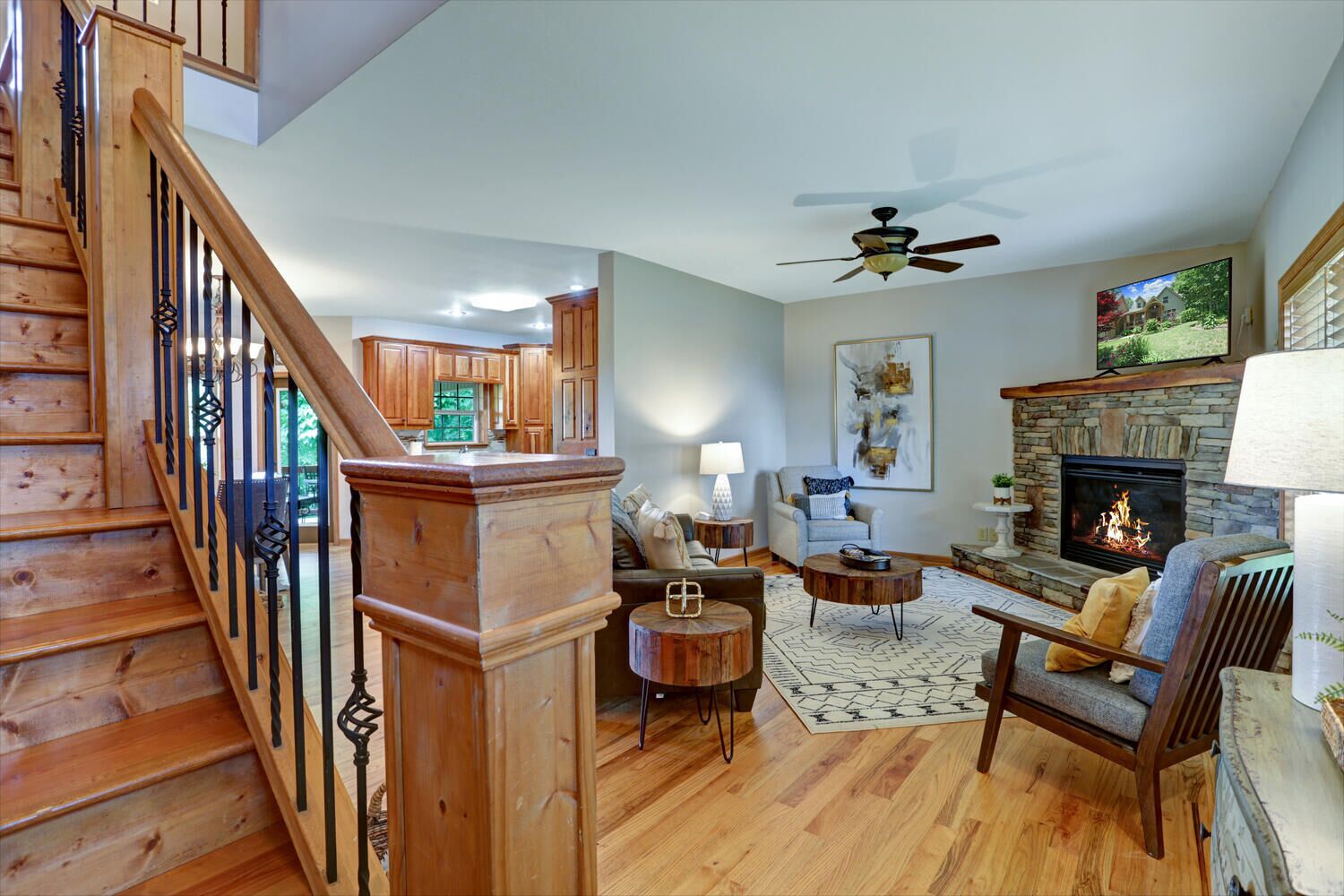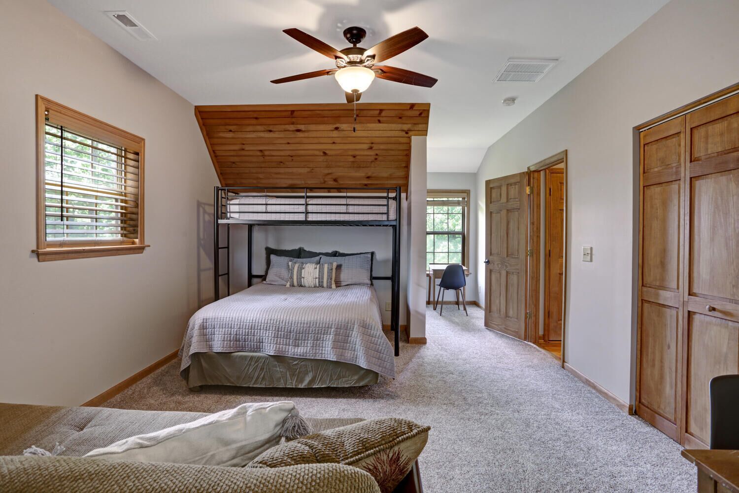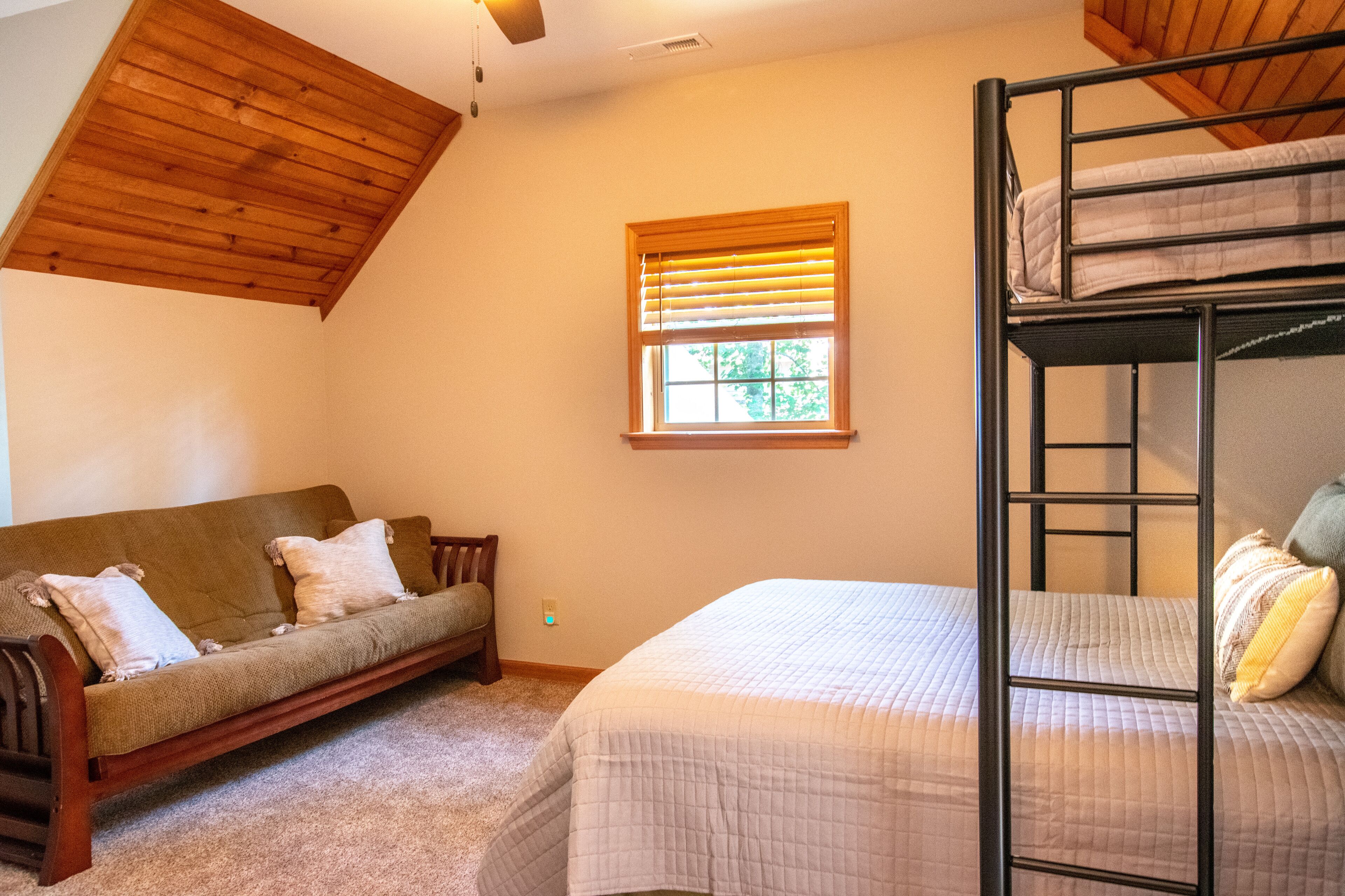 Respite Ridge with Game Room - Stunning View With a stunning view from the top of Young Harris Mountain, this 3 bedroom/3.5 bath home has plenty of room for everyone. The king sized master is on the main floor. Upstairs there is a king in one room and a queen/twin bunk with a futon in the other. There is another futon on the terrace level with a kitchenette and den. Over the garage is a game room...