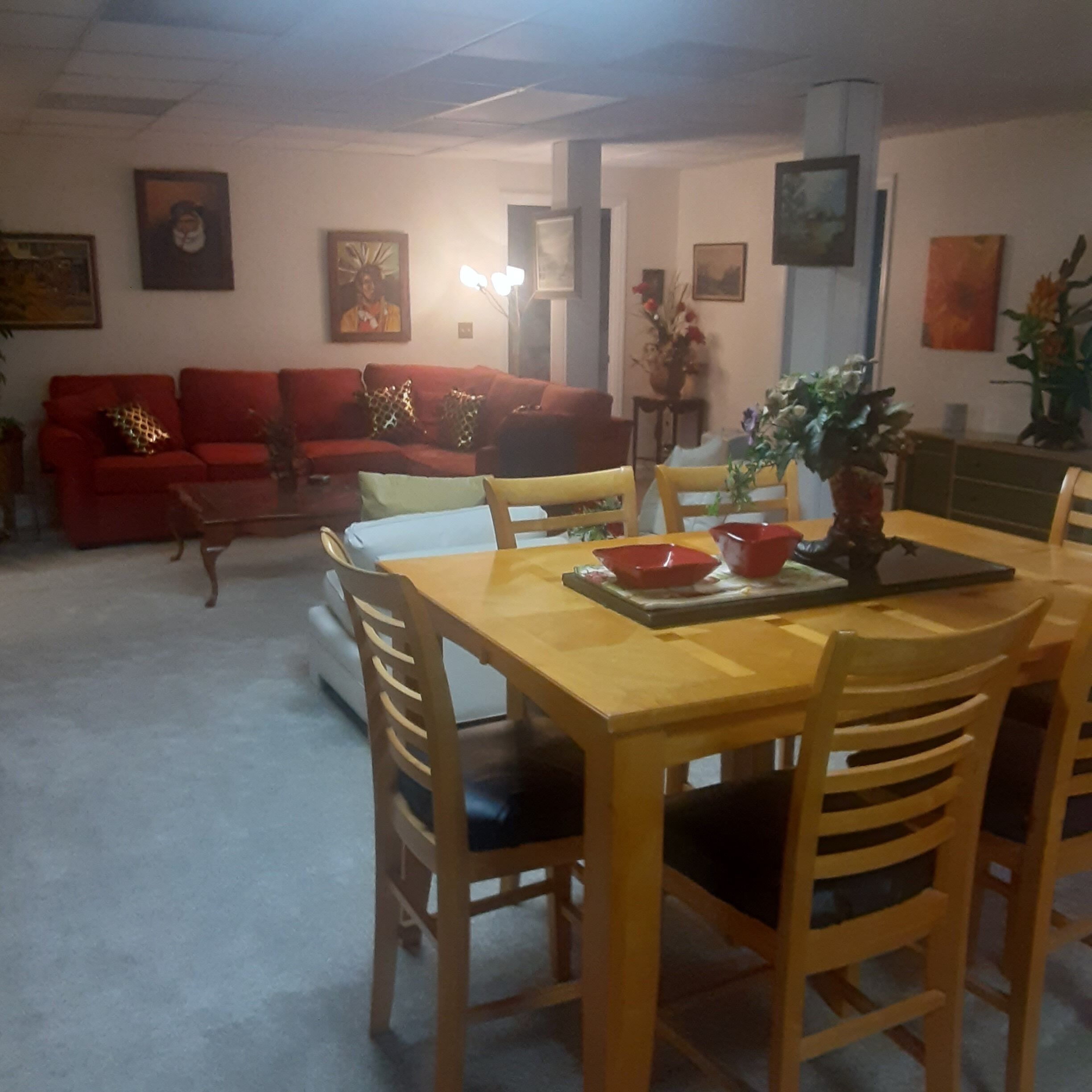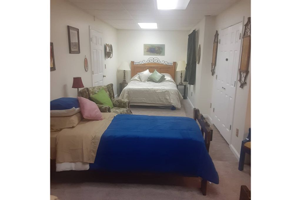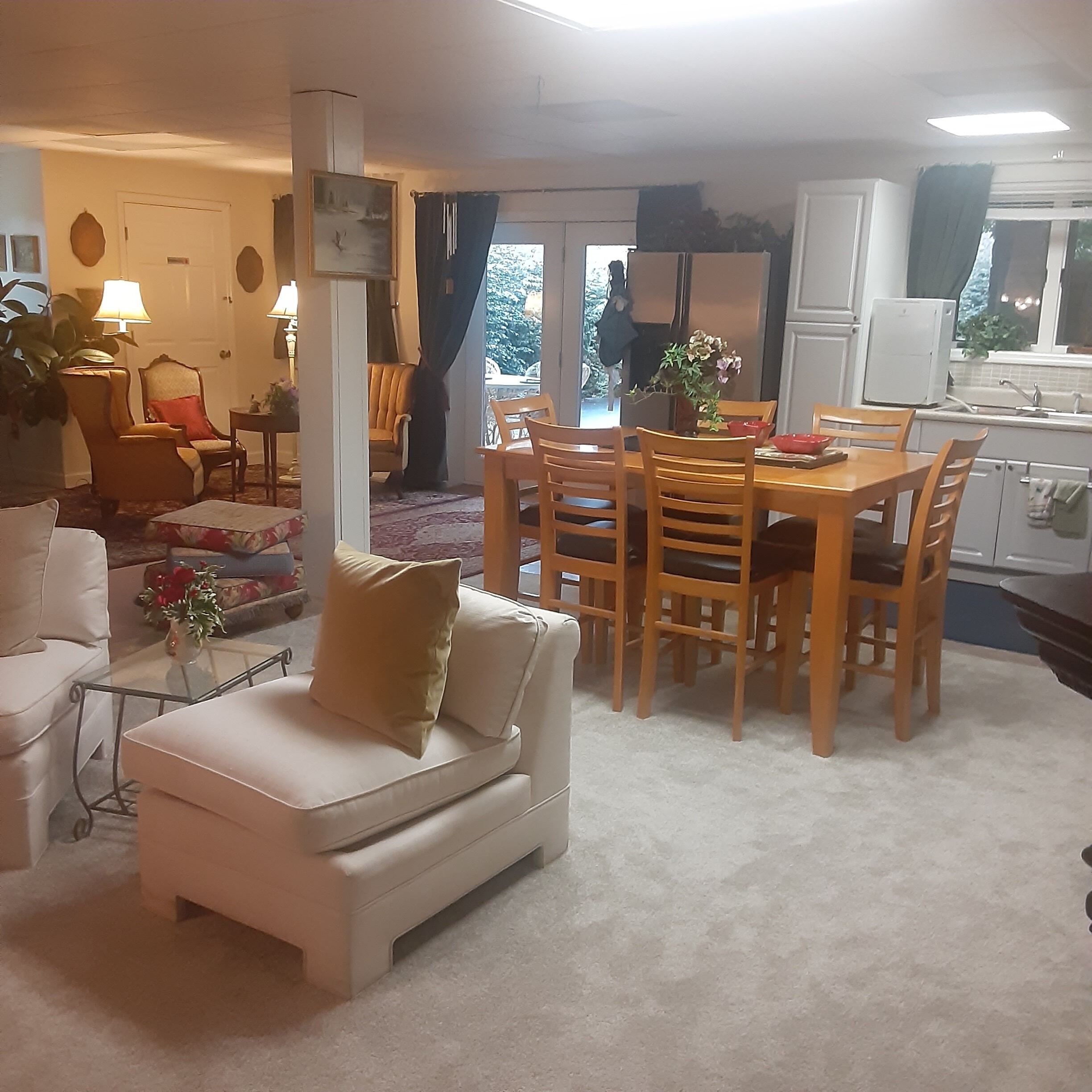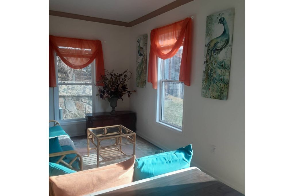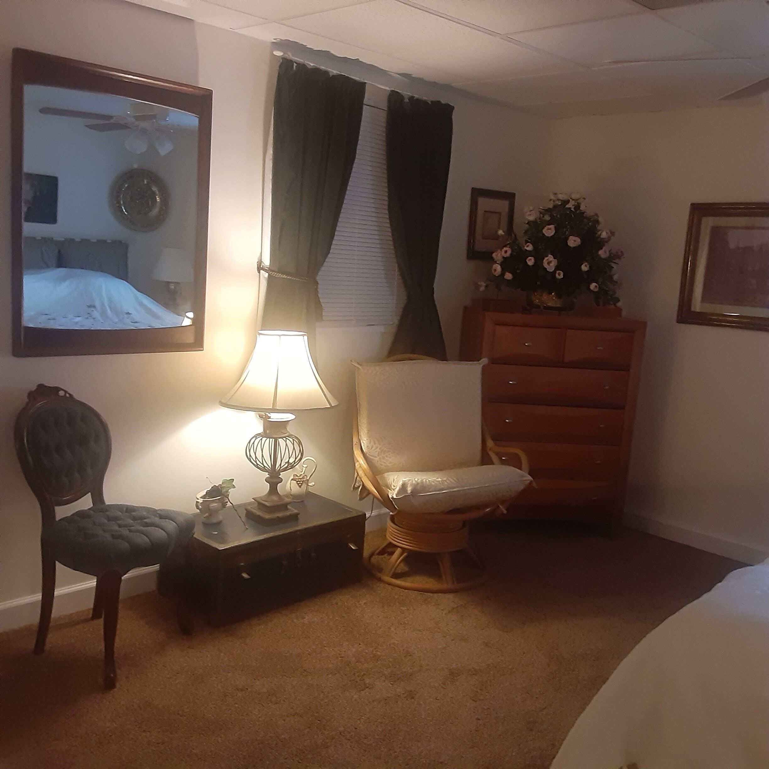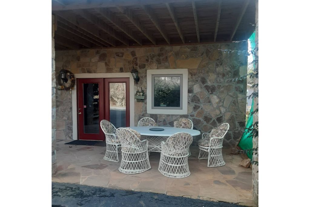3 BR "The Terrace" DOGS go FREE-NO STAIRS The 3 br 1600 sq. ft. +Terrace rental is 'Handicap Friendly' and is located in the main building of Yewit Center. The Terrace sleeps 7 EASILY and can accommodate more if needed. The colorful Sunlounge has a Sofa bed (Q-size) and a Twin size bed however, access to the sun lounge is through the Master bedroom A glass door separates the sun lounge from the master BR. The open plan lounge- kitchen-dining area has a comfy dog bed and feeding station, A BBQ /Seating area is outside to enjoy a wineThe spaceThere's no question that the North Georgia Mountains is one of the most spectacular areas in the world! Located one mile from Lake Chatuge the Yewit Center is centrally located between Hiawassee and Young Harris, GA and only a few miles from historic Hayesville, NC. We encourage you to go to mountaintopga.com which is the Towns County Chamber of Commerce website. You will find it hard to believe the activities and happenings in these parts. Hiking, water sports, zip lines, restaurants, antiques, white water rafting, bass and fly fishing, golf, festivals and other happenings are just some of the activities you'll find around here. At Yewit Center you will find that access is easy and the tranquility is refreshing. Feel free to fish in our private stocked pond that is right on Crooked Creek - large mouth bass, brim, croppie, blue gil, 7 large grass crop (if you can catch them.) The Terrace Level is 1600+ sq. ft and is spacious and tranquil. We know you will love your stay at Yewit Center!Guest accessWIth easy pull-up access to the front door, The Terrace is "Handicap Friendly". The door is a standard 36". You will have no problem getting in and out of Yewit Center since it is directly off GA Hwy 339 (which is Crooked Creek Rd.) Easy access with wonderful seclusion without the worry of treacherous mountain dirt roads. PLEASE DO NOTE that renting in the Winter months can require extra care at your own risk. We do all we can to minimize hazards associated with ice and snow. Yewit Center has the unique aspect of seclusion while still having direct access to the main road.Other things to noteWe are certainly pet friendly so bring 'em along if you'd like. Dogs go for free. However cats are welcome if they are declawed. We have two cats (that stay outside during the warm months) and Lester, the world's friendliest dog. He's a lab/aussie mix and has never met a stranger and helps our guests with their fishing on our pond.