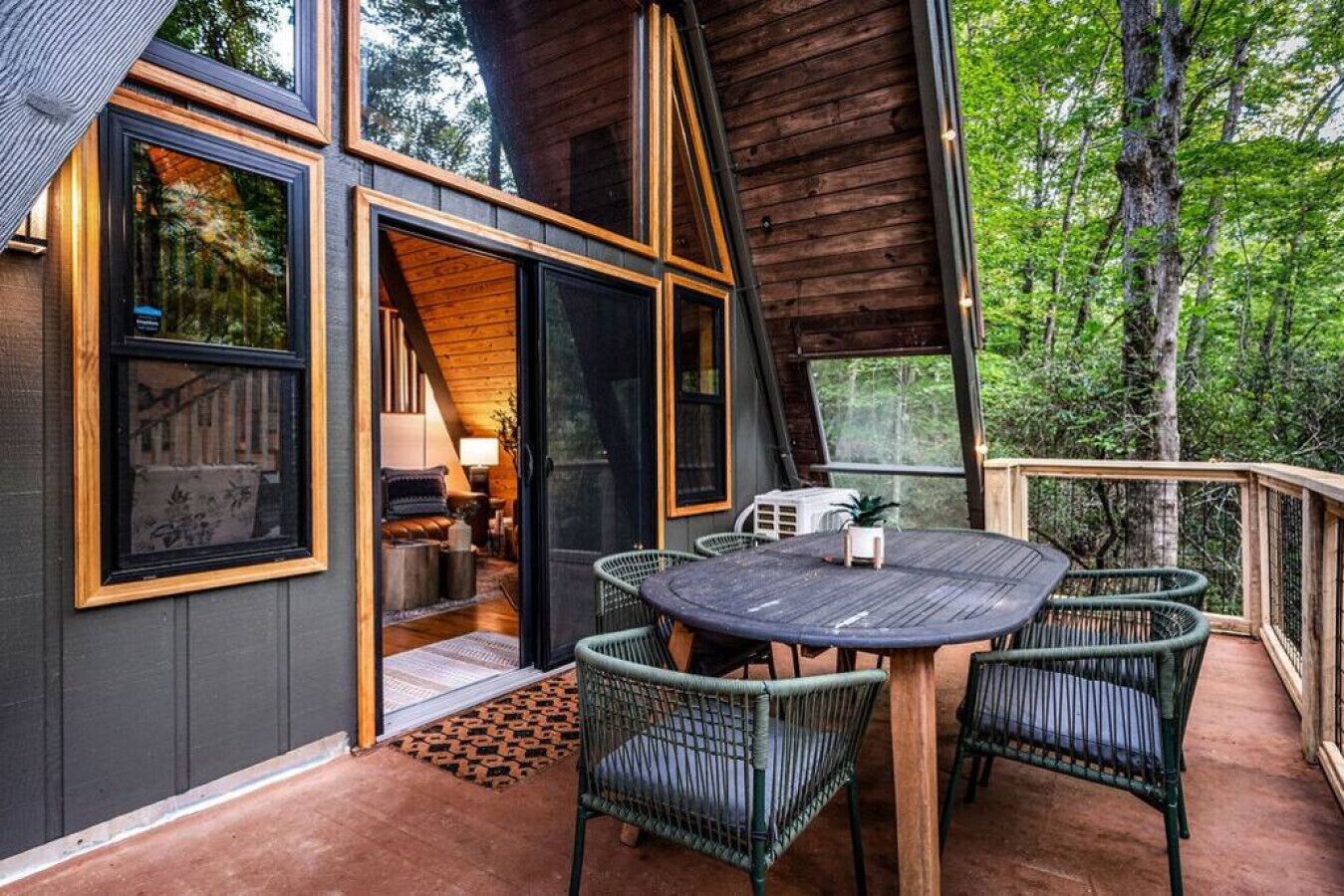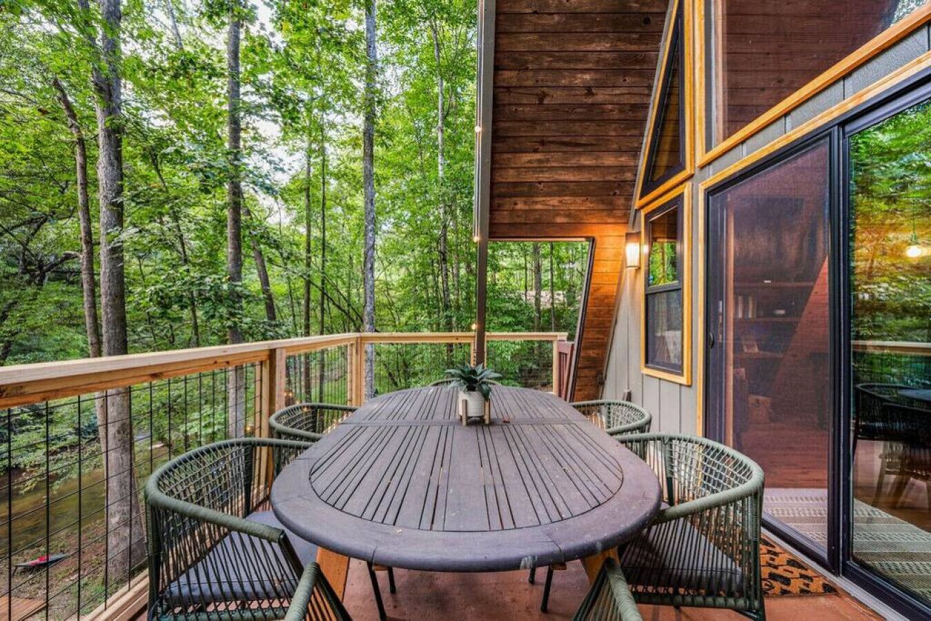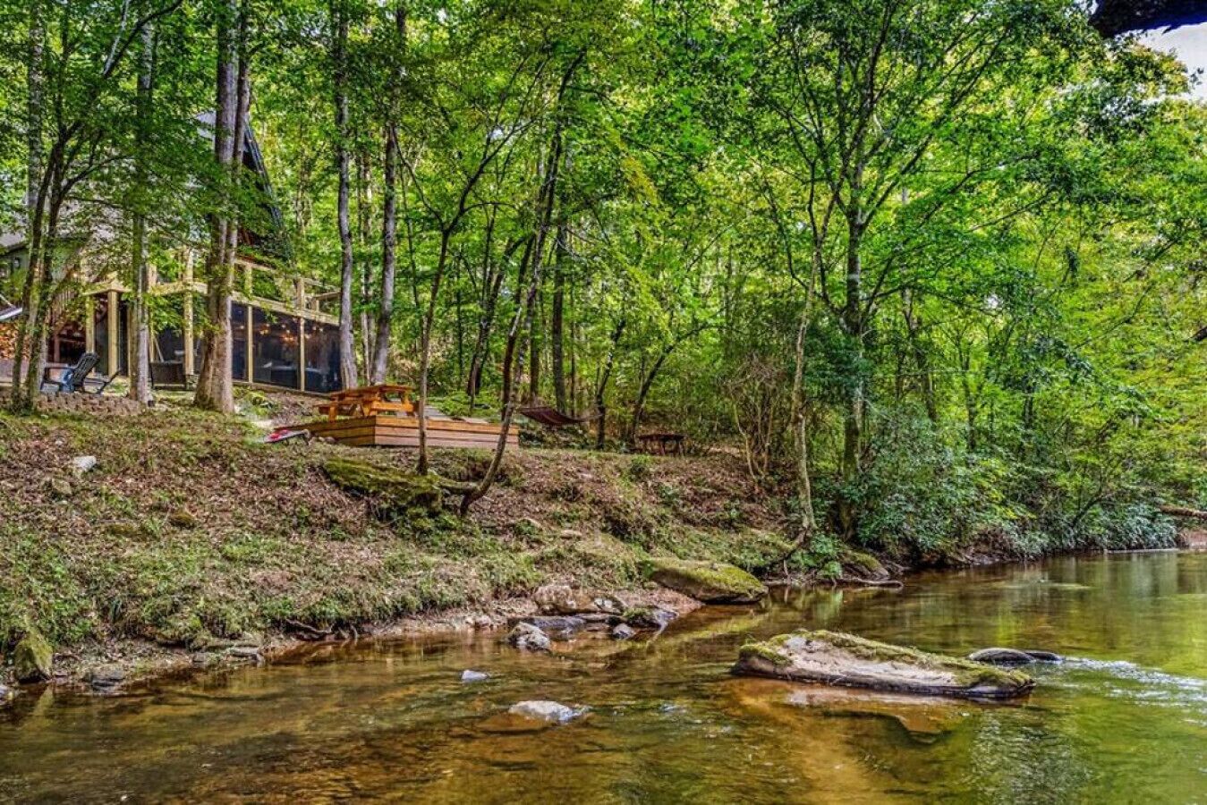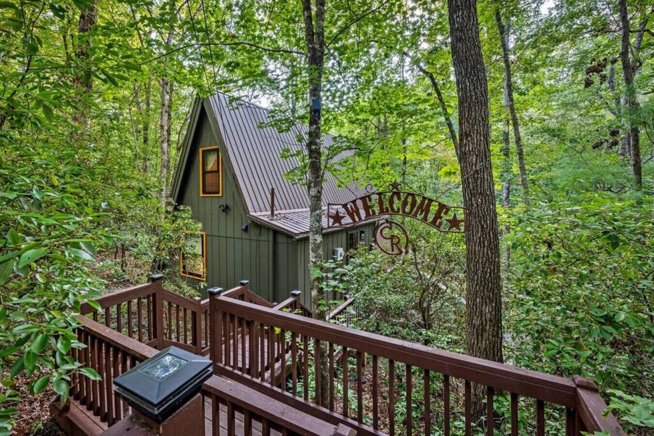 NEW! Creekside Ranch A-Frame Beautiful, private and renovated Creekside A-Frame! Enjoy the modern ranch decor and soothing sounds of flowing water from the front deck while trout fishing! Brand new creekside deck, fire pit and hot tub for an amazing experience surrounded by nature. Inside is comfortable and cozy with large windows that allow for plenty of natural light and views of the forest....