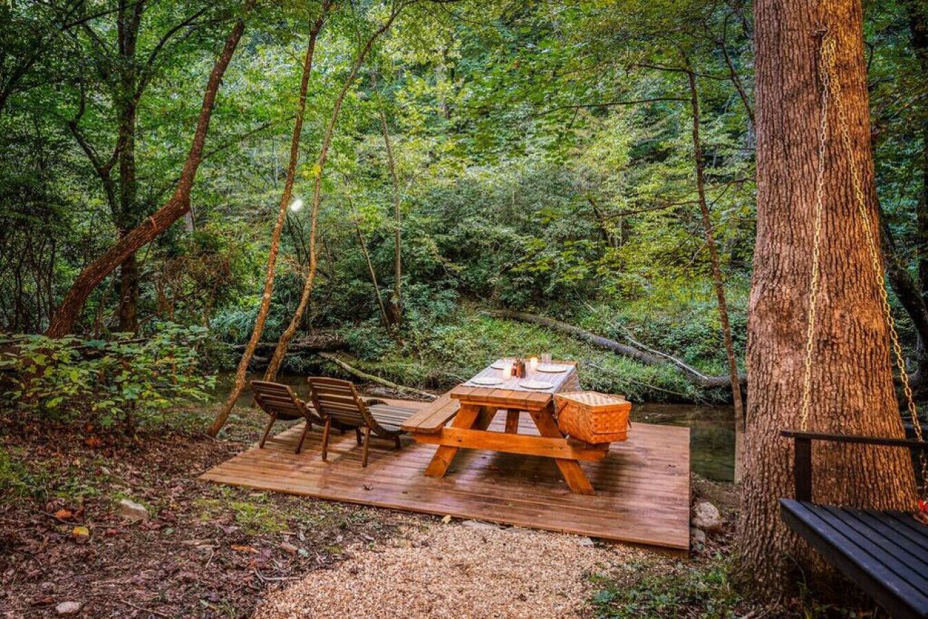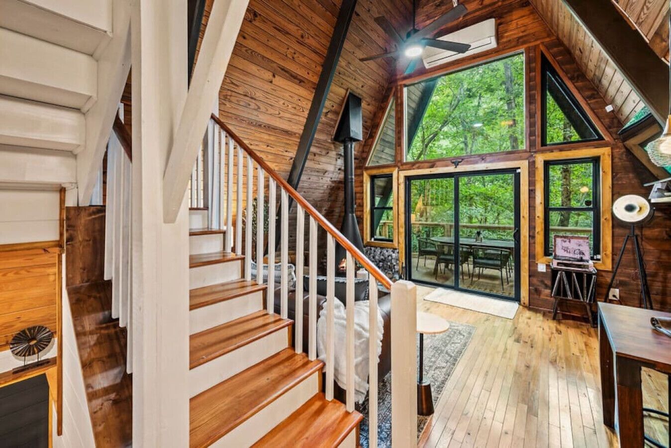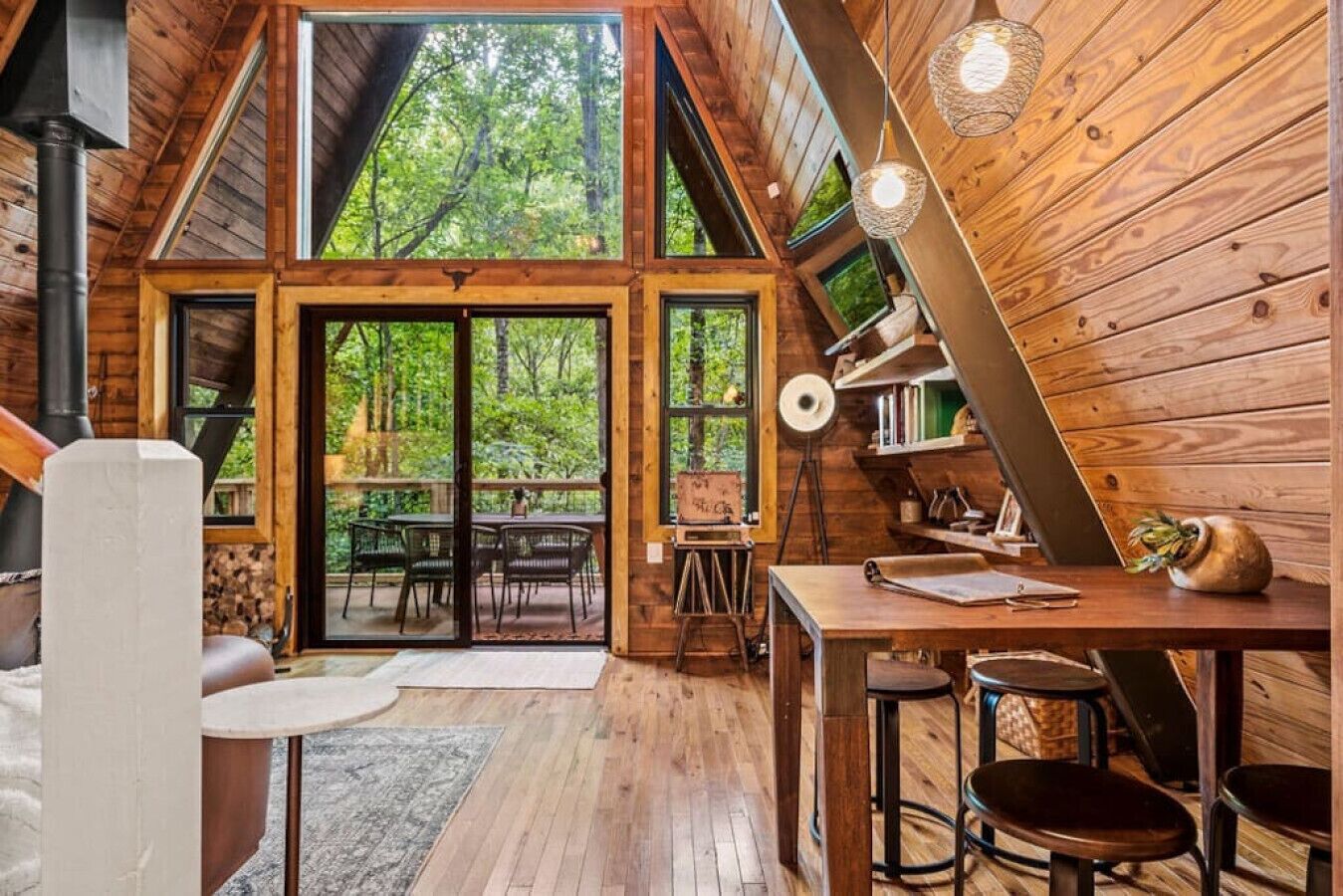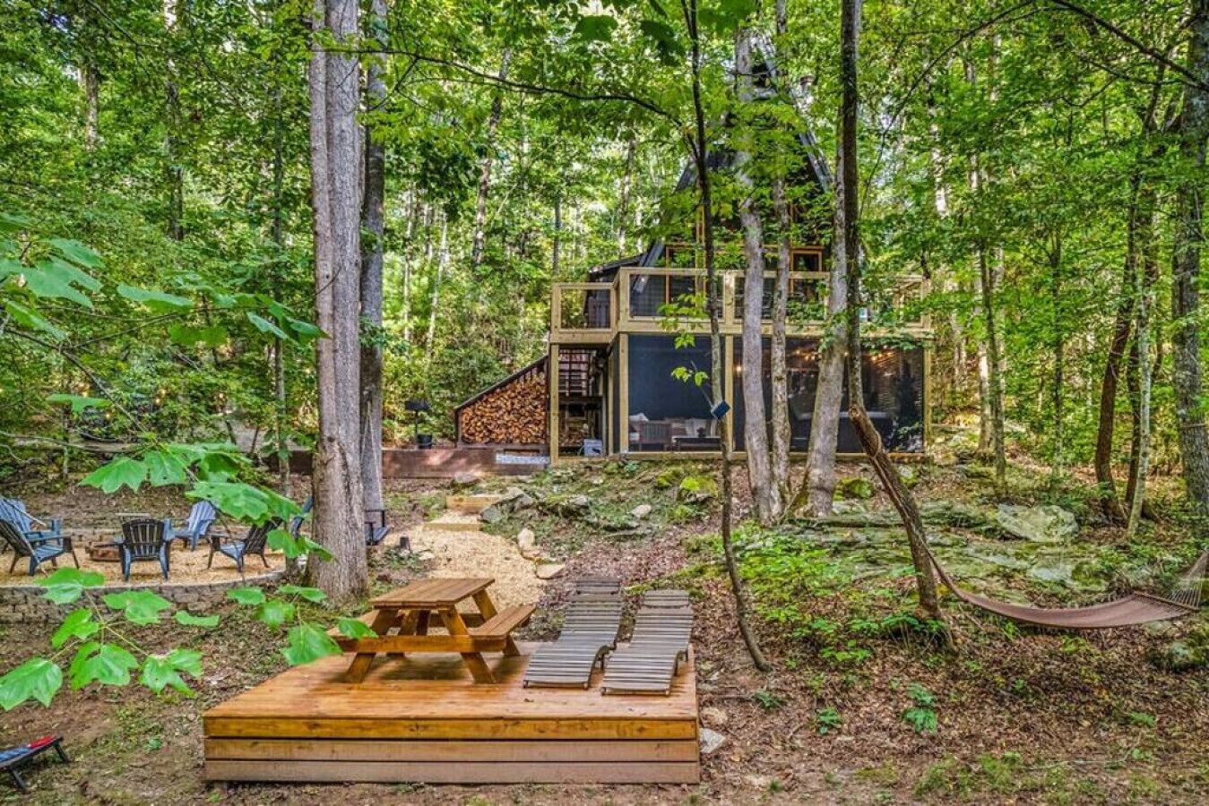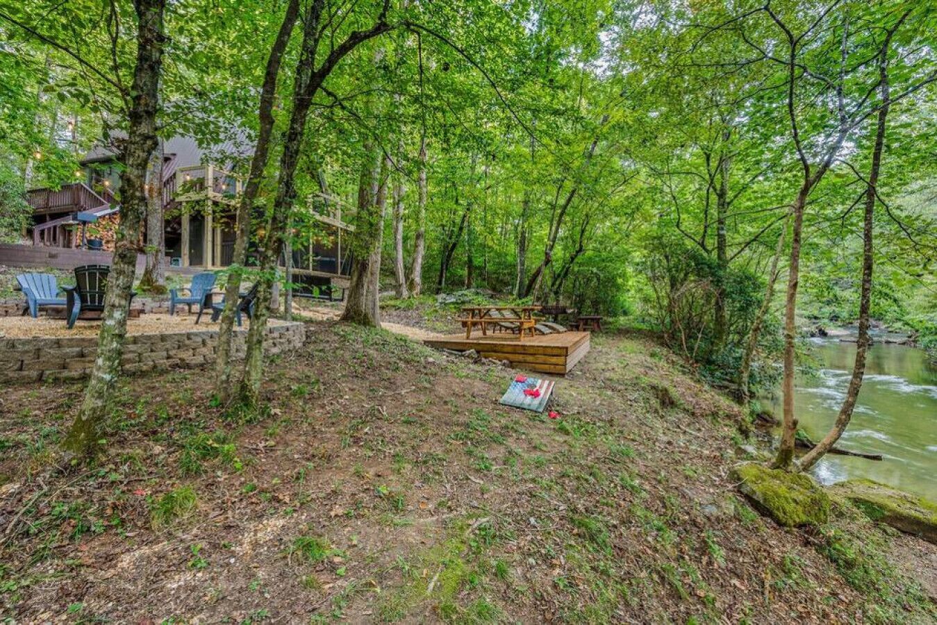 NEW! Creekside Ranch A-Frame Beautiful, private and renovated Creekside A-Frame! Enjoy the modern ranch decor and soothing sounds of flowing water from the front deck while trout fishing! Brand new creekside deck, fire pit and hot tub for an amazing experience surrounded by nature. Inside is comfortable and cozy with large windows that allow for plenty of natural light and views of the forest....