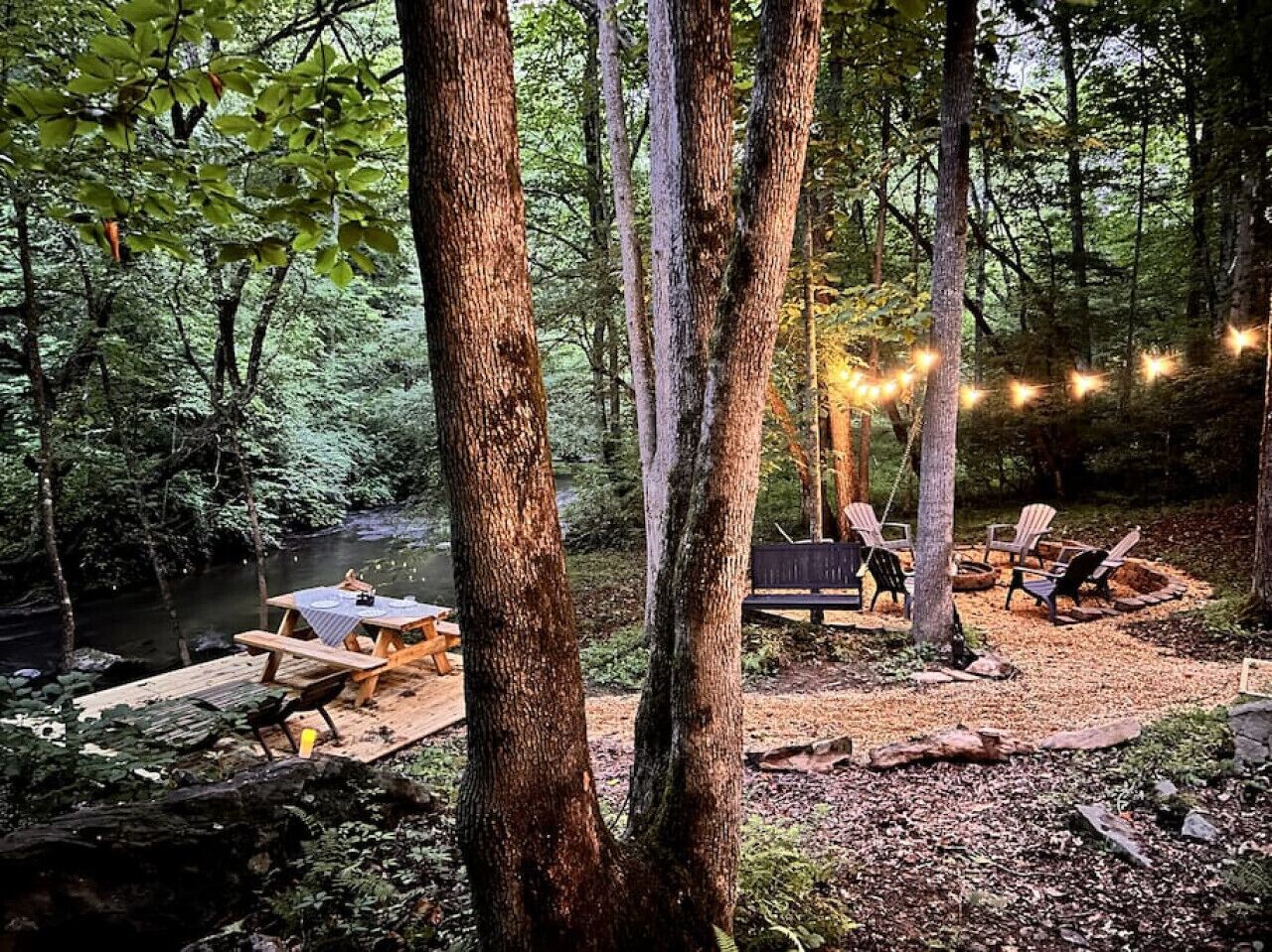 NEW! Creekside Ranch A-Frame Beautiful, private and renovated Creekside A-Frame! Enjoy the modern ranch decor and soothing sounds of flowing water from the front deck while trout fishing! Brand new creekside deck, fire pit and hot tub for an amazing experience surrounded by nature. Inside is comfortable and cozy with large windows that allow for plenty of natural light and views of the forest. It's the perfect setting for reconnecting with nature and finding serenity!Less than 1 mile from Crane Creek Vineyards, just minutes from Young Harris College and Lake Chatuge! Plus, you have Brasstown Creek right on property! We own cabins in the Smoky Mountains - NC and TN - and this is our fourth renovated vacation home to share with guests. We also run a vacation home design studio - Parklin Interiors - and love mixing decor and hospitality to make our guests experience exceptional with many amenities to keep our guests comfortable. Follow us IG @southern_serenity_stays to learn more about our properties! Looking forward to hosting you!