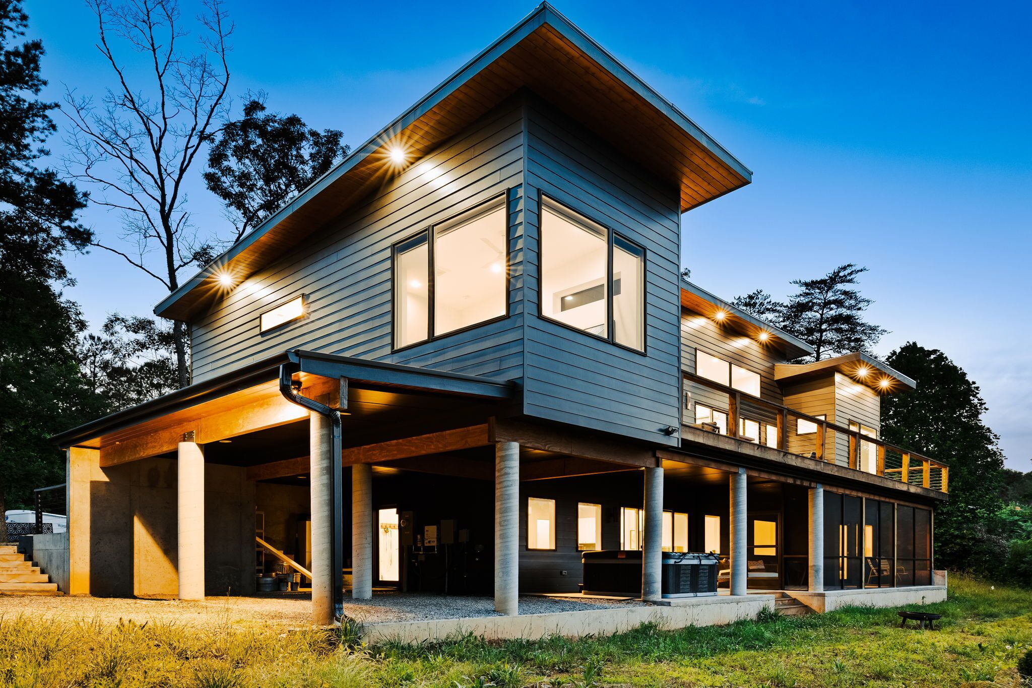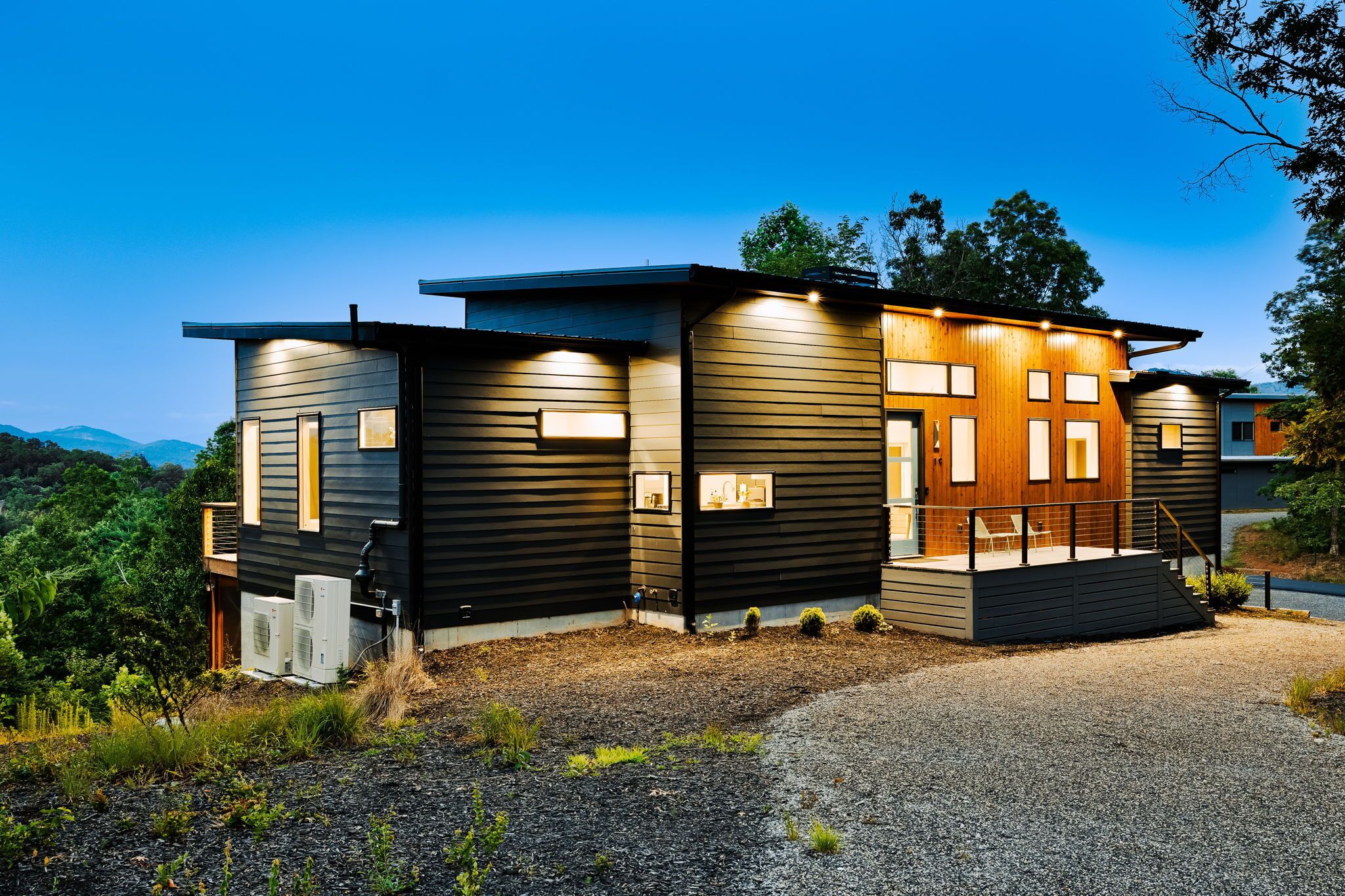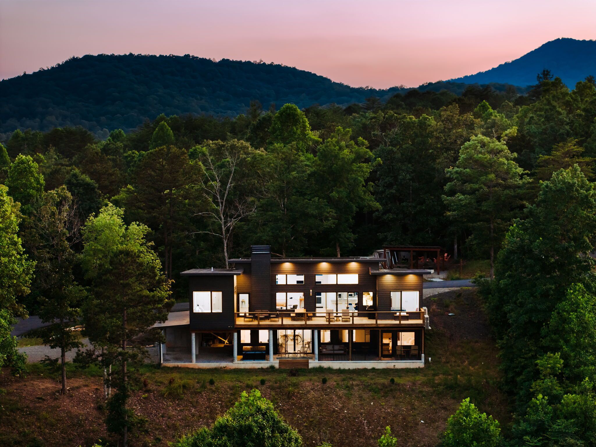 EcoModMtn Sleeps 8, 3 Bed/3.5 Bath, Mountain Views, Hot Tub Breathe a sigh of relief - you've found your perfect airy mountain getaway! EcoModMtn is located between Young Harris, Blairsville, and Murphy in an upscale community of modern mountain retreats. Guests love using the fully equipped kitchen, BBQ grill and seating on the enormous deck to take in the stunning mountain views. On the lower level is a screened in porch, kitchenette, media room, and hot tub. Get away without compromising your design aesthetic! Union County STR License #010150Additional rules- After booking an email will be sent with digital links to information that must be provided in order to stay at ECOMODMTN these include:Pre-Arrival FormAgreement to the Rental Conditions The Mere Pool and Gym Facilities: Acceptance and Acknowledgement of Rules and Waiver and Release of Liability•Maximum overnight occupancy is 8 people. Violators will be immediately evicted from the property with no refunds.• NO SMOKING in unit/house as well as the balcony. Any violation of the smoking policy will incur a $200.00 fine plus the cleaning costs necessary to remove smoke odors from the unit/house and/or linens.• Quiet hours are observed from 9 pm-8 am. Violators will be charged a $200 fine. This property may use NoiseWare technology to ensure the comfort and security of the guest. Tampering with the device is strictly prohibited and will result in a $200 fine.• Please note: We are not responsible for any accidents, injuries, as well as stolen or damaged items that occur while on the premises, its facilities or parking lots.• Traveler must be at least 21 years of age to make a reservation.• State Identification Card or Driver License copy will be requested upon booking.• Please respect COVID-19 social distancing.NO PARTIES OR GATHERINGS. There is a $500 fine if you violate this policy.Noise disturbances will not be tolerated and will result in you vacating the premises. All guests must comply with Union County noise ordinance sent to them in advance and posted in the home.• Pets are welcome (1 set of dog bowls provided). Maximum of 3 animals with an additional pet cleaning feeof $75. Owners are responsible for the dog's behavior and will be assessed for any damages. Animals must be kept on a leash at all times while outside.• This home is equipped with video surveillance on the outside of the home. Located at front door, backyard and driveway. The interior does NOT have video surveillance, but does have motion sensors to detect intruders when the home is vacant. The rental is also equipped with noise detectEcoModMtn is located in an upscale community of eco-chic modern mountain retreats called The Nest at Brannon Ridge Reserve. Community amenities include a fire pit, picnic pavilion, and community walking trail. Convenient access to Blairsville and Murphy for all of your needs like grocery stores, shopping, and restaurants. Access with be provided the day of check-in.