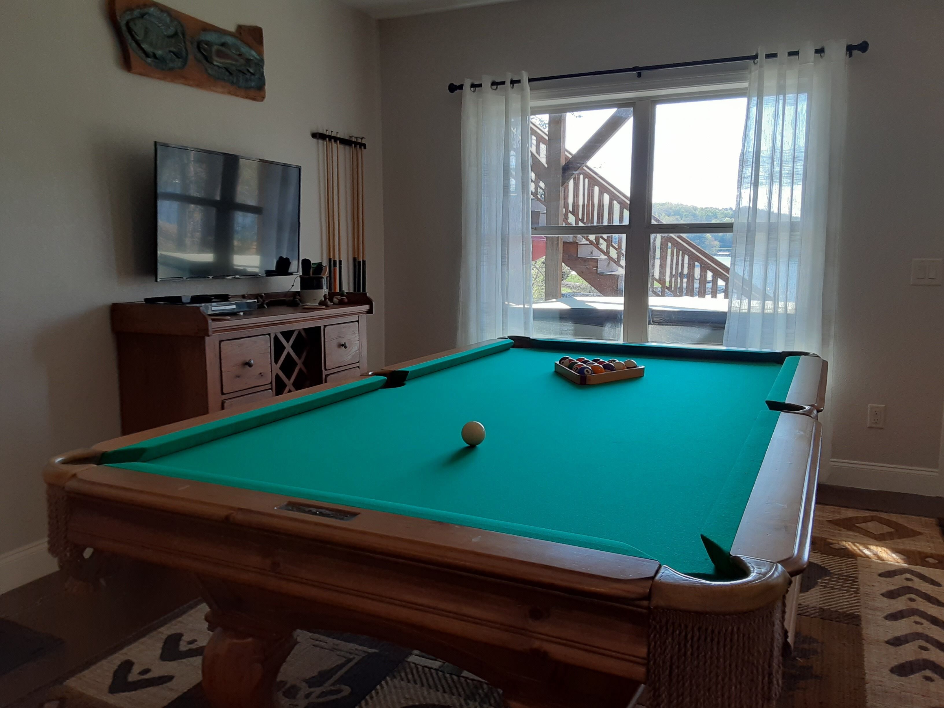 LAKEFRONT 4/3.5, Private Dock, Pool Table, Lakeside Firepit, Kayaks, Paddleboat Lakefront home on beautiful Lake Chatuge nestled in a cove offering stunning sunsets conveniently located in a quiet neighborhood close to Hiawassee, Young Harris, and Blairsville, GA as well as Hayesville and Murphy, NC, with many popular restaurant options within a mile. Also just a 2 hour drive from Atlanta and Asheville.Home features 4 bedrooms, 3.5 baths, did I mention lakefront :) Faces northwest offering stunning sunsets Private dockPool table Charcoal GrillLakeside firepitCornhole gameLounge chairsJust purchased 2 brand new adult kayaks this season (2023) 4 single person sit on top kayaks (2 adult, 2 youth)4 person paddle boatGas log fireplaceMinutes from Splash Island @ the Ridges Resort, great for kids and adultsLarge over sized deck w/ picnic table + patio seatingWIFIDish Network TV package including local channels with flat screen smart TV's in living room, each bedroom, and billiards room (5 total)Spacious bedrooms w/ memory foam mattresses, & roomy walk in closets Fully equipped kitchen for cooking and serving featuring quartz counter topsComfortable mountain/lake décor and Christmas Holiday décor during the seasonStack washer and dryerTowels and linens providedCovered parking in large carport area, circle drive Sleeps a maximum of 8 including children/infants. If you have a smaller group contact me for special arrangements and we may be able to work out a discounted rate to accommodate you.Lot lays very well with gradual slope and is an easy short walk down to the lake. Lake can also be accessed by walking around from the rear of the house to avoid stairs if needed. We are located about a mile from the Ridges Marina if you would like to rent a boat during your stay. We are also located about a mile from a public boat ramp off of Red Banks Drive if you care to bring your own boat.We have online booking for your convenience. Please ensure that you have read and can comply with our rental policies before making a booking request. The most important to consider is 8 guests maximum including children/infants, no pets, etc. If you have any questions please feel free to contact us. Thank you for considering our home for your vacation needs.