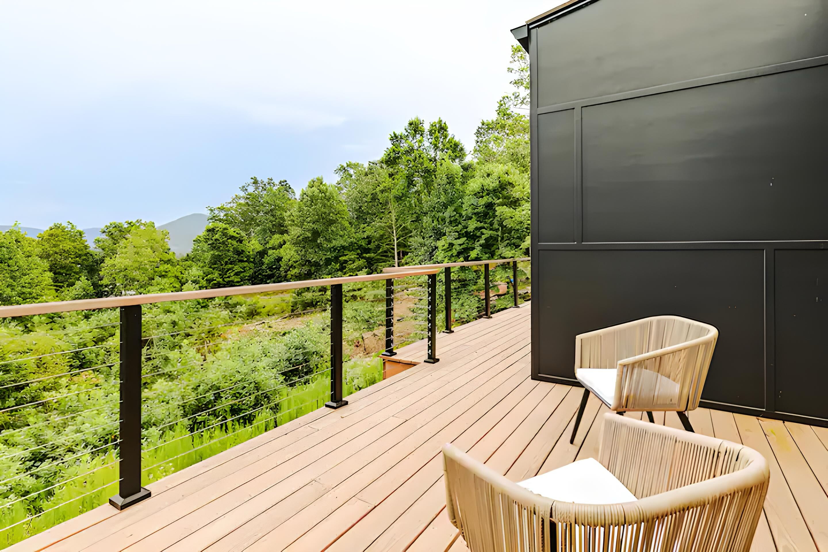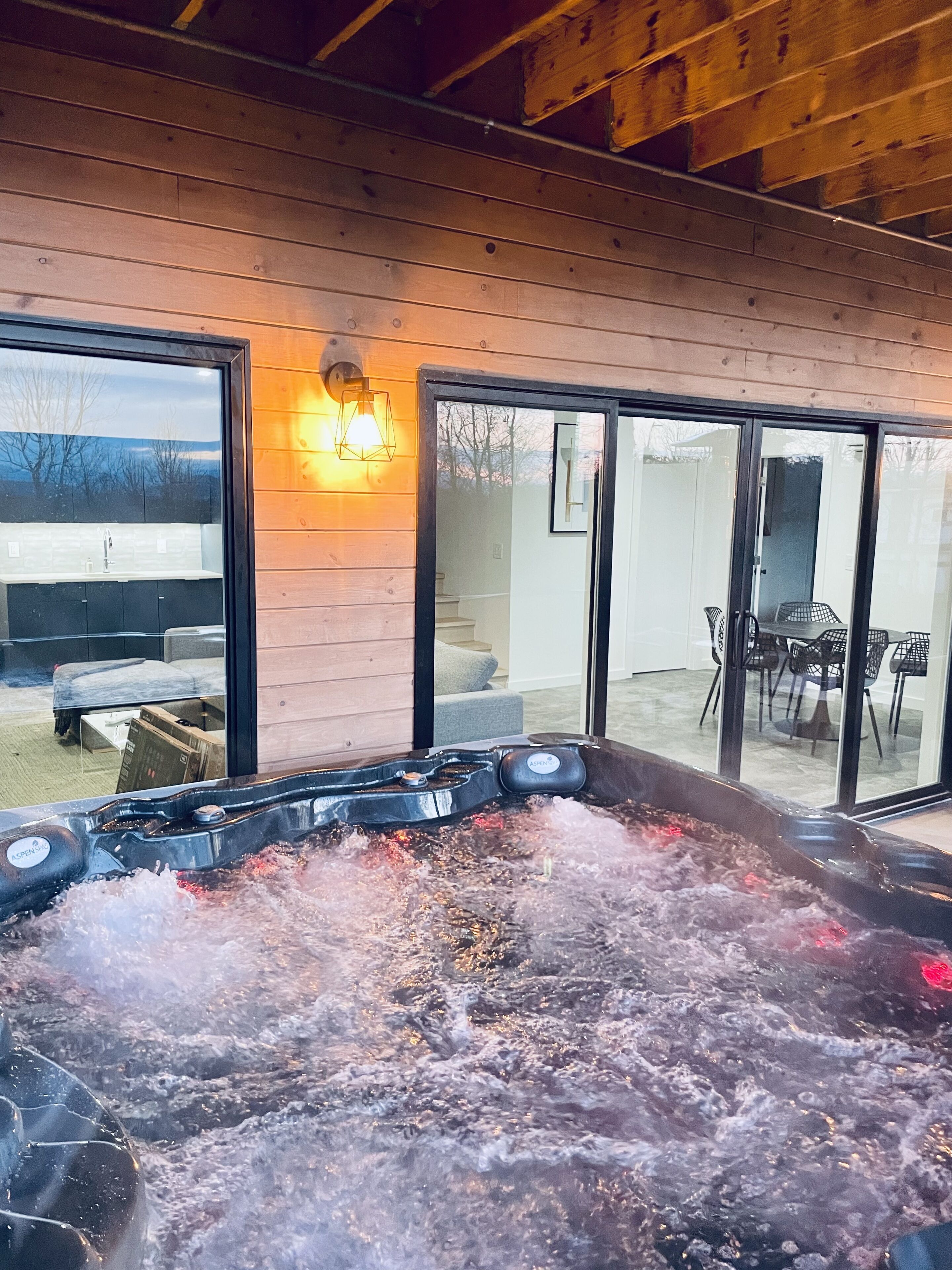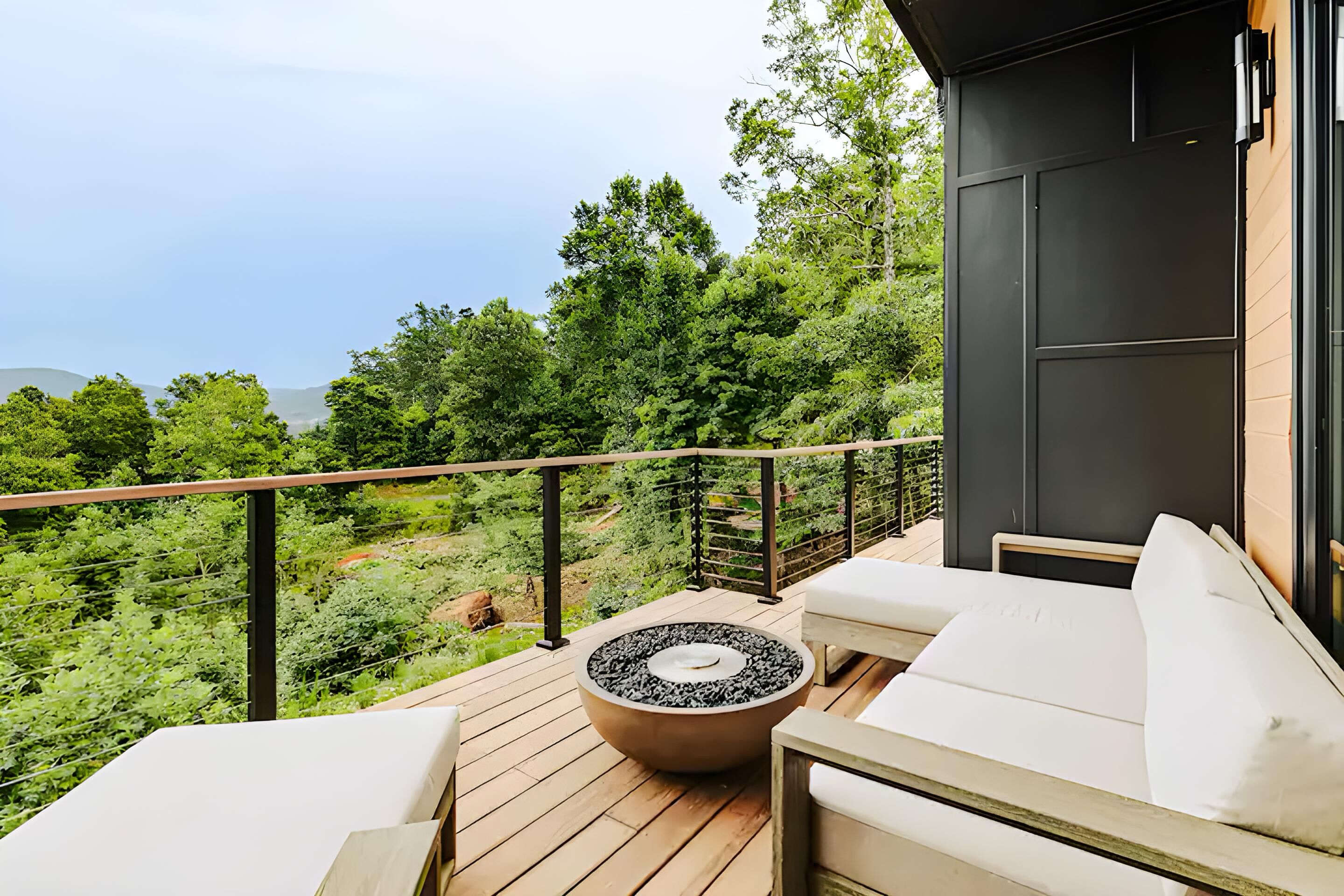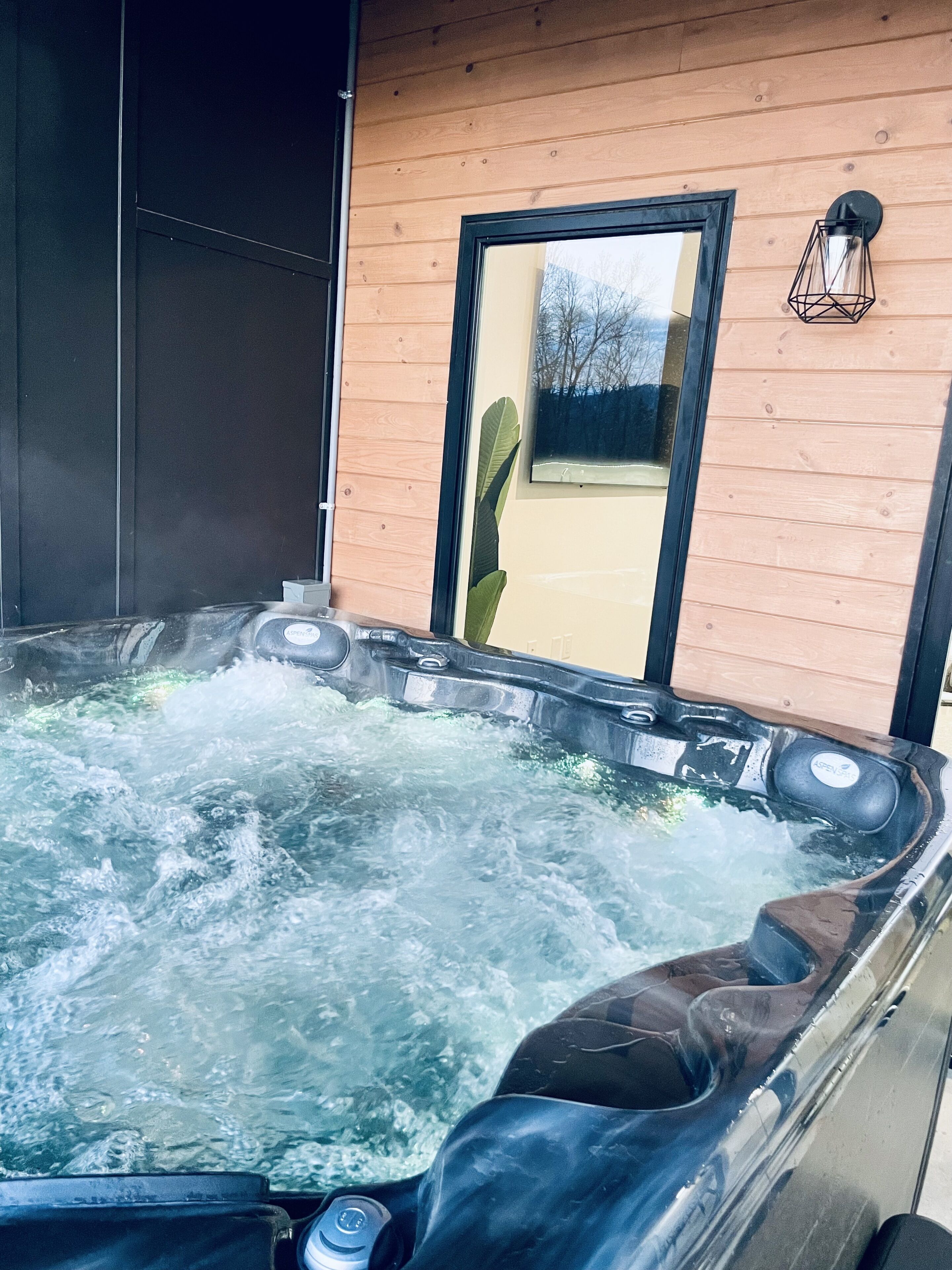Mountain Mod with Pool & Hot Tub Escape to a stunning contemporary cabin in the North Georgia mountains. This 4-bed, 3-bath retreat sits in an upscale community and offers modern design, comfort, and is the perfect setting for families, friends, or a romantic getaway. Amenities include:- Private hot tub with LED lights and massaging jets- 2 Smart 4K TVs (65in and 75in)- Chefs kitchen with stainless steel appliances- Memory foam mattresses and pillows- Fire pit and heat lamps- Mountain views- Community pool with hot tub1ST FLOORStep into the natural-light filled open concept living room, kitchen and dining area where you'll immediately be greeted with breathtaking views of the mountains through accordion doors. On this floor, you'll find 2 bedrooms with 2 adjoining bathrooms, a chefs kitchen with a waterfall island and bar sitting, and an expansive deck you can step out too to enjoy the fresh air. A full list of amenities includes- 65 in Smart 4K television- Plush living room seating for 5- Dining room seating for 6- Chefs kitchen with stainless steel appliances, cookware, flatware and utensils. - Waterfall island with bar seating for 2- Memory foam mattresses and pillows in each bedroom- Private outdoor patio areas, with seating or a hammock, attached to each bedroom.- 2 spa-like bathrooms- Outdoor sectional with seating for 5- Fire pit and heat lamp- Board and card games2ND FLOORHead downstairs to discover a secondary living space with 2 additional bedrooms, a bathroom and a covered outdoor patio area with additional seating and a lux hot tub with massaging jets. The full list of amenities include the following:- Hot tub with over 40 massaging jets and LED lights - 75 inch Smart 4K television- Large sectional sofa with seating for 6- Game table with seating for 4- Wet bar with refrigerator- Memory foam mattresses and pillows in each bedroom- Private outdoor patio areas, with seating, attached to each bedroom- Additional outdoor seating for 4- Heat lamp- Games: Giant connect 4 and corn holeCOMMUNITY AMENITIESYour exceptional cabin is just the beginning! This upscale community boasts additional amenities that will make your stay unforgettable. Here's what awaits you:- Pool and hot tub (opens May 17th)- Fitness center with row machine and free weights- Sprawling trails- Picnic Tables- Proximity to Restaurants and Attractions: Crane Creek Vineyards, Grandaddy Mimm's Distilling Co., Rollins Planetarium, Enrico's Italian RestaurantSTR License #: 021900
