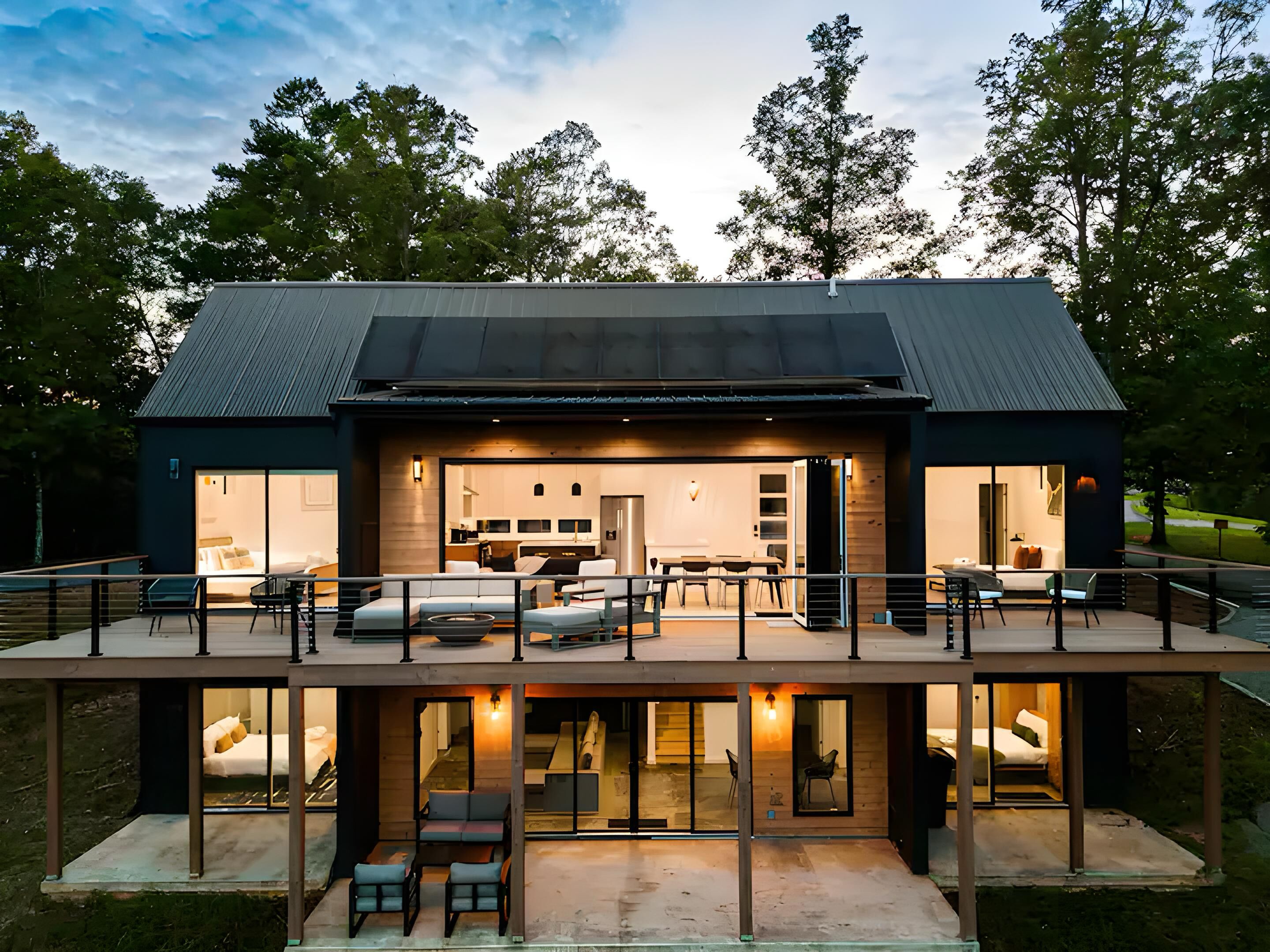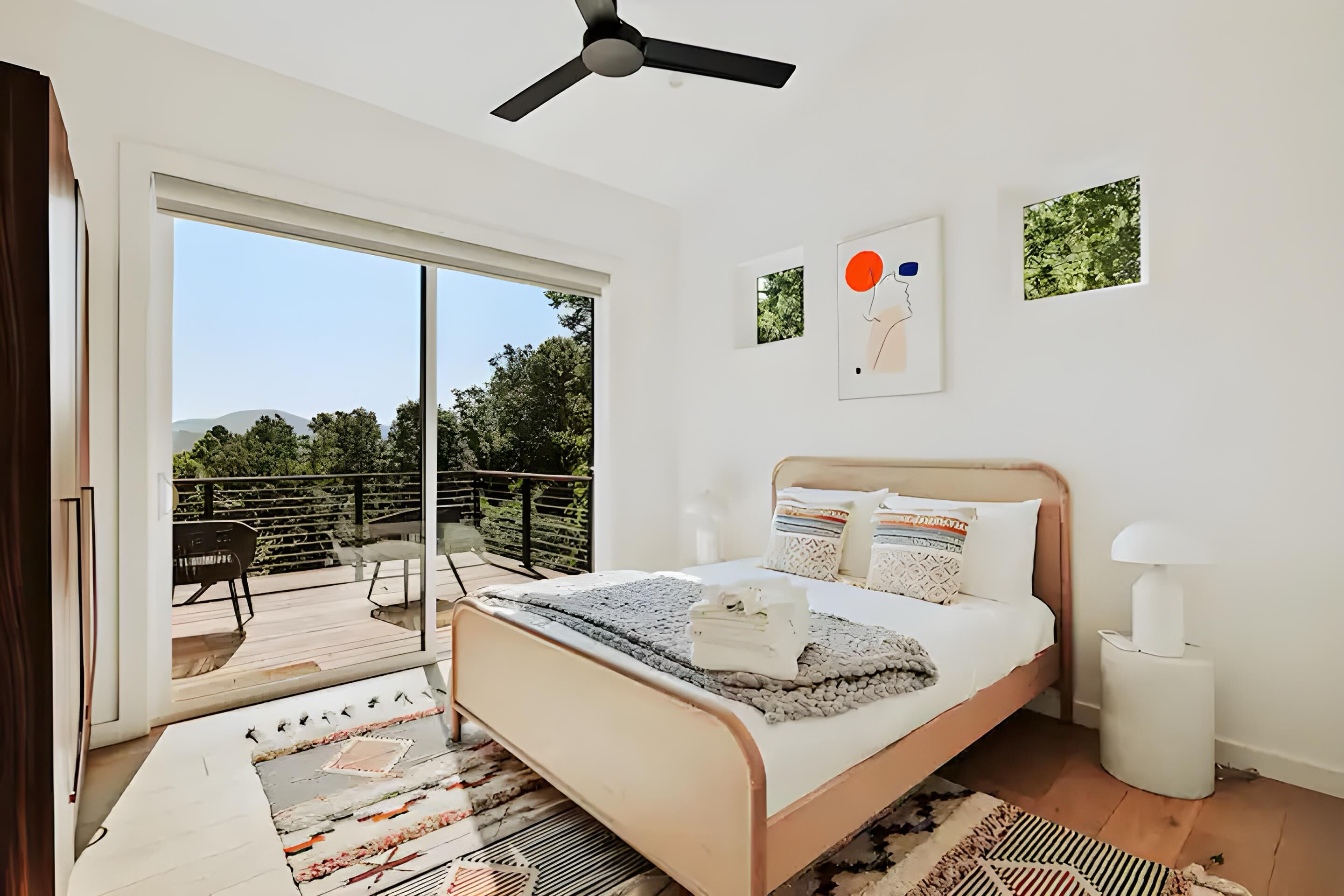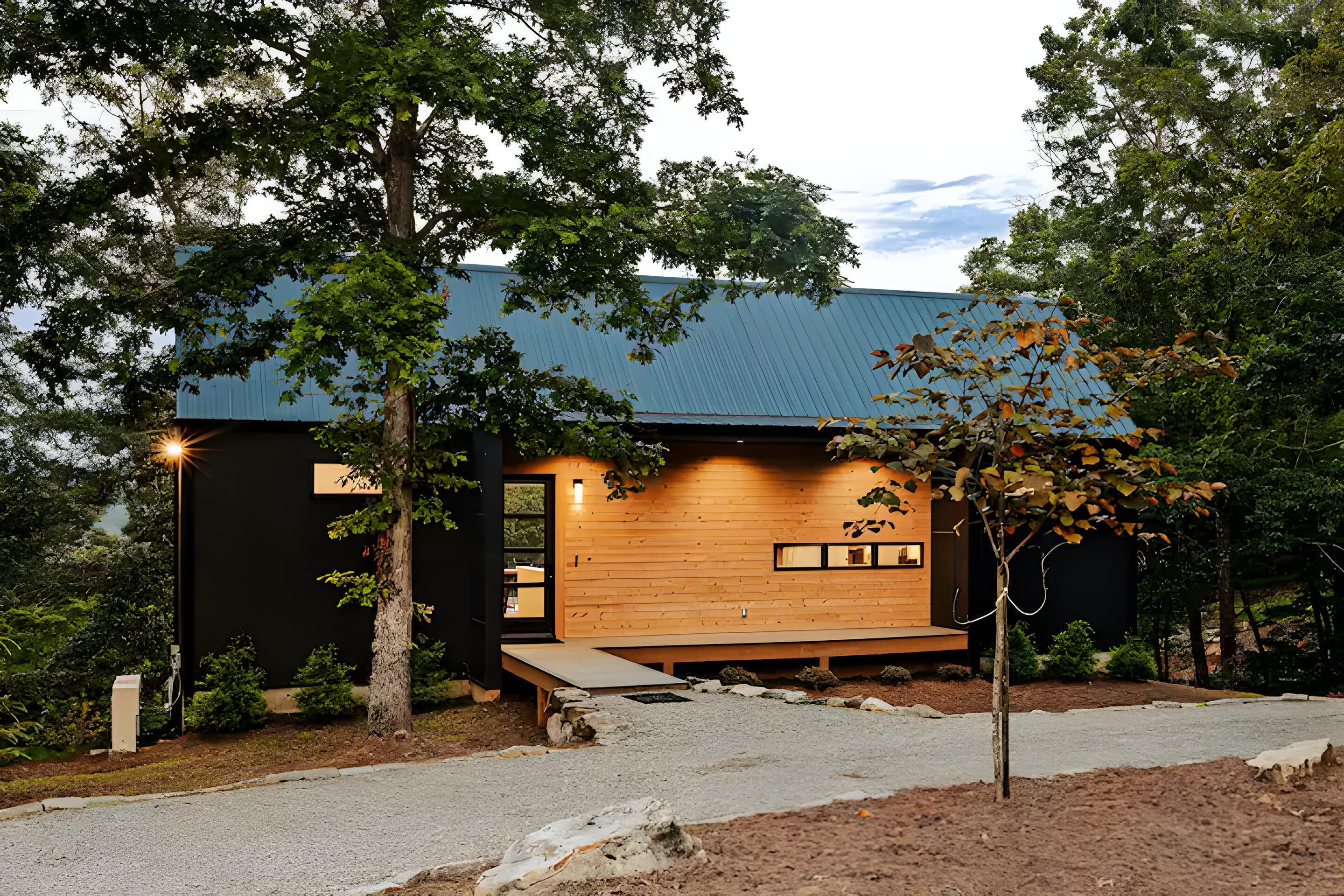 Mountain Mod with Pool & Hot Tub Escape to a stunning contemporary cabin in the North Georgia mountains. This 4-bed, 3-bath retreat sits in an upscale community and offers modern design, comfort, and is the perfect setting for families, friends, or a romantic getaway. Amenities include:- Private hot tub with LED lights and massaging jets- 2 Smart 4K TVs (65in and 75in)- Chefs kitchen with stainless steel appliances- Memory foam mattresses and pillows- Fire pit and heat lamps- Mountain views- Community pool with hot tub1ST FLOORStep into the natural-light filled open concept living room, kitchen and dining area where you'll immediately be greeted with breathtaking views of the mountains through accordion doors. On this floor, you'll find 2 bedrooms with 2 adjoining bathrooms, a chefs kitchen with a waterfall island and bar sitting, and an expansive deck you can step out too to enjoy the fresh air. A full list of amenities includes- 65 in Smart 4K television- Plush living room seating for 5- Dining room seating for 6- Chefs kitchen with stainless steel appliances, cookware, flatware and utensils. - Waterfall island with bar seating for 2- Memory foam mattresses and pillows in each bedroom- Private outdoor patio areas, with seating or a hammock, attached to each bedroom.- 2 spa-like bathrooms- Outdoor sectional with seating for 5- Fire pit and heat lamp- Board and card games2ND FLOORHead downstairs to discover a secondary living space with 2 additional bedrooms, a bathroom and a covered outdoor patio area with additional seating and a lux hot tub with massaging jets. The full list of amenities include the following:- Hot tub with over 40 massaging jets and LED lights - 75 inch Smart 4K television- Large sectional sofa with seating for 6- Game table with seating for 4- Wet bar with refrigerator- Memory foam mattresses and pillows in each bedroom- Private outdoor patio areas, with seating, attached to each bedroom- Additional outdoor seating for 4- Heat lamp- Games: Giant connect 4 and corn holeCOMMUNITY AMENITIESYour exceptional cabin is just the beginning! This upscale community boasts additional amenities that will make your stay unforgettable. Here's what awaits you:- Pool and hot tub (opens May 17th)- Fitness center with row machine and free weights- Sprawling trails- Picnic Tables- Proximity to Restaurants and Attractions: Crane Creek Vineyards, Grandaddy Mimm's Distilling Co., Rollins Planetarium, Enrico's Italian RestaurantSTR License #: 021900