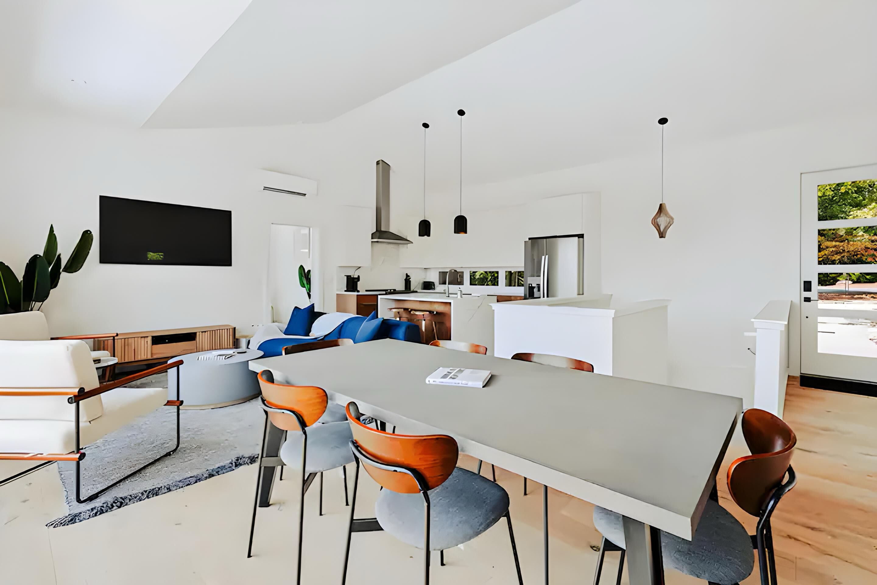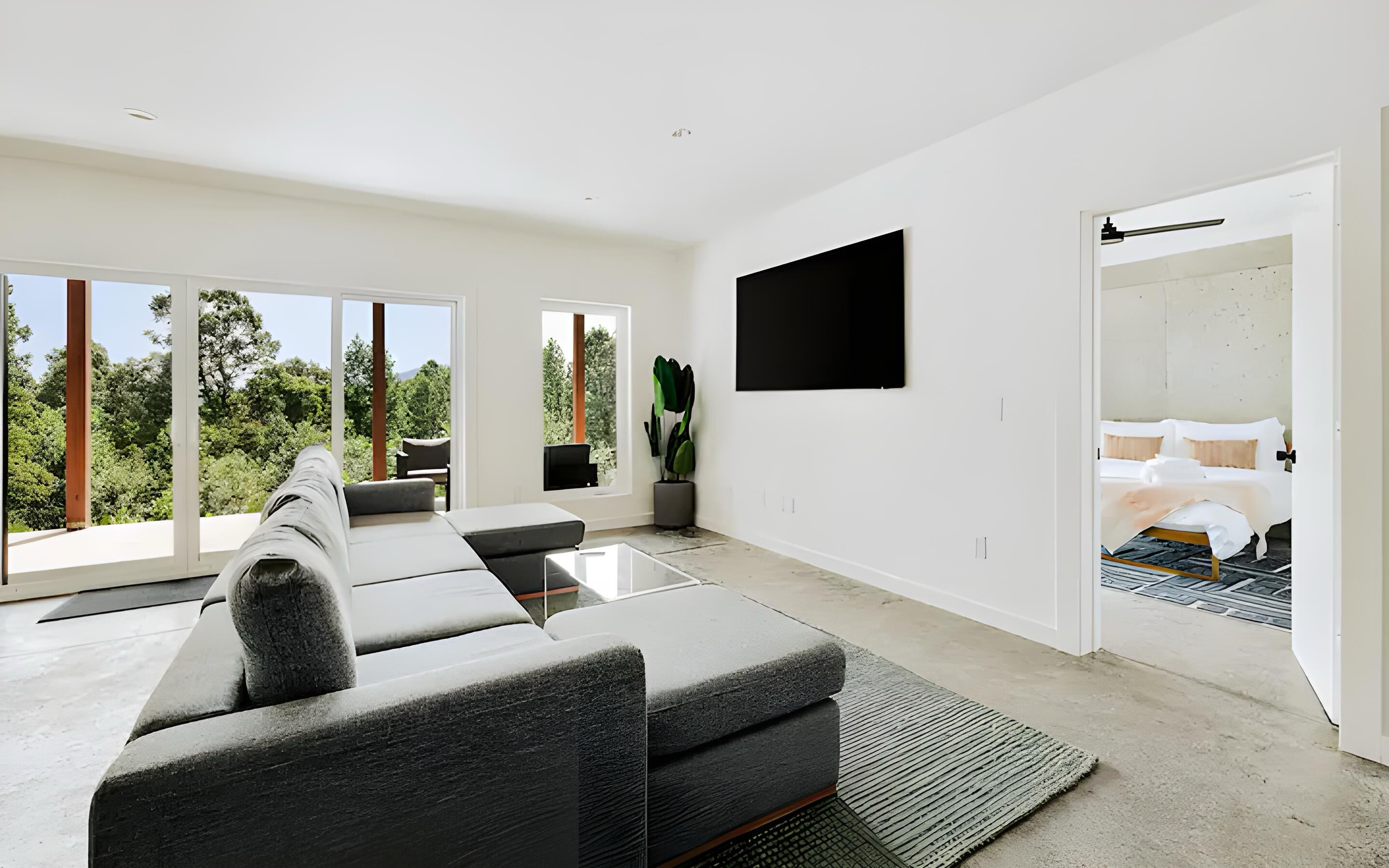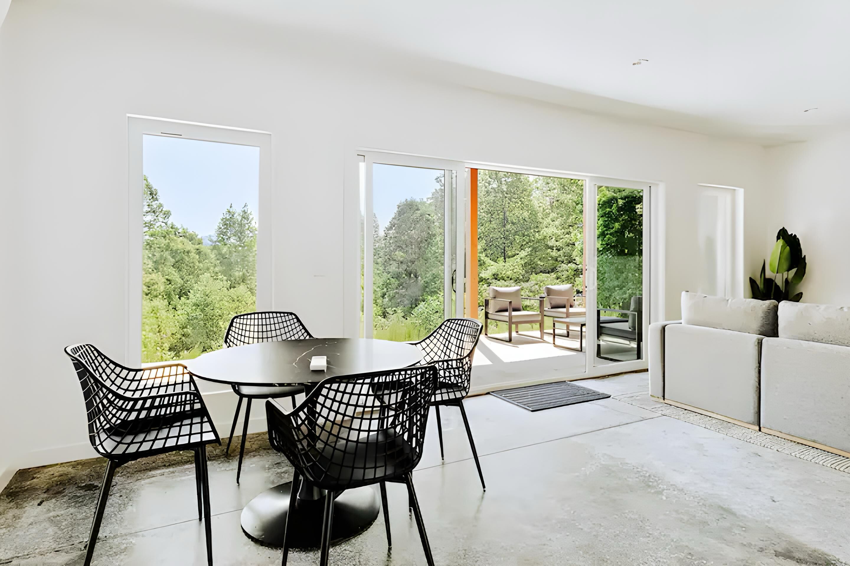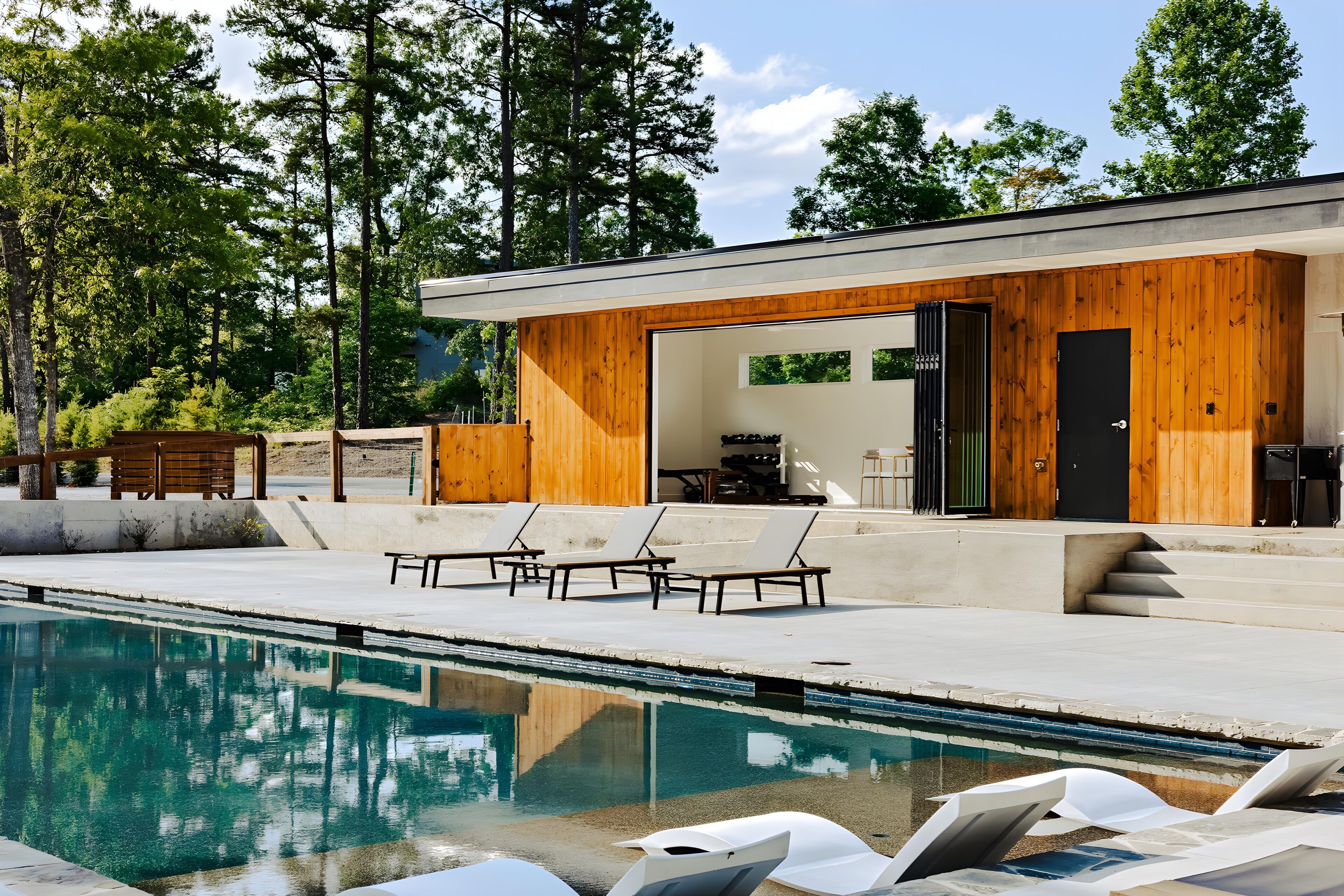 Mountain Mod with Pool & Hot Tub Escape to a stunning contemporary cabin in the North Georgia mountains. This 4-bed, 3-bath retreat sits in an upscale community and offers modern design, comfort, and is the perfect setting for families, friends, or a romantic getaway. Amenities include:- Private hot tub with LED lights and massaging jets- 2 Smart 4K TVs (65in and 75in)- Chefs kitchen with stainless steel appliances- Memory foam mattresses and pillows- Fire pit and heat lamps- Mountain views- Community pool with hot tub1ST FLOORStep into the natural-light filled open concept living room, kitchen and dining area where you'll immediately be greeted with breathtaking views of the mountains through accordion doors. On this floor, you'll find 2 bedrooms with 2 adjoining bathrooms, a chefs kitchen with a waterfall island and bar sitting, and an expansive deck you can step out too to enjoy the fresh air. A full list of amenities includes- 65 in Smart 4K television- Plush living room seating for 5- Dining room seating for 6- Chefs kitchen with stainless steel appliances, cookware, flatware and utensils. - Waterfall island with bar seating for 2- Memory foam mattresses and pillows in each bedroom- Private outdoor patio areas, with seating or a hammock, attached to each bedroom.- 2 spa-like bathrooms- Outdoor sectional with seating for 5- Fire pit and heat lamp- Board and card games2ND FLOORHead downstairs to discover a secondary living space with 2 additional bedrooms, a bathroom and a covered outdoor patio area with additional seating and a lux hot tub with massaging jets. The full list of amenities include the following:- Hot tub with over 40 massaging jets and LED lights - 75 inch Smart 4K television- Large sectional sofa with seating for 6- Game table with seating for 4- Wet bar with refrigerator- Memory foam mattresses and pillows in each bedroom- Private outdoor patio areas, with seating, attached to each bedroom- Additional outdoor seating for 4- Heat lamp- Games: Giant connect 4 and corn holeCOMMUNITY AMENITIESYour exceptional cabin is just the beginning! This upscale community boasts additional amenities that will make your stay unforgettable. Here's what awaits you:- Pool and hot tub (opens May 17th)- Fitness center with row machine and free weights- Sprawling trails- Picnic Tables- Proximity to Restaurants and Attractions: Crane Creek Vineyards, Grandaddy Mimm's Distilling Co., Rollins Planetarium, Enrico's Italian RestaurantSTR License #: 021900