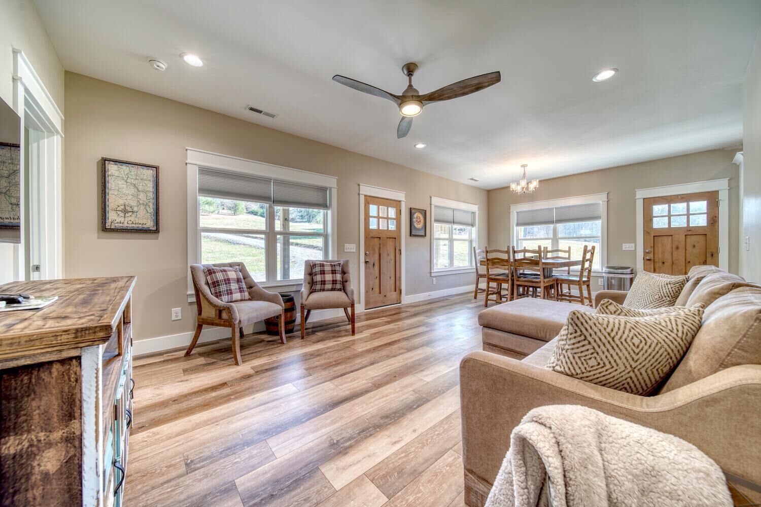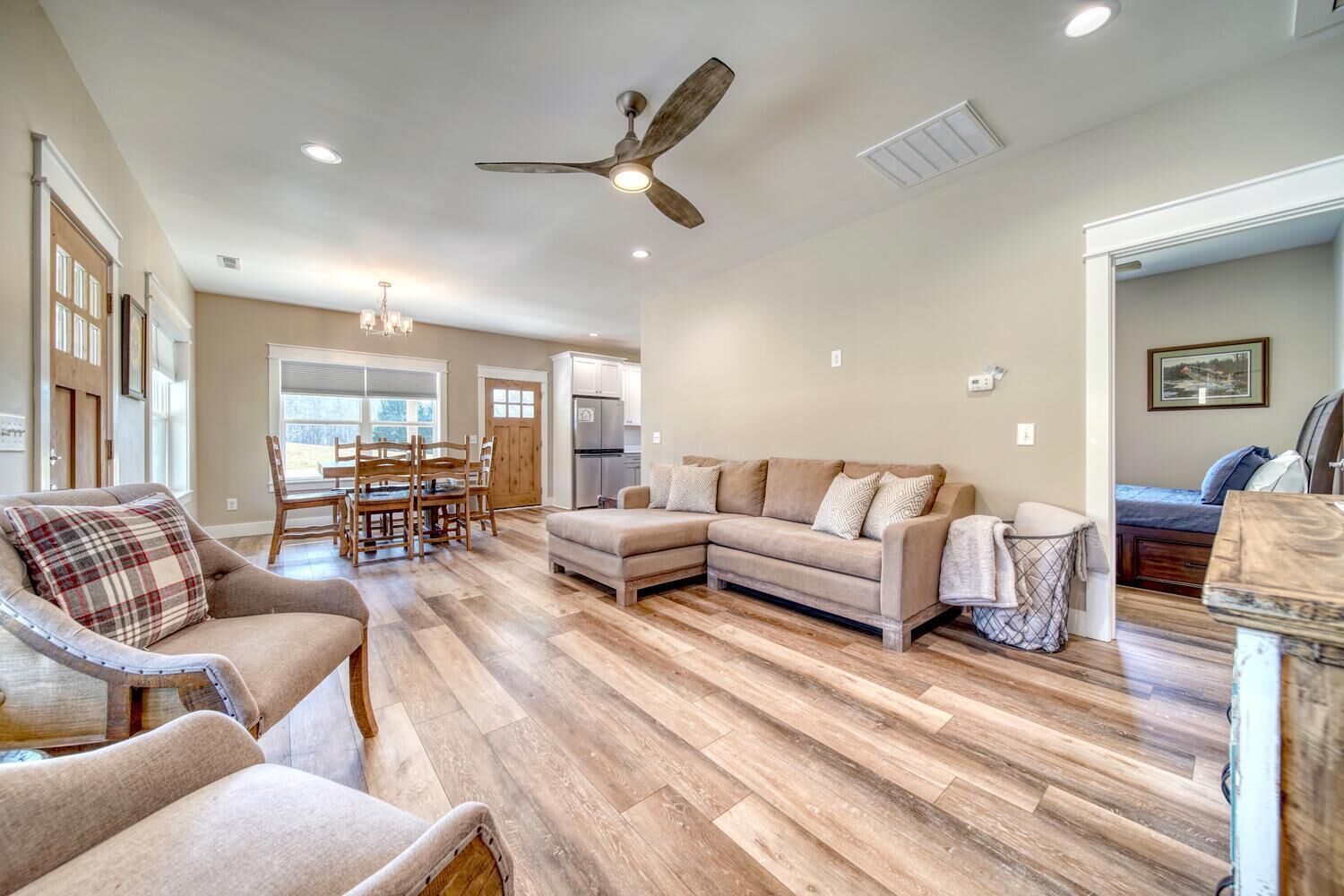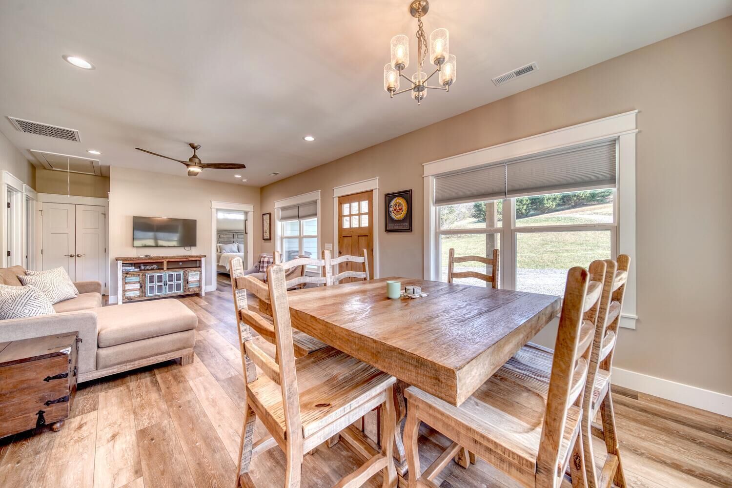 Cottage on Crane Creek Cottage on the Creek is a beautiful and newly constructed home, designed to provide a delightful experience for your entire family. From the moment you step inside, you'll be greeted by a fresh and inviting atmosphere, with the added comfort of brand new furnishings and mattresses.The highlight of this charming cottage is its proximity to a picturesque creek, offering a serene and peaceful setting for your family to enjoy. Spend quality time together playing in the clear waters of the creek, splashing around, or simply basking in the natural beauty that surrounds you. Imagine the joy of watching the sun rise from the comfort of the front porch, where you can sip your morning coffee and soak in the breathtaking views.yInside, you'll find ample space to relax and unwind. The cottage features three bedrooms, each thoughtfully designed to provide comfort and privacy. Two of the bedrooms are furnished with cozy queen beds, offering a restful retreat for adults. The third bedroom is perfect for the younger members of your family, featuring a twin over full bunk bed that can accommodate multiple children or teenagers.The cottage is tastefully decorated, creating a warm and welcoming ambiance. The open-concept living area allows for easy interaction and socializing, whether you're preparing a meal in the fully equipped kitchen, lounging in the comfortable seating area, or enjoying a family meal at the dining table. The large windows invite natural light to fill the space, further enhancing the airy and cheerful atmosphere.Cottage on the Creek provides not only a comfortable and stylish accommodation but also a gateway to create lasting memories with your loved ones. Whether you're exploring the surrounding natural wonders, indulging in outdoor activities, or simply enjoying quality time together within the cozy confines of this delightful cottage, this place offers the perfect blend of relaxation, adventure, and family bonding.We do allow pets at the cottage, NO cats. There is a $100 pet fee per dog.