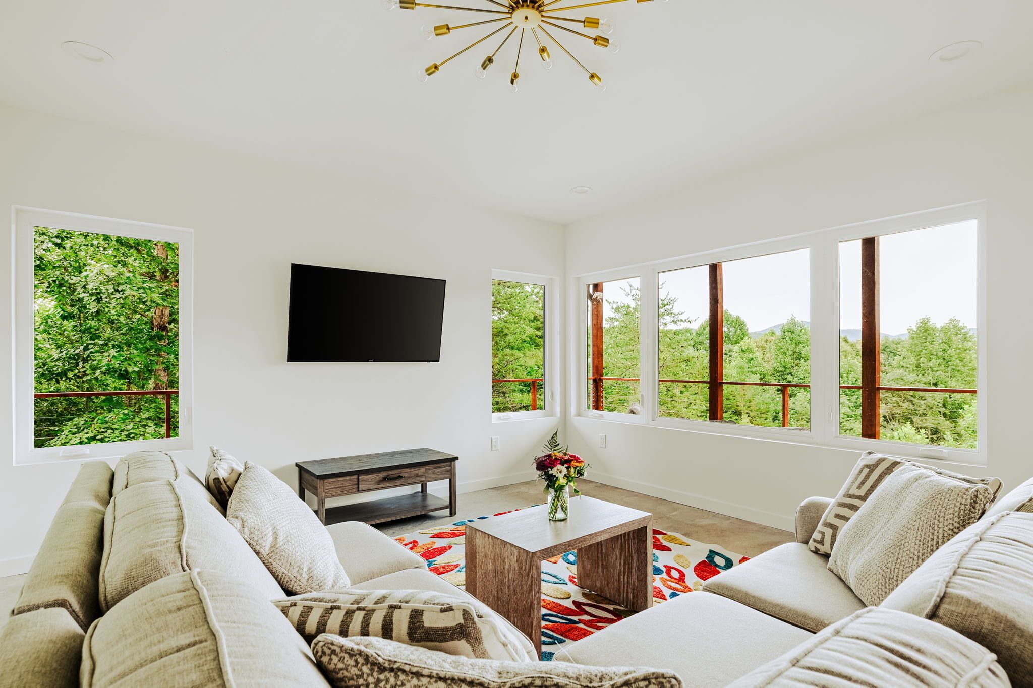Serenity Now! 4 Bedroom 3.5 Bath....Amazing Views!!! "Serenity Now" invites you to leave behind the hustle and bustle of daily life and immerse yourself in the serene embrace of the North Georgia mountains. With 4 generously appointed bedrooms and 3.5 baths, this vacation rental property offers a haven of comfort and relaxation.At "Serenity Now," time slows down, and the worries of the world fade away. This is your opportunity to experience the magic of the North GA mountainsUnion County STR License #033480 Located in an upscale community of eco-chic modern mountain retreats called The Nest at Brannon Ridge Reserve. Community amenities include a pool with spa, fire pit, picnic pavilion, and community walking trail. Convenient access to Blairsville and Murphy for all of your needs like grocery stores, shopping, and restaurants. After booking an email will be sent with digital links to information that must be provided in order to stay, Failure to provide this information within 48 hours of check in will result in cancellation of booking and forfeiture of any booking feesThese include:Pre-Arrival FormAgreement to the Rental Conditions The Mere Pool and Gym Facilities: Acceptance and Acknowledgement of Rules and Waiver and Release of LiabilityFailure to provide this information within 48 hours of check in will result in cancellation of booking and forfeiture and any booking fees•Parking-Max of 3 cars• NO PETS on premises. Violation of this policy will result in immediate eviction from the property and a $200 fine plus cleaning costs necessary to restore the property•Maximum overnight occupancy is 8 people. Violators will be immediately evicted from the property with no refunds.• NO SMOKING in unit/house as well as the balcony. Any violation of the smoking policy will incur a $200.00 fine plus the cleaning costs necessary to remove smoke odors from the unit/house and/or linens.• Quiet hours are observed from 9 pm-8 am. Violators will be charged a $200 fine. This property may use NoiseWare technology to ensure the comfort and security of the guest. Tampering with the device is strictly prohibited and will result in a $200 fine.• Please note: We are not responsible for any accidents, injuries, as well as stolen or damaged items that occur while on the premises, its facilities or parking lots.• Traveler must be at least 21 years of age to make a reservation.• State Identification Card or Driver License copy will be requested upon booking.• Please respect COVID-19 social distancing.NO PARTIES OR GATHERINGS. There is a $500 fine if you violate this policy.Noise disturbances will not be tolerated and will result in you vacating the premises. All guests must comply with Union County noise ordinance sent to them in advance and posted in the home.•This home is equipped with video surveillance on the outside of the home. Located at front door. The interior does NOT have video surveillance, but does have motion sensors to detect intruders when the home is vacant. The rental is also equipped with noise detect• Community pool and hot tub are open seasonally and weather dependent, from May - October. Hot tub is heated on Friday and Saturday nights from 4-6 pm