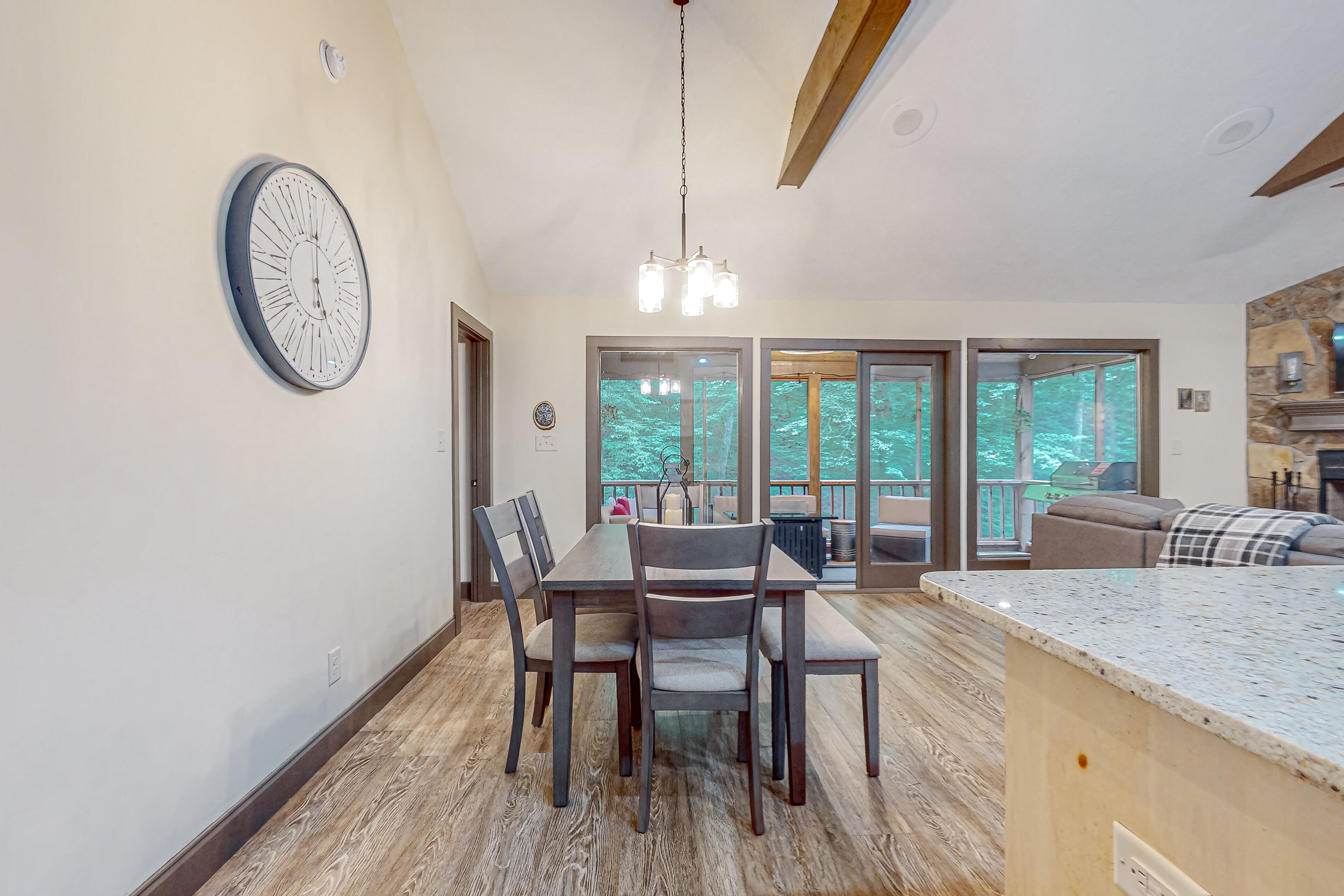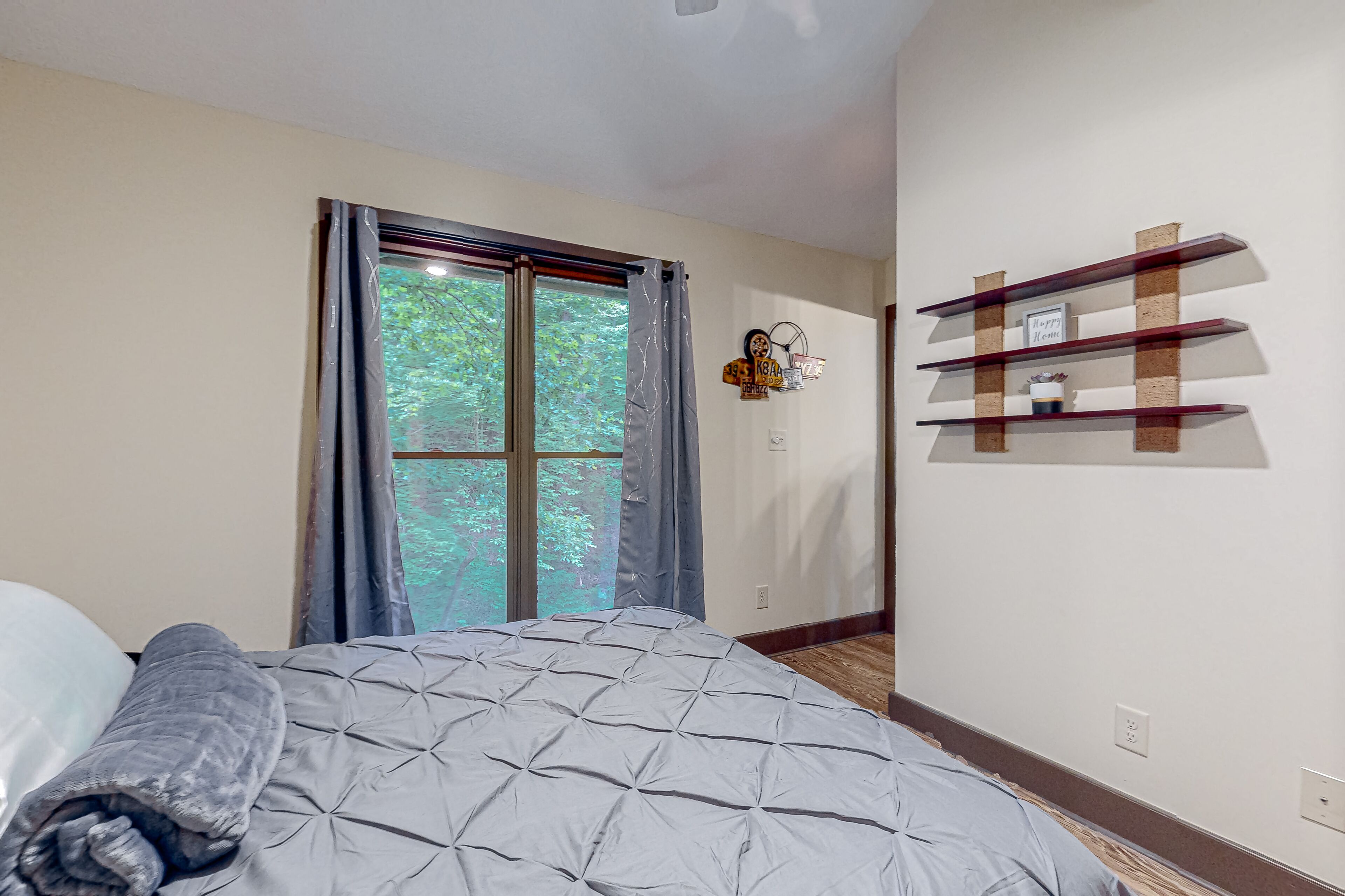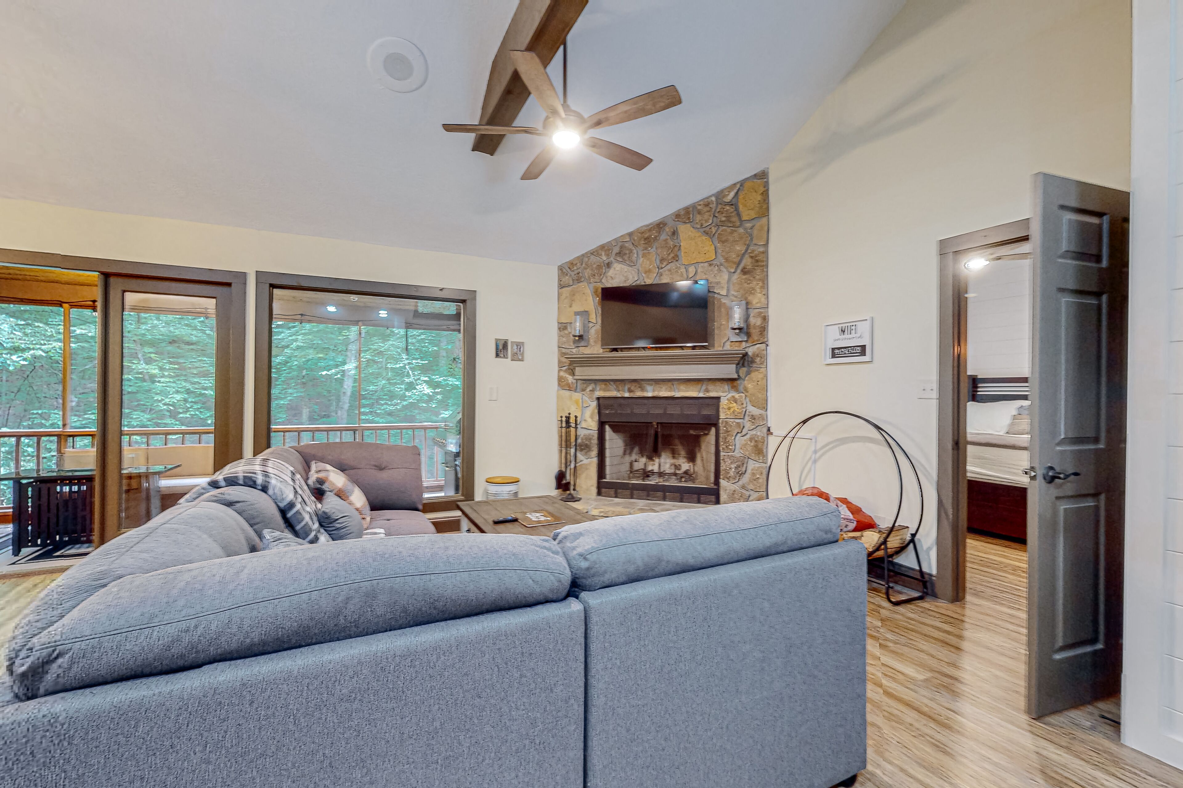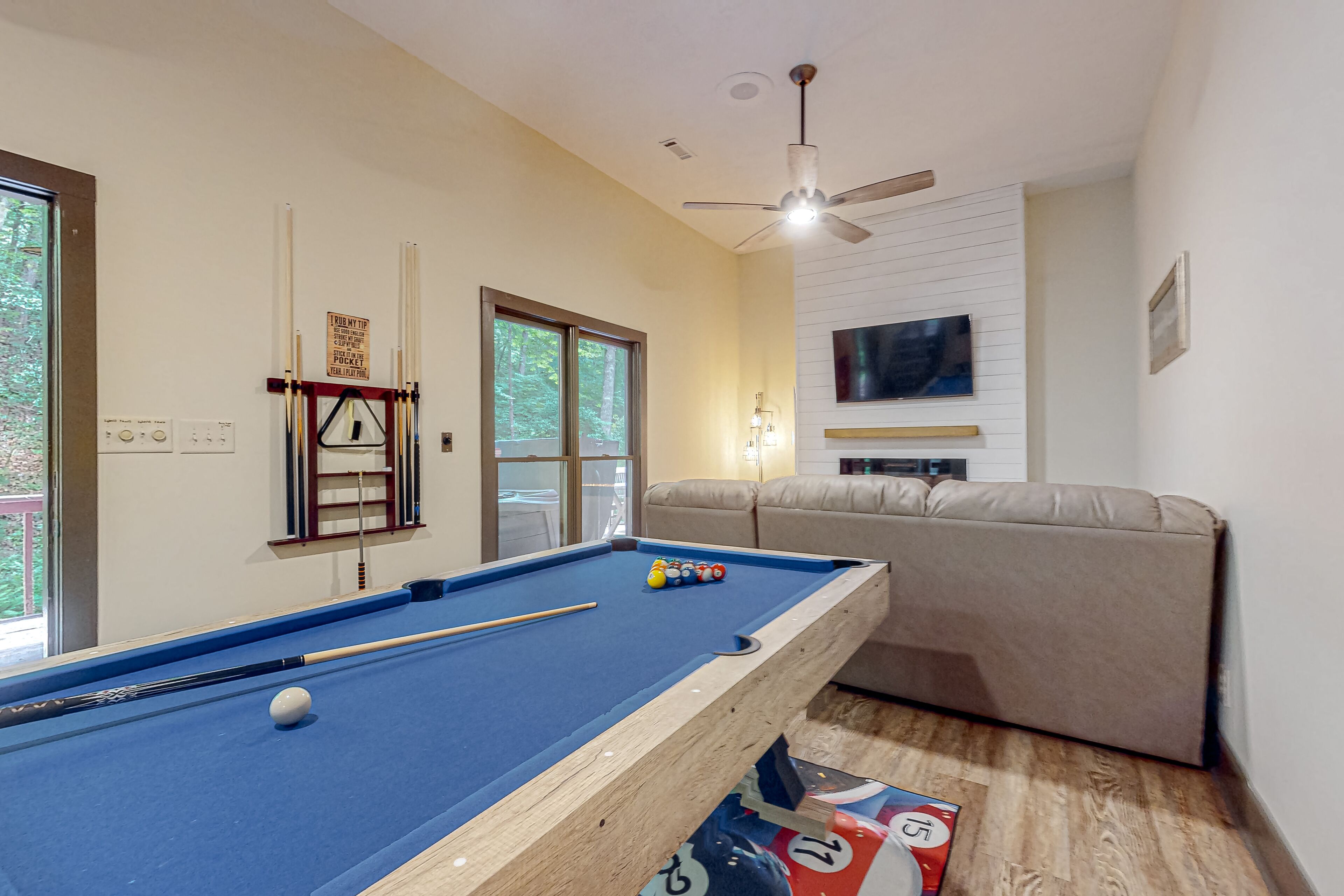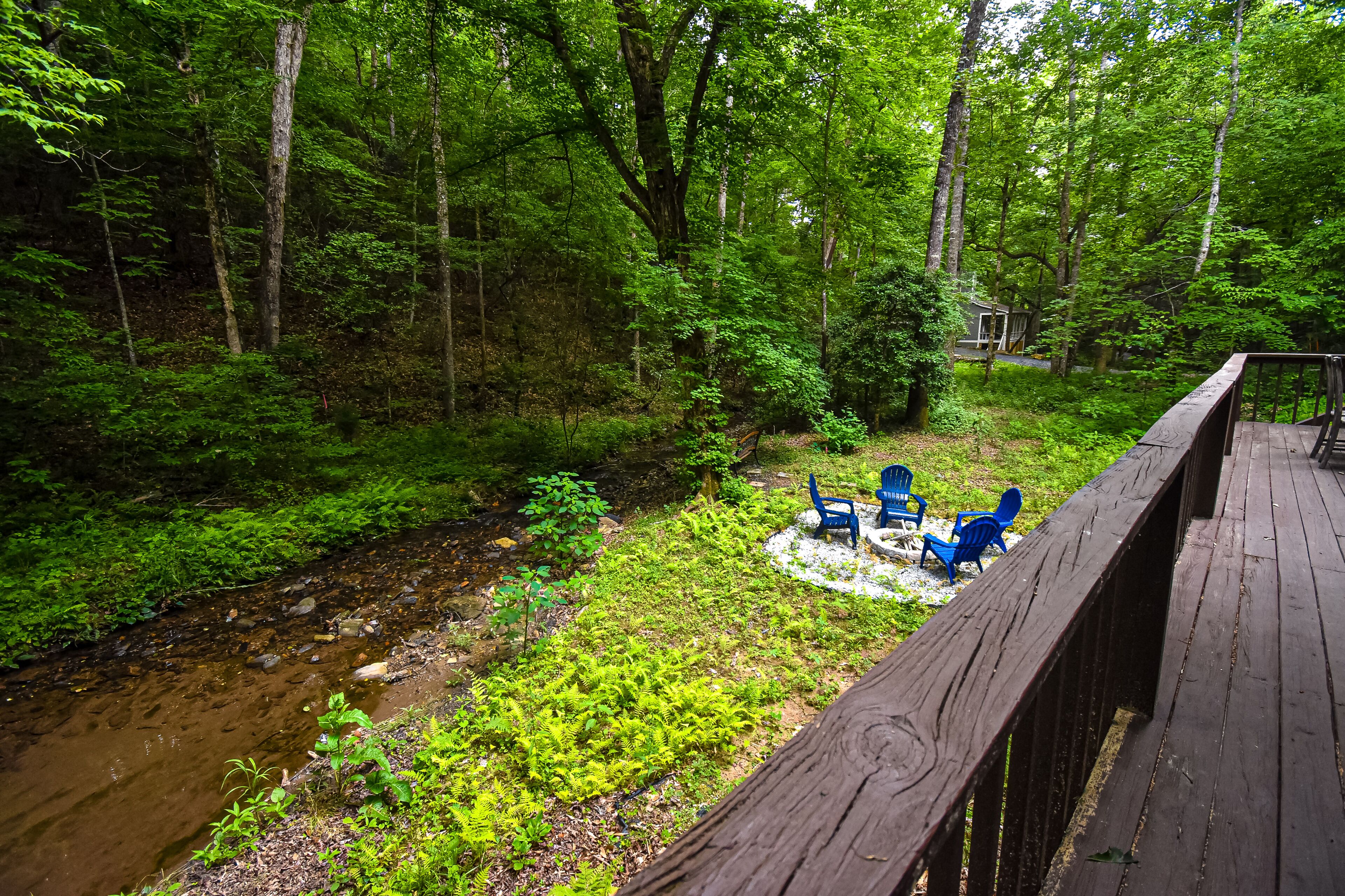 Waterfront cabin with private hot tub, fireplace, pool table, grill & firepit Creekside GetawayOur calendar is updated in real-time & our nightly rates are accurately displayed. Simply enter your desired dates and click 'Book Now!'Take some time to relax and reconnect with nature at this beautifully furnished cabin on Emerson Branch! This unbeatable and unique location gives you direct access to the creek, the sounds of which can be heard from both decks. Outdoor enthusiasts will appreciate being so close to fantastic activities, including boating, fishing, paddleboarding, kayaking, canoeing, camping, hiking, golfing, and horseback riding.Located within six and a half miles are the Georgia Mountain Fair & Fair Grounds, home to live entertainment, concerts, festivals, and Hamilton Gardens. Lake Chatuge is a man-made reservoir with 132 miles of shoreline set to the backdrop of the Appalachian Mountains, just six miles away. Residents and visitors flock to Towns County during peak season for the boating, swimming, skiing, fishing, and camping opportunities this beautiful lake hosts. Located off Highway 76, the Towns County Recreational Beach offers free parking and beach access with a large playground, a roped-off swimming area, a covered pavilion, picnic tables, and chair rentals. Other must-visit attractions include the Appalachian Trail, Bell Mountain, Brasstown Bald, and High Shoals Falls.As soon as you enter this creekside home, you'll be welcomed by a spacious, open floor plan with vaulted ceilings, exposed wood beams, and plenty of light. The well-equipped kitchen has everything you need to prepare full-course meals or quick snacks on the go. Keurig and drip coffee makers are available and ready to please the coffee enthusiasts in your group. Enjoy a homemade feast, then retreat to the welcoming living area furnished with comfy sofas in front of a gorgeous wood-burning fireplace. Watch a favorite movie or show on the large TV or break out any of the provided board games for an entertaining evening at home. The enclosed deck off the living area offers a lovely space to unwind around the fire table or host memorable barbecues using the gas grill.The lower level is home to an entertaining recreation area with a pool table, a dartboard, and cozy seating in front of a TV and electric fireplace. From here, you can easily access the deck with a private hot tub and forest views. There's nothing like coming home from a day of exploring the area to treat yourself to a soothing soak in the hot tub followed by a bit of quiet reading in the secluded reading nook.Things to KnowCheck-in time: 4:00 p.m.Check-out time: 10:00 a.m.All guests shall abide by Vacasa’s good neighbor policy and shall not engage in illegal activity. Quiet hours are from 10:00 p.m. to 8:00 a.m.No smoking is permitted anywhere on the premises.If you are bringing a dog on your trip, the pet fee is already included in your quote when selecting ‘Yes’ to pets. No more dogs are allowed.Parking notes: There is free parking available for 2 vehicles.Security camera details: Camera 1- front corner of house pointed to driveway Camera 2- front porch corner pointed towards driveway and roadCamera 3- back porch deck pointed towards creek and fire pit All motion detected and recording live. Please note: this home resides in a noise-sensitive area and the owners participate in our Good Neighbor protection program. Our smart home technology will alert our team if excessive decibel or occupancy levels are detected, allowing us to reach out directly with a reminder of maximum occupancy and quiet hours. This technology is privacy compliant, and only monitors the presence of decibels and devices-not any personal conversation or information. Thank you for supporting our efforts to be good neighbors!Damage waiver: The total cost of your reservation for this Property includes a nightly damage waiver fee, plus tax if applicable (the “Damage Waiver”). (A discount may be applied for stays of 28 nights or longer, if permitted.) The Damage Waiver covers you for up to $3,000 of accidental damage to the Property or its contents (such as furniture, fixtures, and appliances) as long as you report the incident to the host prior to checking out. The Damage Waiver fee eliminates the need for a traditional security deposit.More information can be downloaded from the "Rental Agreement" on the checkout page.Due to local laws or HOA requirements, guests must be at least 25 years of age to book. Guests under 25 must be accompanied by a parent or legal guardian for the duration of the reservation.