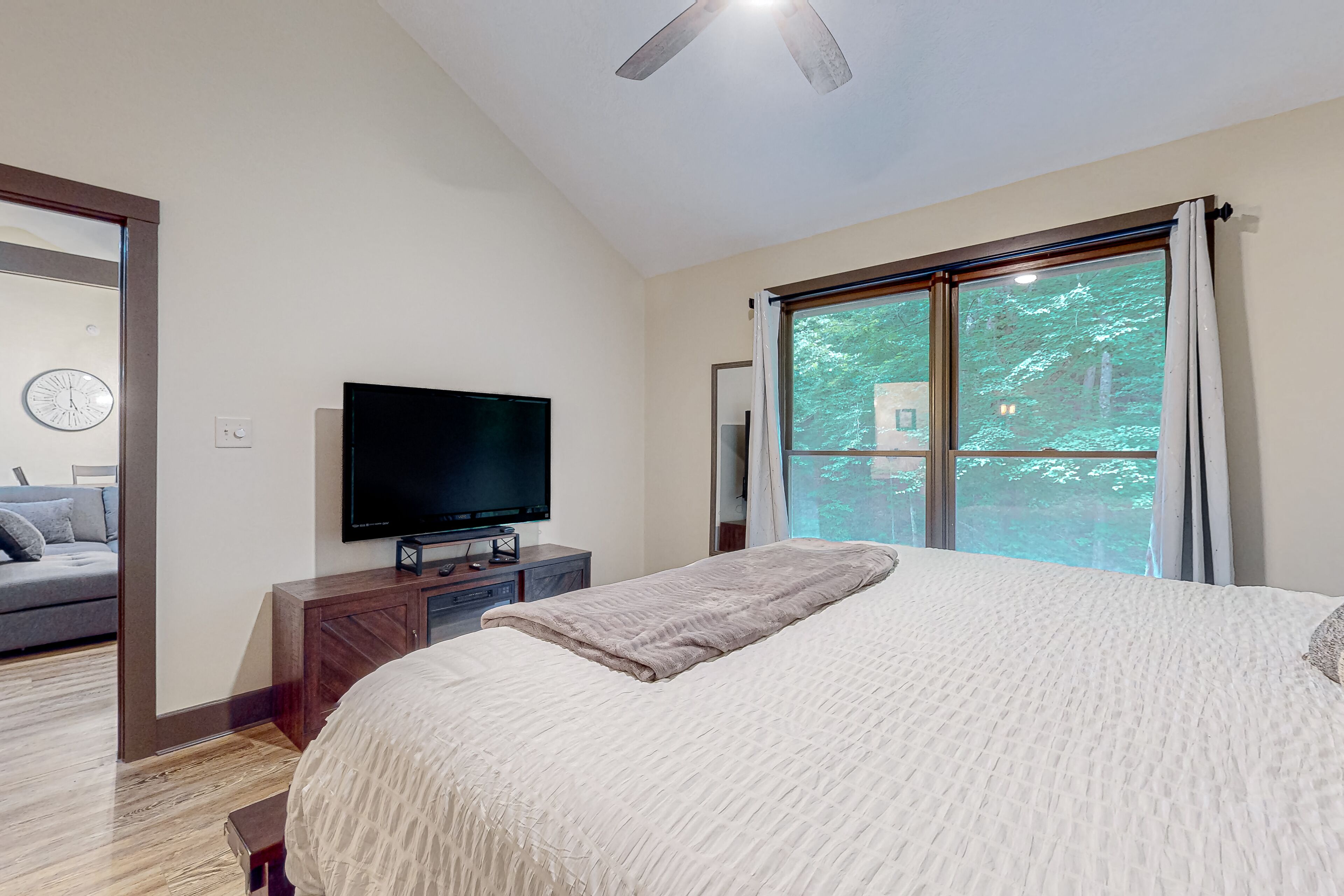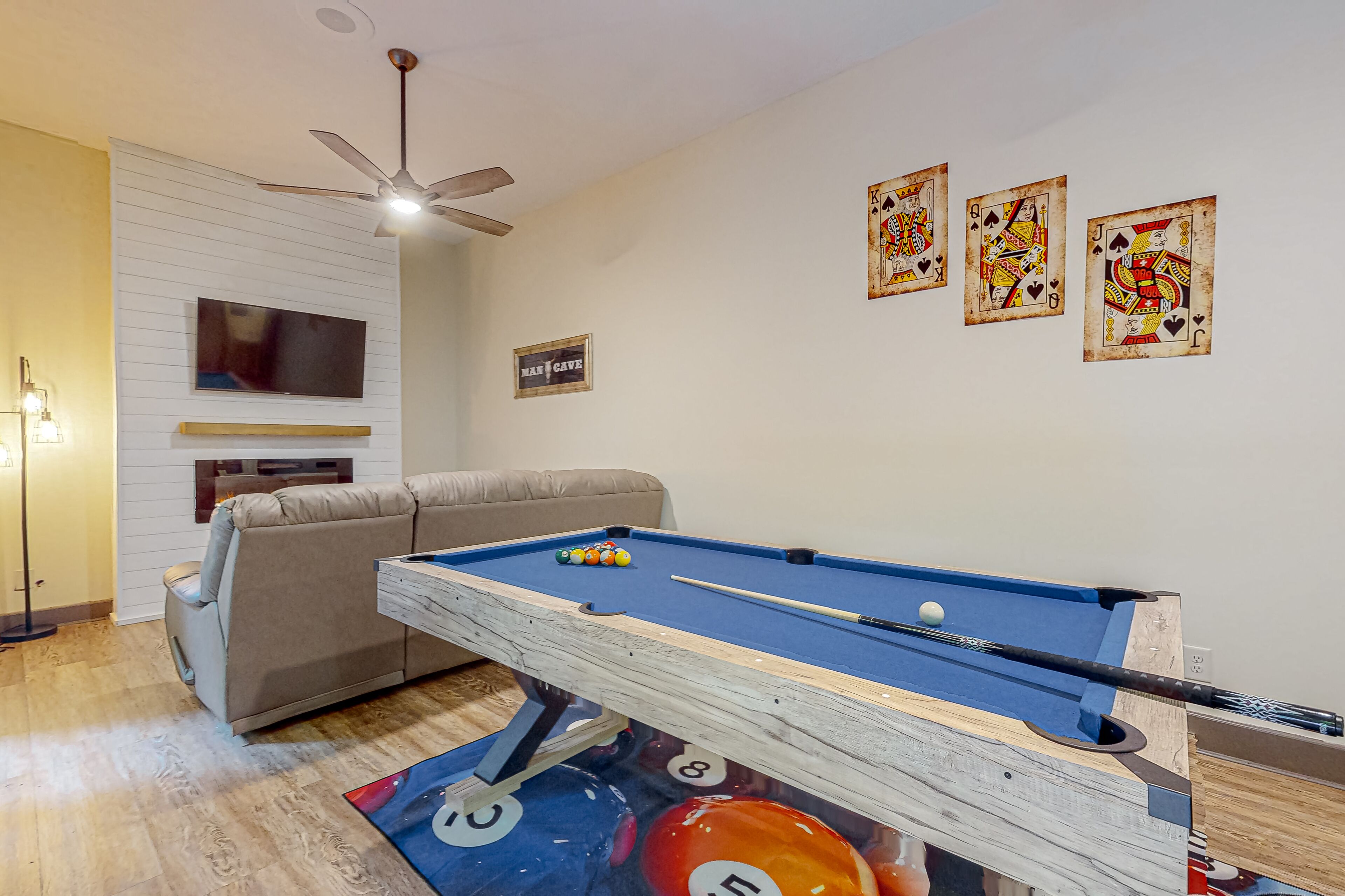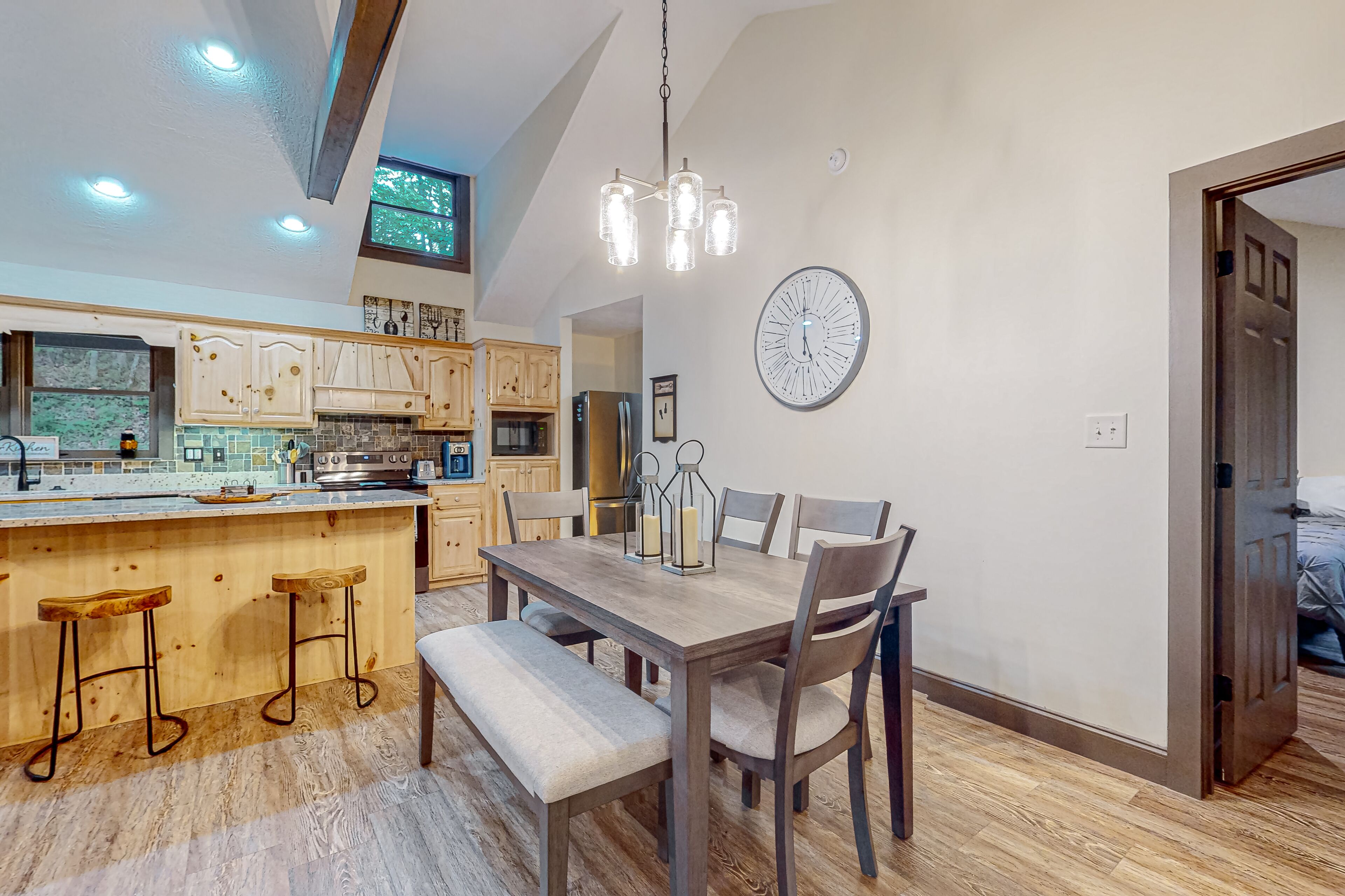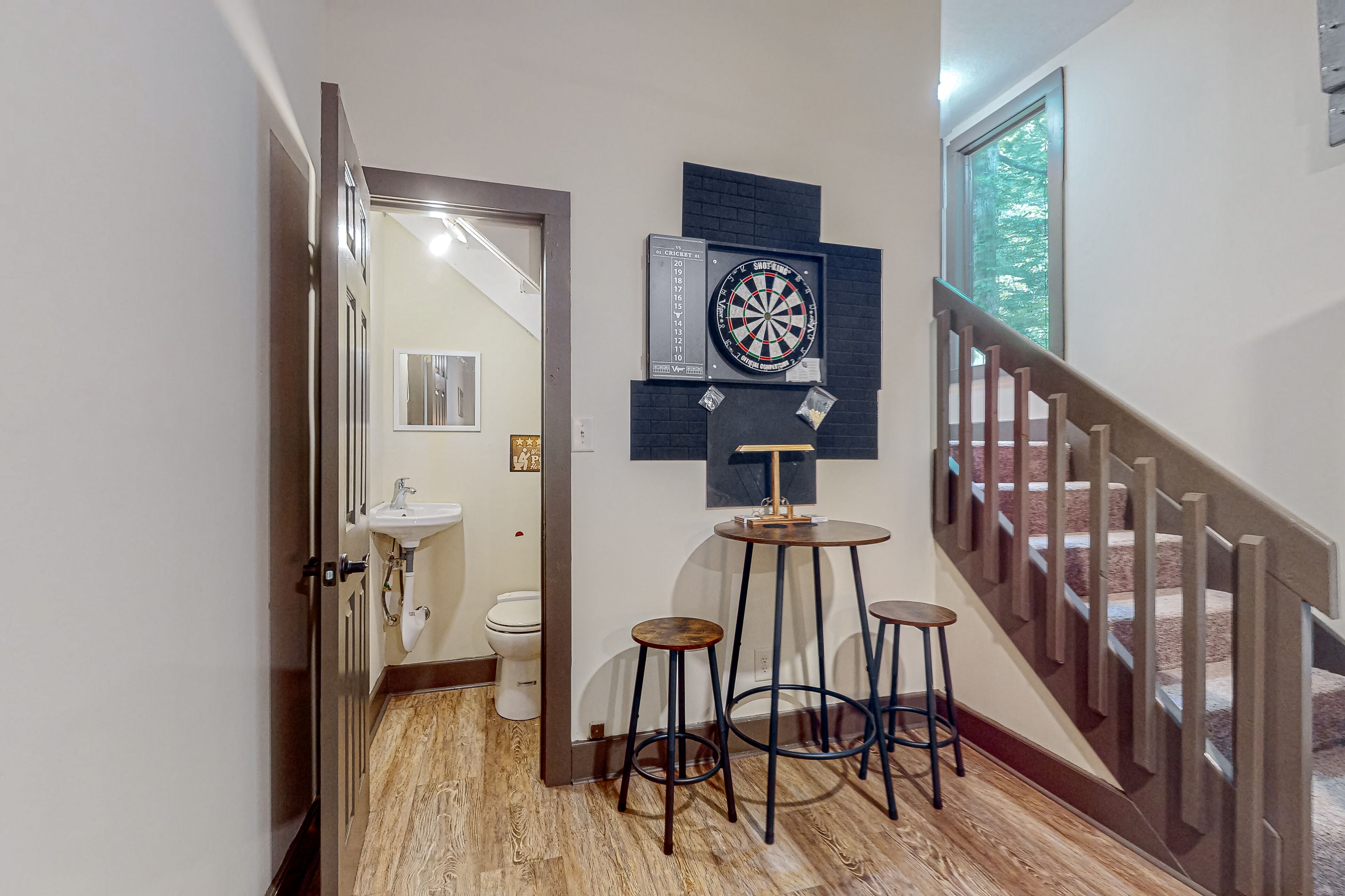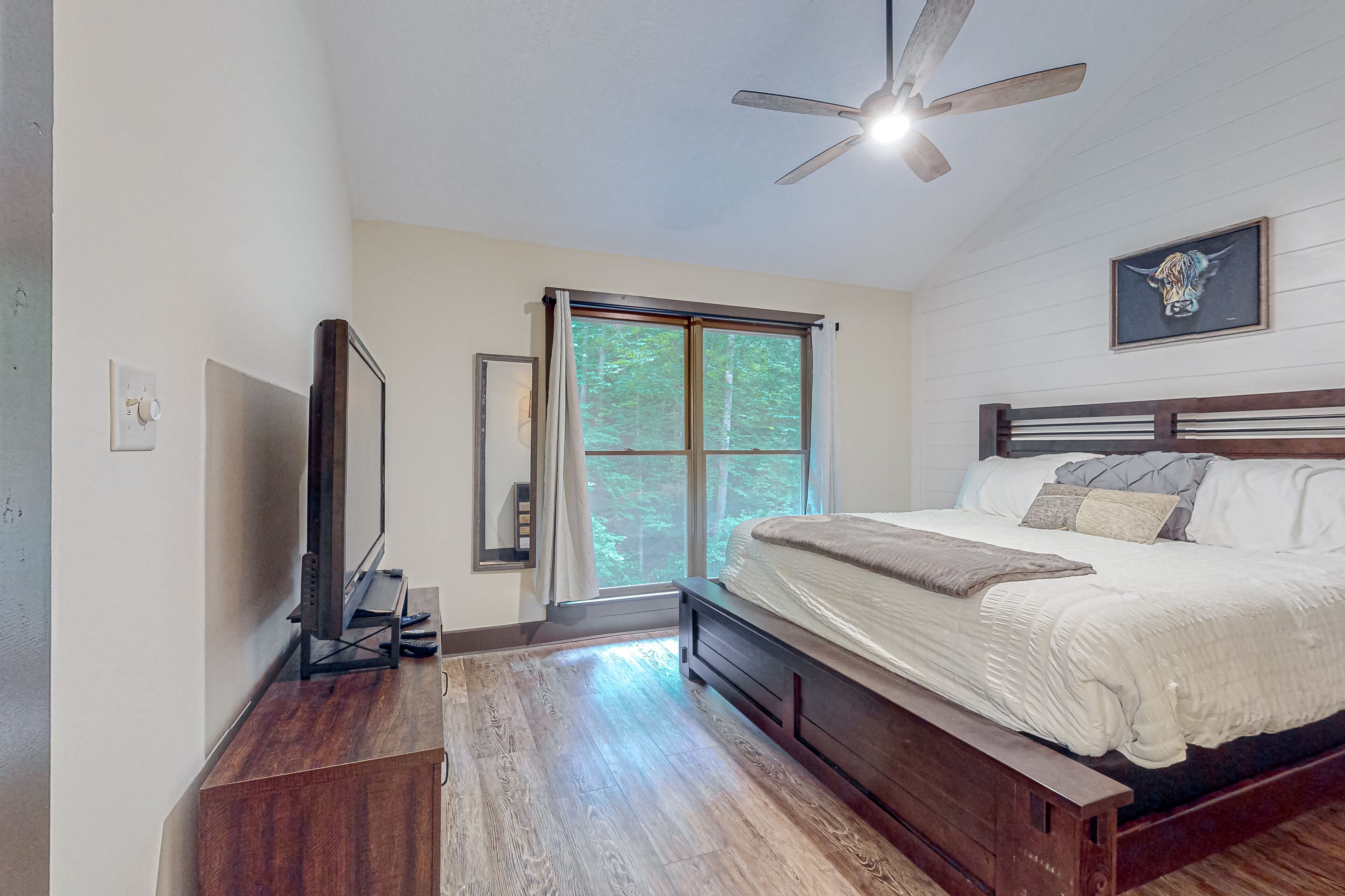 Waterfront cabin with private hot tub, fireplace, pool table, grill & firepit Creekside GetawayOur calendar is updated in real-time & our nightly rates are accurately displayed. Simply enter your desired dates and click 'Book Now!'Take some time to relax and reconnect with nature at this beautifully furnished cabin on Emerson Branch! This unbeatable and unique location gives you direct access to the creek, the sounds of which can be heard from both decks. Outdoor enthusiasts will appreciate being so close to fantastic activities, including boating, fishing, paddleboarding, kayaking, canoeing, camping, hiking, golfing, and horseback riding.Located within six and a half miles are the Georgia Mountain Fair & Fair Grounds, home to live entertainment, concerts, festivals, and Hamilton Gardens. Lake Chatuge is a man-made reservoir with 132 miles of shoreline set to the backdrop of the Appalachian Mountains, just six miles away. Residents and visitors flock to Towns County during peak season for the boating, swimming, skiing, fishing, and camping opportunities this beautiful lake hosts. Located off Highway 76, the Towns County Recreational Beach offers free parking and beach access with a large playground, a roped-off swimming area, a covered pavilion, picnic tables, and chair rentals. Other must-visit attractions include the Appalachian Trail, Bell Mountain, Brasstown Bald, and High Shoals Falls.As soon as you enter this creekside home, you'll be welcomed by a spacious, open floor plan with vaulted ceilings, exposed wood beams, and plenty of light. The well-equipped kitchen has everything you need to prepare full-course meals or quick snacks on the go. Keurig and drip coffee makers are available and ready to please the coffee enthusiasts in your group. Enjoy a homemade feast, then retreat to the welcoming living area furnished with comfy sofas in front of a gorgeous wood-burning fireplace. Watch a favorite movie or show on the large TV or break out any of the provided board games for an entertaining evening at home. The enclosed deck off the living area offers a lovely space to unwind around the fire table or host memorable barbecues using the gas grill.The lower level is home to an entertaining recreation area with a pool table, a dartboard, and cozy seating in front of a TV and electric fireplace. From here, you can easily access the deck with a private hot tub and forest views. There's nothing like coming home from a day of exploring the area to treat yourself to a soothing soak in the hot tub followed by a bit of quiet reading in the secluded reading nook.Things to KnowCheck-in time: 4:00 p.m.Check-out time: 10:00 a.m.All guests shall abide by Vacasa’s good neighbor policy and shall not engage in illegal activity. Quiet hours are from 10:00 p.m. to 8:00 a.m.No smoking is permitted anywhere on the premises.If you are bringing a dog on your trip, the pet fee is already included in your quote when selecting ‘Yes’ to pets. No more dogs are allowed.Parking notes: There is free parking available for 2 vehicles.Security camera details: Camera 1- front corner of house pointed to driveway Camera 2- front porch corner pointed towards driveway and roadCamera 3- back porch deck pointed towards creek and fire pit All motion detected and recording live. Please note: this home resides in a noise-sensitive area and the owners participate in our Good Neighbor protection program. Our smart home technology will alert our team if excessive decibel or occupancy levels are detected, allowing us to reach out directly with a reminder of maximum occupancy and quiet hours. This technology is privacy compliant, and only monitors the presence of decibels and devices-not any personal conversation or information. Thank you for supporting our efforts to be good neighbors!Damage waiver: The total cost of your reservation for this Property includes a nightly damage waiver fee, plus tax if applicable (the “Damage Waiver”). (A discount may be applied for stays of 28 nights or longer, if permitted.) The Damage Waiver covers you for up to $3,000 of accidental damage to the Property or its contents (such as furniture, fixtures, and appliances) as long as you report the incident to the host prior to checking out. The Damage Waiver fee eliminates the need for a traditional security deposit.More information can be downloaded from the "Rental Agreement" on the checkout page.Due to local laws or HOA requirements, guests must be at least 25 years of age to book. Guests under 25 must be accompanied by a parent or legal guardian for the duration of the reservation.