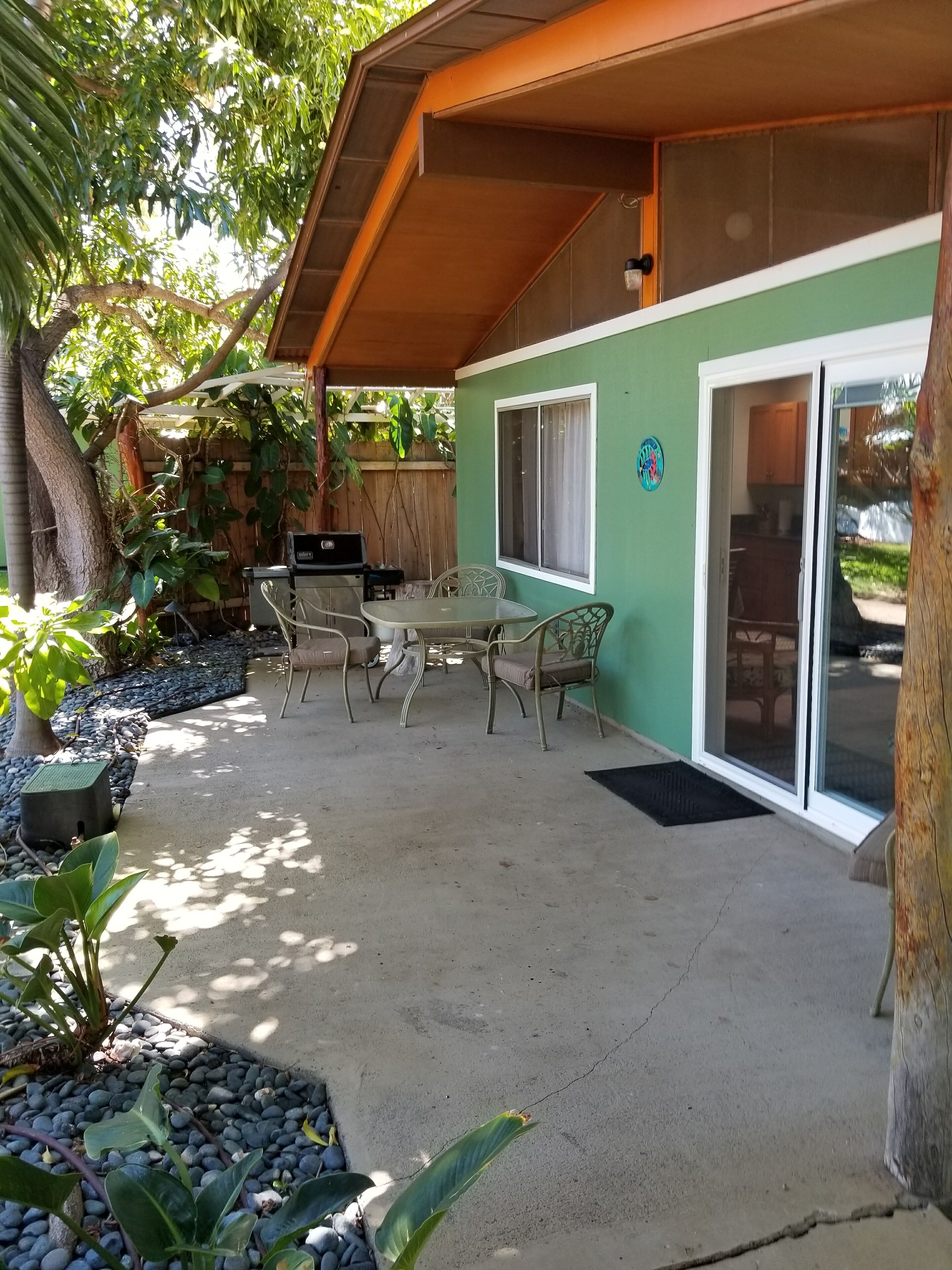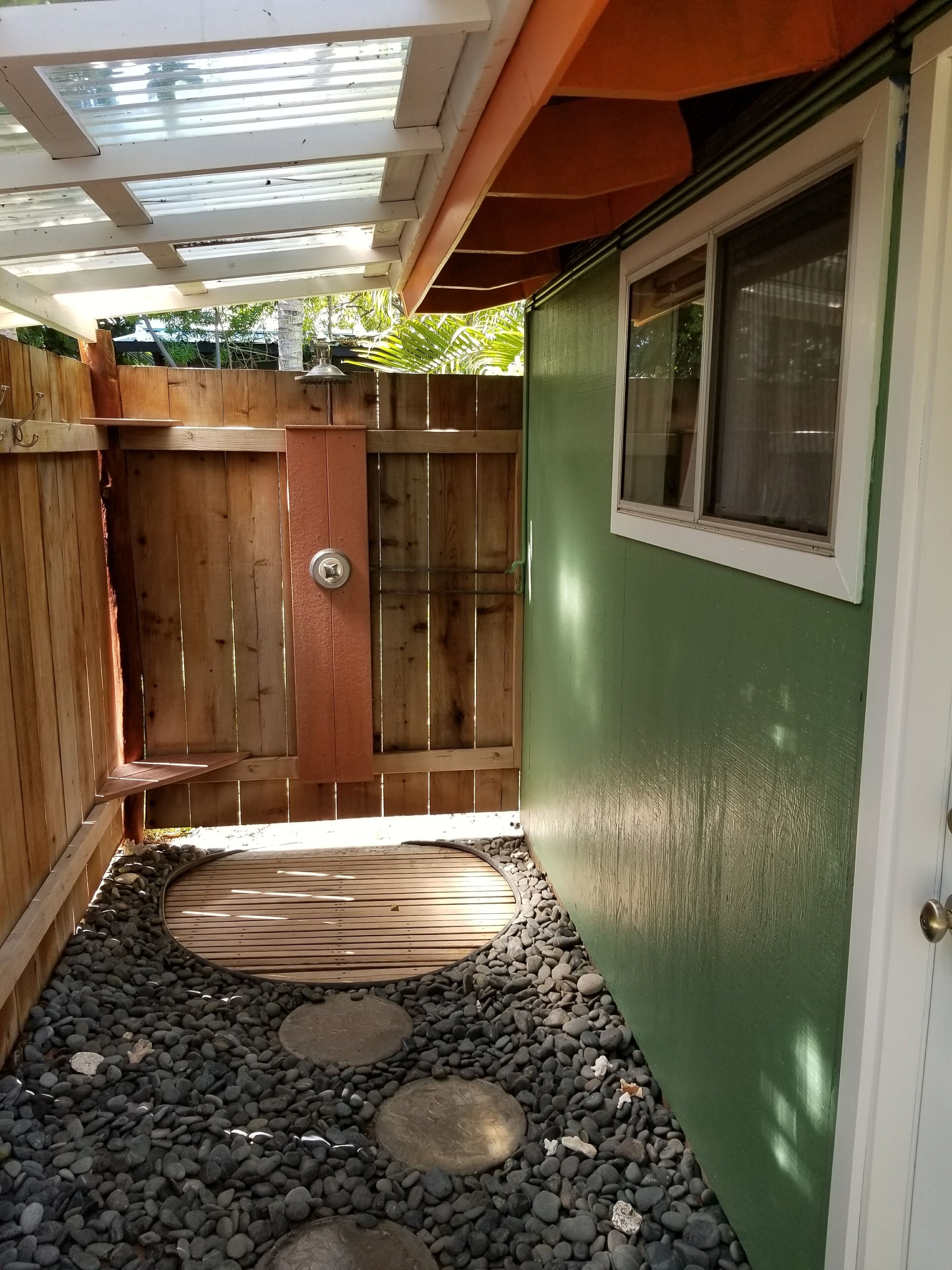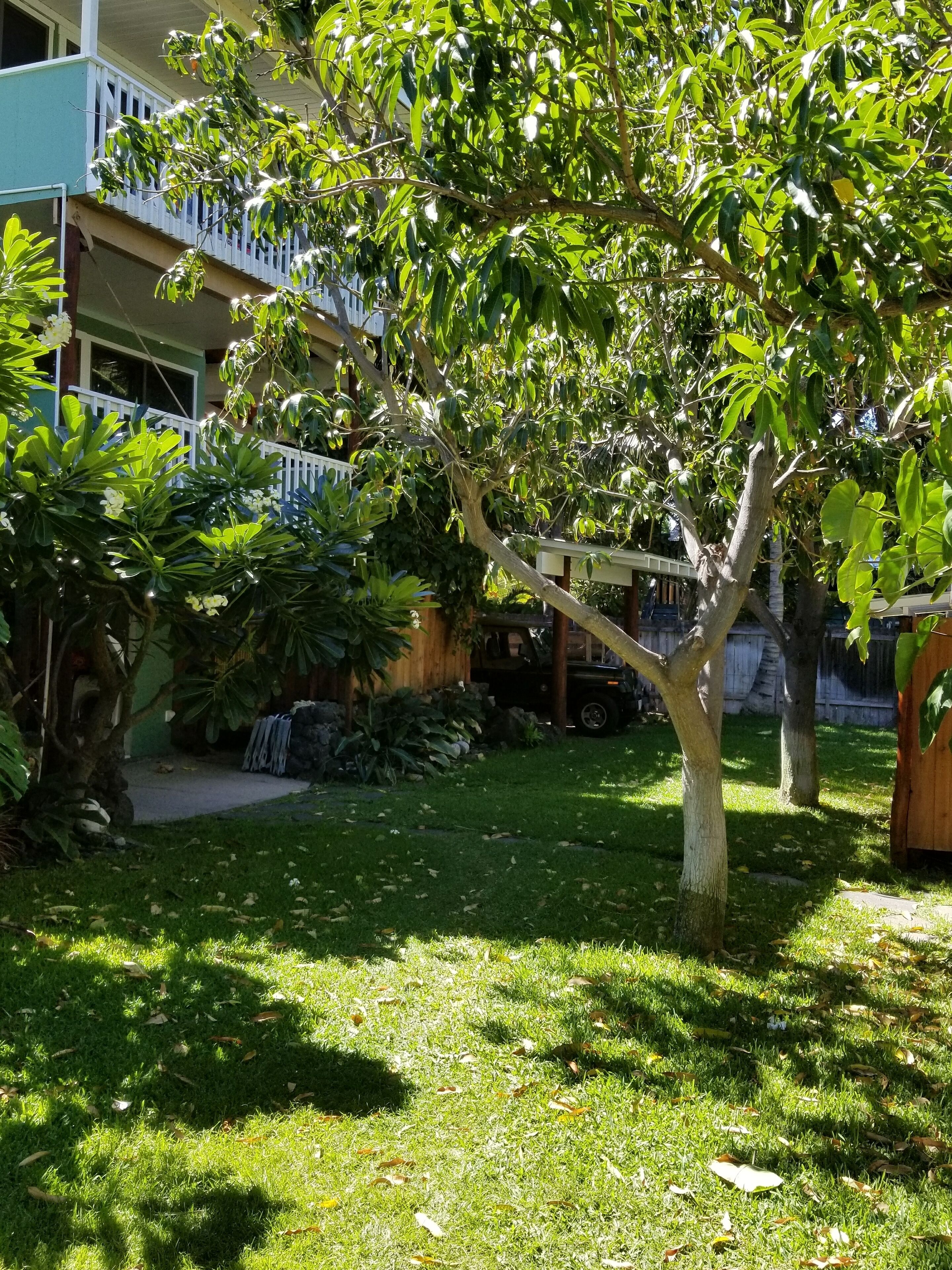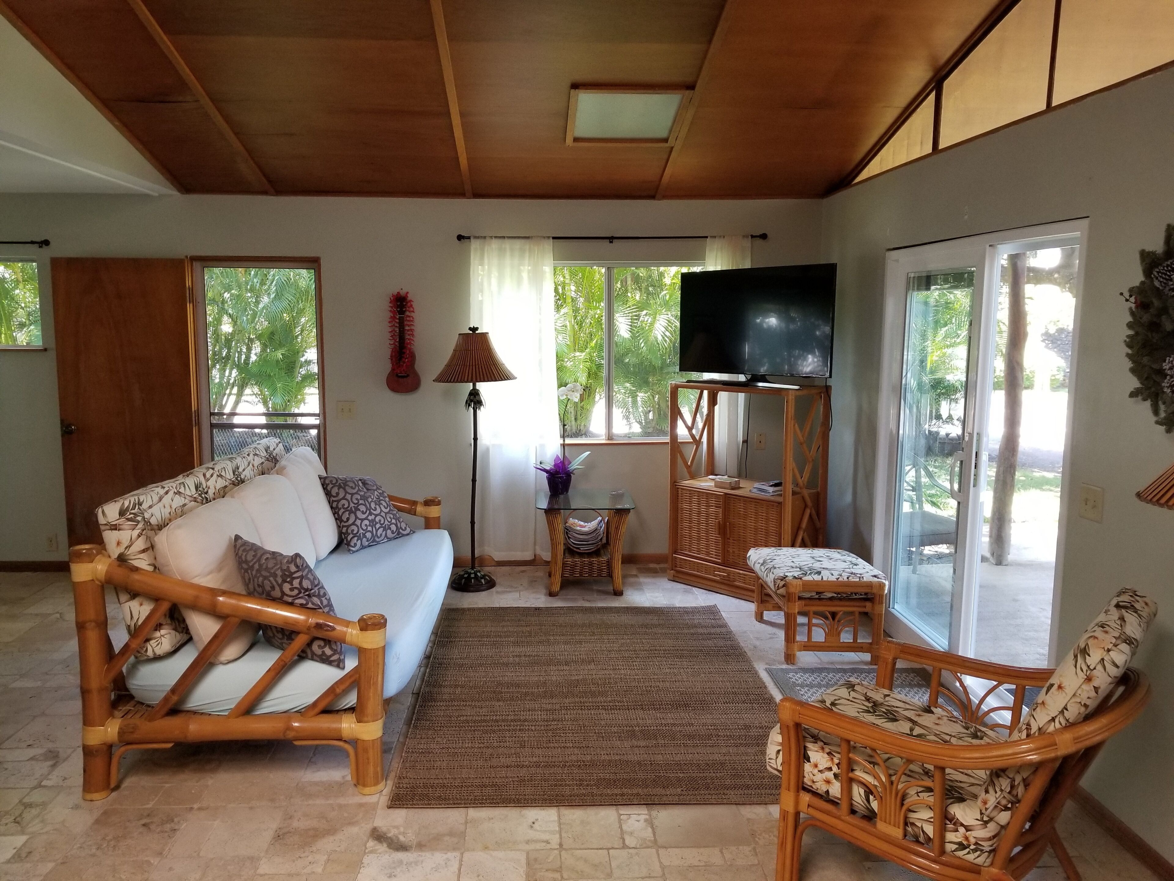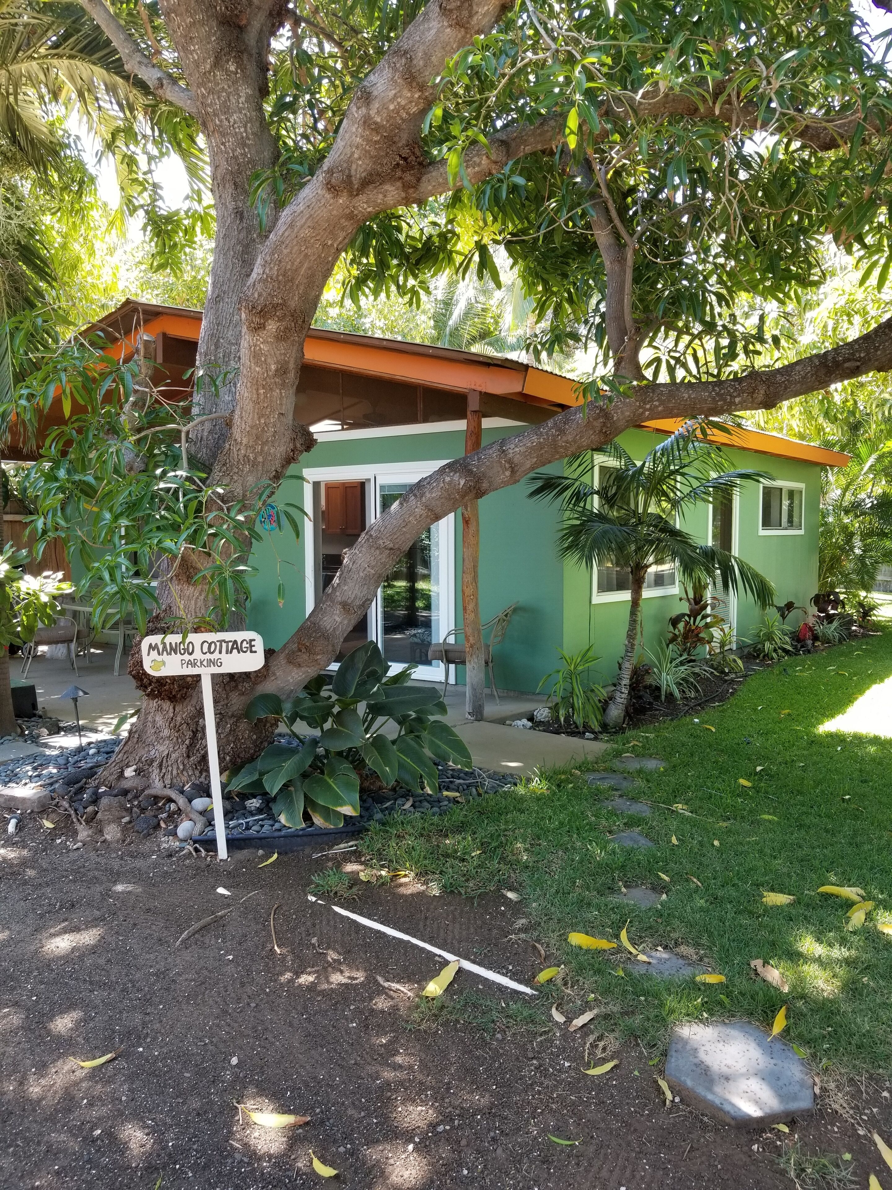 Welcome to Mango Cottage PLEASE NOTE: Listed rates are based on two guests. An additional $40/nt per guest will be added. Please enclose the total number of guest when booking (including children)... Mango Cottage is an original beach house located at the private and quiet end of Puako Beach Dr. The Cottage is a minute walk to the Paniau beach access which is a well known and popular beach for snorkeling. Recent renovations give the Cottage all the modern amenities, while maintaining the relaxed and tranquil feeling of an earlier era. There is one bedroom which includes the outdoor shower, one bathroom with indoor shower, and an extra full size bed in the alcove off the living area. The Cottage shares the property with Mango Hale (vrbo#67917) and can be rented together for larger groups and families. The property is surrounded by a lush lawn, mango and coconut trees, which provide a cool and comfortable environment. The vaulted ceiling and open gable end design allows the breezes to fill the room.The bedroom includes a queen size bed and split duct air conditioning.