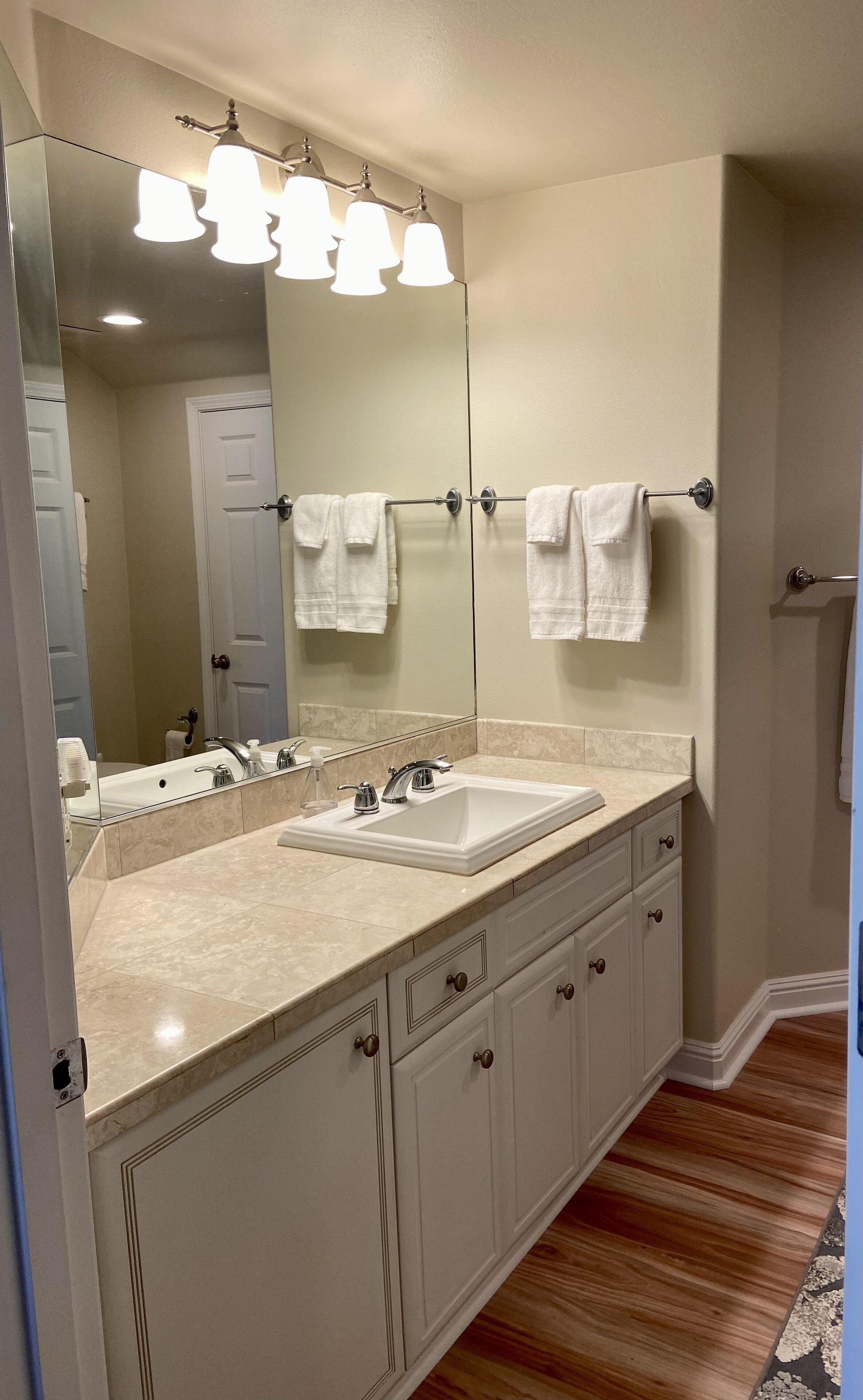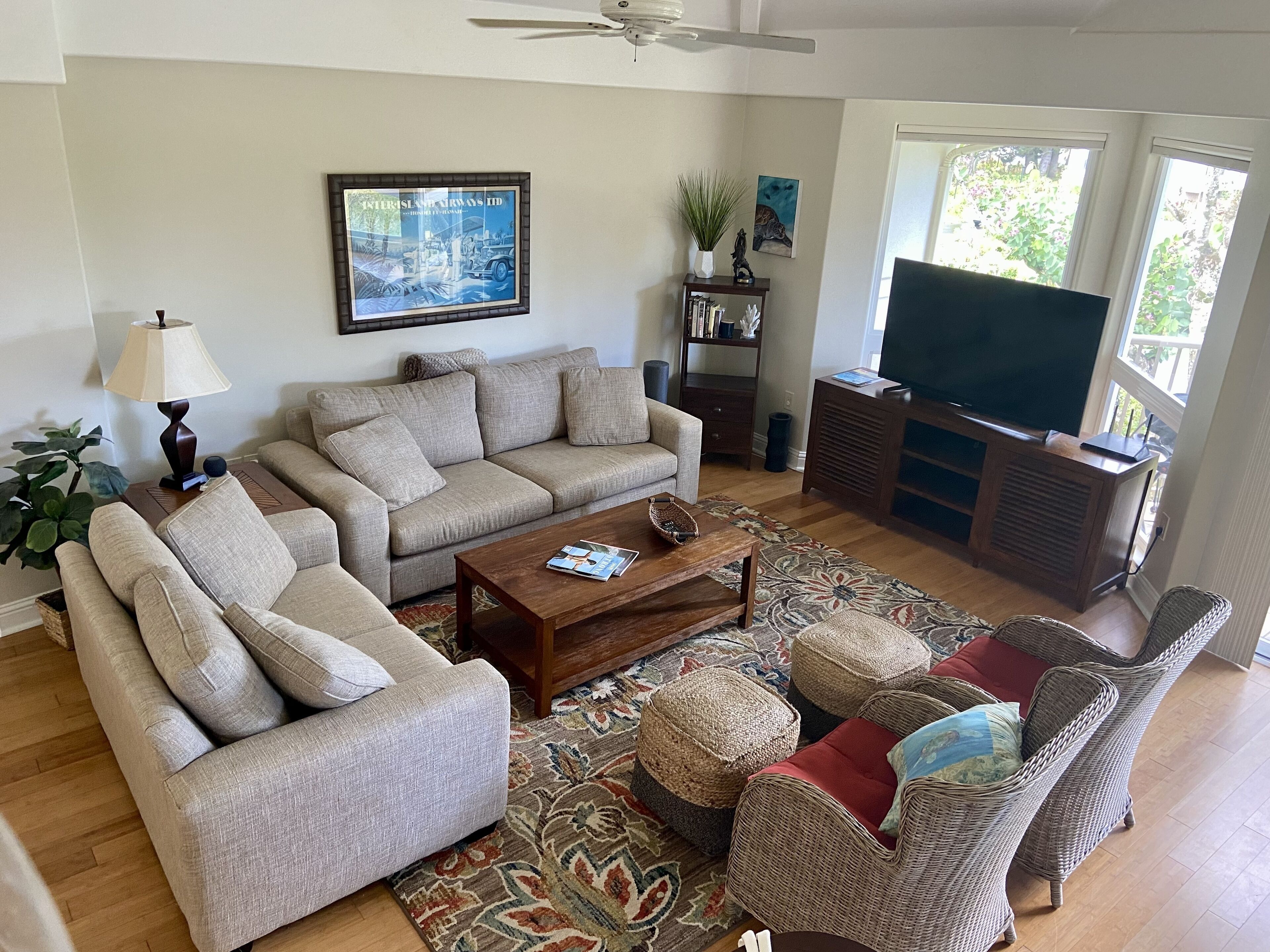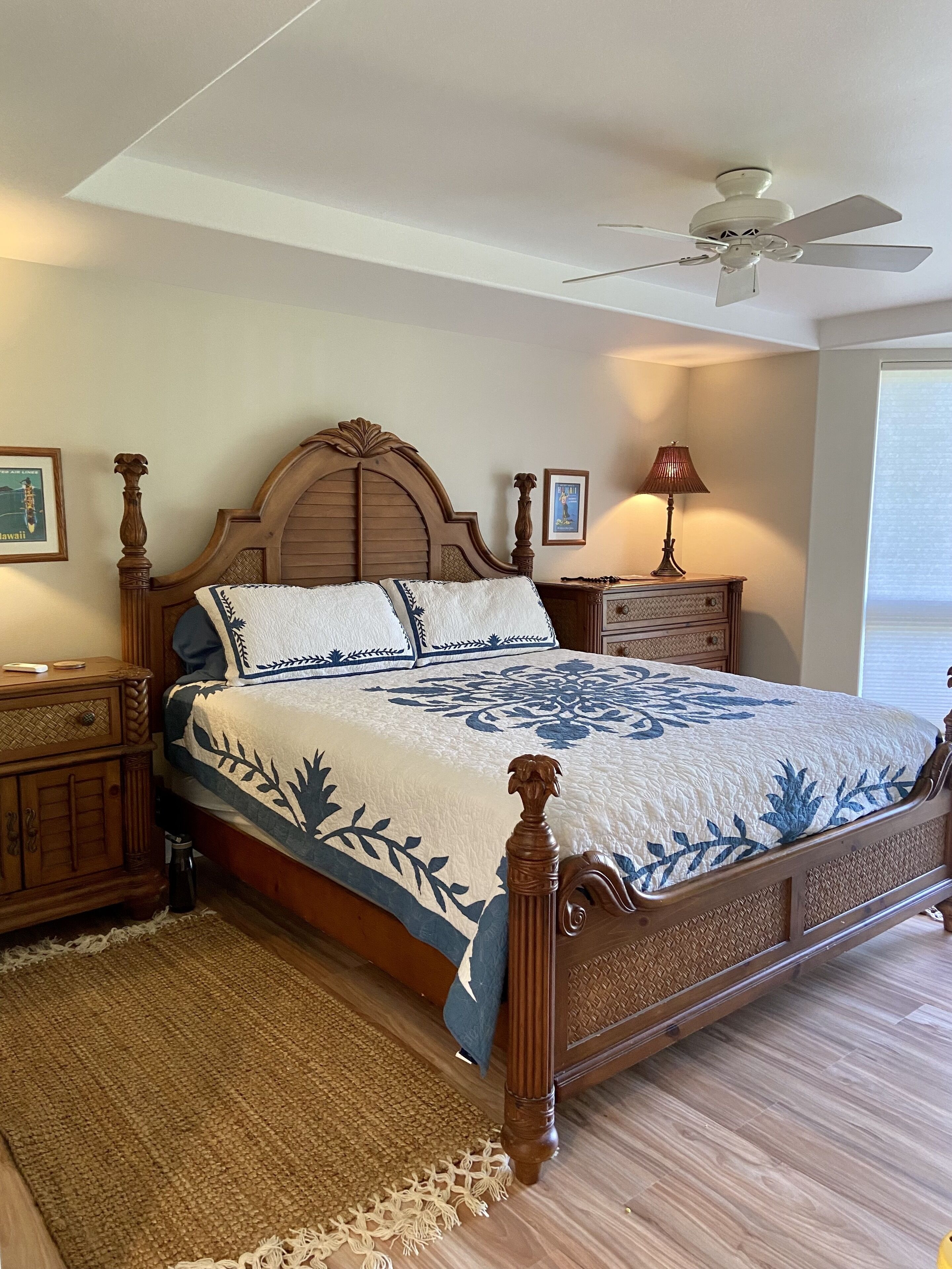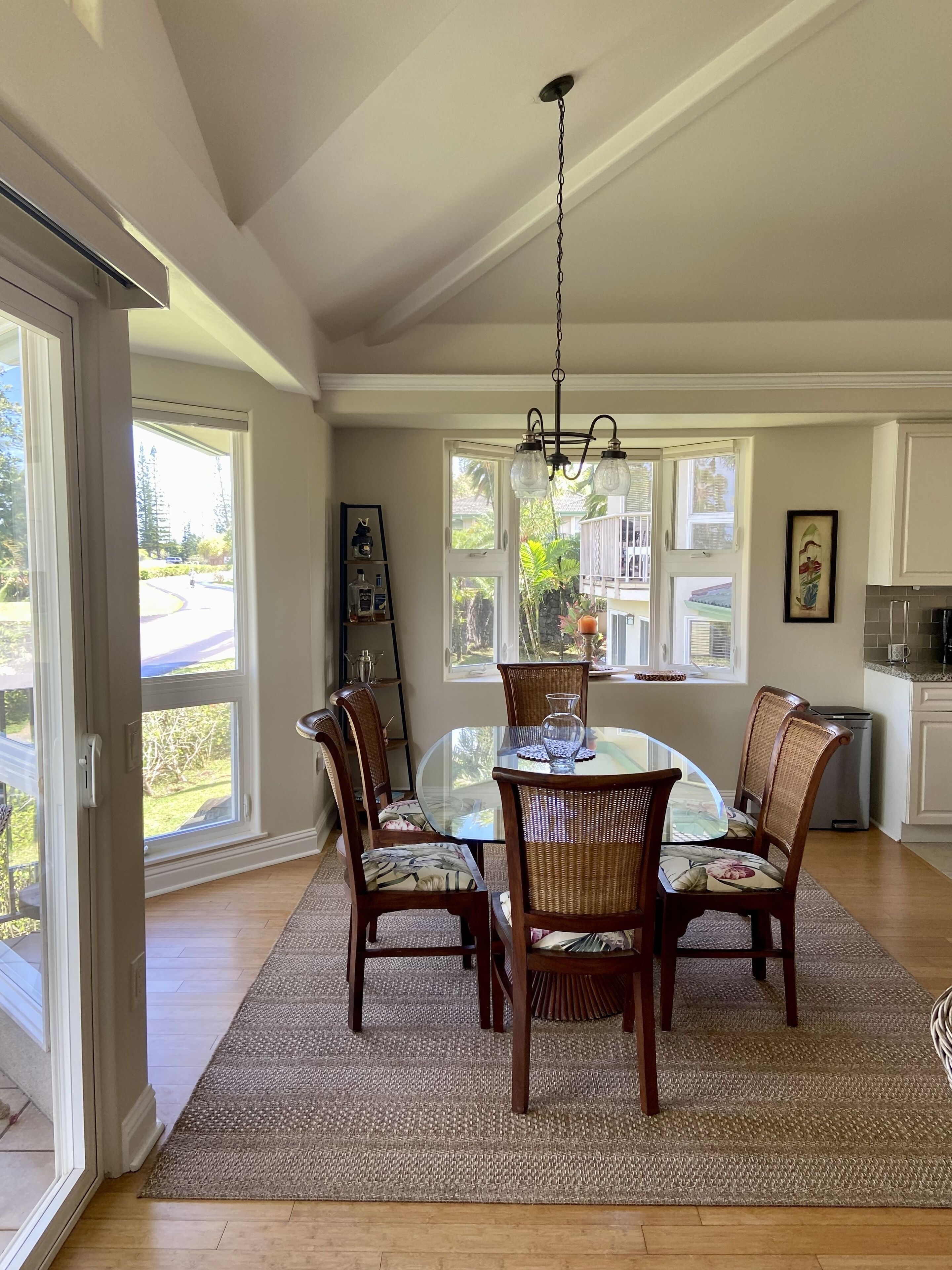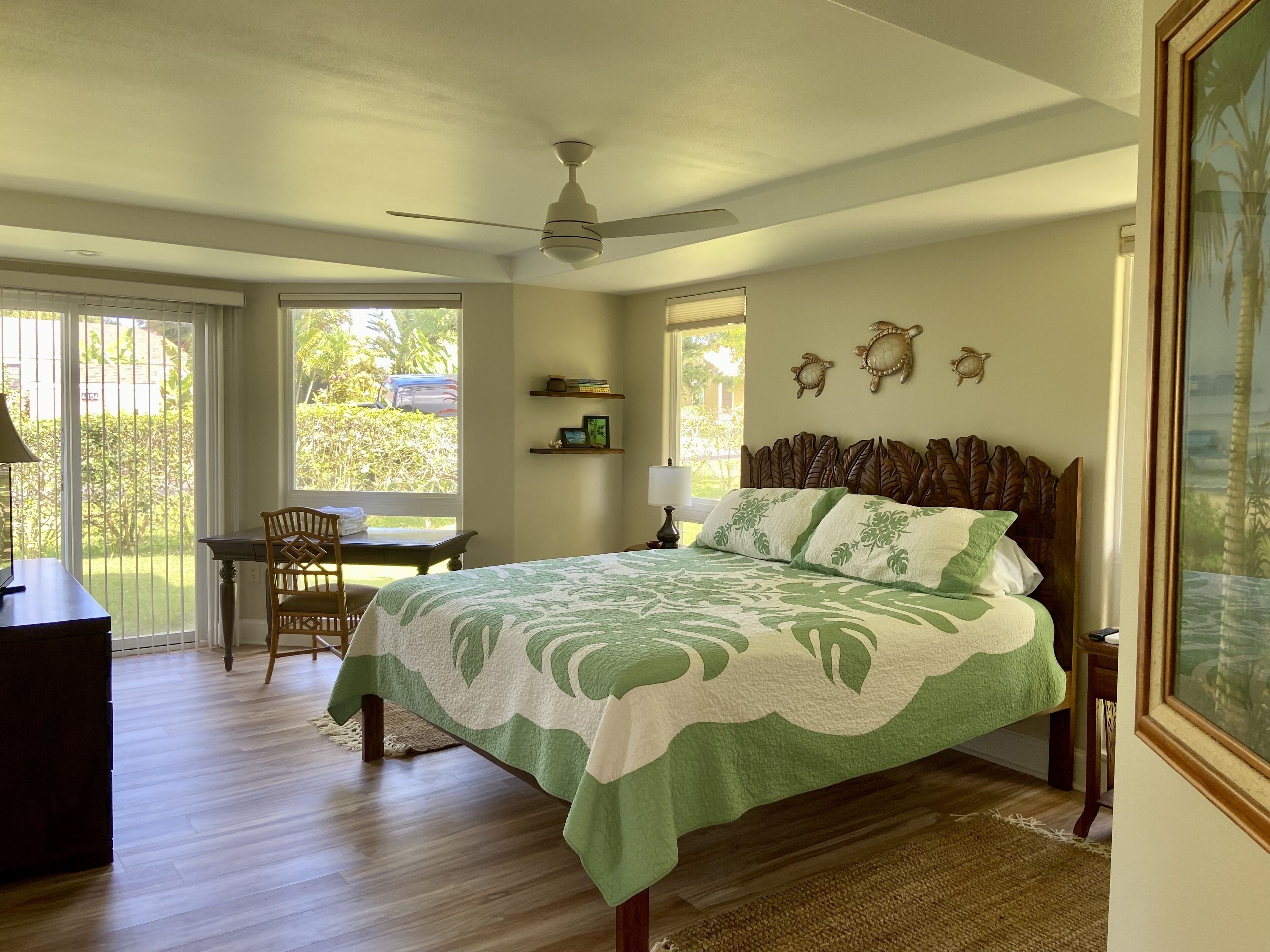 Great Rates and A/C in every room. Near North Shore beaches. Pool & Hot Tub! Three bedroom, three bath luxury Villa located in Princeville, Kauai with A/C! Just steps from the Makai Golf Course Country Club. Includes two master suites with king-size beds. First master suite has a walk-in shower and TV. The second master suite includes private bath with Jacuzzi tub and shower. Third guest bedroom offers a queen-size bed and adjacent full-size bath--located on the main level. Our beautiful, newly renovated home will sleep six privately. The recently added mini-split AC instantly dehumidifies and cools each bedroom and main living areas. Many properties do not have A/C! Beds all have top of the line mattresses. Granite counter tops throughout. Full gourmet kitchen, entertainment center with HD big screen TV, DVD/BlueRay player, WIFI Internet, full-size stacked washer and dryer. All linens provided including beach towels, beach chairs, boogie boards, attached one car garage, beach rinse off area; heated community pool with BBQ grill also just steps away. Dedicated parking space (owner's car stored in the garage).The Villa offers a heated community pool and hot tub with community BBQ. Nearby: Golfing on The Makai Golf Course. The Princeville Center offers a grocery, bank/ATM, post office, restaurants and shops. Kilauea, with its majestic lighthouse and bird sanctuary, along with the quaint little town of Hanalei. More entertainment options include: numerous beautiful beaches, hiking the Kalalua Trail on the Na Pali coast, snorkeling and swimming, surfing world famous Hanalei Bay and 'Tunnels,' scuba diving, boating, windsurfing, ocean and river kayaking, helicopter tours, and horseback riding are all within a 10 minute drive. Other island activities include hiking the Waimea Canyon, which is referred to as 'The Grand Canyon of the Pacific,' deep sea fishing, boat excursions for whale and dolphin watching, bicycling, and boogie boarding. Don’t forget that rest and relaxation are also available!Full rental plus applicable taxes due 60 days prior to your arrival, Check-in: 4:00 PM, Check-out: 10:00 AM (late check out may be available), Non-smoking home, No pets allowed.Keywords: Townhouse, beaches, luxury, townhome, Princeville