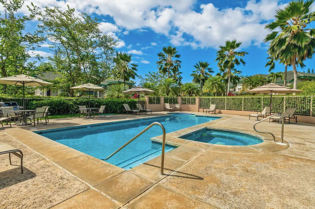 Great Rates and A/C in every room. Near North Shore beaches. Pool & Hot Tub! Three bedroom, three bath luxury Villa located in Princeville, Kauai with A/C! Just steps from the Makai Golf Course Country Club. Includes two master suites with king-size beds. First master suite has a walk-in shower and TV. The second master suite includes private bath with Jacuzzi tub and shower. Third guest bedroo...