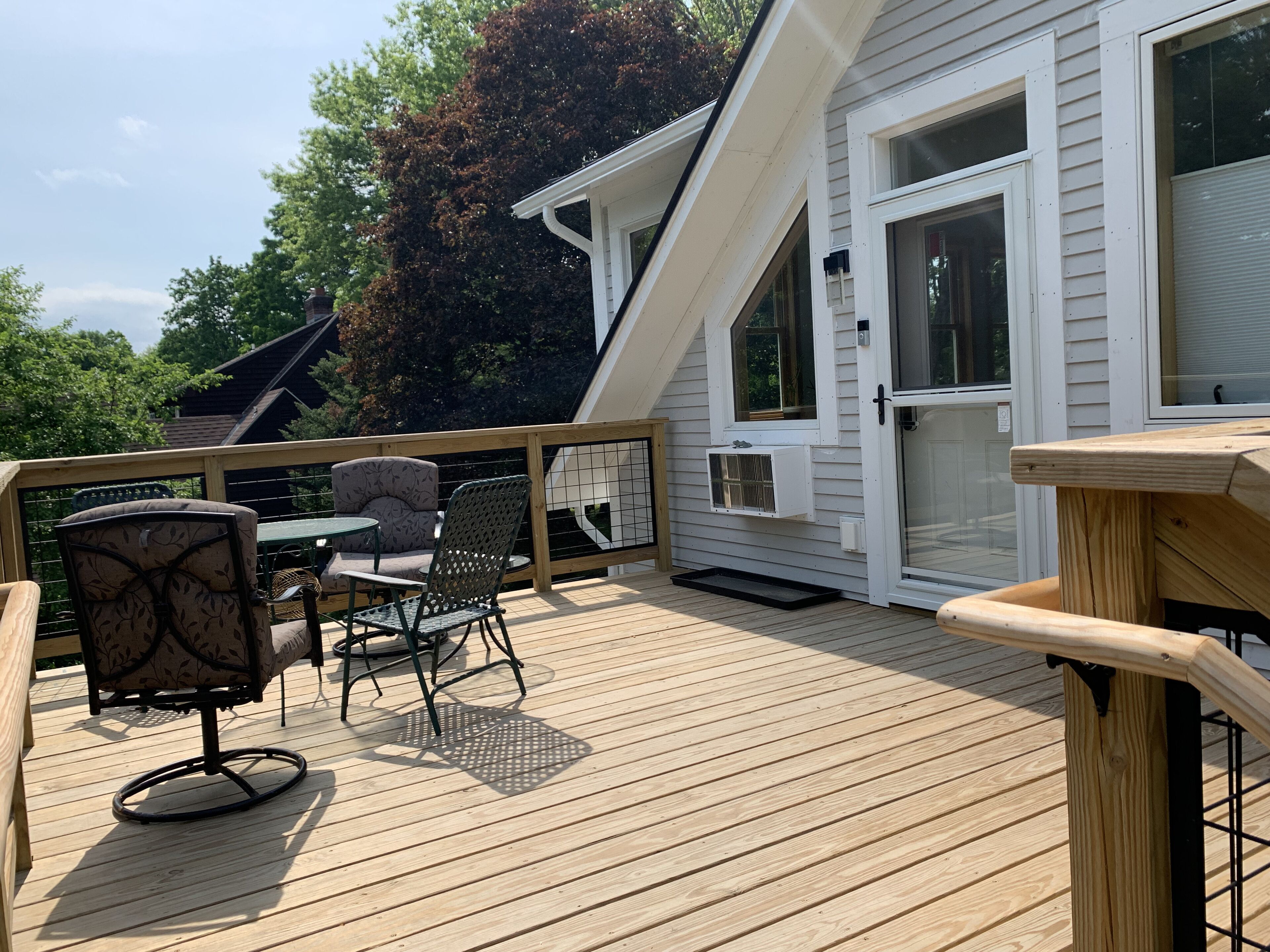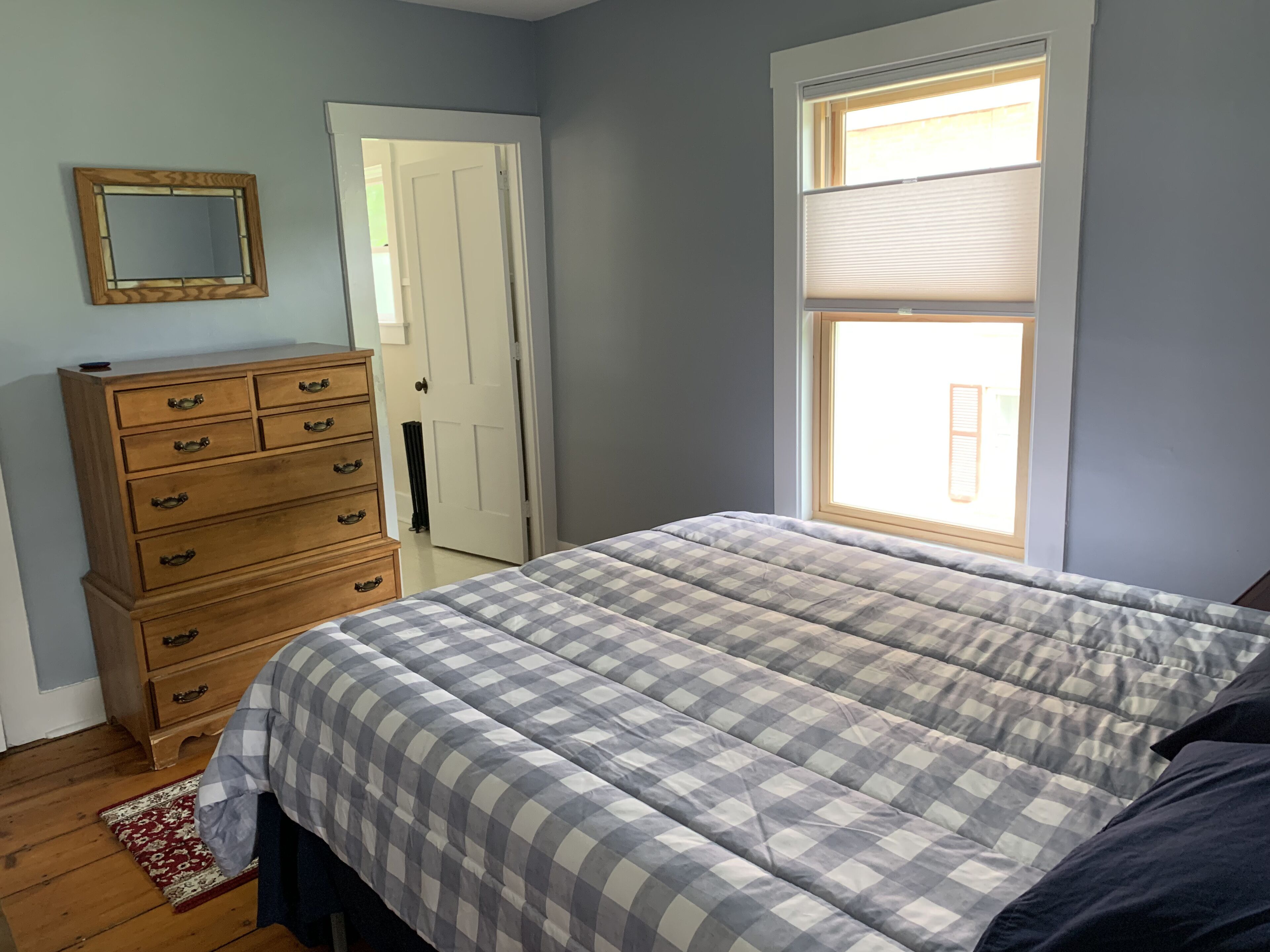 Beautiful & Spacious Apartment on College Street Charming, quiet neighborhood just a ten minute walk from Main Street Montpelier.Relax on the private deck or around the fire pit in the large, shared backyard. Gorgeously renovated new apartment. Huge master bedroom with tons of closet space and a luxurious brand new bathroom with a large tub.An enormous living room - with two sofas and expansive LR...