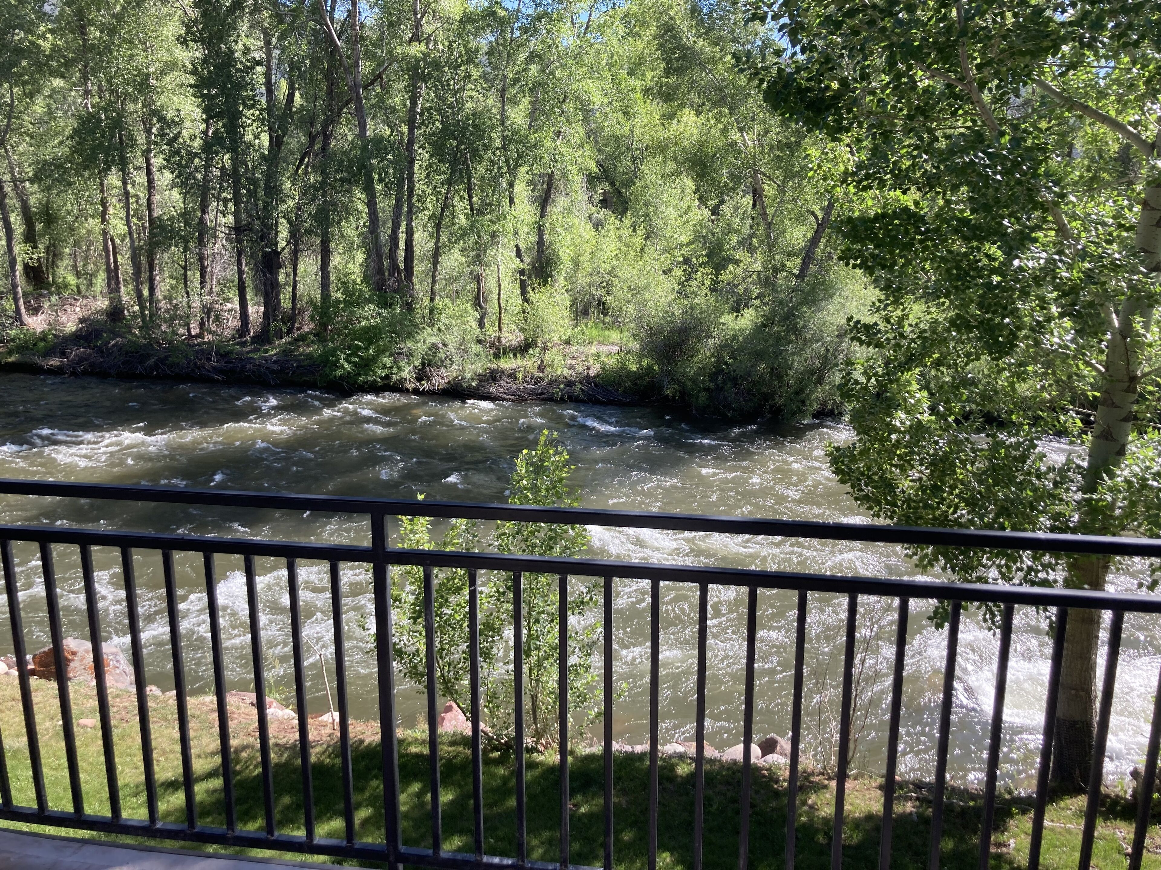 Light, Bright, Riverfront Condo in Downtown Basalt Open the sliding patio door to let in the sounds of the Roaring Fork River. This one-bedroom condo is perfect for a couple or a few friends looking for a full kitchen, a walk into downtown Basalt, restaurants, access to bike trails and gold medal fishing, and a short drive to Aspen.There is an air conditioning unit in the bedroom.This is a second floor, upstairs condo. The bedroom is another flight of stairs up above kitchen and living area.