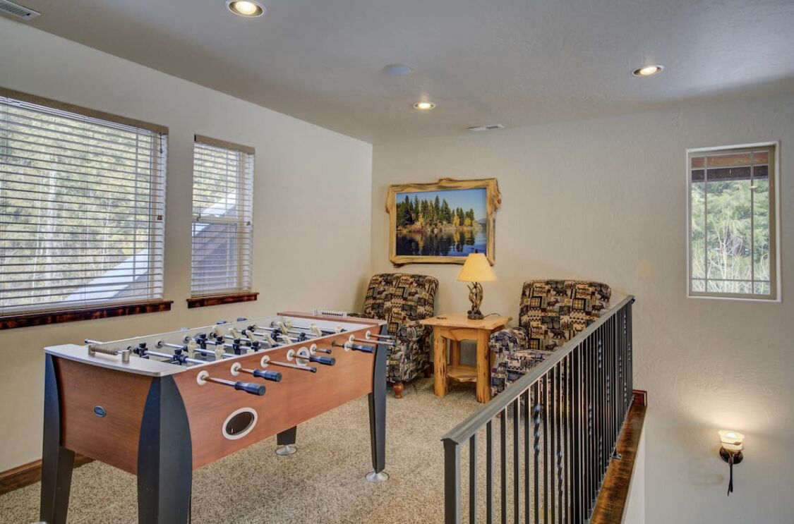 Spacious Family Home on Priest Lake Golf Course Nicklaus House provides a serene environment for the family. Located on the Priest Lake Golf Course, this home has plenty of space to spread out with 3 bedrooms, plus an oversized loft complete with a foosball, poker table, and a separate area to watch movies. This home is in close proximity to Hills Resort and Priest Lake Marina.This home does not allow pets; however, the homeowner brings their dog with they visit. Please. keep this in mind if you have an allergy.The spaceThis multi-generational home is tucked in a wooded area with privacy from neighbors. Overlooking the golf course, you will find a relaxing space for the family to spread out. The primary bedroom looks over the golf course and has a king-sized bed along with an electric fireplace to keep you cozy in winter. It is located on the main floor and has an en-suite bathroom. Upstairs is a second bedroom with an equally large bedroom also furnished with a king-sized bed and an attached bathroom. The third bedroom has two queen-sized beds. For the kiddos, there are bunkbeds in the oversized loft.Guest accessGuests are given a keypad code 7 days before check-in. We ensure the home is stocked, clean and ready for arrival.Other things to noteThis home is open year-round and we're happy to make recommendations on local activities. Priest Lake is a large lake that is over 19 miles long and close to the Canadian border. If you like to fish, the lake is known for the lake trout, cutthroat, and kokanee fish. The area also serves as a spectacular backdrop to the wild and scenic wildlife such as eagles, bears, dear, and moose. There are hiking trails, bicycle routes, and UTV trails to add to the adventure as well.
