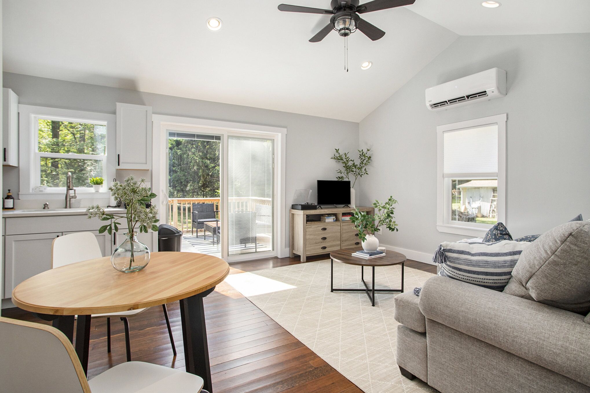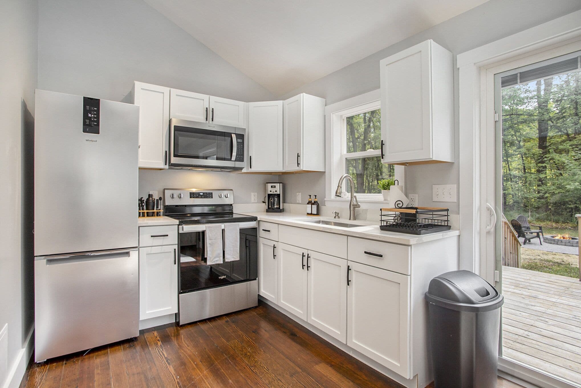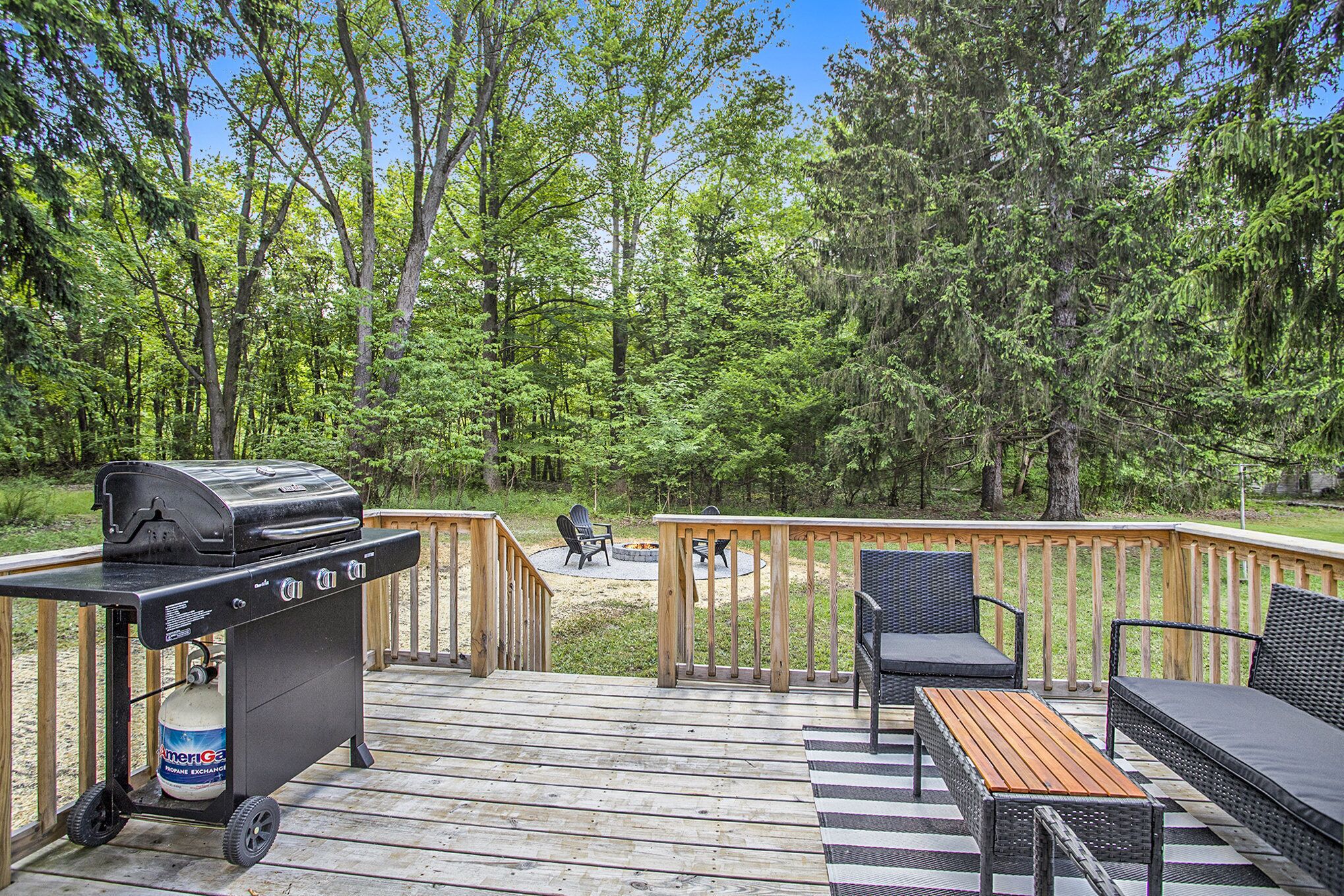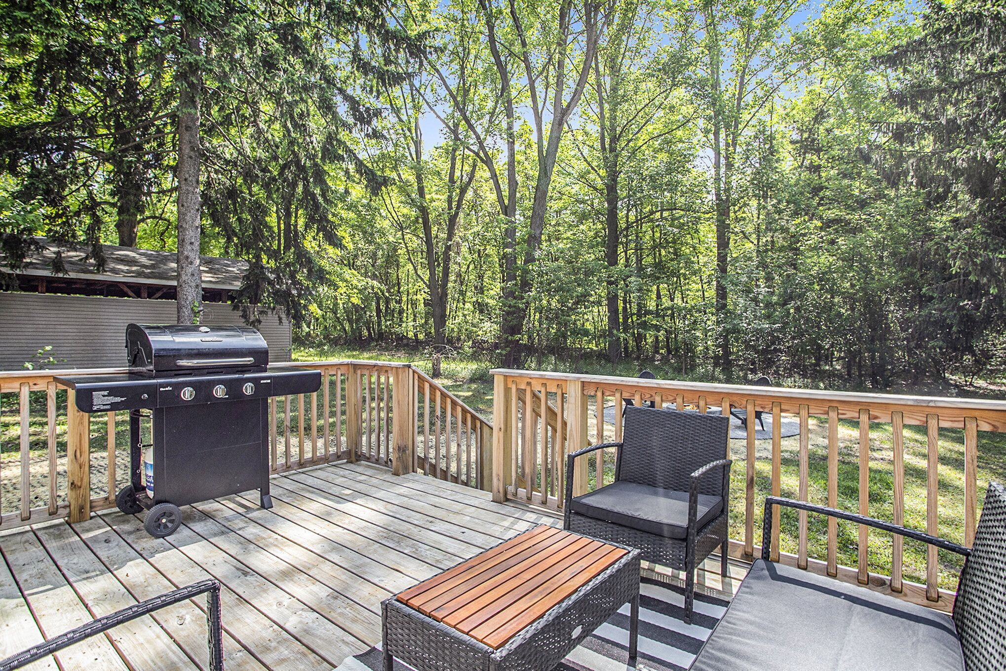 Tiny Sawyer Cottage Under the Pines Tucked back in the woods, at the end of a dead-end road, you’ll find this newly rehabbed tiny cottage. 5-minutes from Lake Michigan beaches and right outside Warren Dune State Park, this tiny house is central to all that Harbor Country has to offer. Enjoy relaxing on the rear deck or spending afternoons at the lake, breweries or wineries just minutes away. A small but mighty 450 square feet of perfect city getaway.