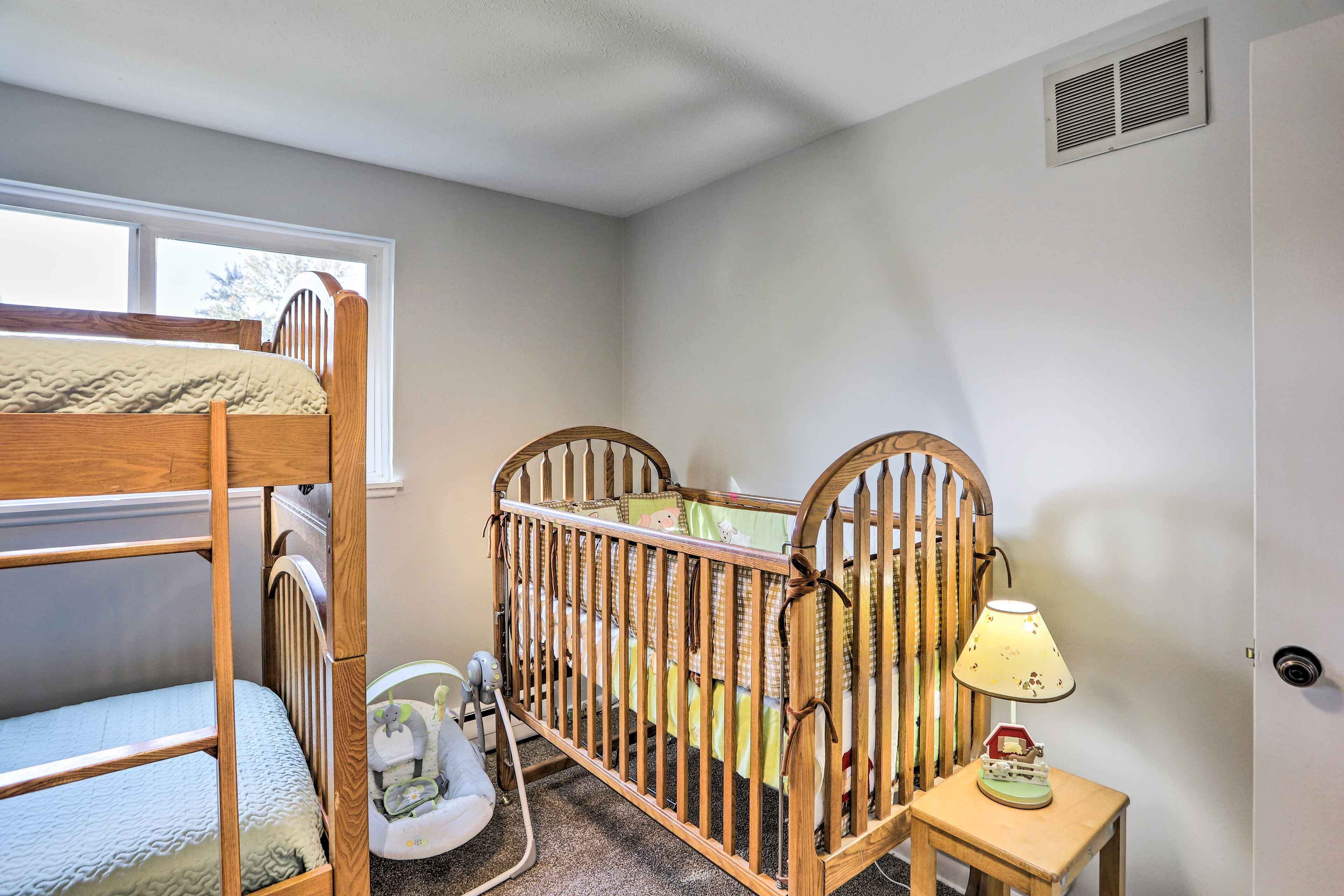 - Kitchen, extra beds/cots, games and toys, washer and dryer