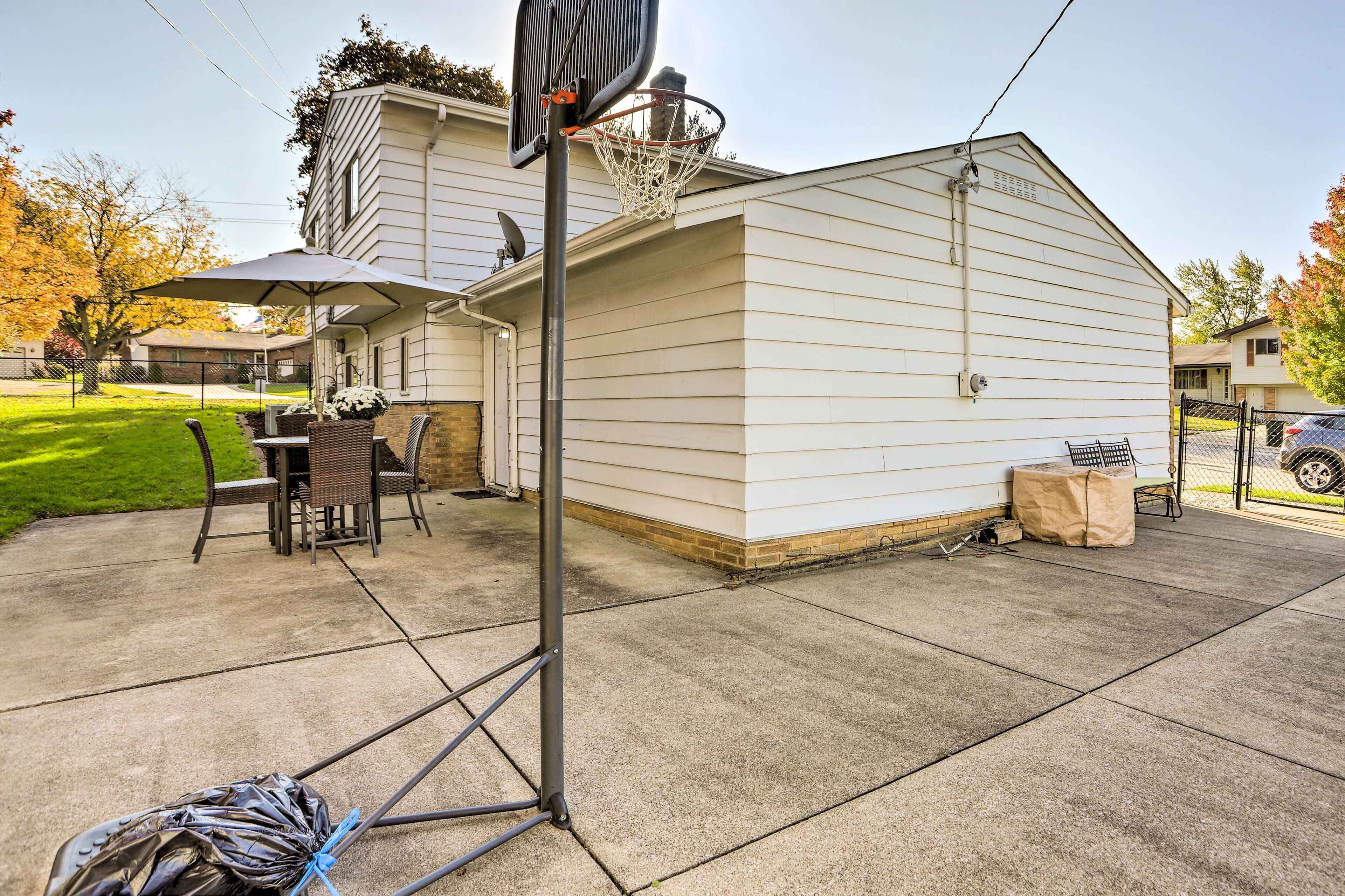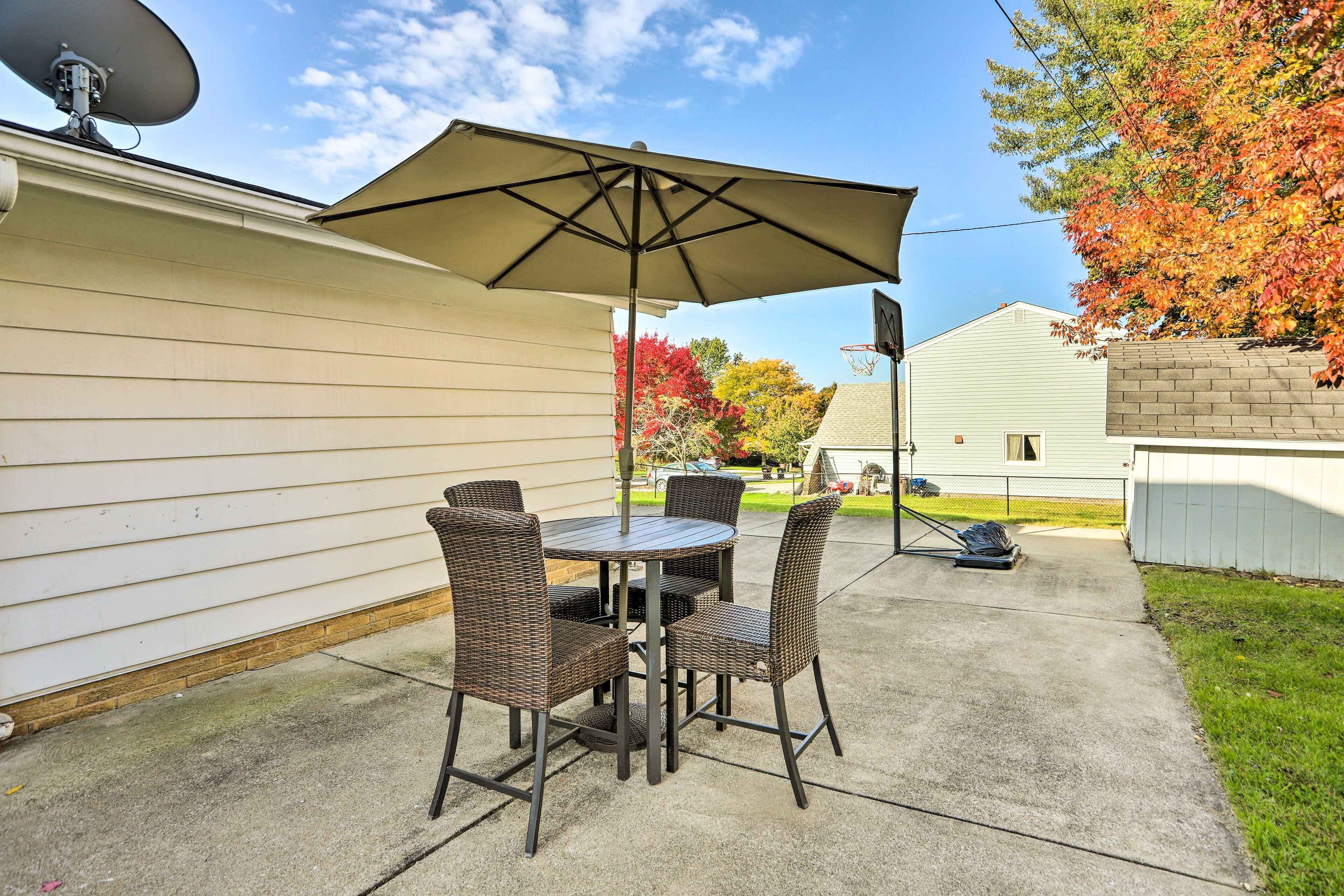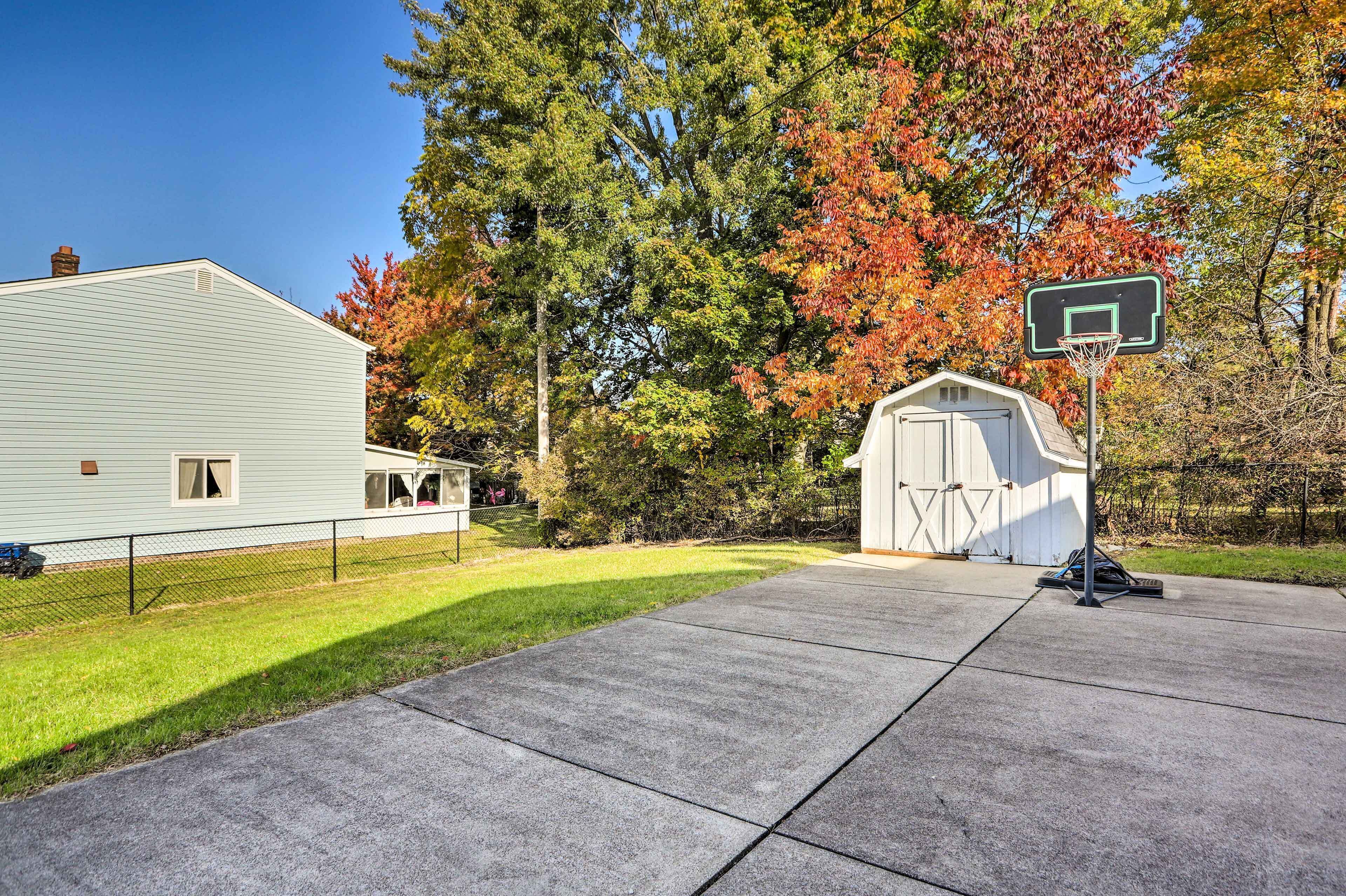Cleveland Area Home w/ Yard ~ 12 Mi to Dtwn! Nestled between the heart of Cleveland and the great outdoors of Ohio, this Parma home is the ideal spot for your family’s next vacation! The 4-bedroom, 2.5-bathroom vacation rental includes a full kitchen, 5 Smart TVs, and a fully fenced yard for your dog to roam. Head downtown for big-city fun, explore the trails in Cuyahoga Valley National Park, or cool off at Edgewater Beach! After a day of adventure, enjoy a home-cooked meal, then cozy up on the sectional sofa for a family movie night.-- THE PROPERTY --Dog Friendly w/ Fee | Fully Fenced Backyard | High Chair & Stroller AvailableBedroom 1: Queen Bed | Bedroom 2: Full Bed | Bedroom 3: Twin Bunk Bed, Crib | Bedroom 4 (Office): Full Sleeper Sofa | Family Room: Full FutonINDOOR LIVING: 5 Smart TVs, DVD player, board games, books, treadmill & stationary bike, laptop-friendly workspace, dining tableOUTDOOR LIVING: Basketball hoop, patio, dining table w/ umbrellaKITCHEN: Dishwasher, electric stove/oven, refrigerator, microwave, cooking basics, dishware & flatware, blender, coffee maker, toaster, spices, trash bags & paper towelsGENERAL: Free WiFi, central A/C, complimentary toiletries, linens & towels, in-unit laundry, hair dryer, hangers, iron & board, keyless entryFAQ: Stairs required for access, pet fee (paid pre-trip), 3 exterior security cameras (facing out)PARKING: Garage (1 vehicle), driveway (3 vehicles)-- THE LOCATION --CLEVELAND HOTSPOTS: Cleveland Metroparks Zoo (6.4 miles), Greater Cleveland Aquarium (10.1 miles), Downtown Cleveland (12.3 miles), Rock & Roll Hall of Fame (14.6 miles)OPT OUTSIDE: Sandy Hook Park (0.6 miles), Mill Stream Run Reservation (7.0 miles), Cuyahoga Valley National Park (11.5 miles), Edgewater Park & Beach (13.5 miles), Rocky River Reservation (14.5 miles)WINE + BREWS: Blue Monkey Brewing Company (2.1 miles), Little Birdie Wine Nest (4.3 miles), Schnitz Ale Brewery (4.5 miles), Crooked River Wine (4.9 miles), Broadview Brewing Company (6.8 miles), Michael Angelo's Winery (7.7 miles)AIRPORT: Cleveland Hopkins International Airport (9.4 miles)-- REST EASY WITH US --Evolve makes it easy to find and book properties you’ll never want to leave. You can relax knowing that our properties will always be ready for you and that we’ll answer the phone 24/7. Even better, if anything is off about your stay, we’ll make it right. You can count on our homes and our people to make you feel welcome--because we know what vacation means to you.-- POLICIES --- No smoking- Pet friendly w/ $25 fee (+ fees & taxes, dogs only)- No events, parties, or large gatherings- Must be at least 25 years old to book- Additional fees and taxes may apply- Photo ID may be required upon check-in- NOTE: This property requires stairs for access- NOTE: Your safety matters. This property features 3 exterior security cameras. 1 camera is on each exterior door of the home (3 total) facing the front, side, and back entry. The cameras are outward facing and do not look into interior spaces. The cameras record video and sound when activated by motion