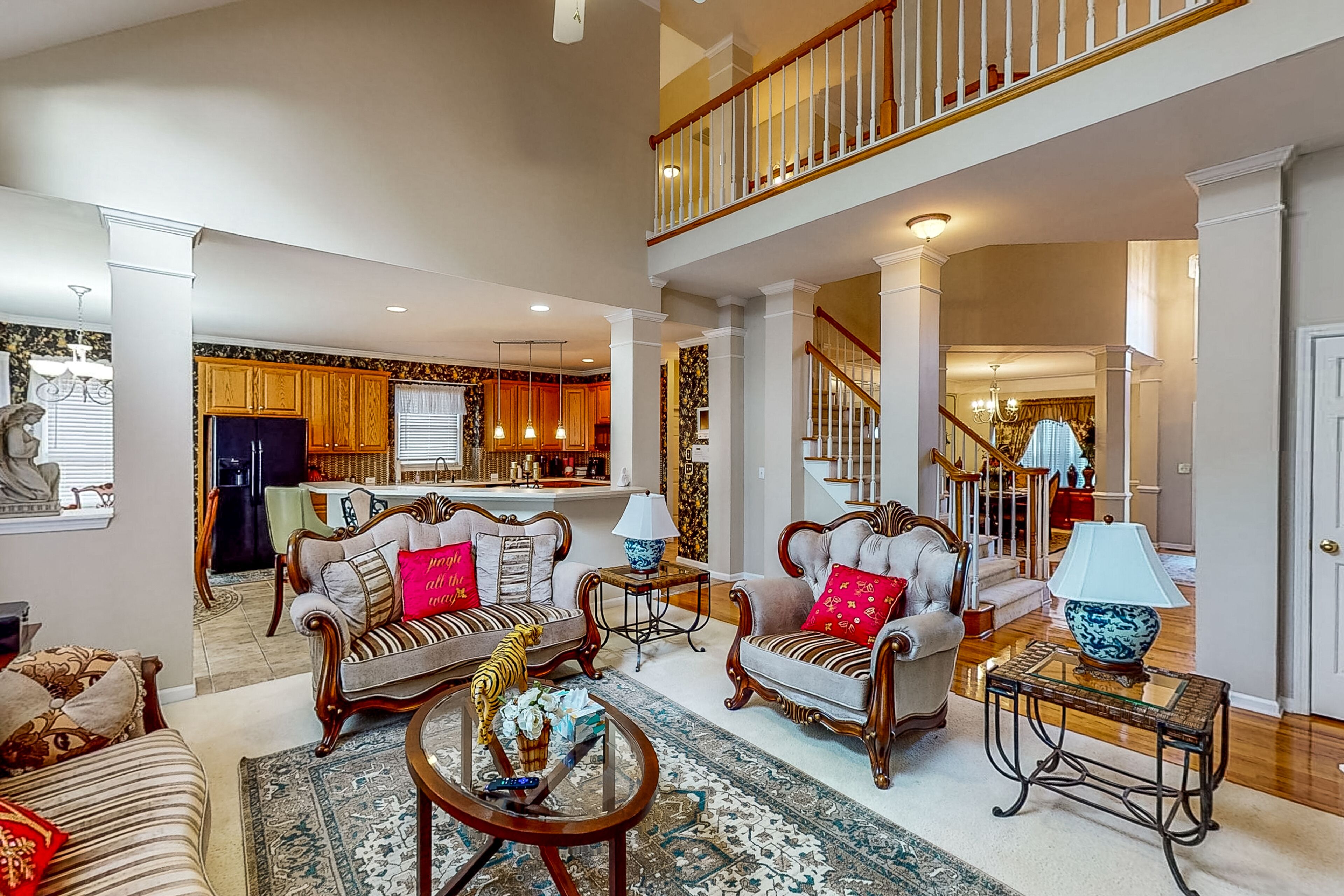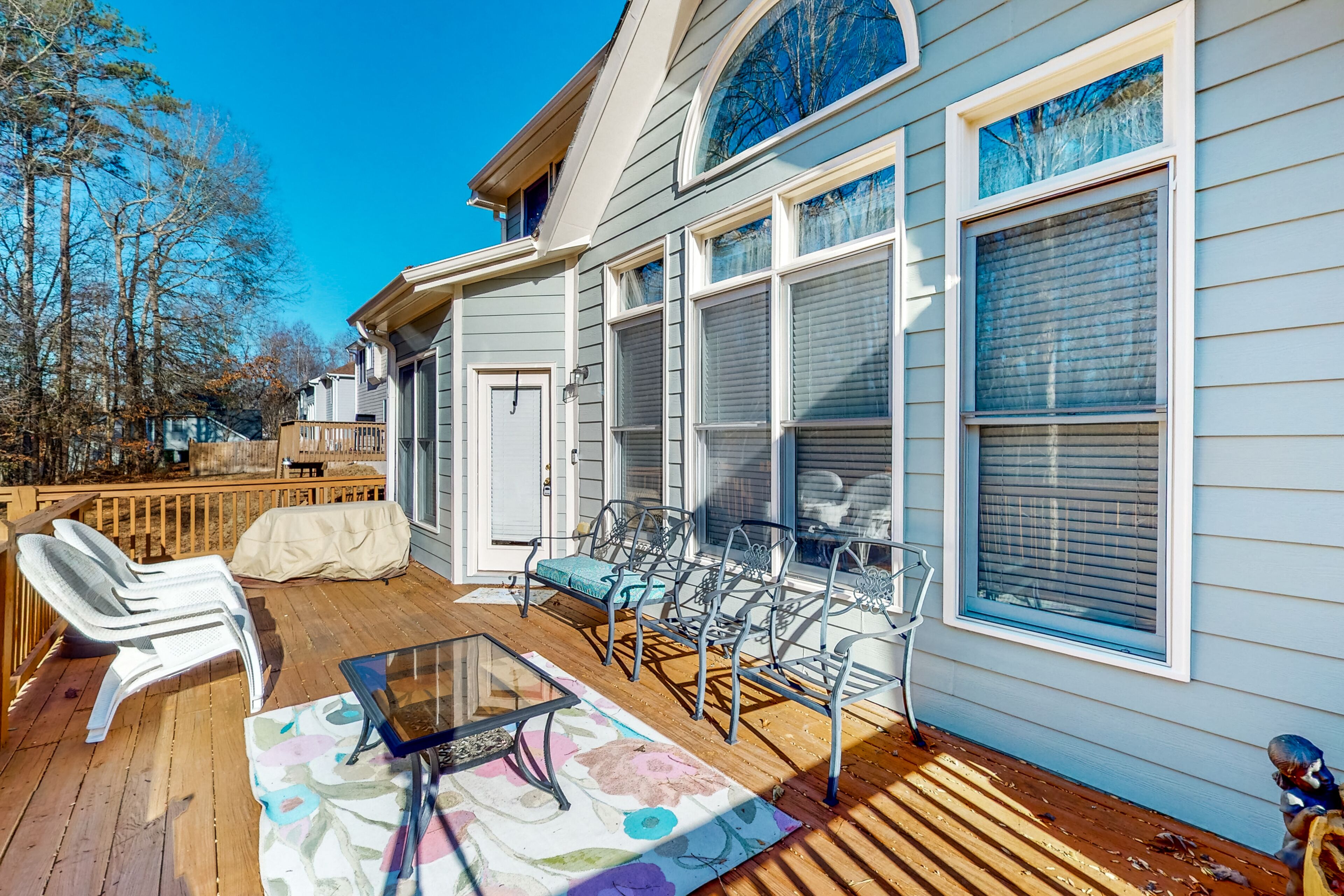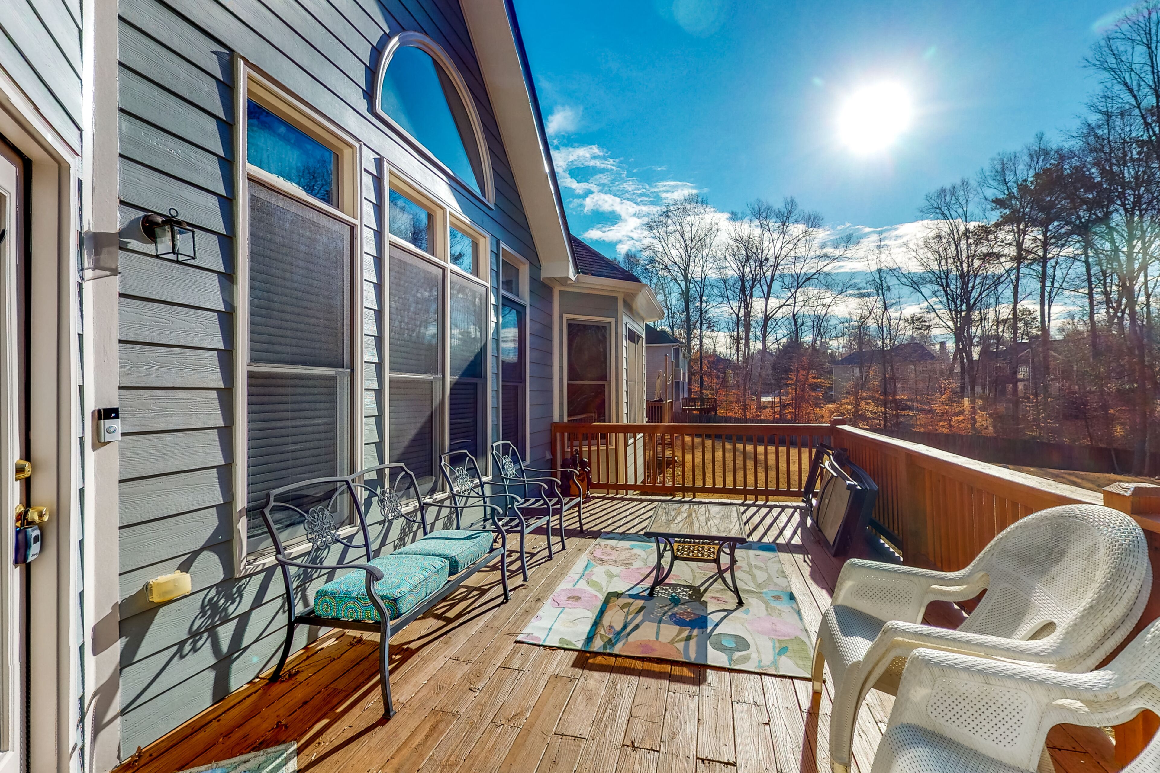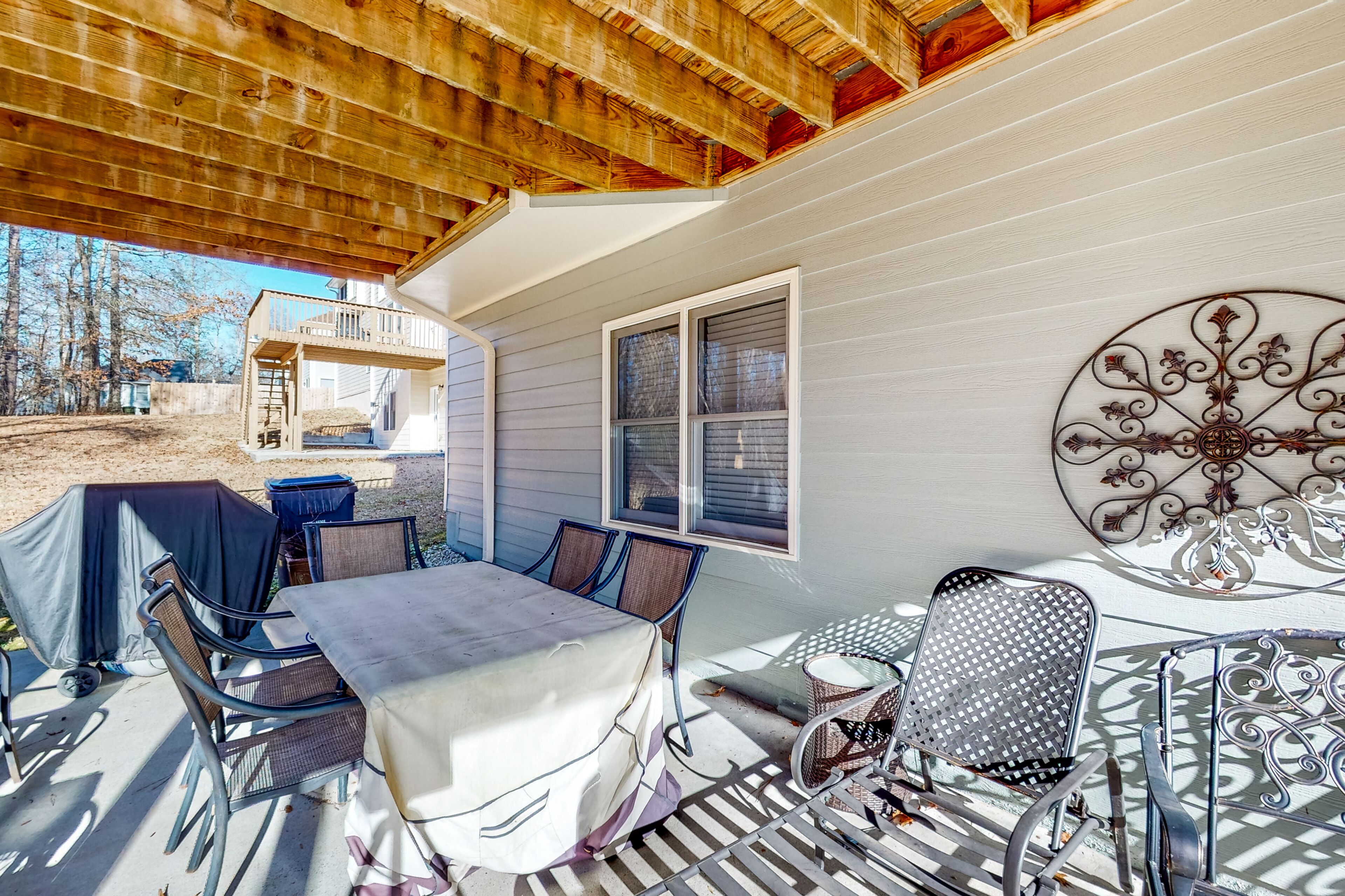 Luxe retreat near the airport with home theater, gym, deck, grill, & pool table The Perfect GetawayOur calendar is updated in real-time & our nightly rates are accurately displayed. Simply enter your desired dates and click 'Book Now!'The perfect getaway, this beautiful home has all the luxe extras you would want under one roof! Enjoy multiple living areas, including a private home theater with a wet bar, wine fridge, microwave, and pool table. An exercise room provides a great way to kickstart the day with a morning workout, and several office nooks/work spaces make it easy to work and learn remotely. In a convenient location, your retreat is less than 15 miles from the airport. Find even more entertaining space outside with a furnished deck and a patio with alfresco dining and a grill. Grill out and host a private home barbecue, or prepare tasty meals in the well-equipped kitchen. Comfort awaits in each well-appointed bedroom. The opulent primary suite boasts an en suite bathroom with a deep jetted garden tub, separate shower, and double vanity. Things to KnowCheck-in time: 4:00 p.m.Check-out time: 10:00 a.m.All guests shall abide by Vacasa's good neighbor policy and shall not engage in illegal activity. Quiet hours are from 10:00 p.m. to 8:00 a.m.No smoking is permitted anywhere on the premises.Streaming is available using your own accounts. Guests will have access to the entire house except for the bedroom and bathroom downstairs.This Vacasa Guestworks vacation rental is operated and managed locally by an independent host.Prior to your arrival, you will receive local host contact information, who will manage your guest reservation. Your local host will provide in-stay support, secure entry, and arrange pre- and post-stay housekeeping services.If you need anything during your stay, the home’s independent local host is ready to help 24/7! Guestworks is a service offering of Vacasa that allows homeowners to smoothly and efficiently manage their own properties.Parking notes: There is free parking available for 4 vehicles.Security camera details: This home has one exterior security camera facing the driveway.Due to local laws or HOA requirements, guests must be at least 25 years of age to book. Guests under 25 must be accompanied by a parent or legal guardian for the duration of the reservation.