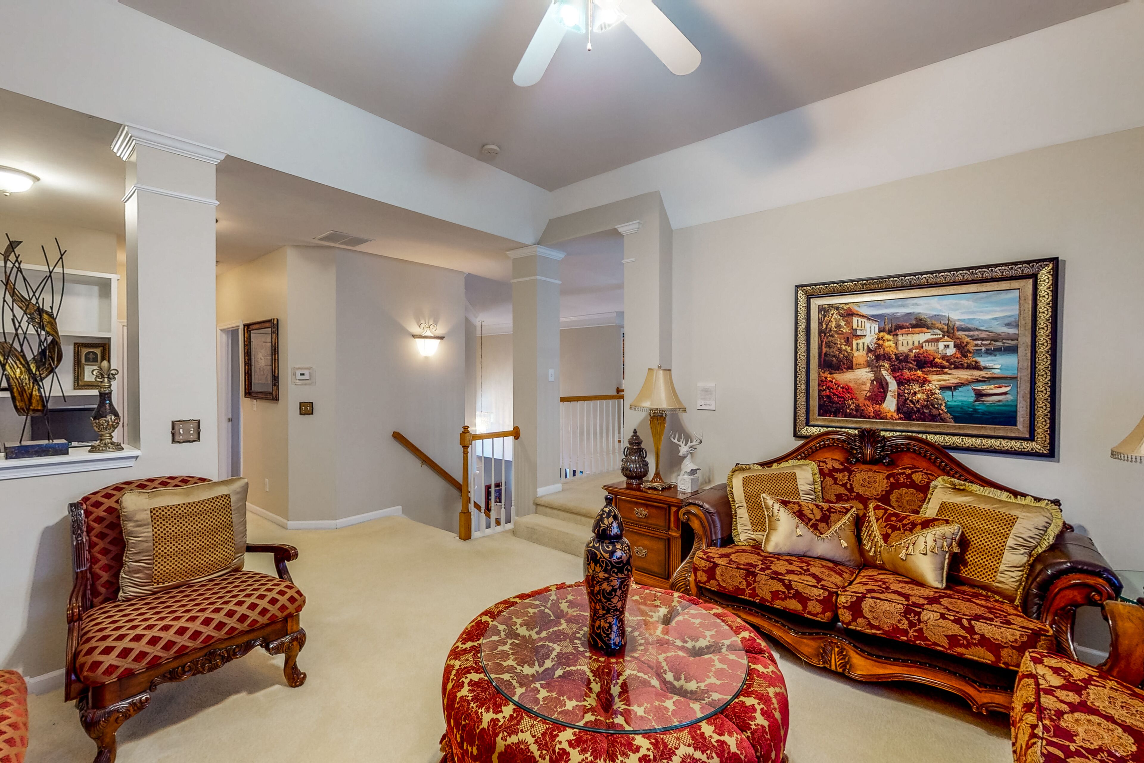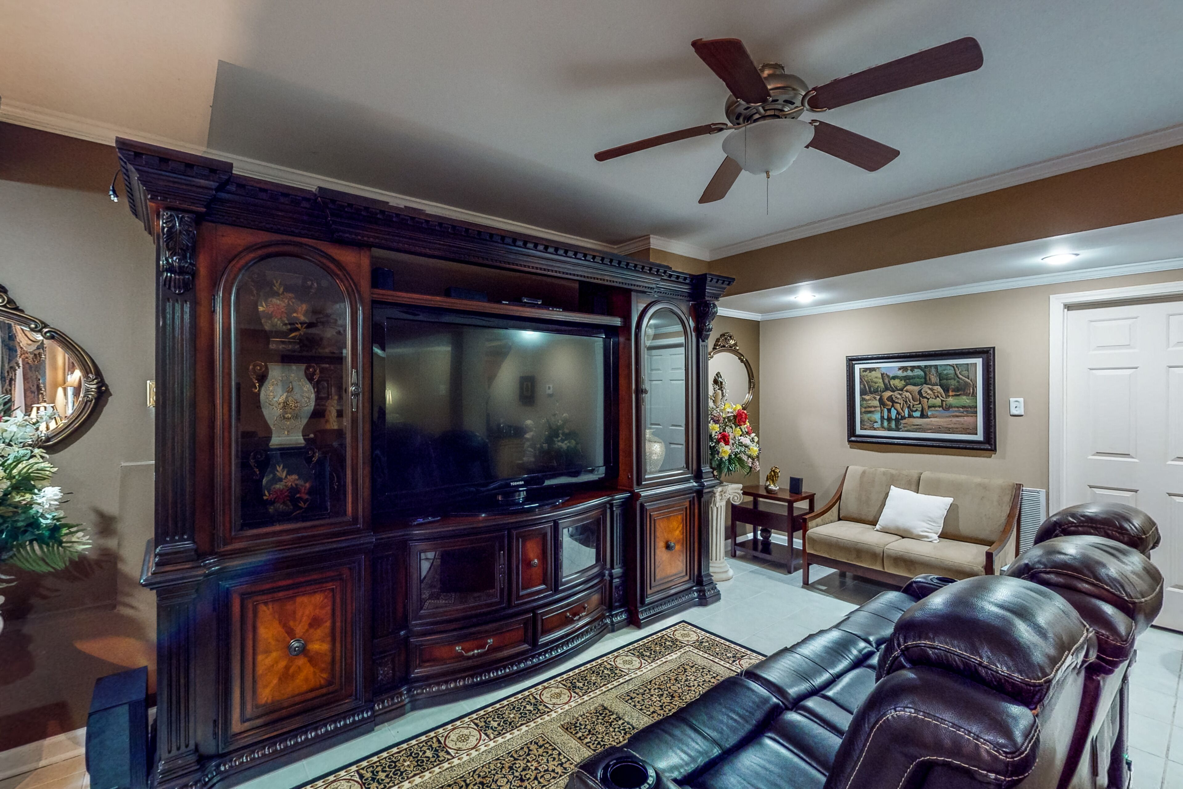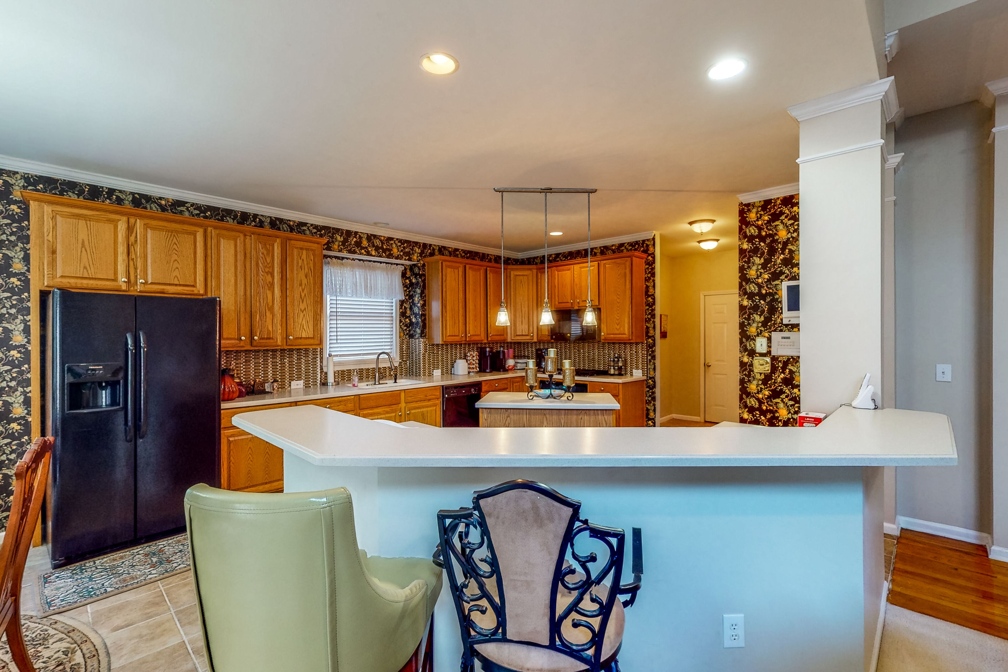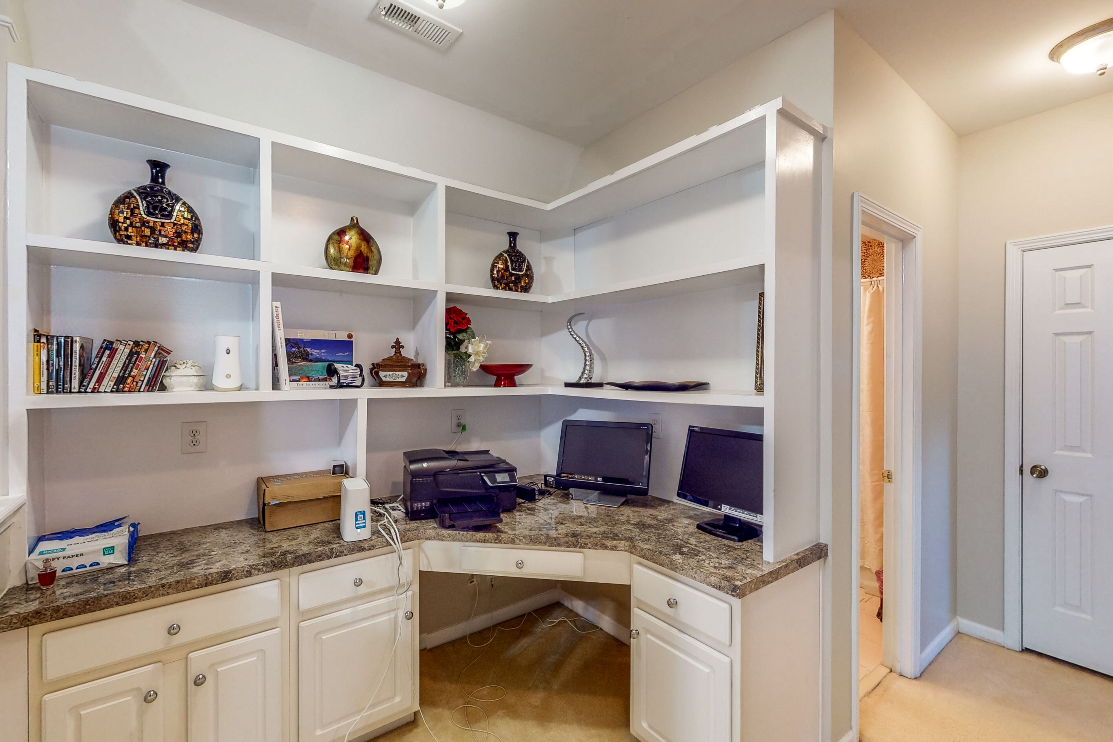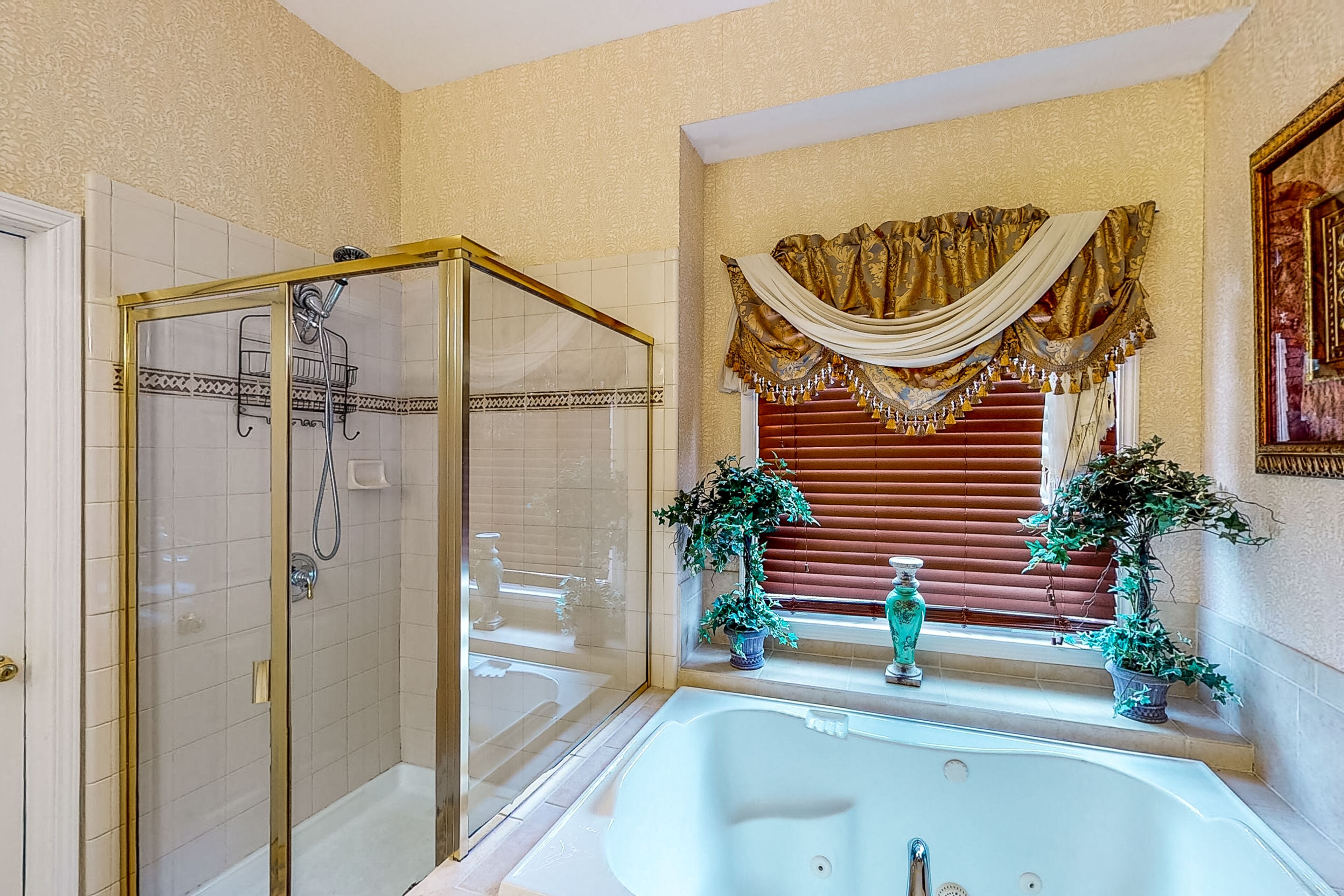 Luxe retreat near the airport with home theater, gym, deck, grill, & pool table The Perfect GetawayOur calendar is updated in real-time & our nightly rates are accurately displayed. Simply enter your desired dates and click 'Book Now!'The perfect getaway, this beautiful home has all the luxe extras you would want under one roof! Enjoy multiple living areas, including a private home theater with a wet bar, wine fridge, microwave, and pool table. An exercise room provides a great way to kickstart the day with a morning workout, and several office nooks/work spaces make it easy to work and learn remotely. In a convenient location, your retreat is less than 15 miles from the airport. Find even more entertaining space outside with a furnished deck and a patio with alfresco dining and a grill. Grill out and host a private home barbecue, or prepare tasty meals in the well-equipped kitchen. Comfort awaits in each well-appointed bedroom. The opulent primary suite boasts an en suite bathroom with a deep jetted garden tub, separate shower, and double vanity. Things to KnowCheck-in time: 4:00 p.m.Check-out time: 10:00 a.m.All guests shall abide by Vacasa's good neighbor policy and shall not engage in illegal activity. Quiet hours are from 10:00 p.m. to 8:00 a.m.No smoking is permitted anywhere on the premises.Streaming is available using your own accounts. Guests will have access to the entire house except for the bedroom and bathroom downstairs.This Vacasa Guestworks vacation rental is operated and managed locally by an independent host.Prior to your arrival, you will receive local host contact information, who will manage your guest reservation. Your local host will provide in-stay support, secure entry, and arrange pre- and post-stay housekeeping services.If you need anything during your stay, the home’s independent local host is ready to help 24/7! Guestworks is a service offering of Vacasa that allows homeowners to smoothly and efficiently manage their own properties.Parking notes: There is free parking available for 4 vehicles.Security camera details: This home has one exterior security camera facing the driveway.Due to local laws or HOA requirements, guests must be at least 25 years of age to book. Guests under 25 must be accompanied by a parent or legal guardian for the duration of the reservation.