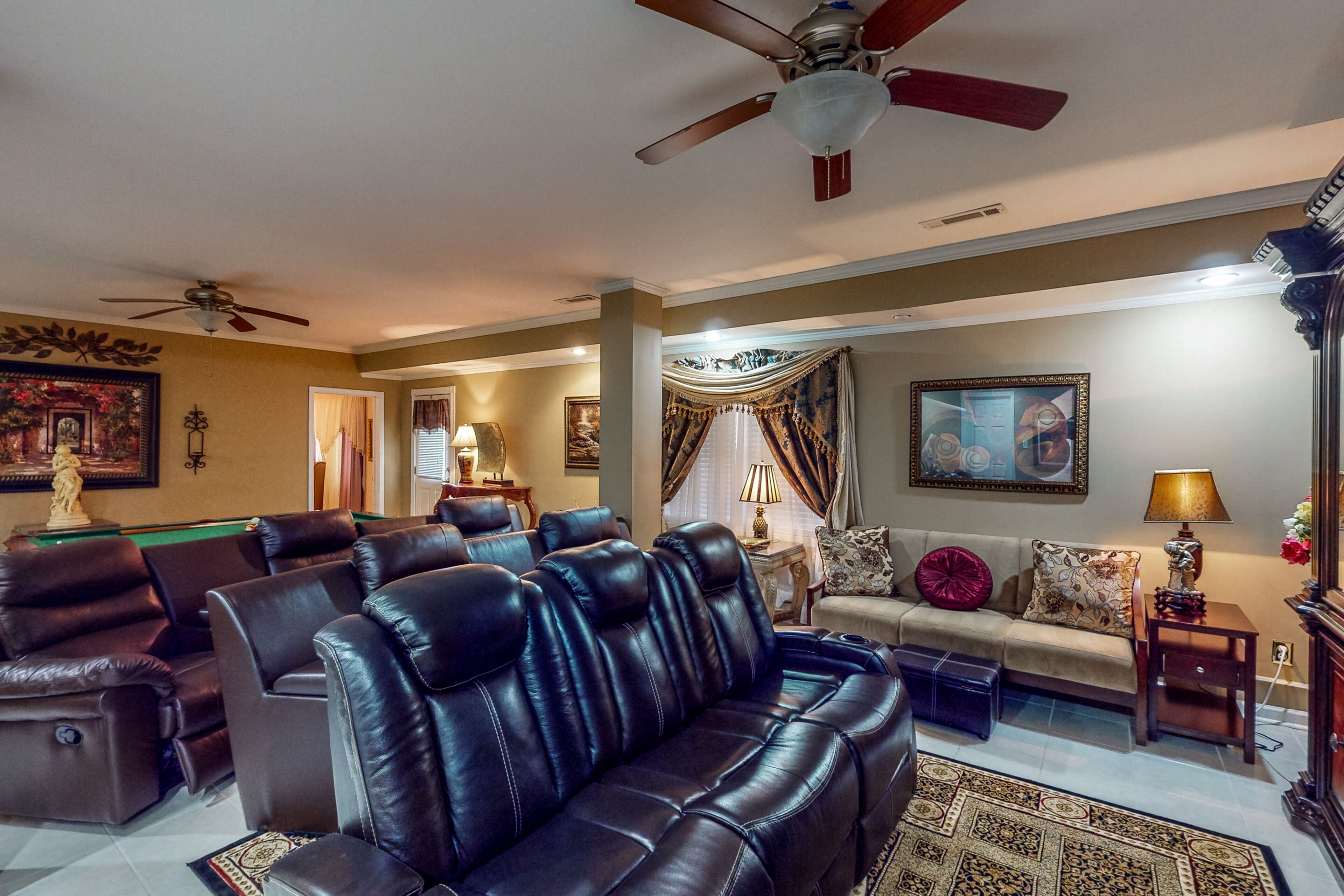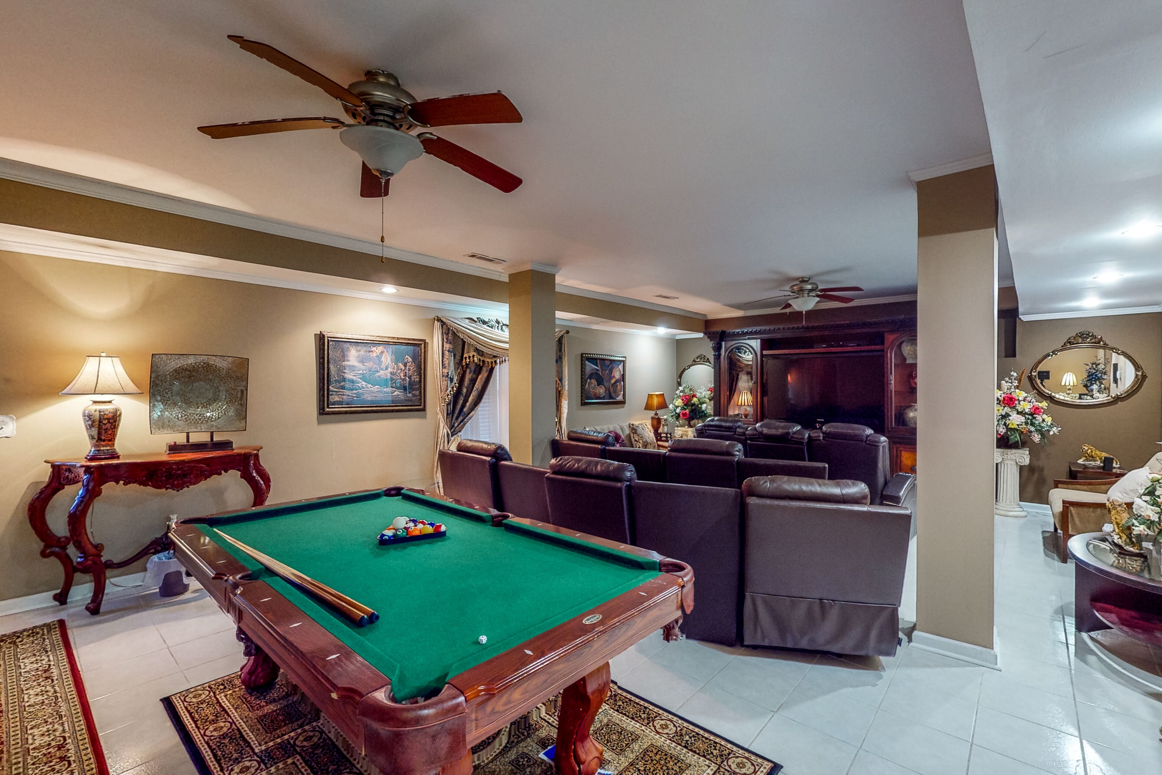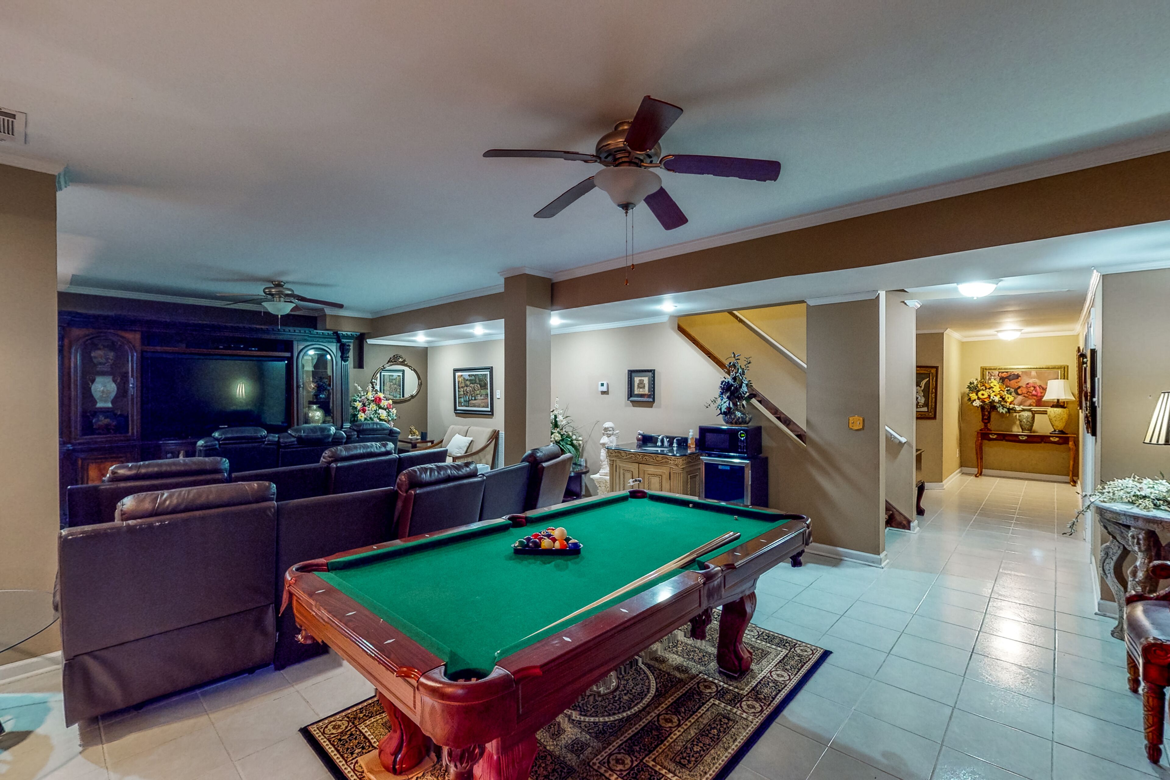 Luxe retreat near the airport with home theater, gym, deck, grill, & pool table